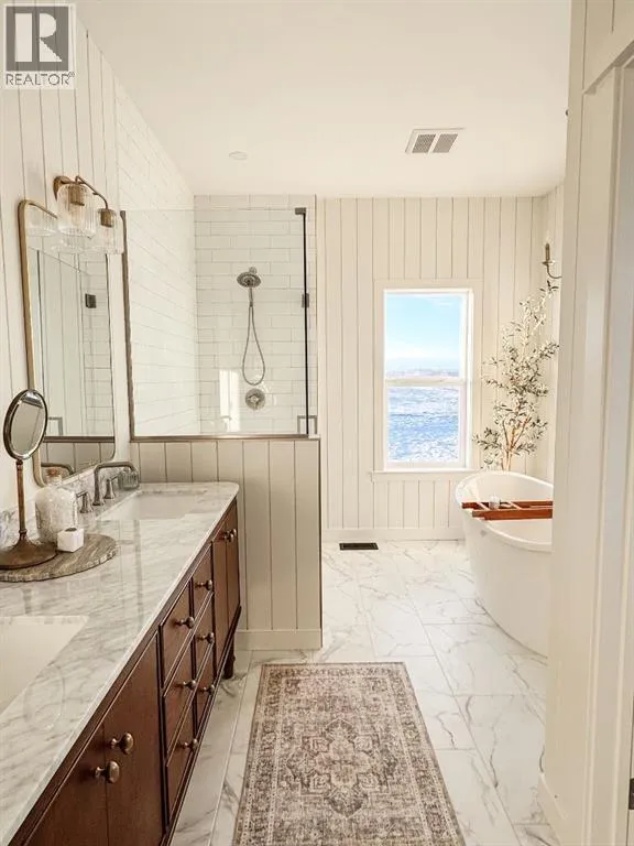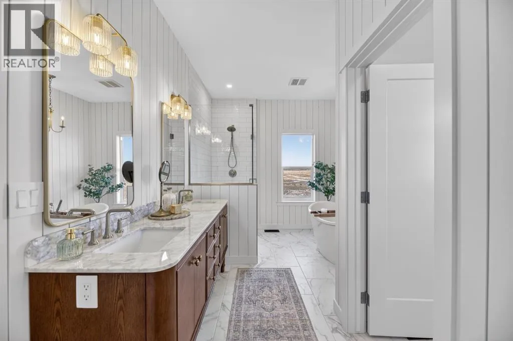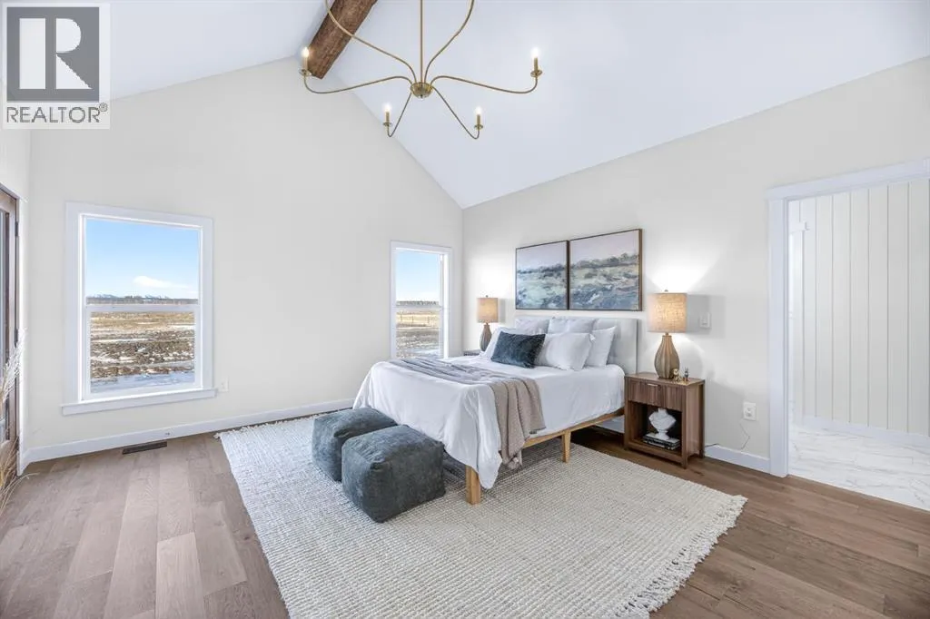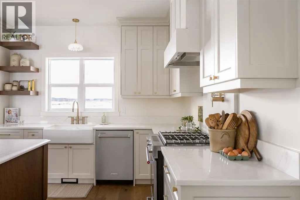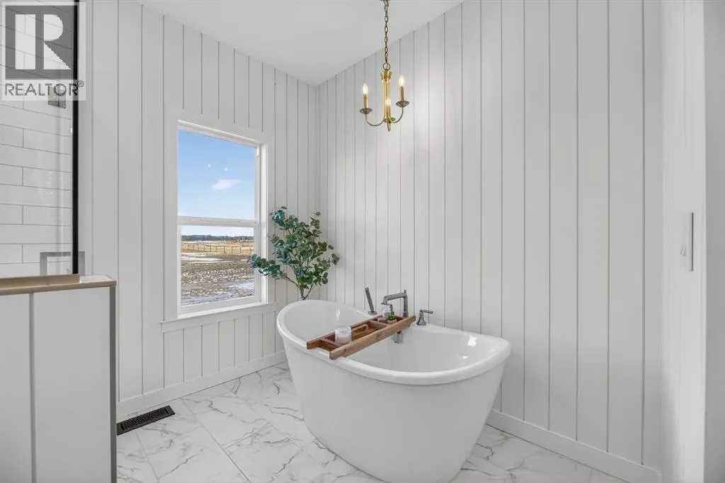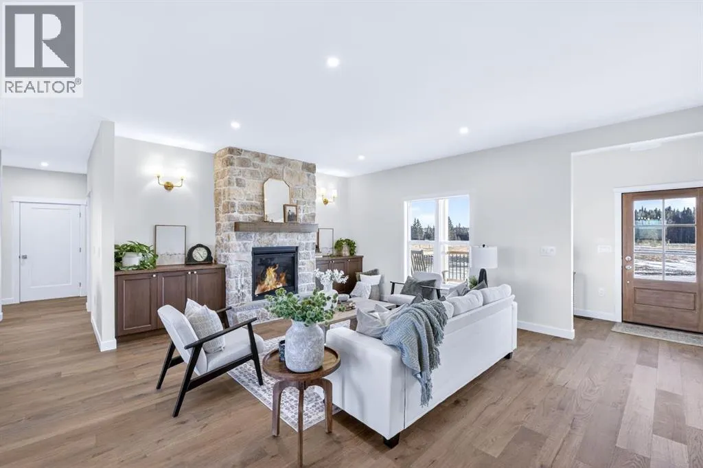 THIS BEAUTY IS NOW COMPLETE!! IF YOUâRE LOOKING FOR COUNTRY LIVING AT ITâS FINEST THIS IS THE ONE!! ONLY MINUTES AWAY FROM SUNDRE and you can escape to the tranquility of country living with MOUNTAIN VIEWS in this stunning 2107 sq ft âcustom builtâ bungalow by Rosewood Homes & Design! This gorgeous home has HIGH END FINISHINGS inside, as well as HARDIE BOARD & HARDIE SHAKES on the exterior! Youâll love the fact the home is situated on 2.85 acres (on a quiet road, with no through traffic) and offers âBREATHTAKING VIEWSâ to the west, ensuring peaceful and picturesque living! The layout has been thoughtfully designed and offers spacious rooms throughout the home, creating a balance of personal space and family connection. The impressive 9â ceilings on both floors, combined with large windows, create an open, yet inviting space! From the moment you step into the foyer you can see this is an exceptional home! The elegant hardwood floors that flow throughout the home add warmth and sophistication, and the open concept of the main floor enhances the flow and promotes interaction with family and friends! The spacious living room has custom white oak built-inâs, gas fireplace for added ambience, as well as warmth. The heart of the home is always the kitchen, and this one does not disappoint! A chefâs dream some may say! From the custom 8â white oak island, exquisite quartz countertops, to the carefully selected appliances including a 5 burner gas range, pot filler, & OVERSIZED walk-in butler pantry with floor to ceiling storage & a window that brings in loads of light! This is a perfect kitchen for culinary enthusiasts & large family gatherings! The main floor laundry features quartz countertops, LG washer and dryer, & a large farmhouse sink. There are 4 well thought out bedrooms (one could be the perfect office) 3 of the bedrooms are on one side of the bungalow, and the huge primary suite on the other, providing a quiet and tranquil retreat! Unwind in this beautiful bedroom suite with vaulted ceilings, spacious 5 pc ensuite / soaker tub and walk in shower! BONUS is the 10â6â x 5â9â walk-in closet, and the private door to the back deck where you can enjoy your morning coffee & mountain views! The undeveloped basement awaits your creative ideas to make it your own with room for a future family room, bathroom, 2 more bedrooms and storage room/cold room. The 24x26 garage is fully finished, heated, and provides ample space for vehicles, storage or a workshop. The Well produces 20 gpm, and there is a full filtration system and water softener, which still allows for 18 gpm! Donât miss out on this rare opportunity to own a piece of paradise with a brand-new custom build, and so close to town! Call today and make your dream acreage a reality.The home comes with a NEW HOME WARRANTY. Pls note** RMS sq footage is based on builder's blueprint. Call today :) (id:27476)