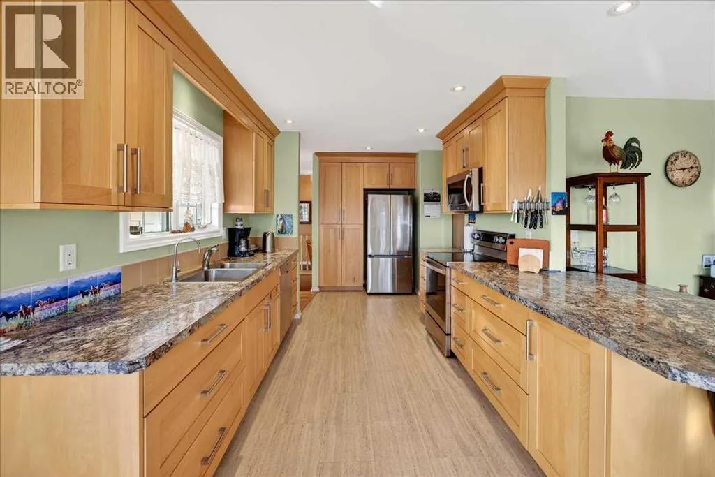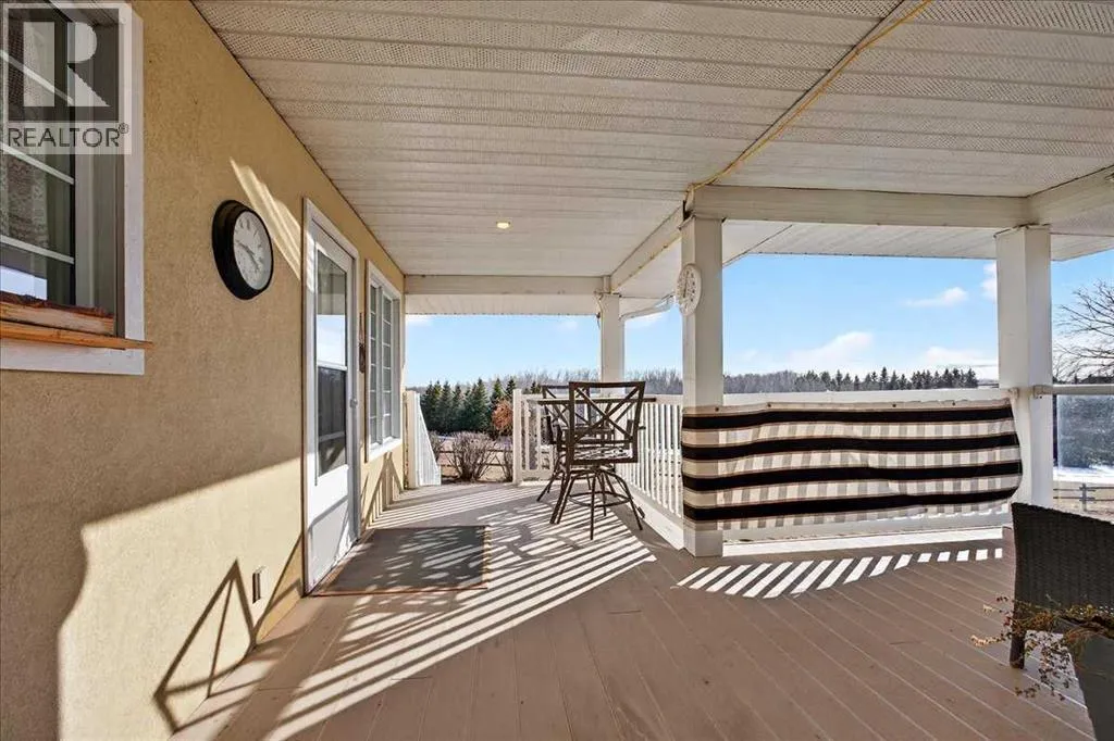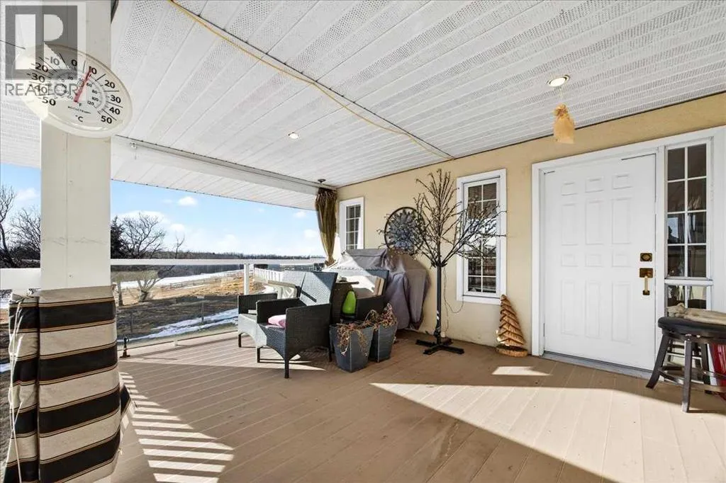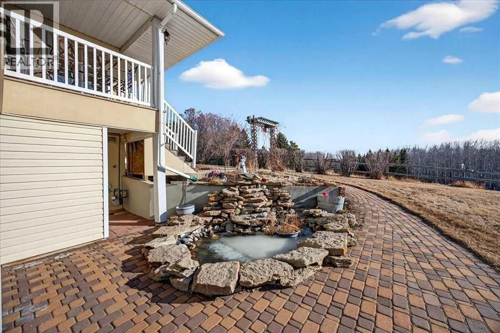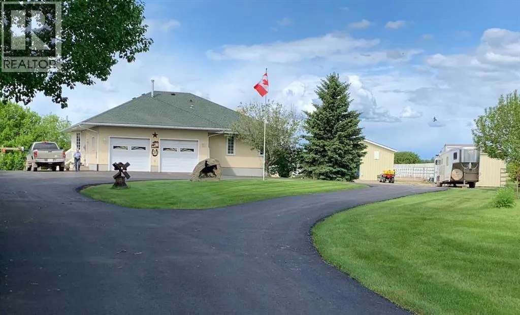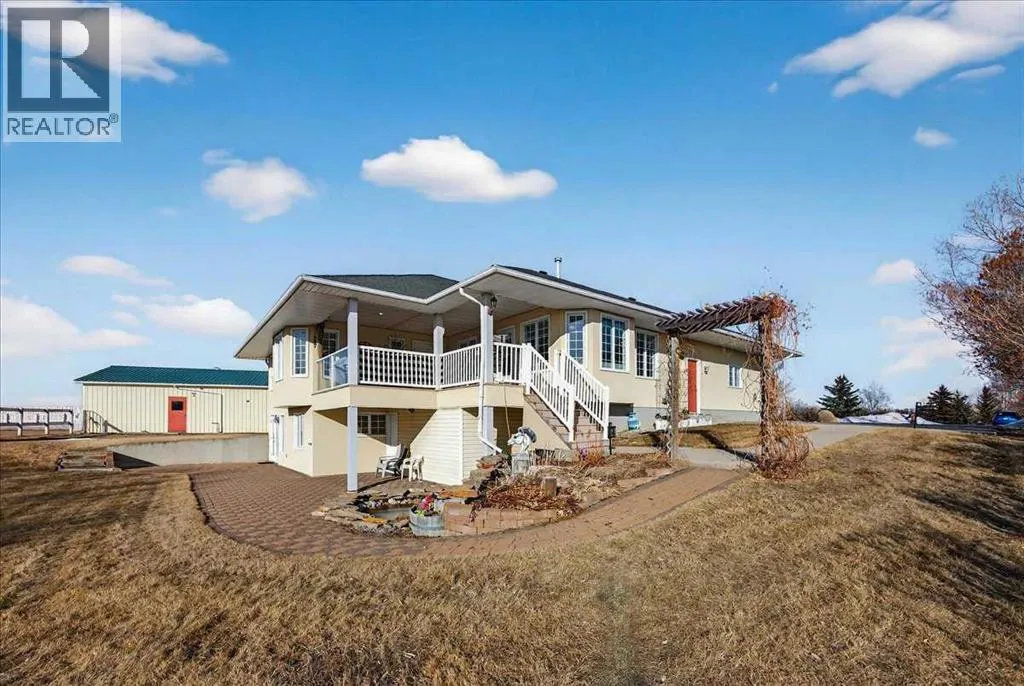 Properties like this donât come on the market often â bring the horses! This is the lifestyle property you have been dreaming of... Original owner acreage bordering the town of Didsbury, featuring beautiful west-facing views and surrounded by open fields. This 4.57-acre property offers privacy, tranquility, and the convenience of town amenities just two minutes away â with pavement right to your garage. The spacious walk-out bungalow has been tastefully renovated. The functional kitchen features newer maple cabinets, and the large primary bedroom includes an ensuite and walk-in closet. Youâll also find a second bedroom, main-floor laundry, a powder room, and an updated 4-piece bath on the main level. Downstair the basement has a full kitchen and includes in-floor heating, two bedrooms, a massive family room, its own laundry, and plenty of storage â including a large utility room and cold room. The attached double garage is heated with in-floor heat and offers high ceilings. Step outside to a massive covered deck overlooking the property, or relax on the lower brick patio beside the pond â a peaceful spot that often attracts visiting moose and deer. Equestrian enthusiasts will love the heated 25' x 35' barn and riding arena, complete with a built-in tack room. The property is fenced and cross-fenced, with two horse shelters and two large sheds. The barn could easily be converted into a workshop if desired. Didsbury offers everything you need â schools, healthcare, shopping, dining, and recreation â all just minutes from your door. For those who want an indoor areana just 10 minutes away is the fantastic Didsbury Ag Society facility! Plus, youâre ideally located between Calgary and Red Deer, with quick access to the QEII Highway, making commuting or weekend trips easy and convenient. With mature trees, gorgeous views, and unbeatable proximity to town, this acreage is the perfect blend of rural lifestyle and modern convenience. Donât wait â properties like this are rare. Schedule your private viewing today! (id:27476)