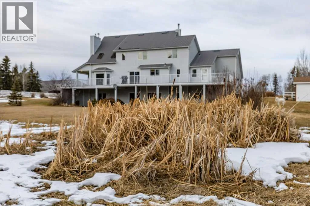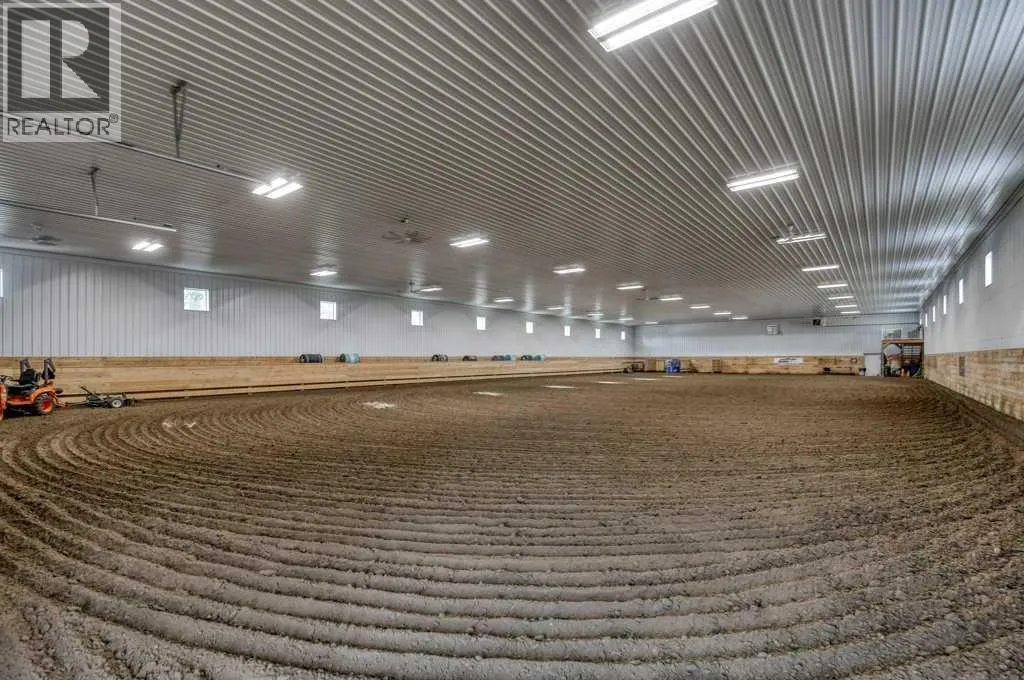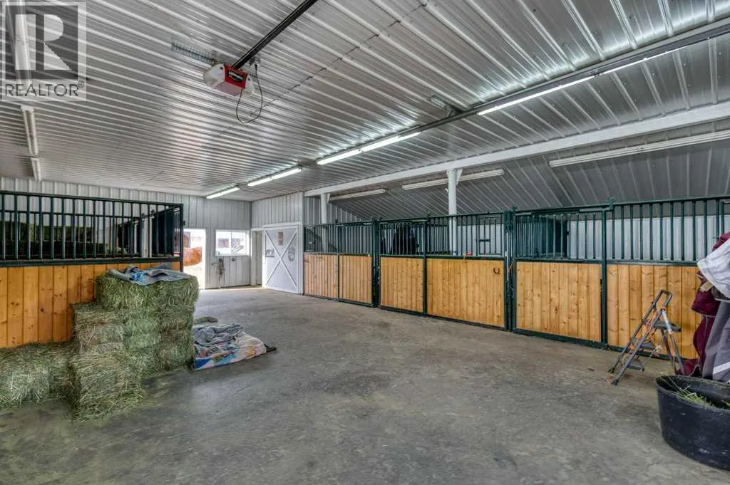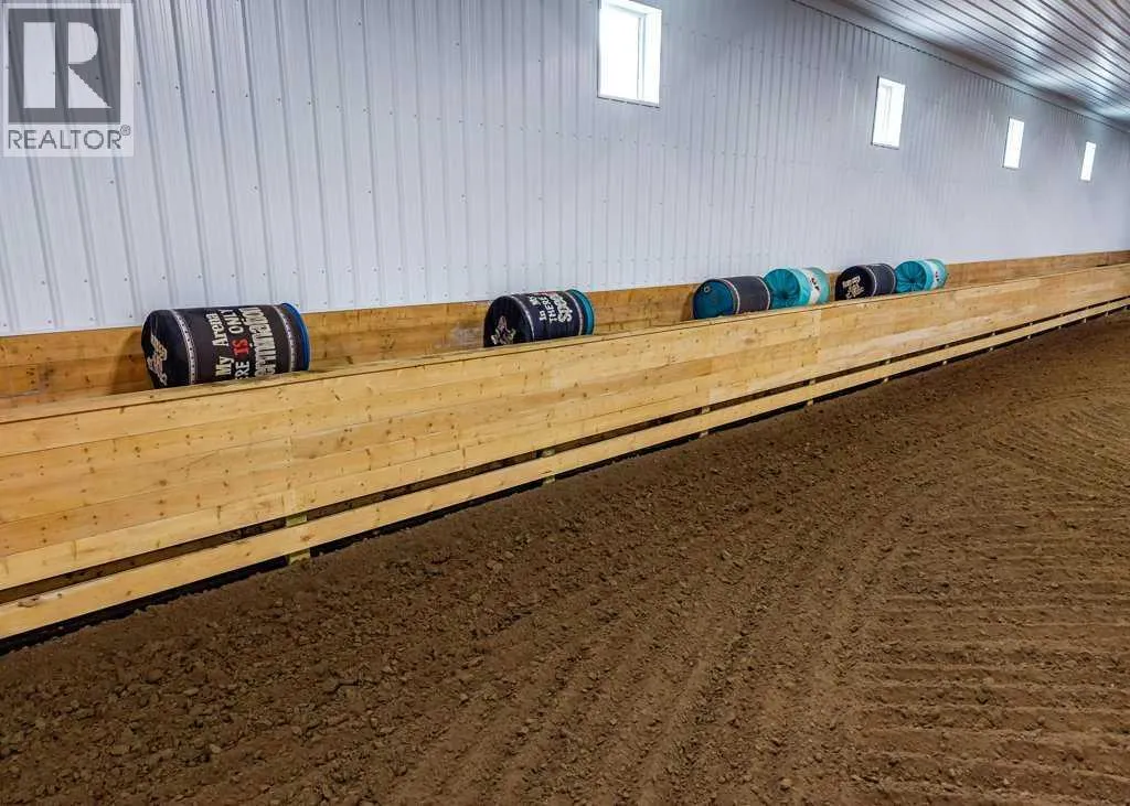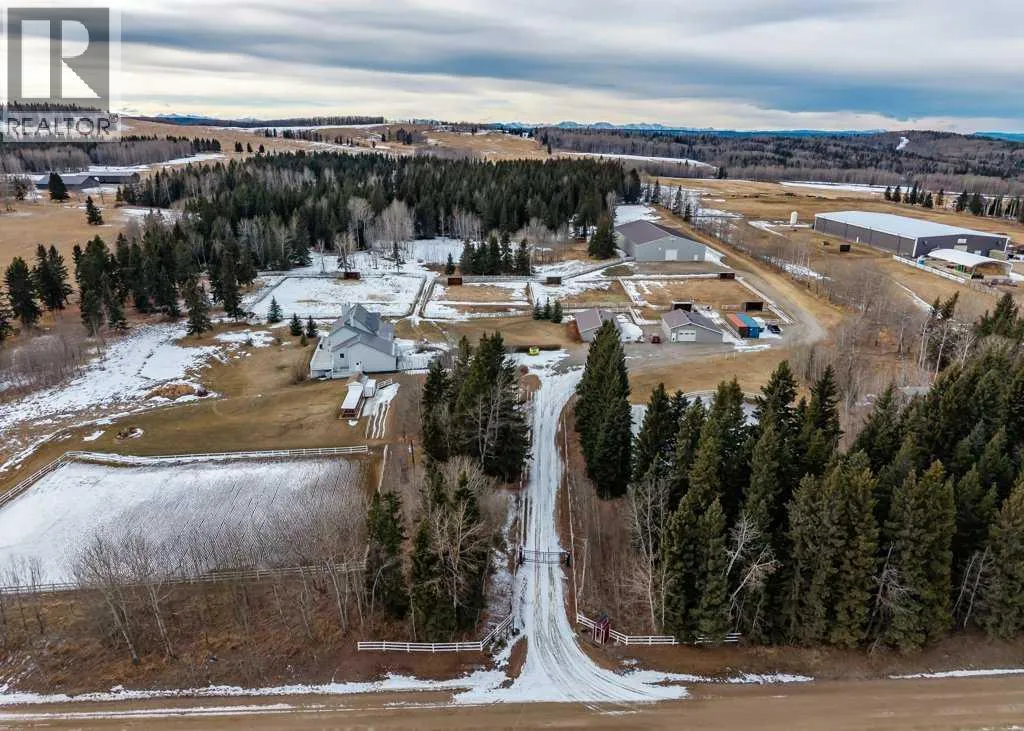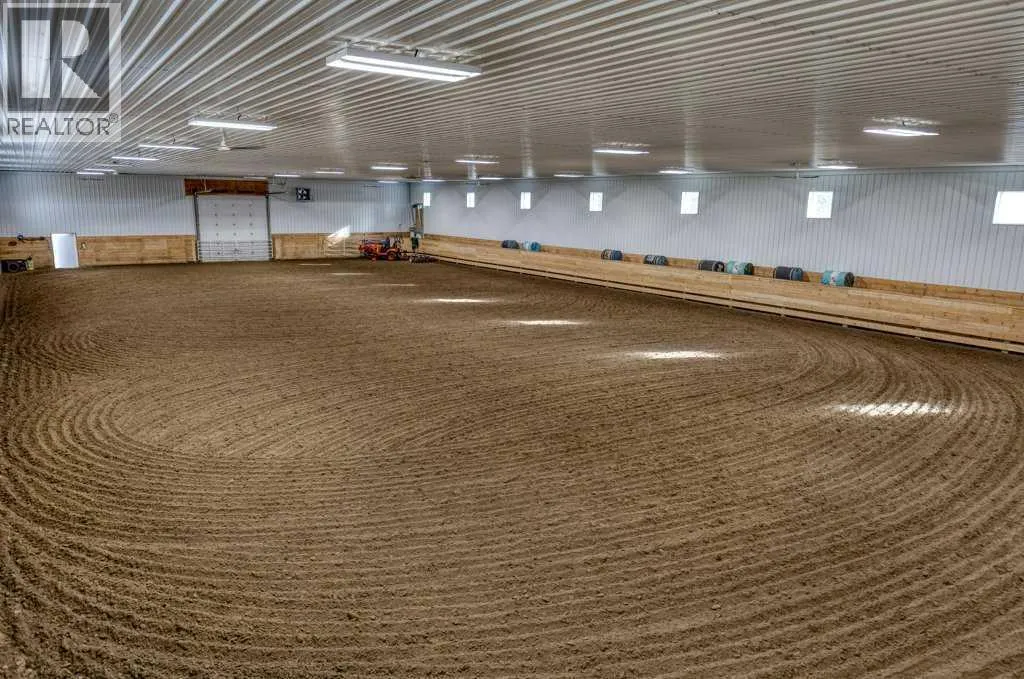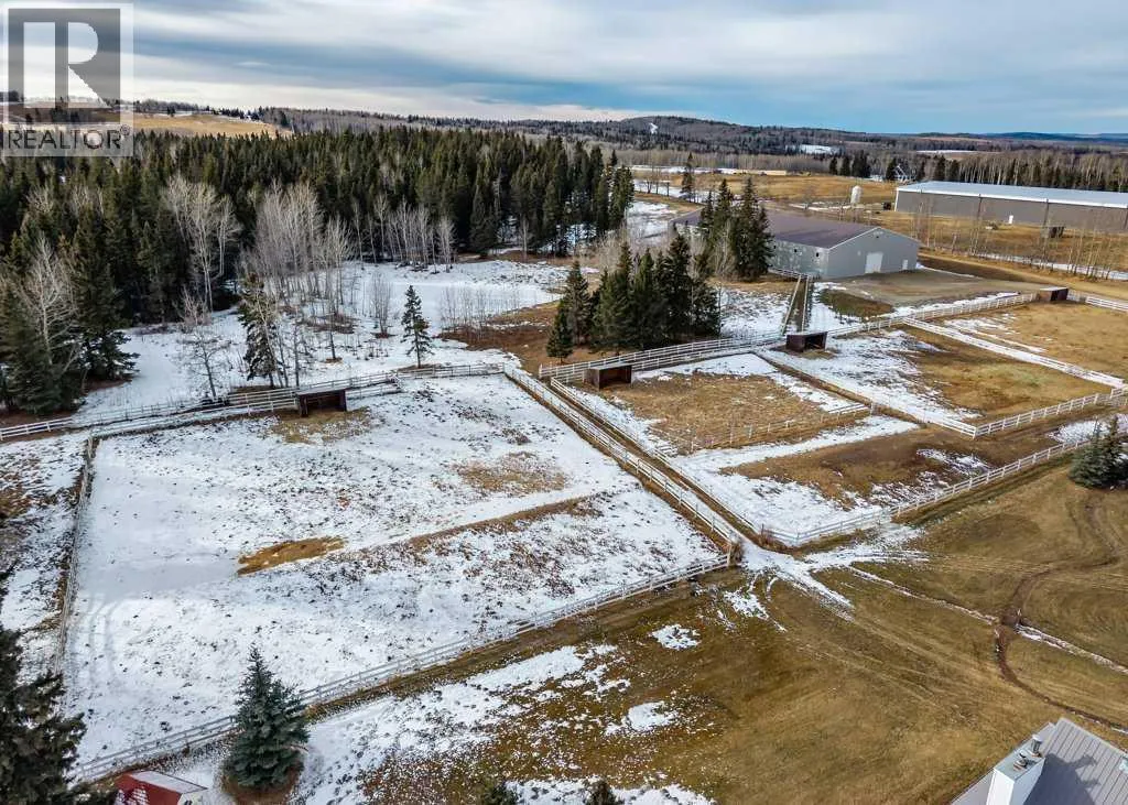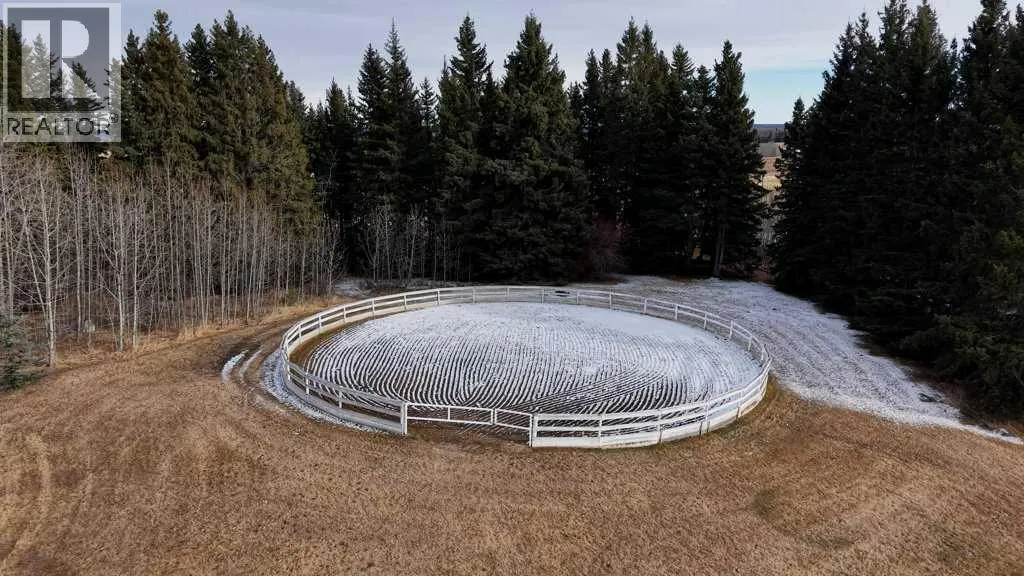 {OPEN HOUSE SATURDAY, APRIL 11 1-3 PM)WHISPERING GROVE RANCH |A TURN-KEY EQUESTRIAN OASISSet against a breathtaking backdrop of mature forest & open pasture, this thoughtfully designed 43-acre equestrian estate just west of Bergen offers an exceptional blend of privacy, functionality, and natural beauty. The landscape features treed riding trails, practical paddocks, indoor & outdoor training facilities and a beautifully landscaped yard. A gated entrance creates a strong sense of arrival and provides security, opening to a well-planned yard with ample space for trailers, parking, and turnaround. At the heart of the property is the impressive 84â x 180â indoor heated riding arena with premium, dust-controlled footing. South-facing windows provide excellent natural light, while small and large overhead doors, a stripping chute, return alley, spacious tack-up area and spectator viewing deck make the setup ideal for roping and cowhorse work.The heated five-stall barn is equally well appointed with rubber-coated floors, rubber-matted stalls with safety-built walls, and a large tack room featuring a unique 360-degree revolving tack door for efficient daily use. Outdoor facilities include a professionally graded 110â x 170â outdoor arena beautifully sheltered by trees, a round pen, and six plank-fenced paddocks, one of which offers direct alley access to the indoor arena. The residence offers timeless appeal with a traditional layout and has been recently painted throughout. A wrap-around deck overlooks the grounds and includes a gas line for BBQs, while the lower patioâwired for a hot tubâcreates a private outdoor retreat. The driveway and lower patio feature durable recycled rubber paving.Inside, the main floor includes a generous formal dining room, a spacious formal living room, and a charming south-facing sitting room with a wood-burning river rock fireplaceâperfect for sun-filled morning coffees. The expansive kitchen features miles of oak cabinetry, a large isl and with breakfast bar, gas stove, and patio doors opening to the south deck. A boot room with main-floor laundry includes a GE Profile 2-in-1 washer/dryer combo and provides access to the oversized heated double attached garage. Upstairs are four bedrooms, including a massive primary suite. The fully developed basement with in-floor heat offers a media room, bar area, flex space for a gym or games room, and a fifth bedroom. Additional amenities include a 30â x 56â heated and insulated shop, RV gravel pad overlooking a picturesque pond, secluded she-shed and firepit area, and an impressive chicken coop with enclosed outdoor run, divided hen house, and automatic door. The property features a strong drilled well (5 GPM when last tested) and a whole-house reverse osmosis system. This is a rare opportunity to acquire a fully turn-key equestrian estate in an extraordinary forested settingâperfectly suited for ropers and discerning buyers seeking privacy, quality, and a complete rural lifestyle. GST applicable. (id:27476)