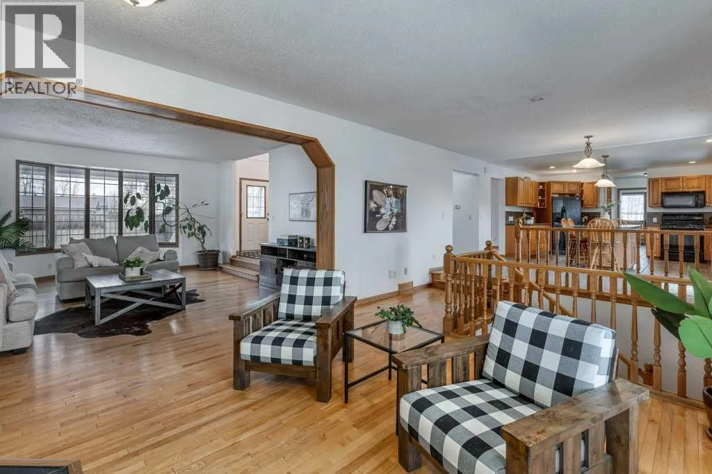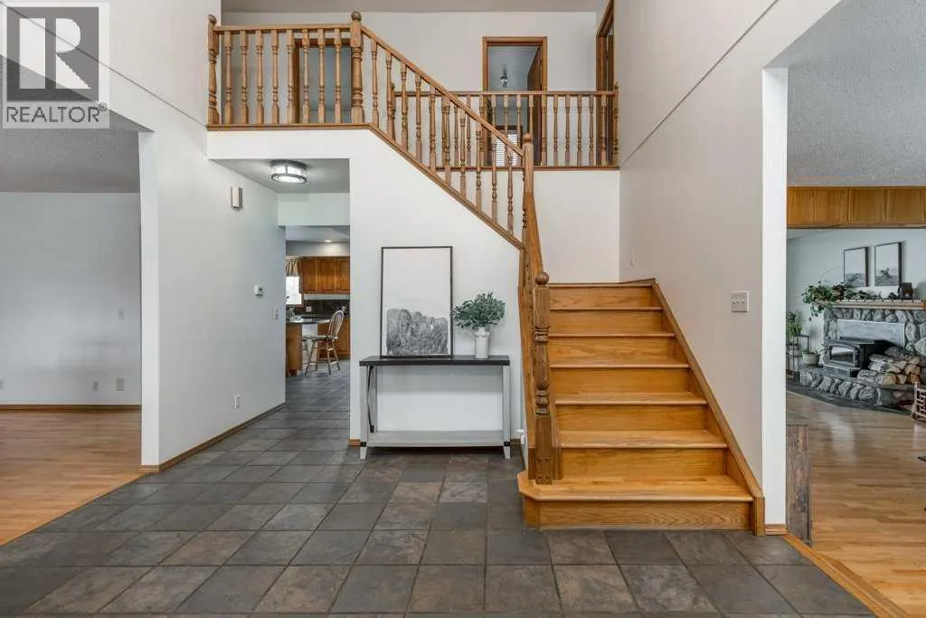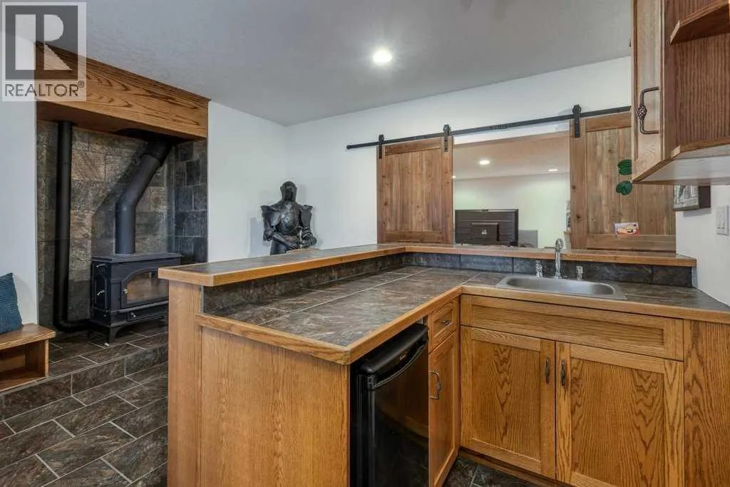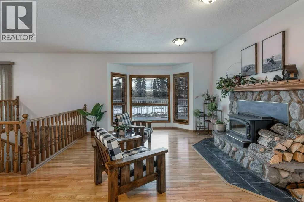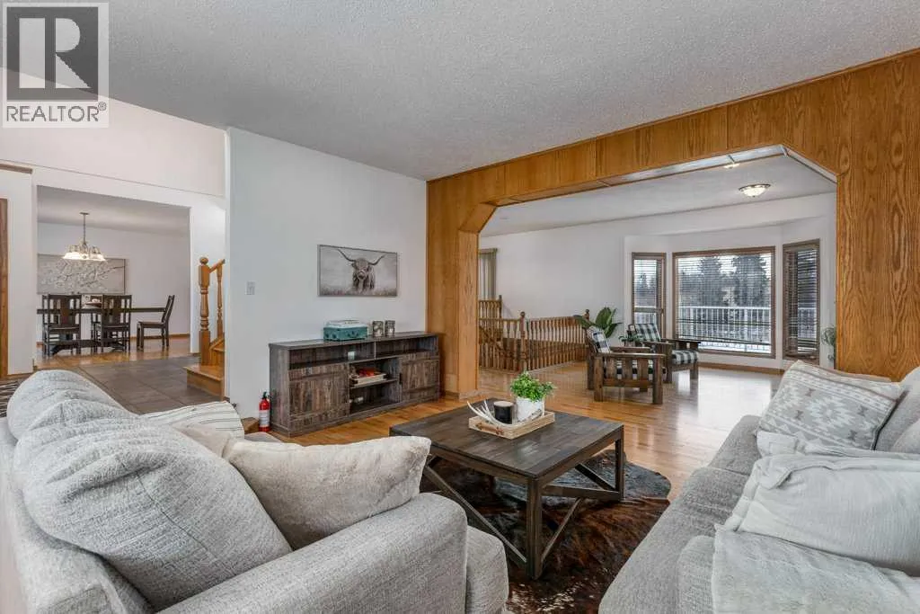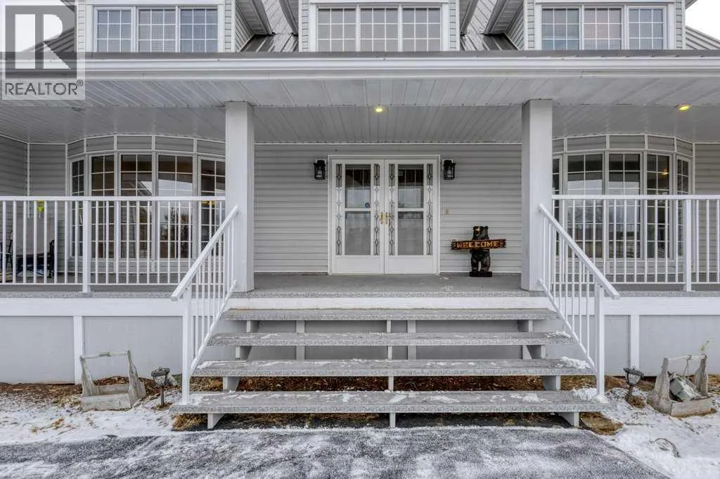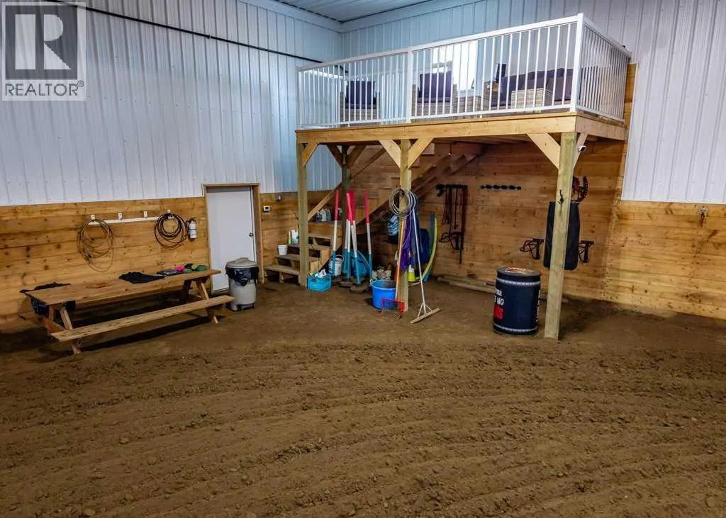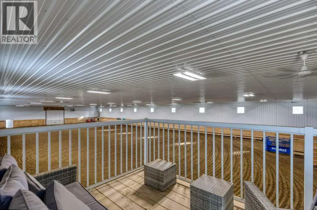 {OPEN HOUSE SATURDAY, APRIL 11 1-3 PM)WHISPERING GROVE RANCH |A TURN-KEY EQUESTRIAN OASISSet against a breathtaking backdrop of mature forest & open pasture, this thoughtfully designed 43-acre equestrian estate just west of Bergen offers an exceptional blend of privacy, functionality, and natural beauty. The landscape features treed riding trails, practical paddocks, indoor & outdoor training facilities and a beautifully landscaped yard. A gated entrance creates a strong sense of arrival and provides security, opening to a well-planned yard with ample space for trailers, parking, and turnaround. At the heart of the property is the impressive 84â x 180â indoor heated riding arena with premium, dust-controlled footing. South-facing windows provide excellent natural light, while small and large overhead doors, a stripping chute, return alley, spacious tack-up area and spectator viewing deck make the setup ideal for roping and cowhorse work.The heated five-stall barn is equally well appointed with rubber-coated floors, rubber-matted stalls with safety-built walls, and a large tack room featuring a unique 360-degree revolving tack door for efficient daily use. Outdoor facilities include a professionally graded 110â x 170â outdoor arena beautifully sheltered by trees, a round pen, and six plank-fenced paddocks, one of which offers direct alley access to the indoor arena. The residence offers timeless appeal with a traditional layout and has been recently painted throughout. A wrap-around deck overlooks the grounds and includes a gas line for BBQs, while the lower patioâwired for a hot tubâcreates a private outdoor retreat. The driveway and lower patio feature durable recycled rubber paving.Inside, the main floor includes a generous formal dining room, a spacious formal living room, and a charming south-facing sitting room with a wood-burning river rock fireplaceâperfect for sun-filled morning coffees. The expansive kitchen features miles of oak cabinetry, a large isl and with breakfast bar, gas stove, and patio doors opening to the south deck. A boot room with main-floor laundry includes a GE Profile 2-in-1 washer/dryer combo and provides access to the oversized heated double attached garage. Upstairs are four bedrooms, including a massive primary suite. The fully developed basement with in-floor heat offers a media room, bar area, flex space for a gym or games room, and a fifth bedroom. Additional amenities include a 30â x 56â heated and insulated shop, RV gravel pad overlooking a picturesque pond, secluded she-shed and firepit area, and an impressive chicken coop with enclosed outdoor run, divided hen house, and automatic door. The property features a strong drilled well (5 GPM when last tested) and a whole-house reverse osmosis system. This is a rare opportunity to acquire a fully turn-key equestrian estate in an extraordinary forested settingâperfectly suited for ropers and discerning buyers seeking privacy, quality, and a complete rural lifestyle. GST applicable. (id:27476)
