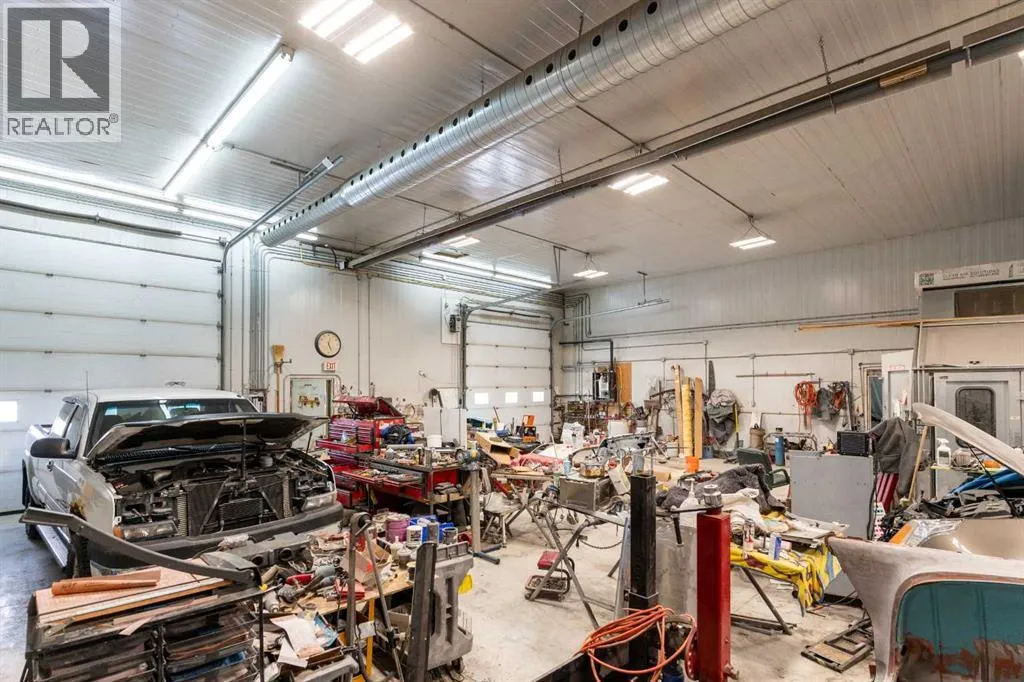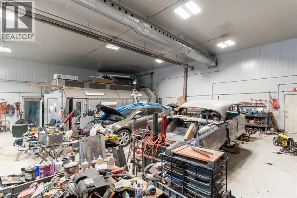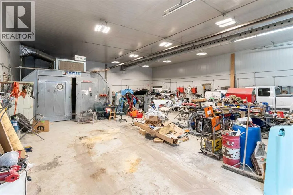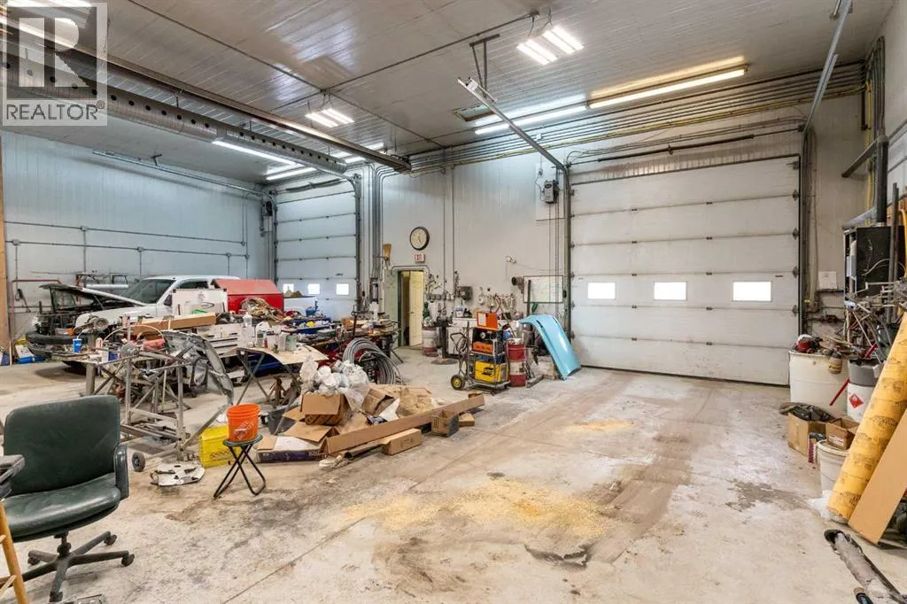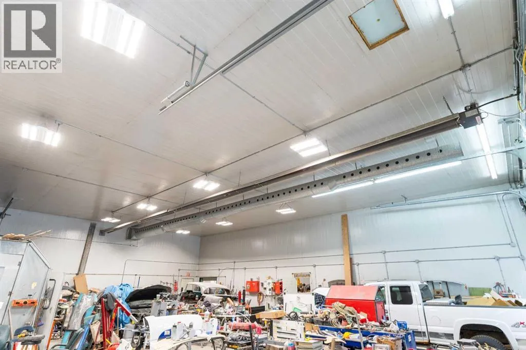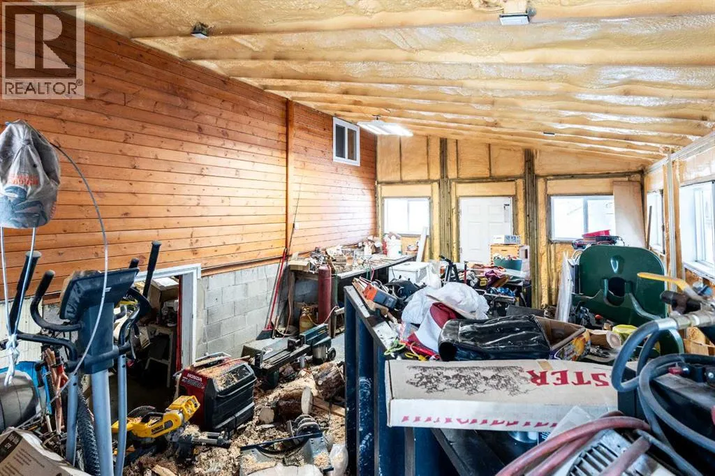 If youâve been looking for space, functionality, and serious shop capacity, this 4.99-acre property just south of Sundre delivers outstanding potential for the right buyer.The 1.5-storey home, built in 2013, offers 1,936 sq. ft. above grade with an unfinished basement ready for future development. Finished in knotty pine inside and out, the home has a warm, rustic character throughout. The main floor features two bedrooms, a full bathroom, kitchen, and living area, while the upper level includes a full bath and a spacious family room that could easily serve as a primary suite.Outdoor living is a major highlight, with approximately 1,290 sq. ft. of deck space, including a partially covered section. (Please note: upper deck requires railing installation.) The home does require cleanup and finishing touches but offers a solid structure and excellent opportunity to customize to your vision.The true standout feature is the impressive 4,728 sq. ft. shop â previously operated as a body shop â complete with its own separately metered service. Built circa 2004, this versatile building includes:⢠Approximately 3,000 sq. ft. central shop area⢠Two side lean-tos totaling ~1,440 sq. ft.⢠~288 sq. ft. front office with staff area and 3-piece bathroom⢠Multiple overhead doors (12âx14â x2, 9âx8â x2 front, 10âx12â rear)⢠16â ceilings⢠LED lighting⢠200-amp power panel⢠In-floor heat, overhead radiant heater, interior gas boiler⢠Exterior coal boiler (not currently in use)Please note: Spray booth, mixing room, and related body shop equipment are excluded from the sale.Additional improvements include a partially converted 416 sq. ft. garage space with spray foam insulation, pellet stove, water lines, and wiring, plus a 144 sq. ft. well house.Property is being sold âas-is, where-is,â with no warranties or representations at date/time of closing.With vision and effort, this property could become the ultimate home-based business setup, a tradespersonâs dream shop, or a private acreage with exceptional workspace just minutes from Sundre. (id:27476)