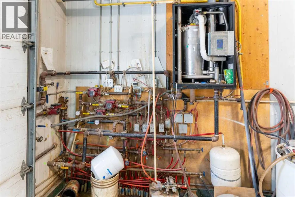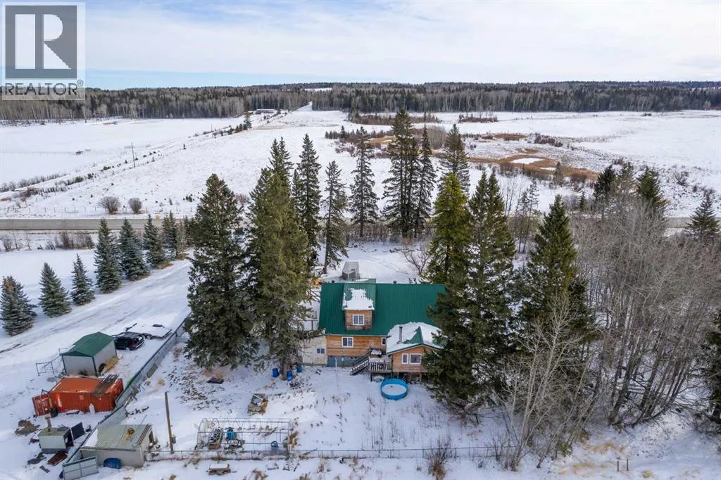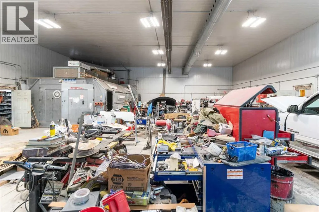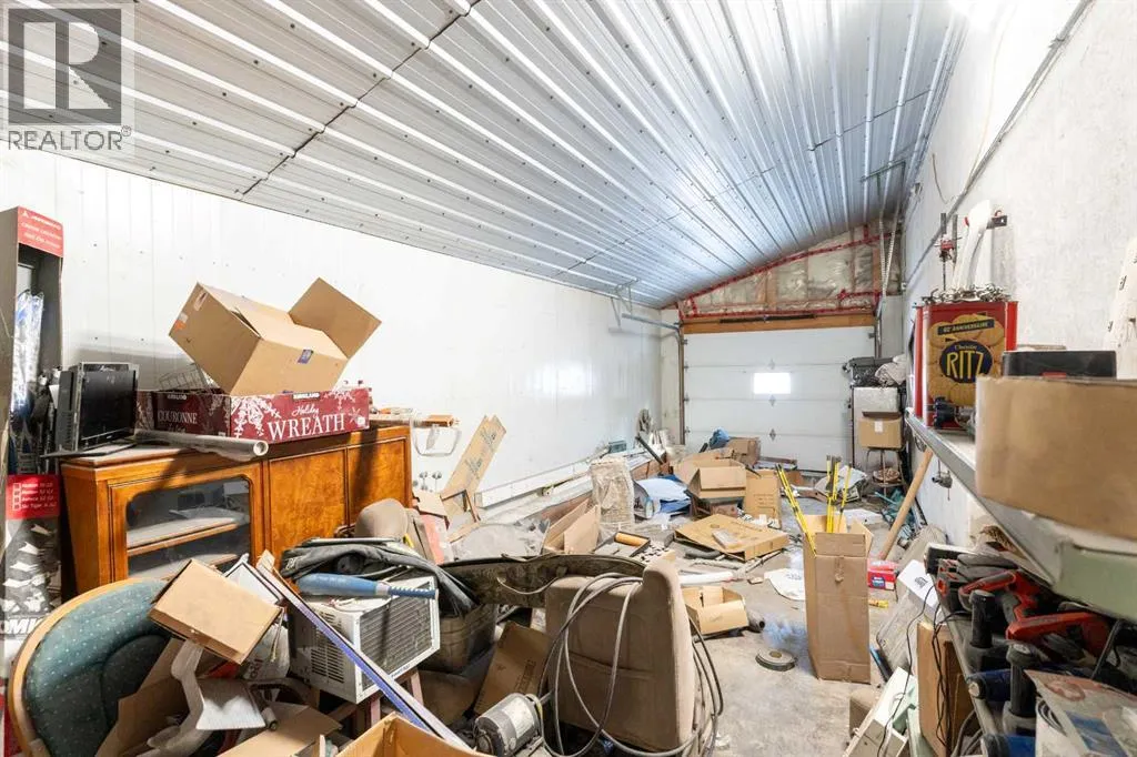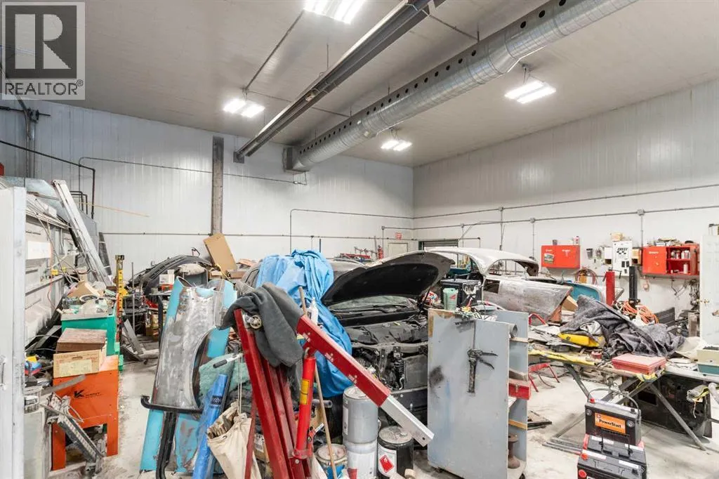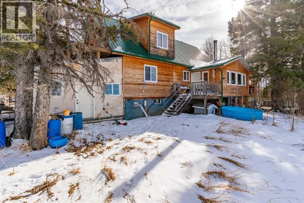 If youâve been looking for space, functionality, and serious shop capacity, this 4.99-acre property just south of Sundre delivers outstanding potential for the right buyer.The 1.5-storey home, built in 2013, offers 1,936 sq. ft. above grade with an unfinished basement ready for future development. Finished in knotty pine inside and out, the home has a warm, rustic character throughout. The main floor features two bedrooms, a full bathroom, kitchen, and living area, while the upper level includes a full bath and a spacious family room that could easily serve as a primary suite.Outdoor living is a major highlight, with approximately 1,290 sq. ft. of deck space, including a partially covered section. (Please note: upper deck requires railing installation.) The home does require cleanup and finishing touches but offers a solid structure and excellent opportunity to customize to your vision.The true standout feature is the impressive 4,728 sq. ft. shop â previously operated as a body shop â complete with its own separately metered service. Built circa 2004, this versatile building includes:⢠Approximately 3,000 sq. ft. central shop area⢠Two side lean-tos totaling ~1,440 sq. ft.⢠~288 sq. ft. front office with staff area and 3-piece bathroom⢠Multiple overhead doors (12âx14â x2, 9âx8â x2 front, 10âx12â rear)⢠16â ceilings⢠LED lighting⢠200-amp power panel⢠In-floor heat, overhead radiant heater, interior gas boiler⢠Exterior coal boiler (not currently in use)Please note: Spray booth, mixing room, and related body shop equipment are excluded from the sale.Additional improvements include a partially converted 416 sq. ft. garage space with spray foam insulation, pellet stove, water lines, and wiring, plus a 144 sq. ft. well house.Property is being sold âas-is, where-is,â with no warranties or representations at date/time of closing.With vision and effort, this property could become the ultimate home-based business setup, a tradespersonâs dream shop, or a private acreage with exceptional workspace just minutes from Sundre. (id:27476)