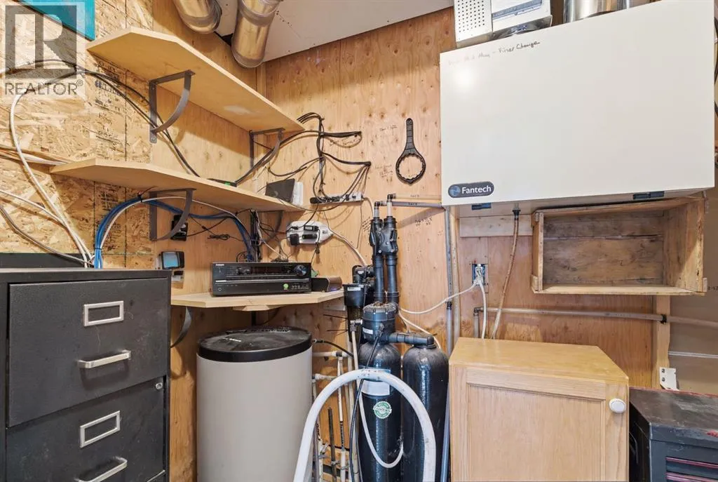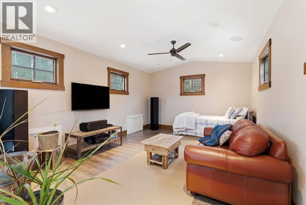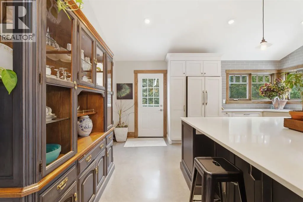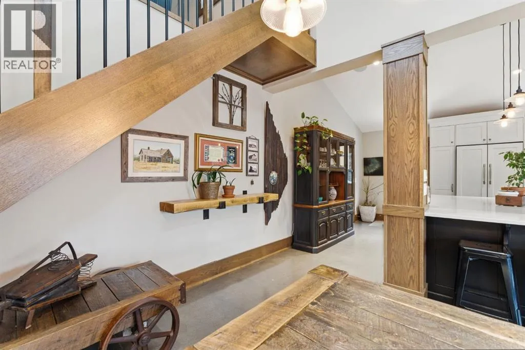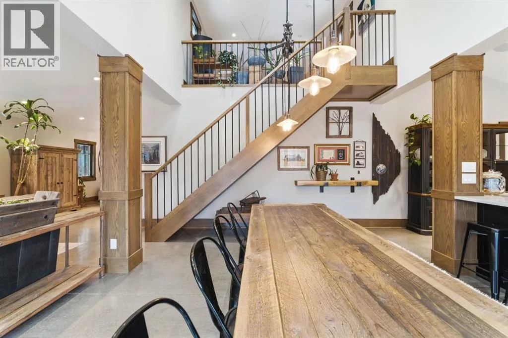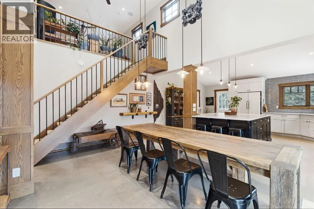 Tucked quietly among the trees and set on four beautifully treed acres, this one-of-a-kind barndominium retreat offers the rare opportunity to live fully immersed in nature â without sacrificing comfort, warmth, or thoughtful design. Whether you are searching for a full-time sanctuary or the ultimate home-away-from-home escape, this property delivers an experience that is difficult to replicate.Built slab-on-grade with efficient in-floor heat, the home offers cozy, grounded living year-round. Inside, rustic textures and natural finishes create a welcoming atmosphere where every space feels intentional and connected to the surrounding landscape. Expansive windows invite the outdoors in, while the layout encourages both quiet solitude and meaningful gathering.A wrap-around porch extends your living space beyond the walls â the perfect setting for morning coffee, evening conversations, or simply listening to the wind move through the trees. This property is not just a place to live â it is a place to breathe.Adding tremendous flexibility and value is the separate detached (LEGAL) carriage suite, thoughtfully positioned above a converted garage space. Ideal for guests, extended family, potential rental income, or creative studio use, this additional dwelling enhances both lifestyle and investment potential.Surrounded by privacy and natural beauty, yet conveniently located just minutes to Water Valley, 12 minutes to Cremona, and close to the renowned Fallen Timber Meadery, this location offers the perfect balance of seclusion and accessibility. Adventure, recreation, and small-town charm are all within easy reach.This is more than a property â it is an oasis for those seeking space, stillness, and connection to the land. (id:27476)