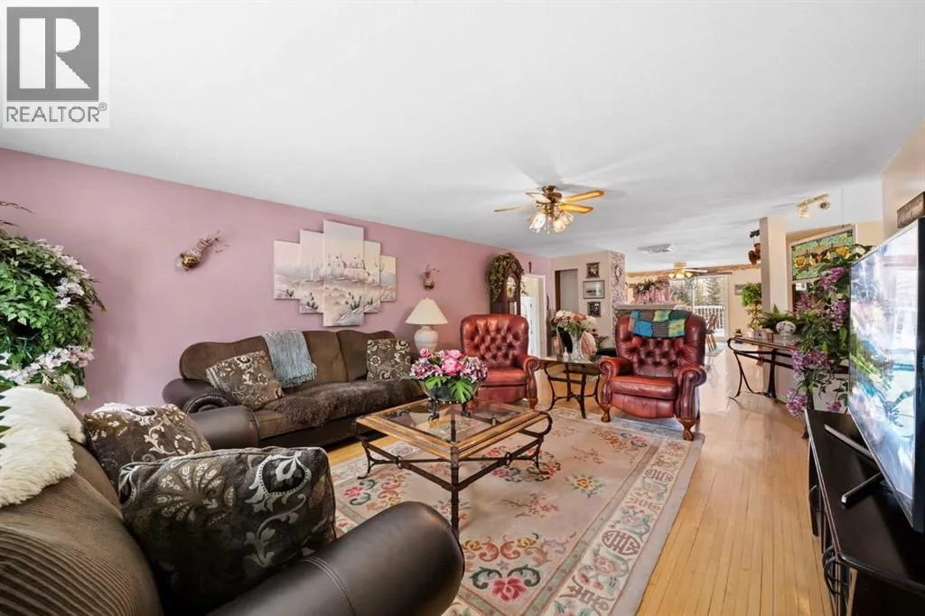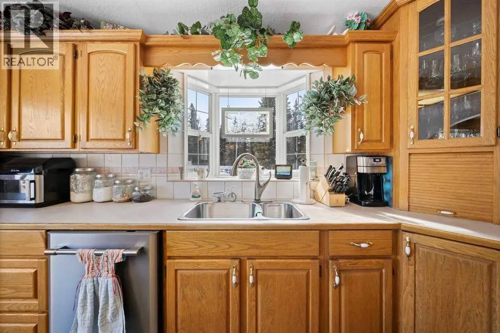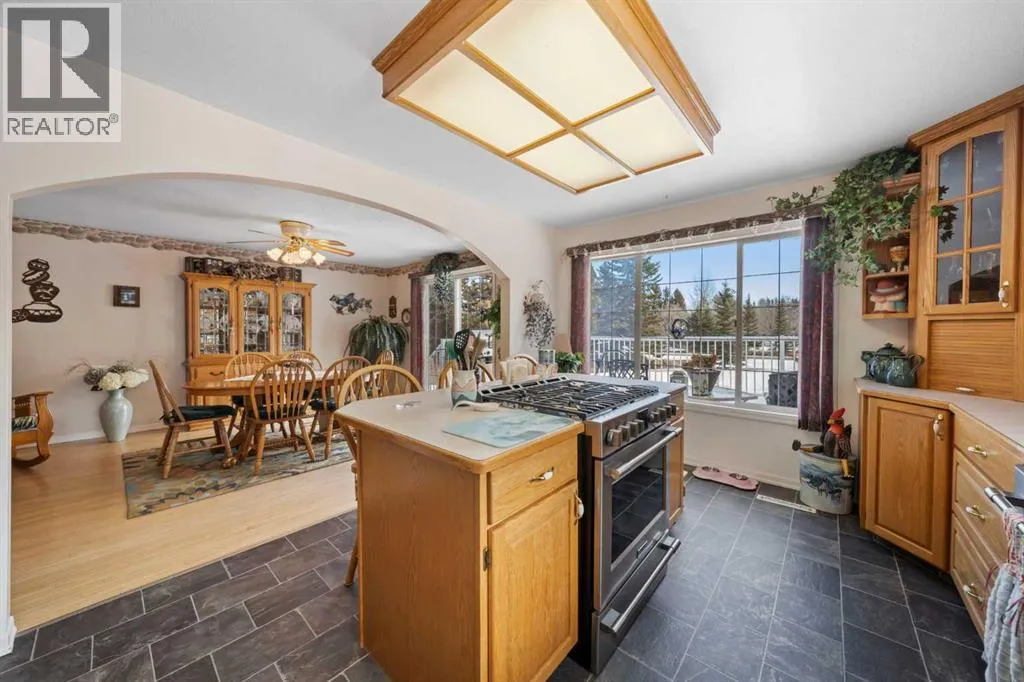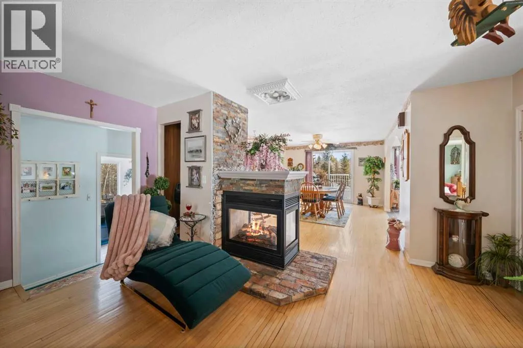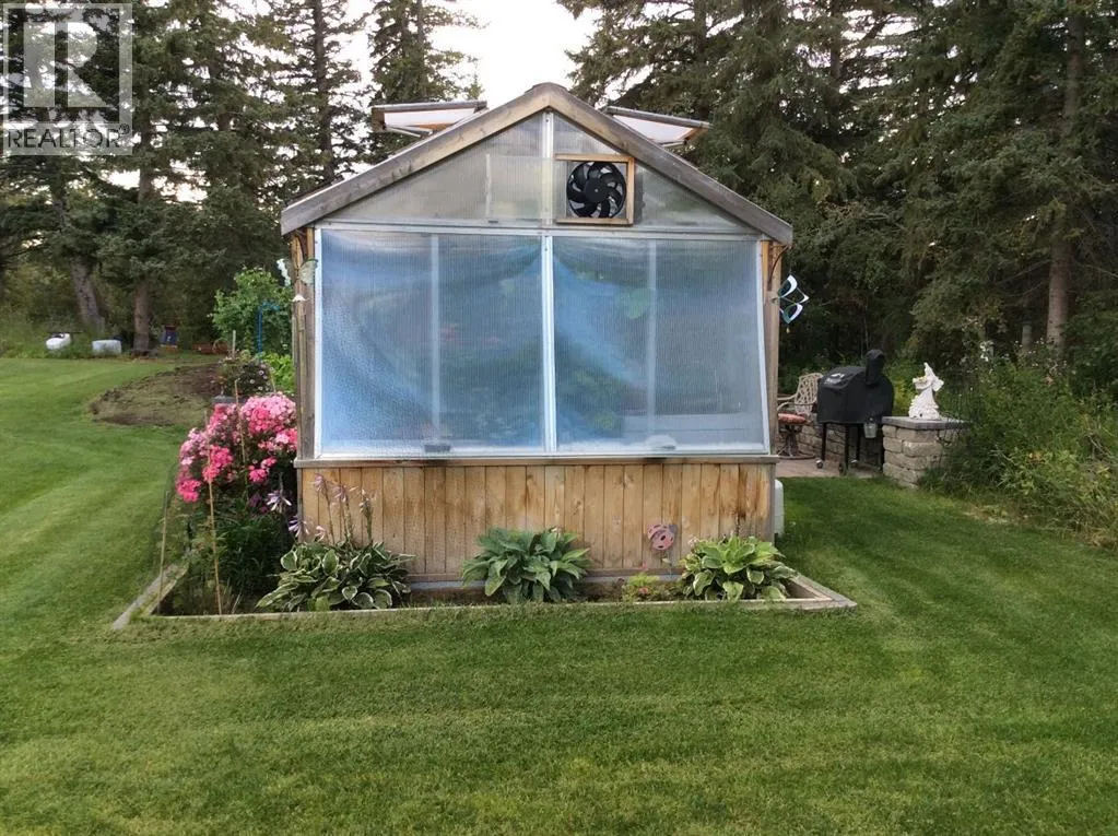 WELCOME to a peaceful country living just 5 miles east of Sundre in beautiful Mountain View County. Nestled in 1.1 acres in the quiet community of Westward Ho, this 1925 sf bilevel with 1100 sf developed basement offers space, comfort, and the charm of country life. Step inside to a bright, open concept main floor designed for everyday living and entertaining. The spacious kitchen is truly a chef's dream, featuring warm oak cabinetry, a large island with gas stove, and plenty of work space for preparing meals and staying connected with family and guests. The 3 sided gas fireplace separates the dining room and the living room, adding warmth and ambiance to the space.The home also show cases original hardwood flooring and adds that timeless character.The main level includes 2 bedrooms, 4 pc bath, hot tub room, main floor laundry and the dedicated office that could easily serve as a 3rd bedroom if desired. Downstairs you will find approximately 1100sf of developed basement space with a 2 pc bath. Perfect games room, man cave or develop a couple more bedrooms. The other part of the basement is gravel flooring , utility and storage space. Out door living is where the property shines. Summers are meant to be enjoyed on the large wrap deck with metal railing, the perfect place to catch the morning and afternoon sun and enjoy the peaceful surrounds. There are 2 gas hook ups on the deck, one for the fire pit and BBQ.The private yet open yard offers the best of both worlds, secluded enough to relax in nature while still allowing plenty of sunshine. Gardeners will love the rich garden space, green house with beautiful stone patio, and established perennial flower bed. If you are searching for a property that offers space, privacy, and the simple pleasure of country living, this is truly one of those places. The Little Red Store, (part of the subdivision) has Gas, and Liquor has all the essentials. (id:27476)