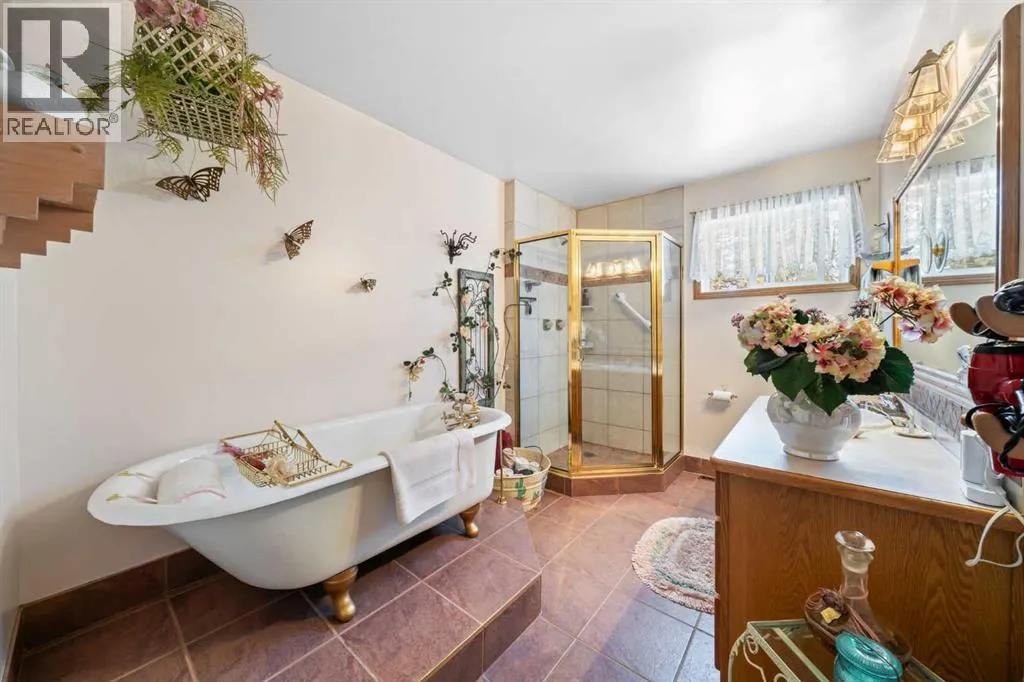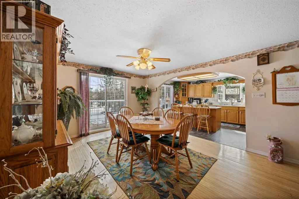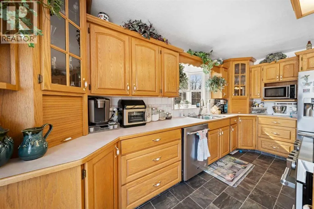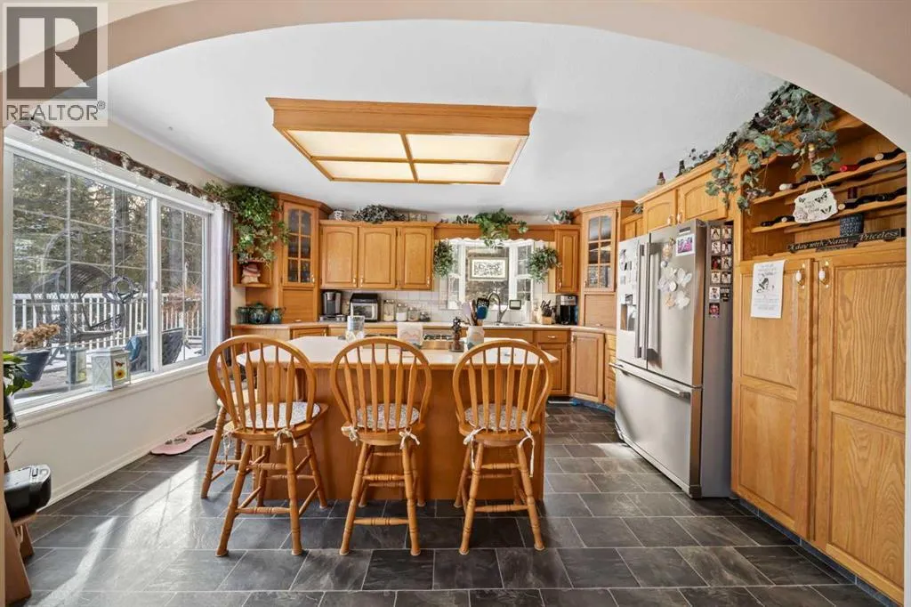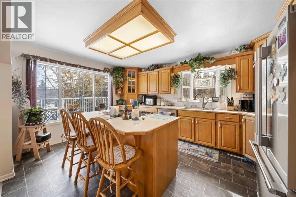 WELCOME to a peaceful country living just 5 miles east of Sundre in beautiful Mountain View County. Nestled in 1.1 acres in the quiet community of Westward Ho, this 1925 sf bilevel with 1100 sf developed basement offers space, comfort, and the charm of country life. Step inside to a bright, open concept main floor designed for everyday living and entertaining. The spacious kitchen is truly a chef's dream, featuring warm oak cabinetry, a large island with gas stove, and plenty of work space for preparing meals and staying connected with family and guests. The 3 sided gas fireplace separates the dining room and the living room, adding warmth and ambiance to the space.The home also show cases original hardwood flooring and adds that timeless character.The main level includes 2 bedrooms, 4 pc bath, hot tub room, main floor laundry and the dedicated office that could easily serve as a 3rd bedroom if desired. Downstairs you will find approximately 1100sf of developed basement space with a 2 pc bath. Perfect games room, man cave or develop a couple more bedrooms. The other part of the basement is gravel flooring , utility and storage space. Out door living is where the property shines. Summers are meant to be enjoyed on the large wrap deck with metal railing, the perfect place to catch the morning and afternoon sun and enjoy the peaceful surrounds. There are 2 gas hook ups on the deck, one for the fire pit and BBQ.The private yet open yard offers the best of both worlds, secluded enough to relax in nature while still allowing plenty of sunshine. Gardeners will love the rich garden space, green house with beautiful stone patio, and established perennial flower bed. If you are searching for a property that offers space, privacy, and the simple pleasure of country living, this is truly one of those places. The Little Red Store, (part of the subdivision) has Gas, and Liquor has all the essentials. (id:27476)
