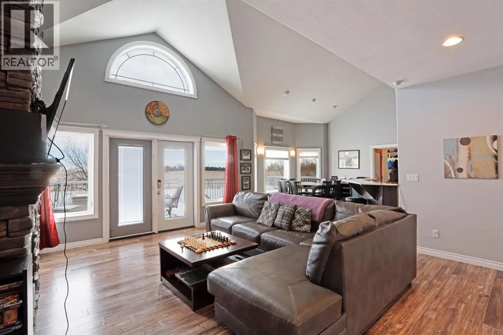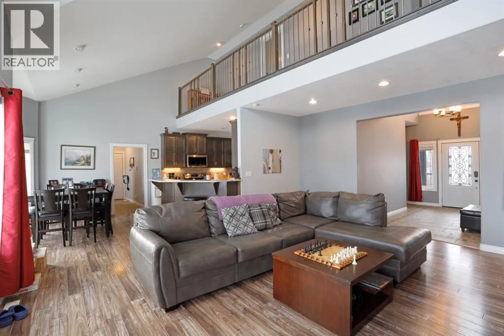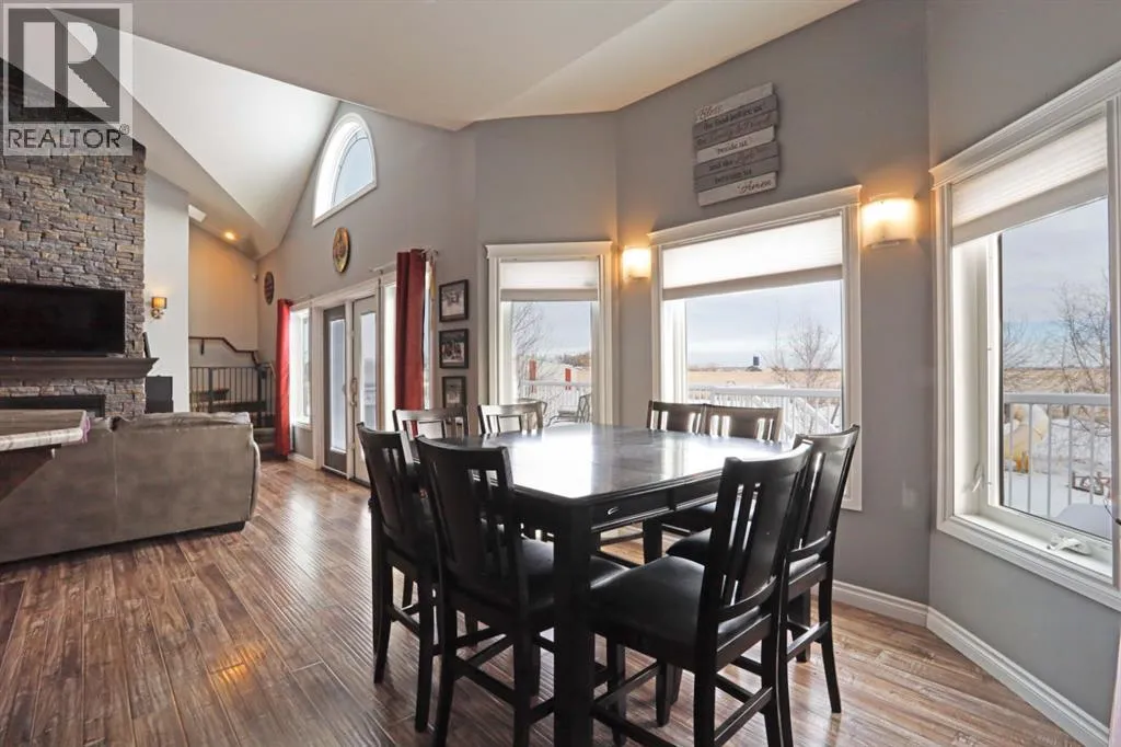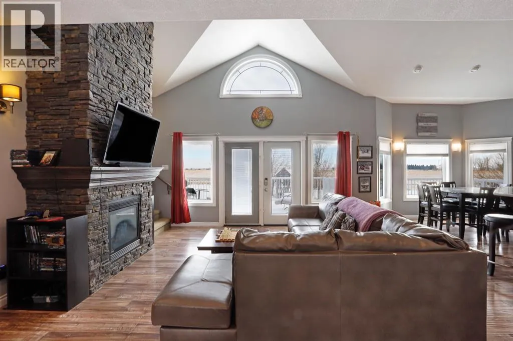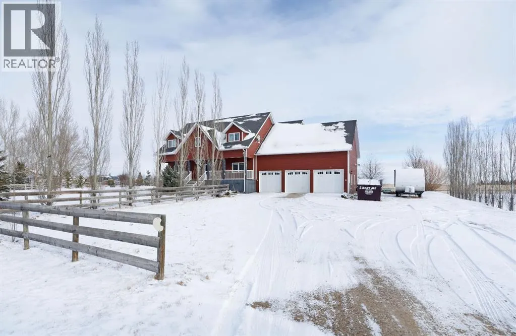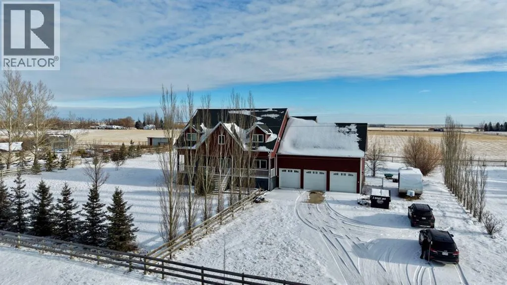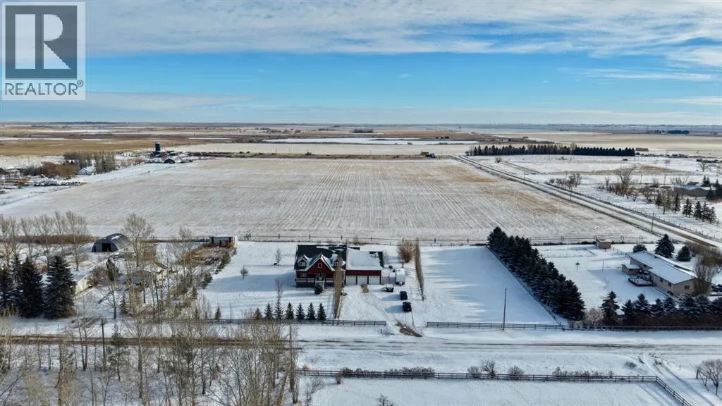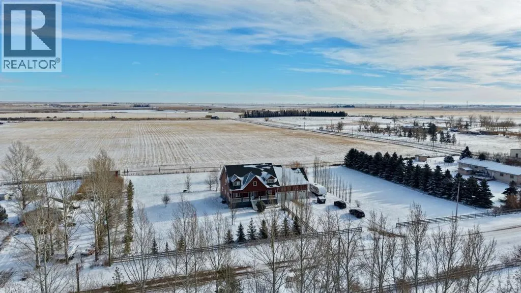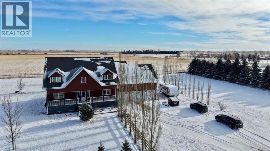 Located in the desirable Mortensen subdivision just six kilometres south of Brooks and minutes from Lake Newell, this property offers a standout blend of space, comfort and convenience. Surrounded by peaceful prairie views, the area features a nearby canal and a trout pond, creating a calm and family friendly atmosphere on a beautiful 1.66 acre parcel. This bright and inviting one and a half storey home features an attached heated triple car garage and a wonderfully designed main floor that feels open the moment you step inside. The spacious entry with its skylight sets the tone, leading into a sun filled layout with vaulted ceilings that elevate the great room. A striking floor to ceiling gas fireplace adds warmth and character, while the kitchen and dining area overlook the backyard and showcase granite countertops, espresso cabinetry, an eat up island, a walk in pantry and convenient main floor laundry just off the garage. The primary suite is located on the main level and offers a generous five piece ensuite and walk in closet, creating a relaxing retreat. A second bedroom on this floor is currently set up as an office. The full width west facing front porch is made for evening sunsets and quiet moments outside.The second floor continues to impress with two spacious bedrooms, excellent storage and a shared Jack and Jill bathroom, each with its own vanity area. This level overlooks the great room below, giving the entire space an open, airy and connected feel. The basement is built for fun and unforgettable nights in. The spacious family room comes complete with a pool table that is included, making it instantly ready for game nights and gatherings. A dedicated media or movie room brings the theatre experience home, and this level also features a bedroom, a full four piece bathroom and a utility room. Thereâs even enough room to create a second bedroom if you need more space. Step outside and enjoy everything acreage living has to offer. A large deck overlooks th e beautiful backyard and side yard, perfect for relaxing, hosting or watching the kids play. The property includes underground sprinklers, air conditioning, a natural gas BBQ line and a great play set. With open views of both sunrise and sunset, every day feels special. There is also tons of parking and RV hookups for all your toys and guests. This is acreage living at its best in a fantastic subdivision just minutes from town. (id:27476)