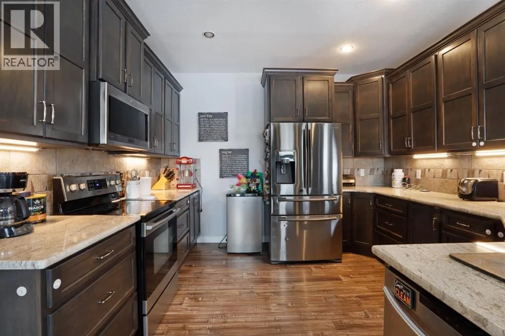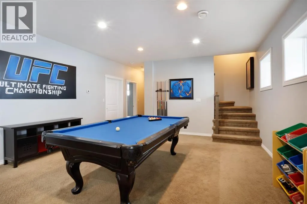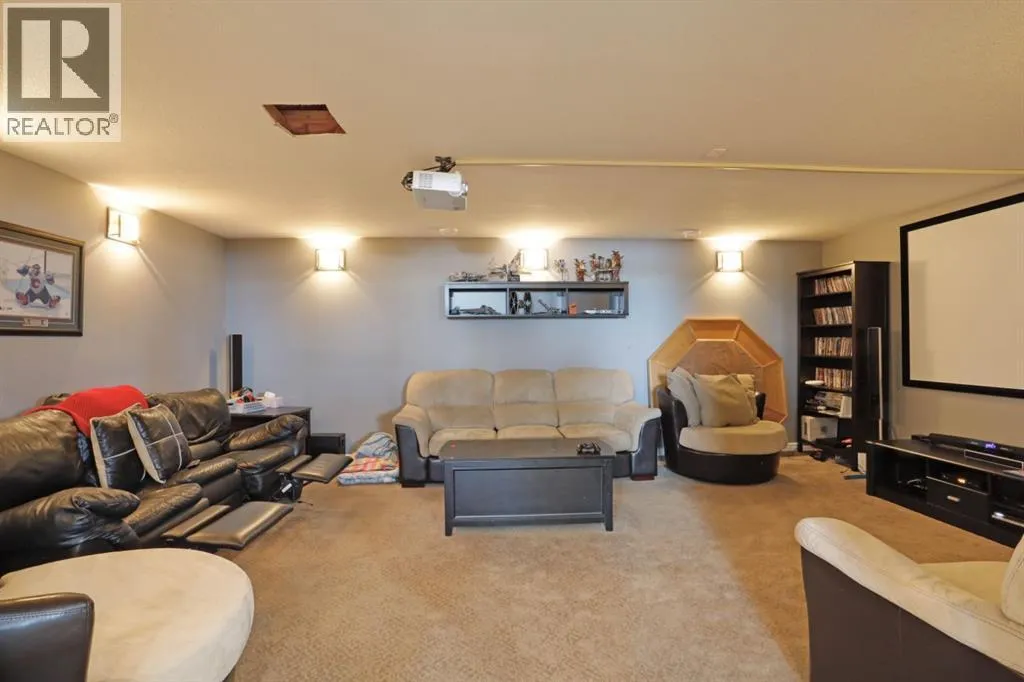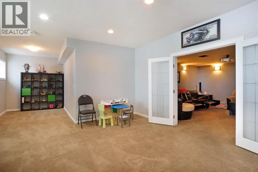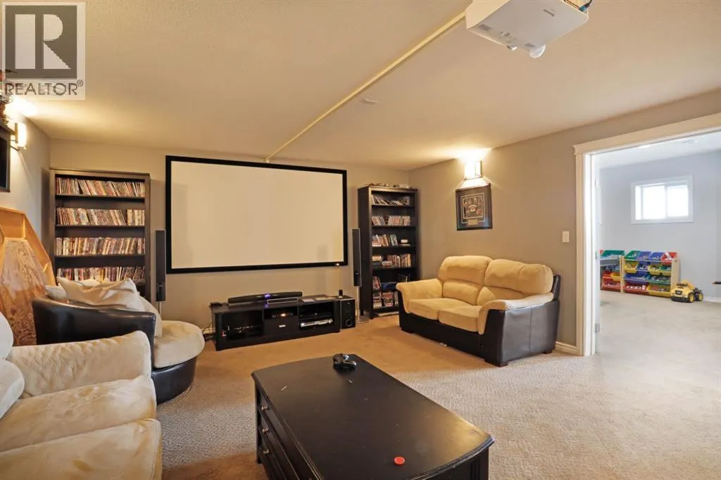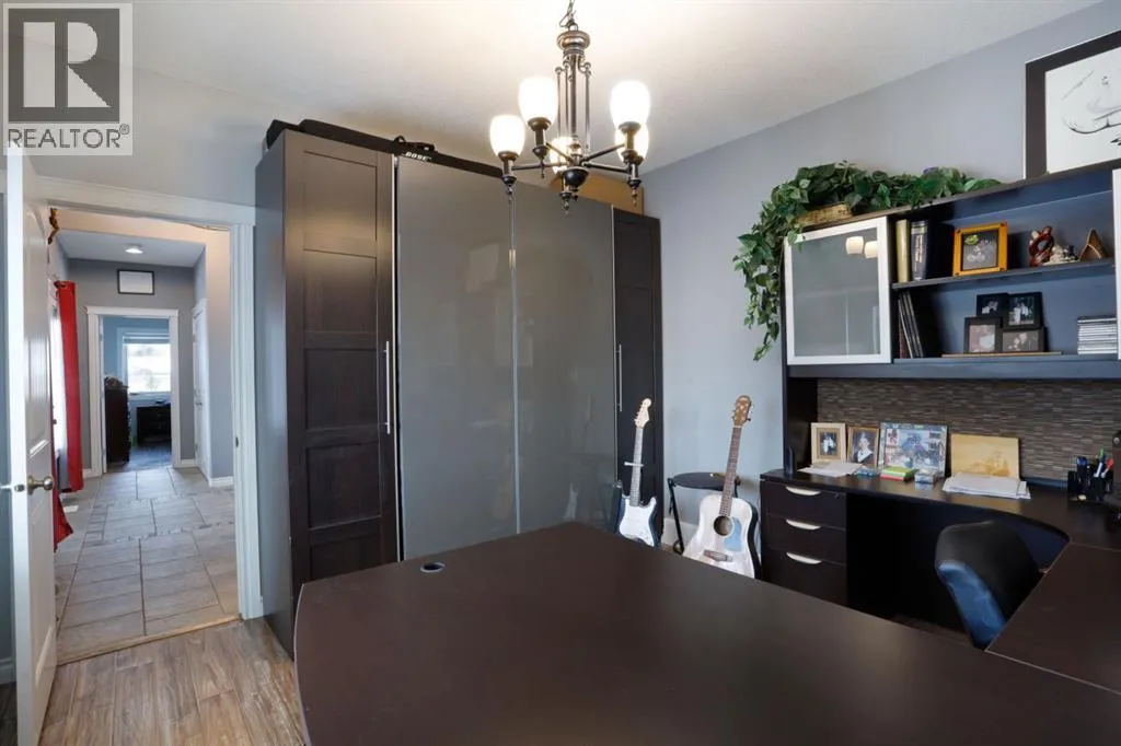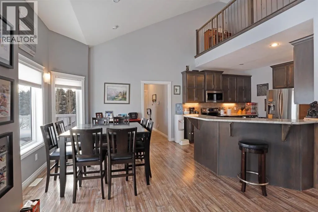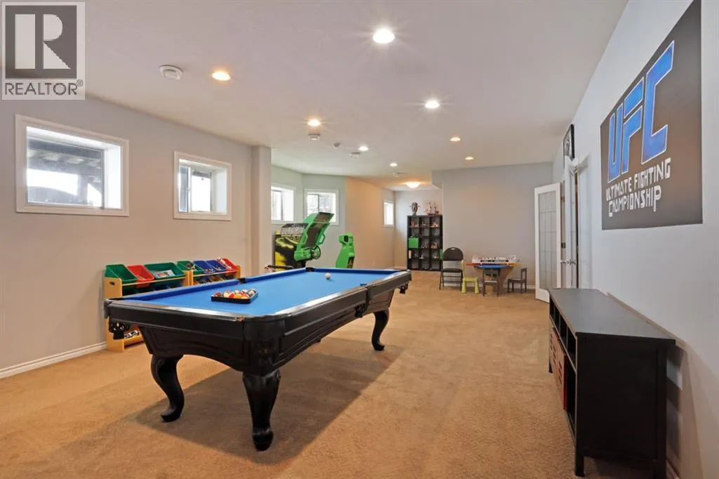 Located in the desirable Mortensen subdivision just six kilometres south of Brooks and minutes from Lake Newell, this property offers a standout blend of space, comfort and convenience. Surrounded by peaceful prairie views, the area features a nearby canal and a trout pond, creating a calm and family friendly atmosphere on a beautiful 1.66 acre parcel. This bright and inviting one and a half storey home features an attached heated triple car garage and a wonderfully designed main floor that feels open the moment you step inside. The spacious entry with its skylight sets the tone, leading into a sun filled layout with vaulted ceilings that elevate the great room. A striking floor to ceiling gas fireplace adds warmth and character, while the kitchen and dining area overlook the backyard and showcase granite countertops, espresso cabinetry, an eat up island, a walk in pantry and convenient main floor laundry just off the garage. The primary suite is located on the main level and offers a generous five piece ensuite and walk in closet, creating a relaxing retreat. A second bedroom on this floor is currently set up as an office. The full width west facing front porch is made for evening sunsets and quiet moments outside.The second floor continues to impress with two spacious bedrooms, excellent storage and a shared Jack and Jill bathroom, each with its own vanity area. This level overlooks the great room below, giving the entire space an open, airy and connected feel. The basement is built for fun and unforgettable nights in. The spacious family room comes complete with a pool table that is included, making it instantly ready for game nights and gatherings. A dedicated media or movie room brings the theatre experience home, and this level also features a bedroom, a full four piece bathroom and a utility room. Thereâs even enough room to create a second bedroom if you need more space. Step outside and enjoy everything acreage living has to offer. A large deck overlooks th e beautiful backyard and side yard, perfect for relaxing, hosting or watching the kids play. The property includes underground sprinklers, air conditioning, a natural gas BBQ line and a great play set. With open views of both sunrise and sunset, every day feels special. There is also tons of parking and RV hookups for all your toys and guests. This is acreage living at its best in a fantastic subdivision just minutes from town. (id:27476)