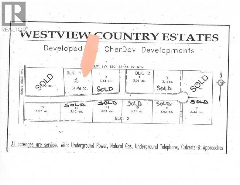 Secluded Setting !!! Located North West of Peace River in the Weberville area this lot is ready for you and your family. Only minutes to Peace Rivers West Hill this lot comes with Prepaid power, water from water co op and partly paid natural gas. Zoned CR4 with a minimum of 1200 sqft. Call today to view you lot and start planing for your dream home. (id:27476)