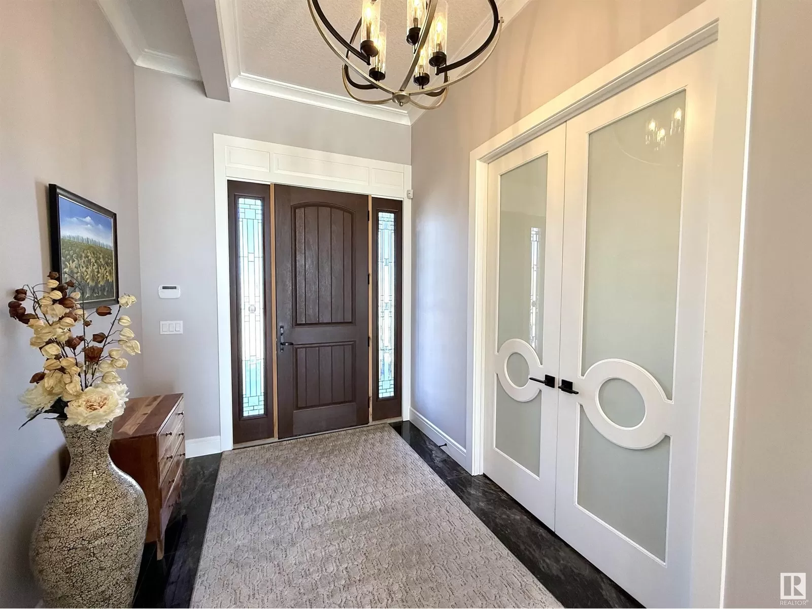 EXECUTIVE BUNGALOW & ATTACHED TRIPLE GARAGE (34Wx28L, heated, 3-pc bath) on 3.04 acres OUT OF SUBDIVISION, 10 mins to Edmonton. Custom built in 2020, this luxurious 2,960 sqft (plus full basement) home features central AC, porcelain tile & Engineered Hardwood floors , 10â ceilings and a fabulous open floor plan. Sleek living room w/ gas fireplace & built-in shelving. High-end gourmet kitchen w/ huge eat-up island, granite counters; walk-through pantry with sink & beverage cooler; dining room with deck access. Elegant ownerâs suite w/ private balcony, walk-in closet & 5-pc ensuite with soaker tub. Finishing off the main: 2nd bedroom & office w/ 5-pc Jack & Jill ensuite, laundry room w/ sink & 2-pc powder room. Upper guest suite: 4-pc ensuite, walk-in closet & balcony. Basement: 2 additional bedrooms, 4-pc bathroom, luxe rec room w/ gas fireplace & gym. Landscaped fully fenced yard, no-maintenance decks, concrete firepit area, dog run, garden boxes, paved drive w/ power gate; 100amp power for future shop. (id:27476)