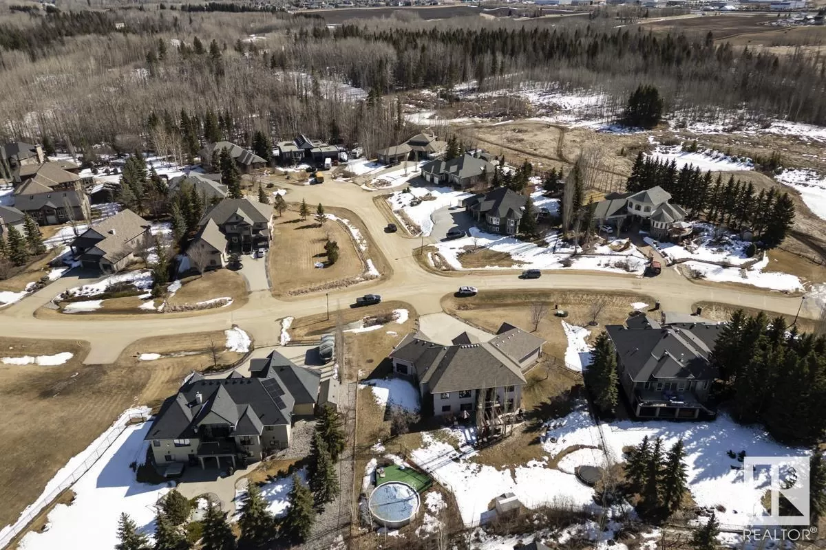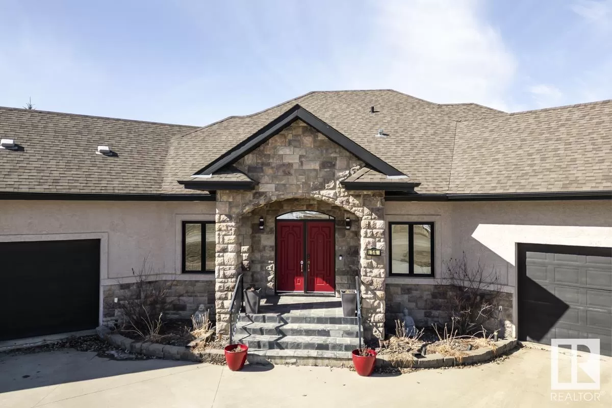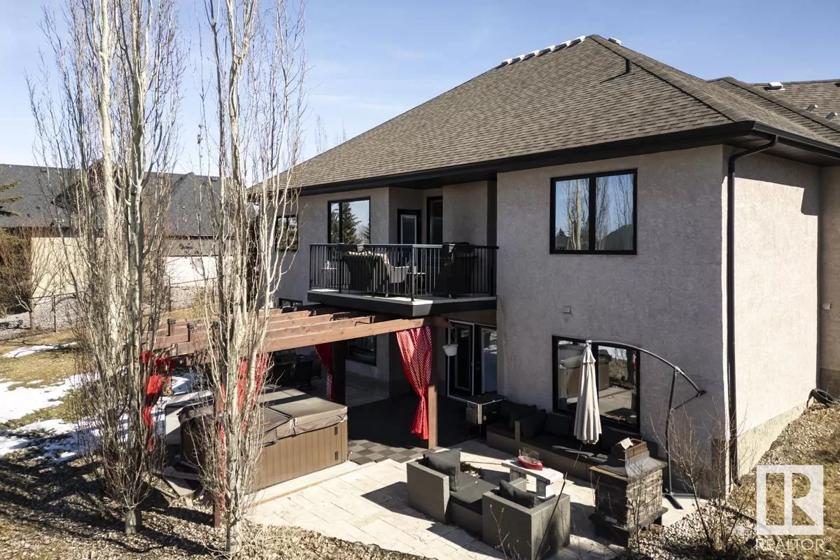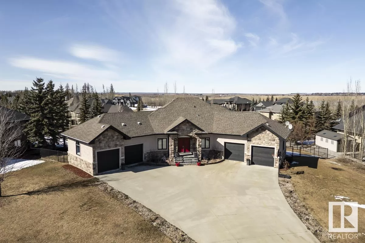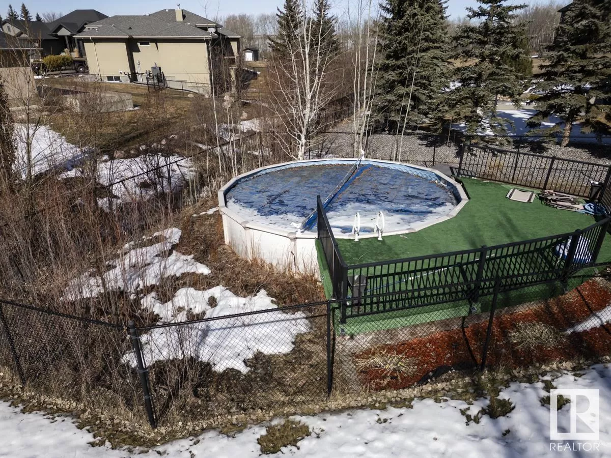 Acreage living just minutes from Edmonton! This custom-built executive home is being offered by the original owner and boasts all of the features of acreage living without a commute, and municipal services! Flanked by his and hers double garages, this beautiful 5 bedroom home was built to last! Enjoy morning coffee on the upper deck backing on to the beautiful yard which is only surpassed by the extensive concrete patio off the walk-out basement which features a hot tub, fire pit and an outdoor metal fireplace. The open main floor includes 3 big bedrooms, a large living area, an extensive breakfast bar and a lovely dining area overlooking the yard. The spacious basement includes a bar, 2 large bedrooms and a huge rec. room. One of the largest lots in the subdivision, this 0.6 acre spread also boasts an above-ground swimming pool, surrounded by another deck for those who prefer to tan. A unique opportunity to enjoy all the benefits of acreage life with municipal services and without the long commute. (id:27476)