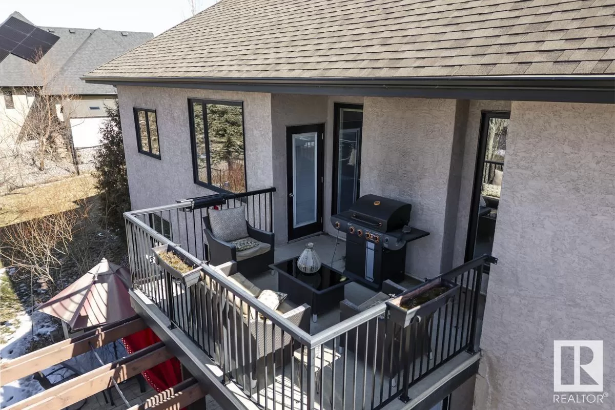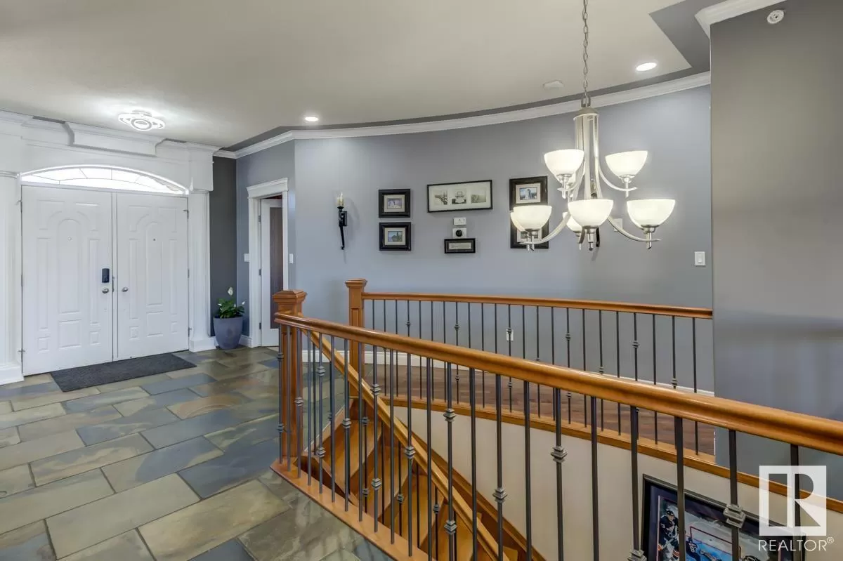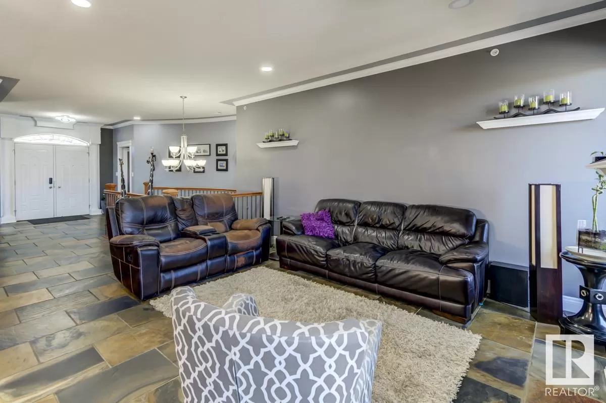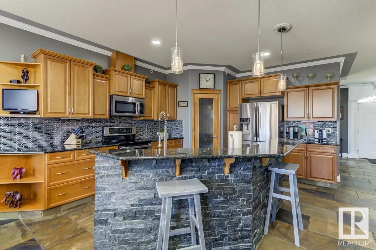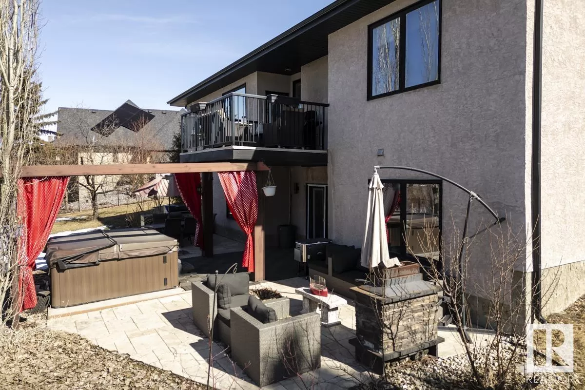 Acreage living just minutes from Edmonton! This custom-built executive home is being offered by the original owner and boasts all of the features of acreage living without a commute, and municipal services! Flanked by his and hers double garages, this beautiful 5 bedroom home was built to last! Enjoy morning coffee on the upper deck backing on to the beautiful yard which is only surpassed by the extensive concrete patio off the walk-out basement which features a hot tub, fire pit and an outdoor metal fireplace. The open main floor includes 3 big bedrooms, a large living area, an extensive breakfast bar and a lovely dining area overlooking the yard. The spacious basement includes a bar, 2 large bedrooms and a huge rec. room. One of the largest lots in the subdivision, this 0.6 acre spread also boasts an above-ground swimming pool, surrounded by another deck for those who prefer to tan. A unique opportunity to enjoy all the benefits of acreage life with municipal services and without the long commute. (id:27476)