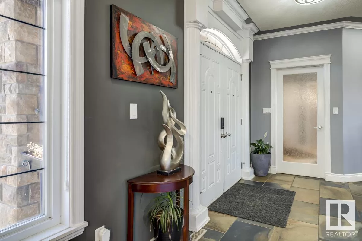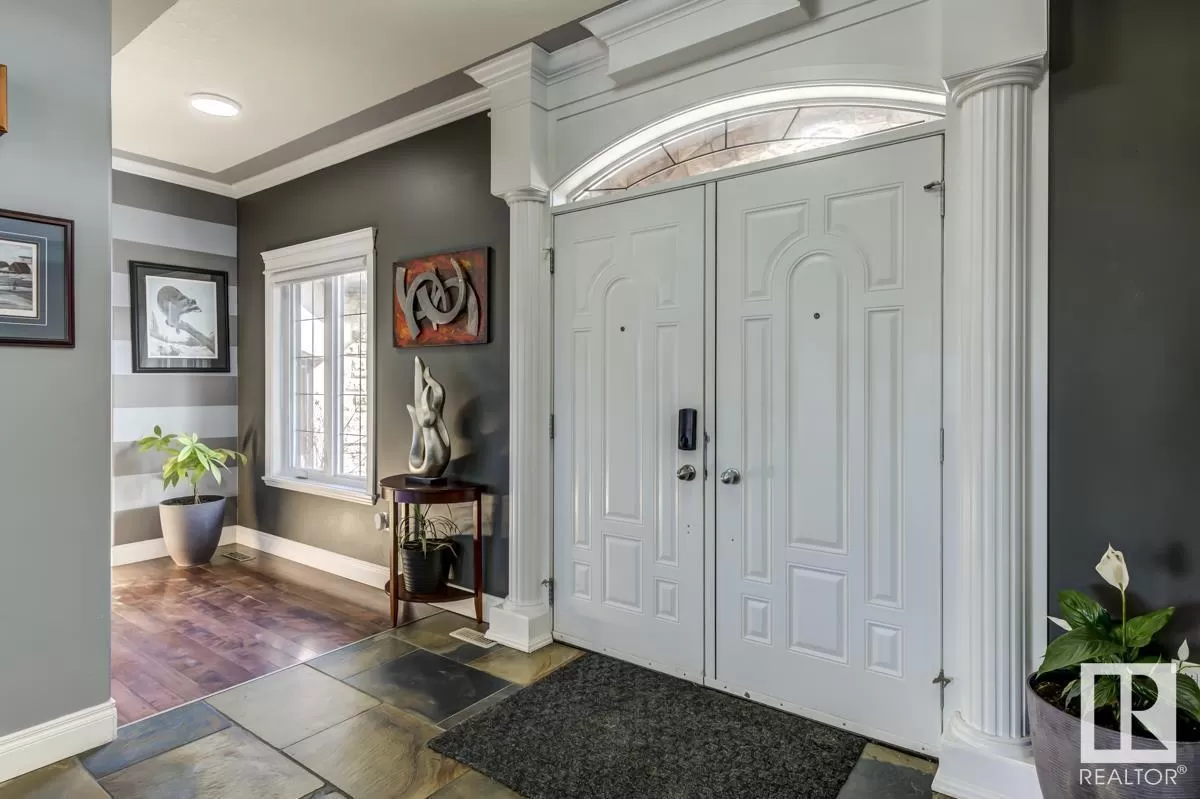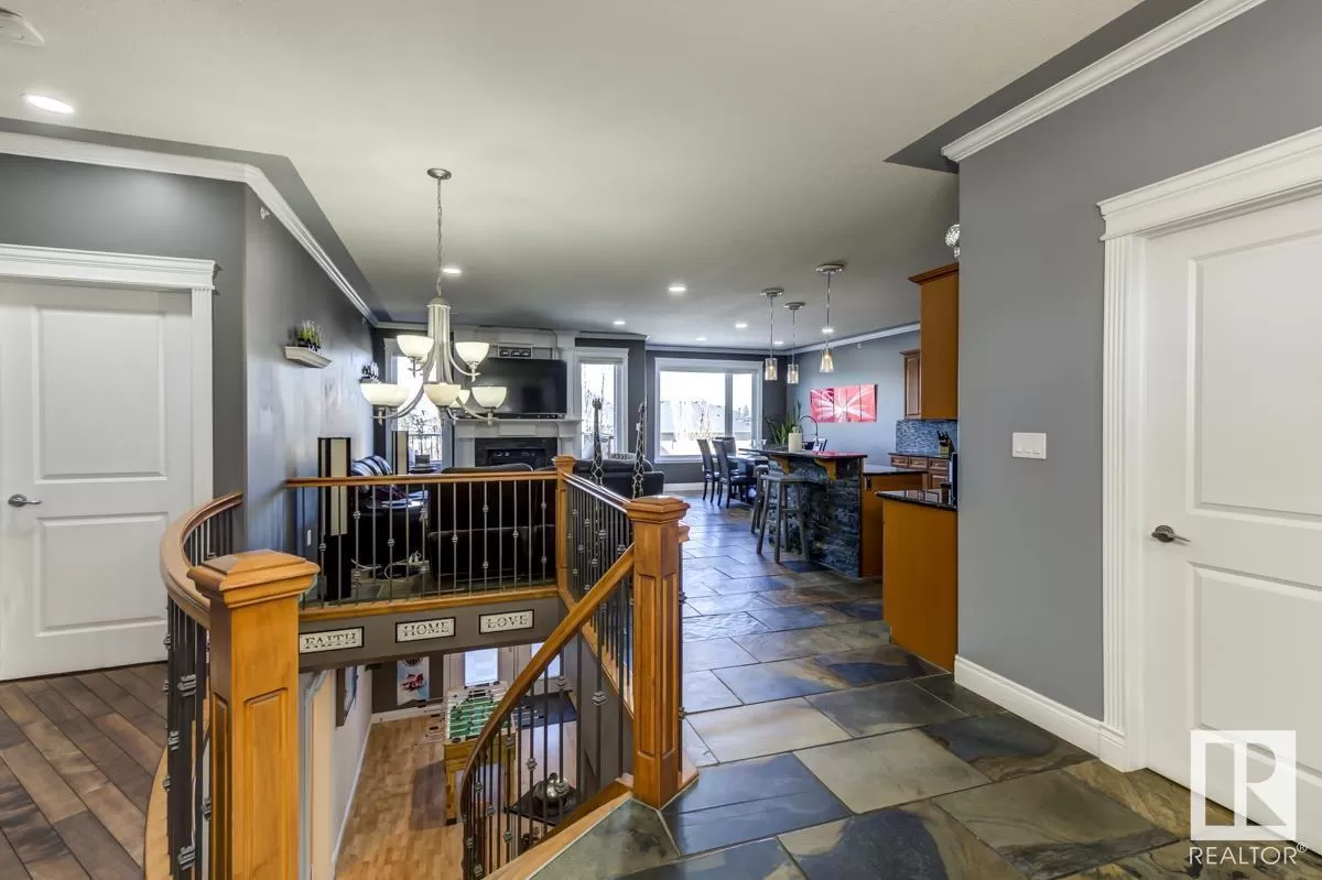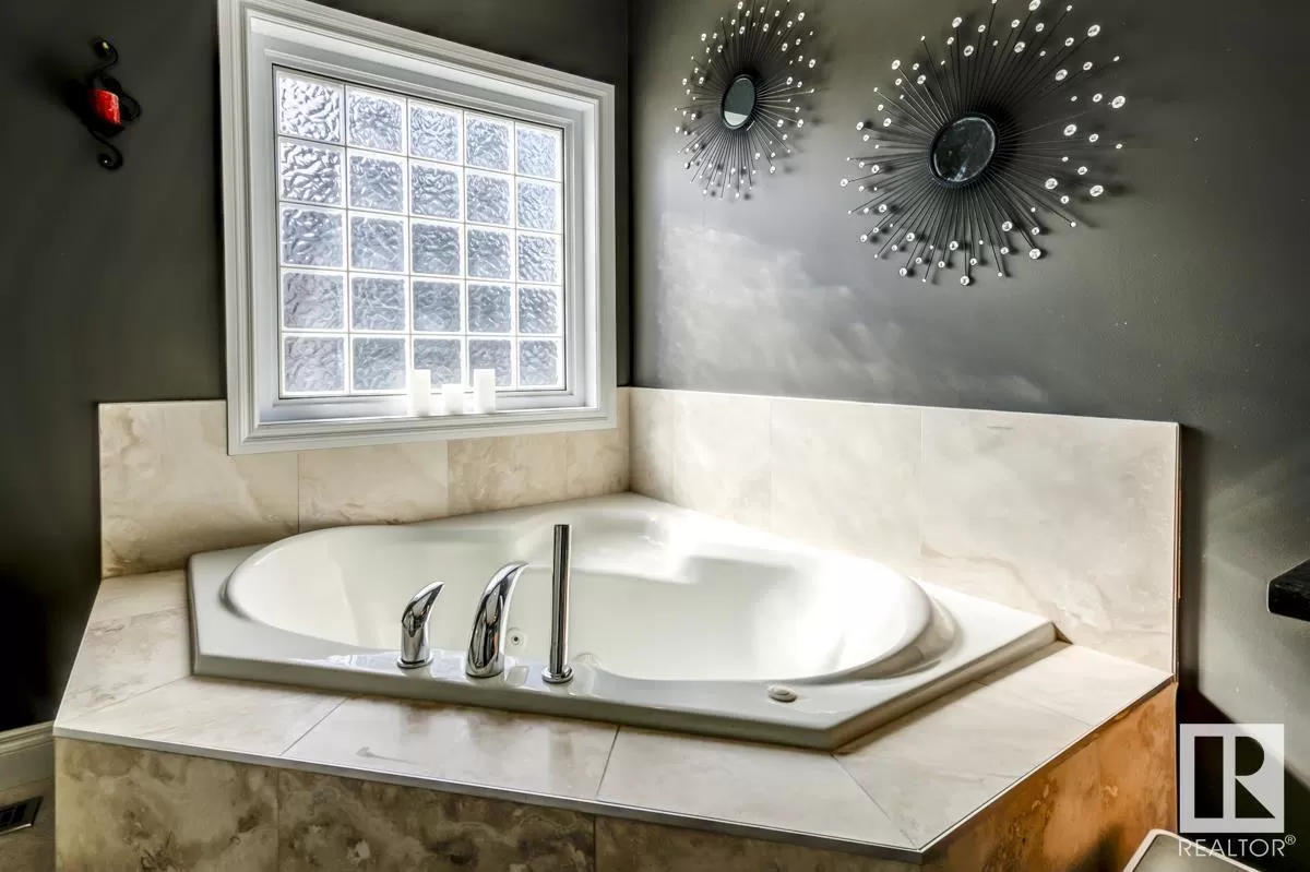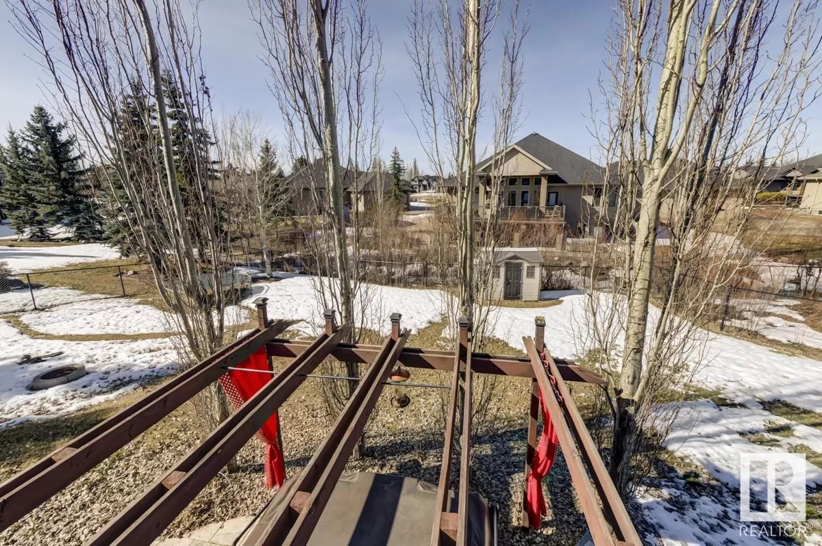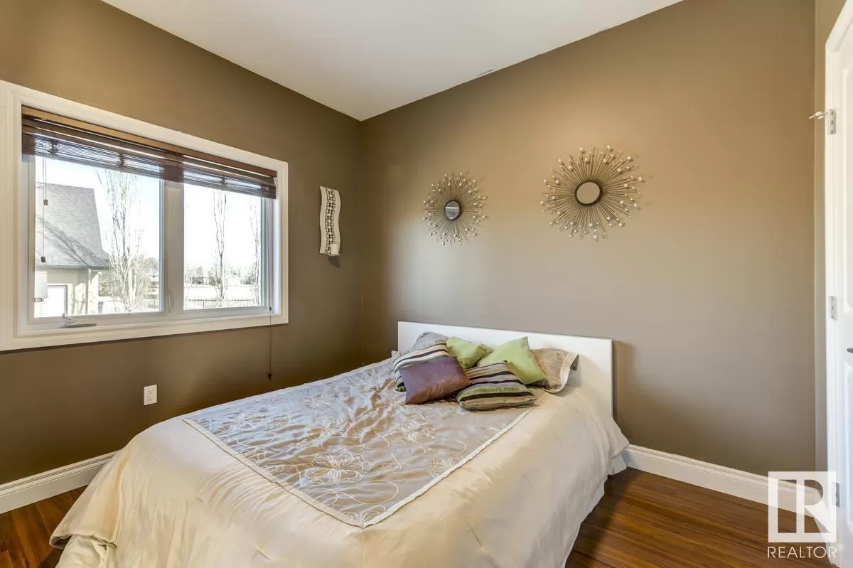 Acreage living just minutes from Edmonton! This custom-built executive home is being offered by the original owner and boasts all of the features of acreage living without a commute, and municipal services! Flanked by his and hers double garages, this beautiful 5 bedroom home was built to last! Enjoy morning coffee on the upper deck backing on to the beautiful yard which is only surpassed by the extensive concrete patio off the walk-out basement which features a hot tub, fire pit and an outdoor metal fireplace. The open main floor includes 3 big bedrooms, a large living area, an extensive breakfast bar and a lovely dining area overlooking the yard. The spacious basement includes a bar, 2 large bedrooms and a huge rec. room. One of the largest lots in the subdivision, this 0.6 acre spread also boasts an above-ground swimming pool, surrounded by another deck for those who prefer to tan. A unique opportunity to enjoy all the benefits of acreage life with municipal services and without the long commute. (id:27476)