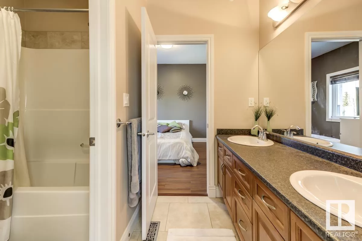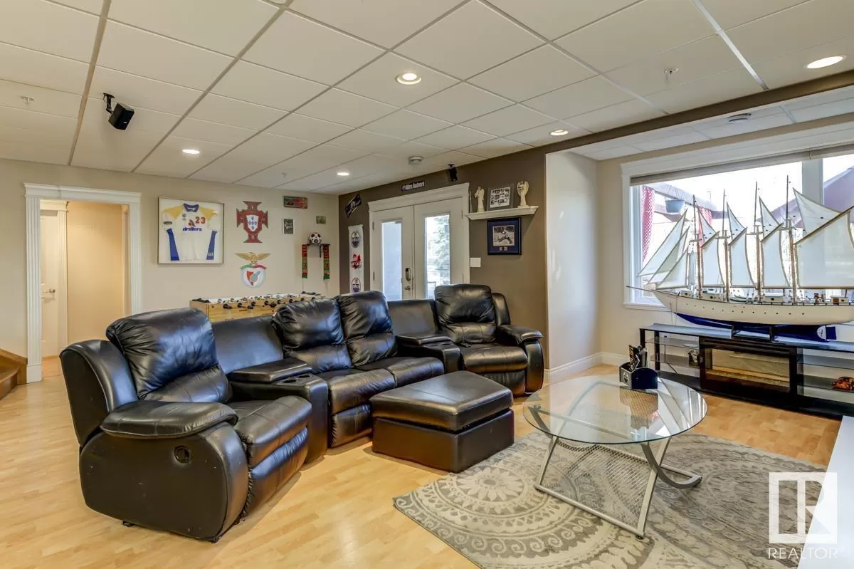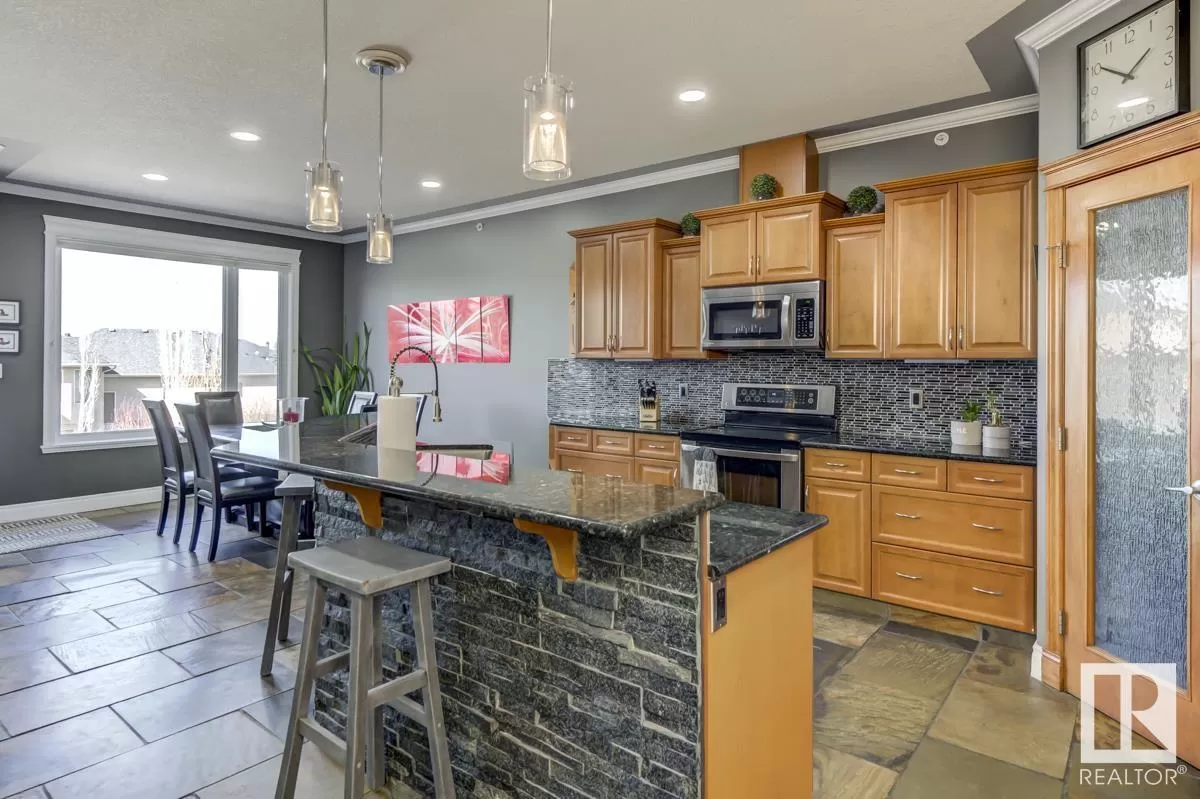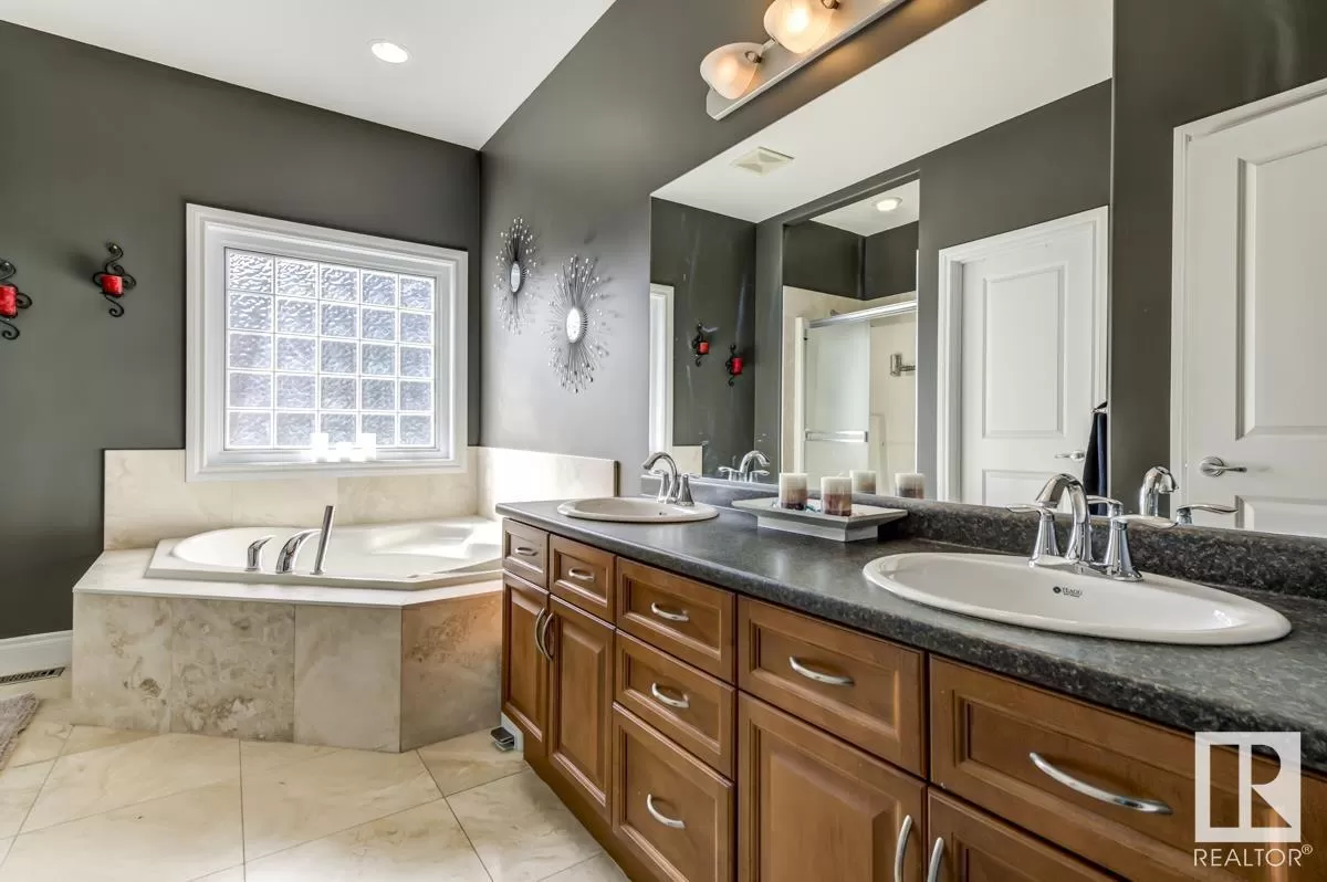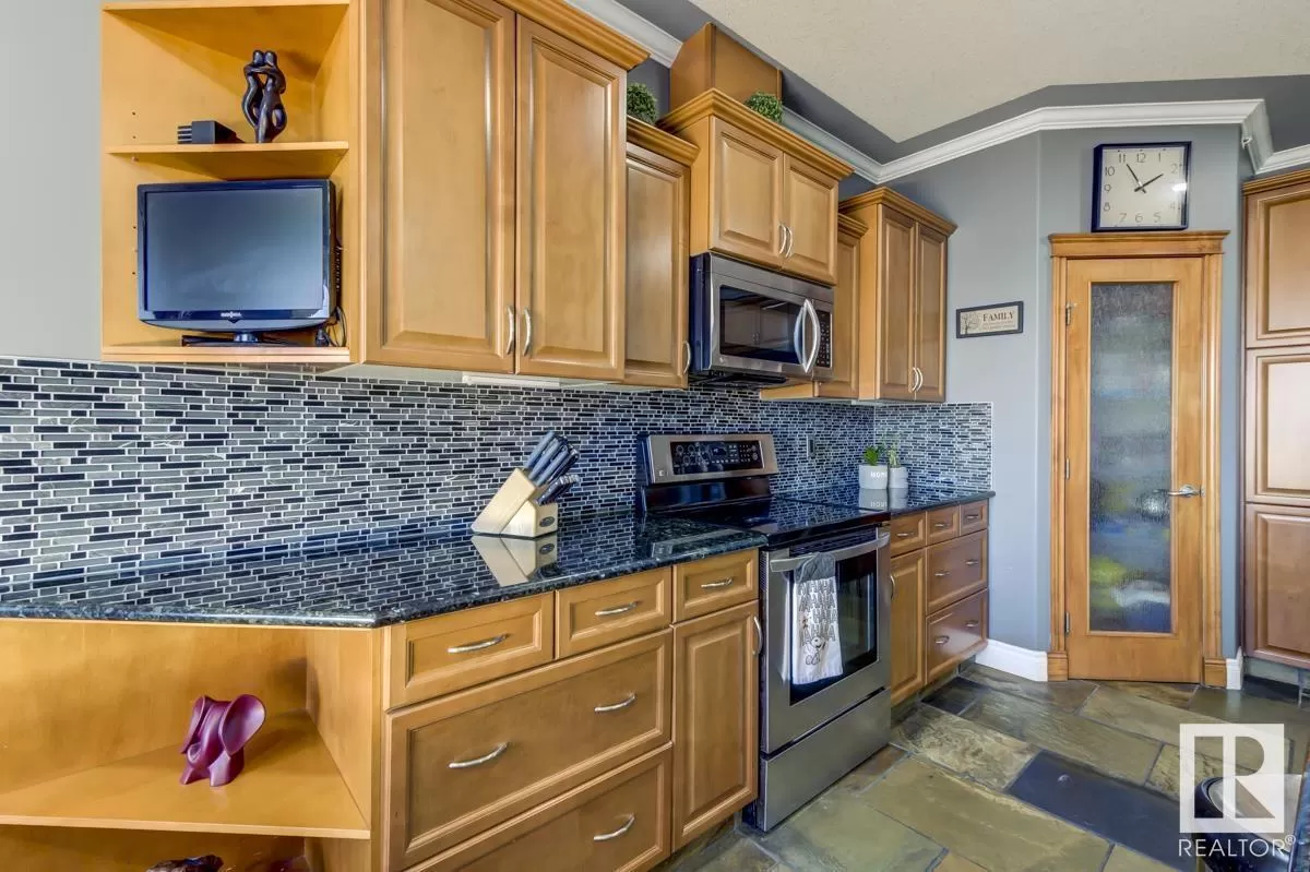 Acreage living just minutes from Edmonton! This custom-built executive home is being offered by the original owner and boasts all of the features of acreage living without a commute, and municipal services! Flanked by his and hers double garages, this beautiful 5 bedroom home was built to last! Enjoy morning coffee on the upper deck backing on to the beautiful yard which is only surpassed by the extensive concrete patio off the walk-out basement which features a hot tub, fire pit and an outdoor metal fireplace. The open main floor includes 3 big bedrooms, a large living area, an extensive breakfast bar and a lovely dining area overlooking the yard. The spacious basement includes a bar, 2 large bedrooms and a huge rec. room. One of the largest lots in the subdivision, this 0.6 acre spread also boasts an above-ground swimming pool, surrounded by another deck for those who prefer to tan. A unique opportunity to enjoy all the benefits of acreage life with municipal services and without the long commute. (id:27476)