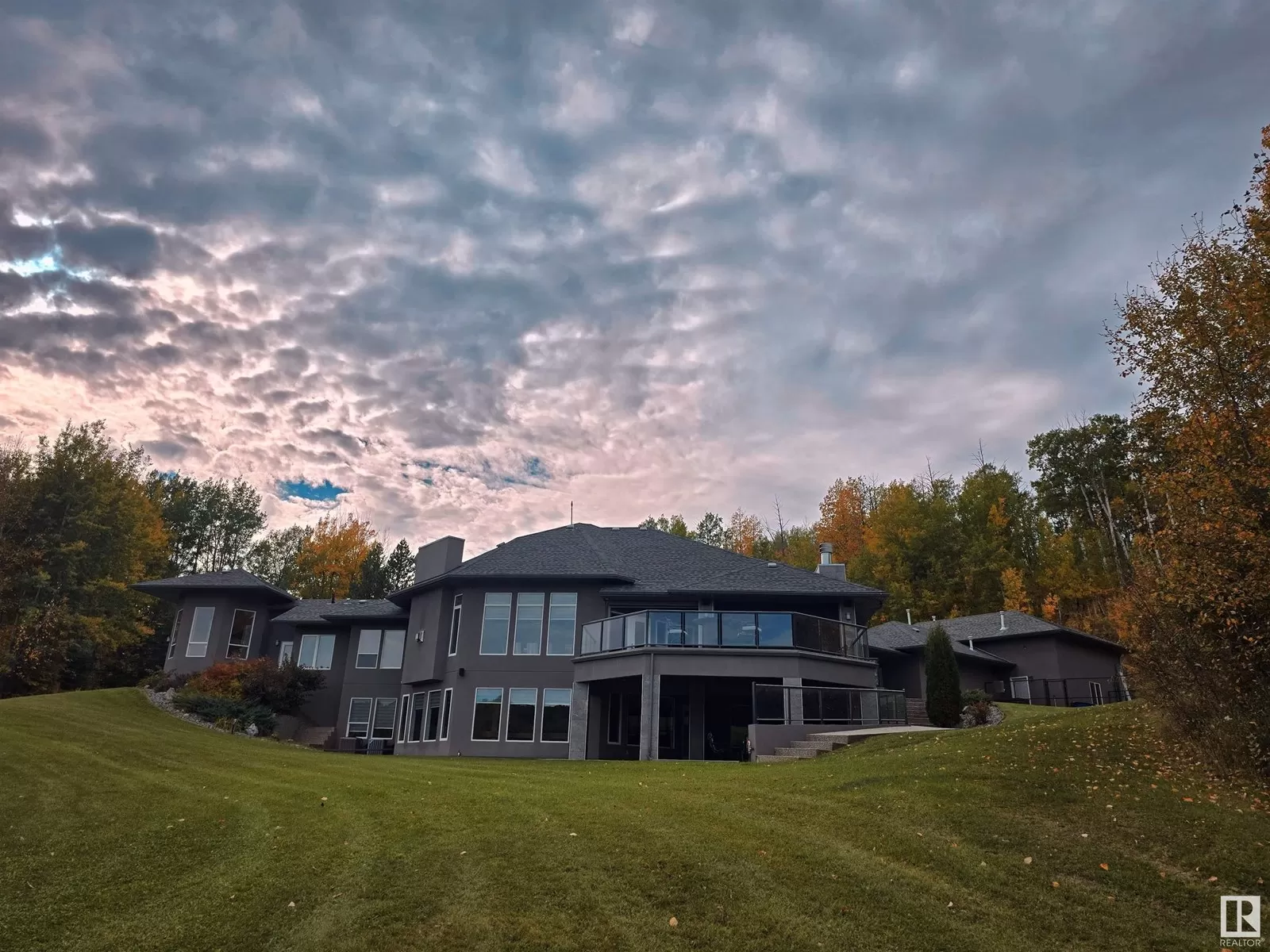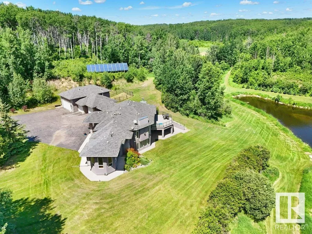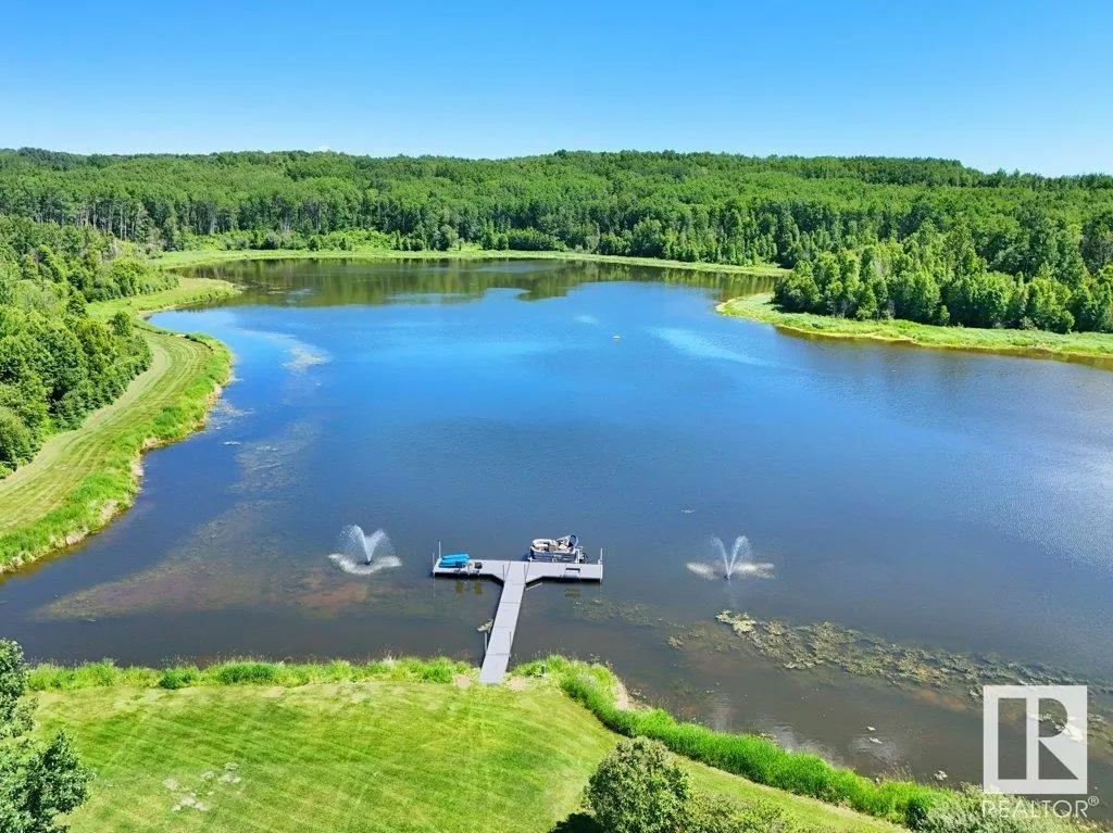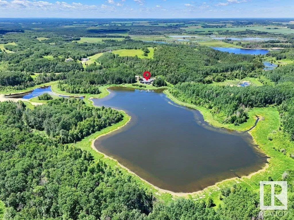 Do you want to own a lake? Well you can, 30 minutes from Edmonton - a sprawling 4,400 sq ft luxury home nestled on 160 acres of breathtaking land. Outdoors, the property offers winding quadding trails that meander through the woods and along the lake, offering adventure at every turn. The serene lake is perfect for leisurely boating, with your own dock extending out over calm water. Near the house, there's a bubbling hot tub positioned perfectly for soaking in the stunning surroundings or an outdoor fireplace to stay cozy. The home is self-sufficient, featuring a backup generator for emergencies and solar panels to run off grid. Inside, expansive living spaces offer contemporary luxury with high-end finishes at every turn. This home is a retreat from the world, providing an ideal setting for both relaxation and outdoor activities, all while ensuring that youâre living sustainably and in harmony with nature. RV hookup for visiting guests a bonus, and even a dog kennel for your furry friends. (id:27476)