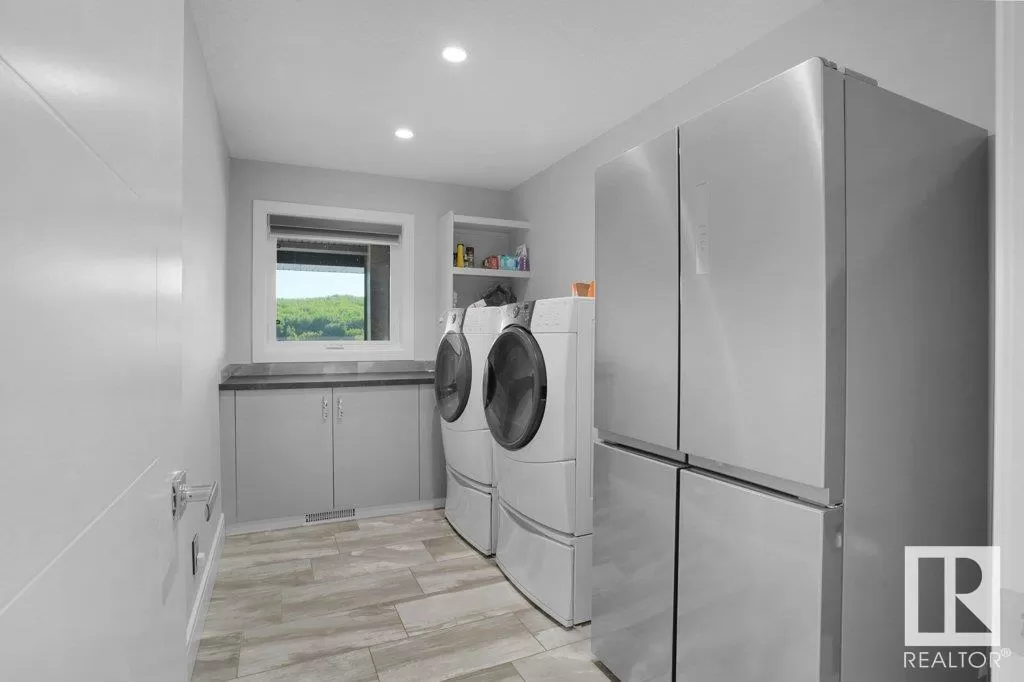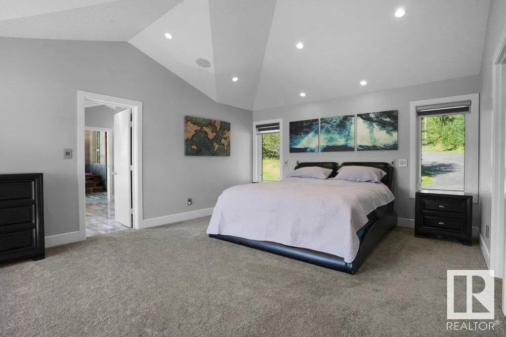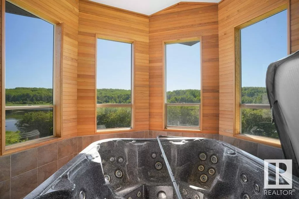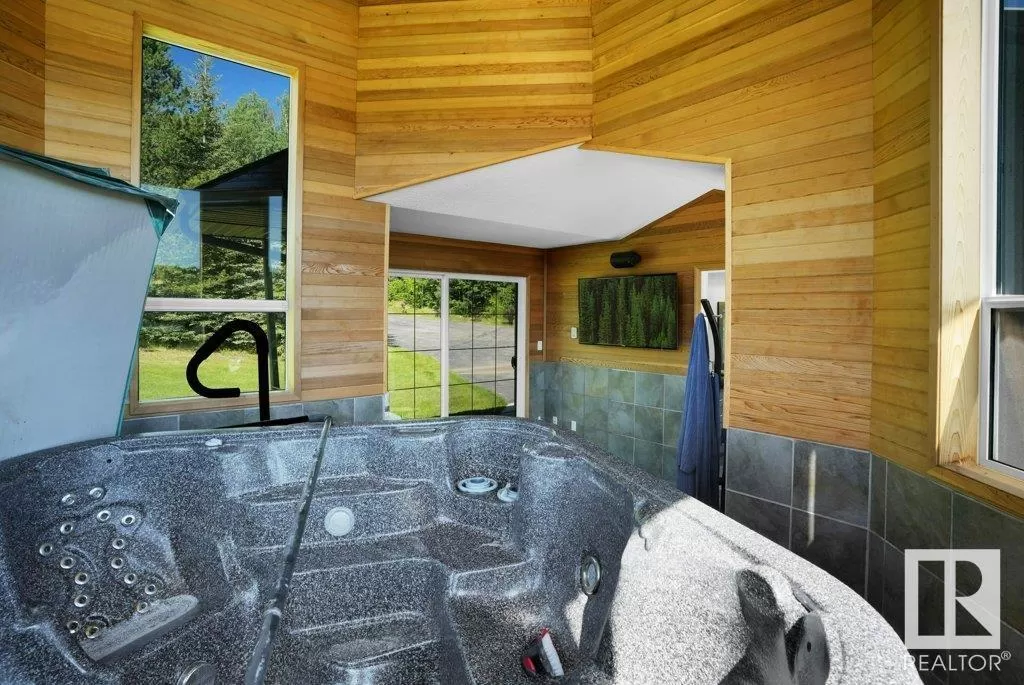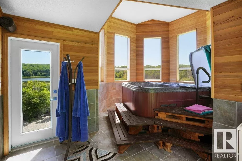 Do you want to own a lake? Well you can, 30 minutes from Edmonton - a sprawling 4,400 sq ft luxury home nestled on 160 acres of breathtaking land. Outdoors, the property offers winding quadding trails that meander through the woods and along the lake, offering adventure at every turn. The serene lake is perfect for leisurely boating, with your own dock extending out over calm water. Near the house, there's a bubbling hot tub positioned perfectly for soaking in the stunning surroundings or an outdoor fireplace to stay cozy. The home is self-sufficient, featuring a backup generator for emergencies and solar panels to run off grid. Inside, expansive living spaces offer contemporary luxury with high-end finishes at every turn. This home is a retreat from the world, providing an ideal setting for both relaxation and outdoor activities, all while ensuring that youâre living sustainably and in harmony with nature. RV hookup for visiting guests a bonus, and even a dog kennel for your furry friends. (id:27476)