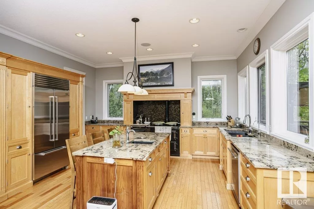 The Manor in Which We Live.This exceptional custom-built country estate is nestled on a double lot 4.1 acres in the prestigious enclave of WinterRidge Estates. Surrounded by rolling hills, & backing onto a protected environmental reserve, it offers unmatched privacy & tranquility just minutes from the city. Showcasing aprox 5900 sq ft the home features a striking natural stone exterior and was built with pride, refined craftsmanship, and timeless elegance. Inside you will find 6 spacious bedrooms and 5 luxurious bathrooms, along with richly appointed main rooms that blend comfort with sophisticated style. The heart of the home is a true gourmet kitchen, designed for both daily living & elegant entertaining. It comes with high-end appliances, custom cabinetry & generous space for gathering. Whether you are entertaining on a grand scale or unwinding in peaceful seclusion, this estate including a custom built log cabin provides a rare opportunity to enjoy estate living with quick access to the city, (id:27476)