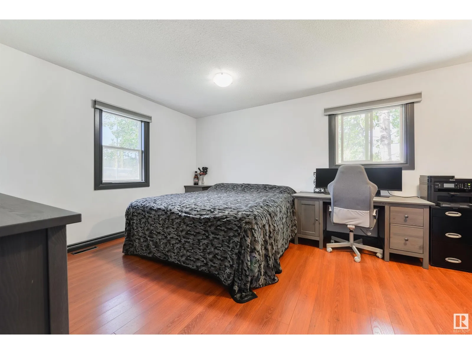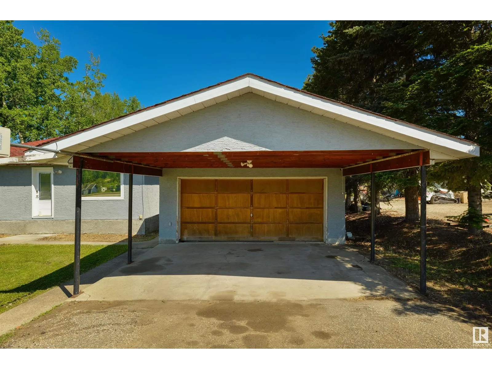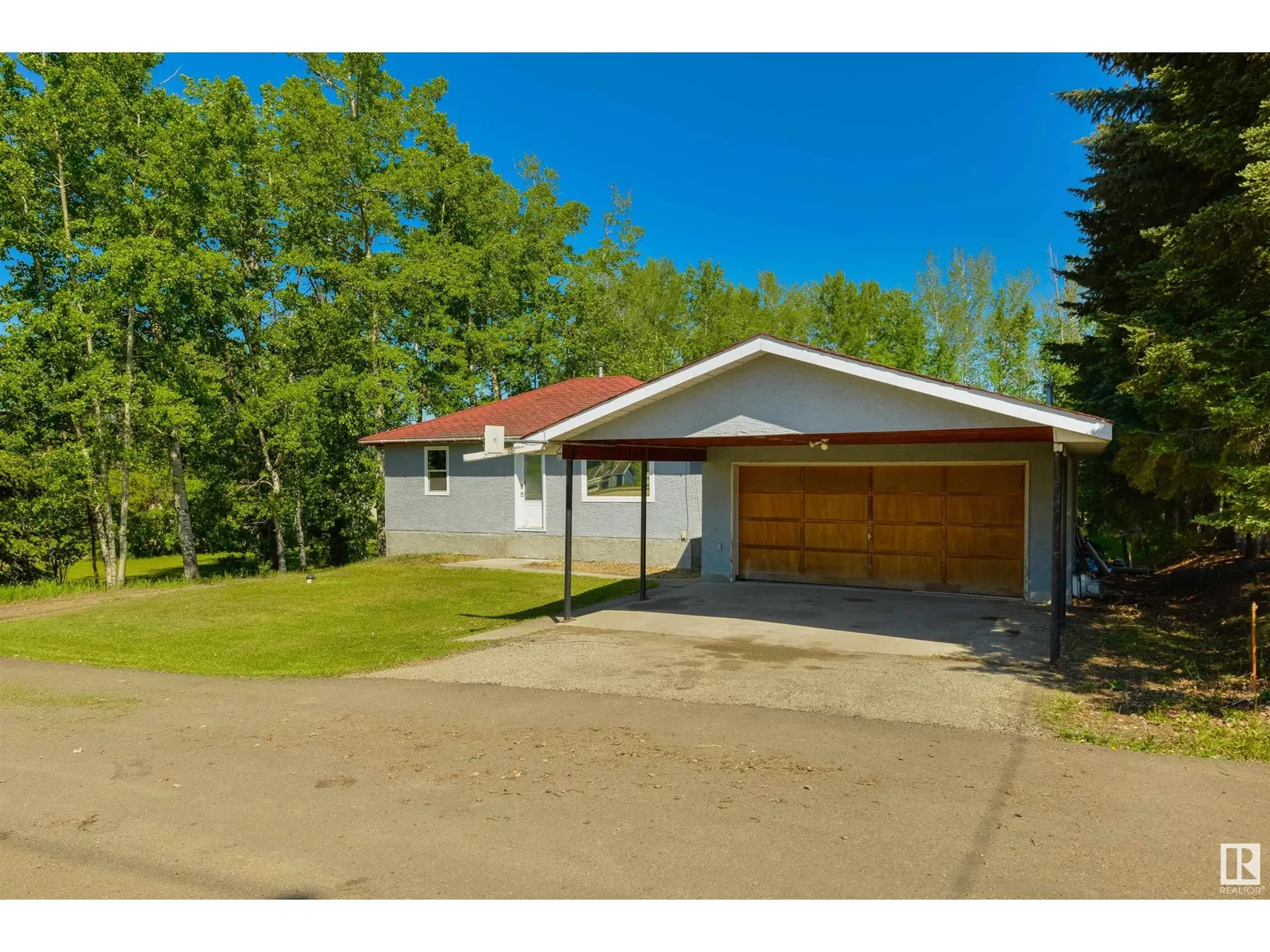 Affordable country living with easy access to the City! This charming 835 sqft bungalow is perfectly positioned on 0.26 acres, and features numerous upgrades inside & out including newer windows, doors, stucco, and exterior paint, along with upgraded electrical and new PEX plumbing lines for peace of mind. The interior highlights a bright & functional kitchen with perimeter cabinetry and a separate dinette, a cozy living room, 2 bedrooms, 1.5 baths, and a partially-finished WALK-OUT basement, ready to complete your vision! Outside you'll find a heated and oversized double-detached garage with 220V breaker & receptacle for welding, a mature treed border for privacy, and easy access to Hwy 16 â making commuting to any location a breeze. (id:27476)