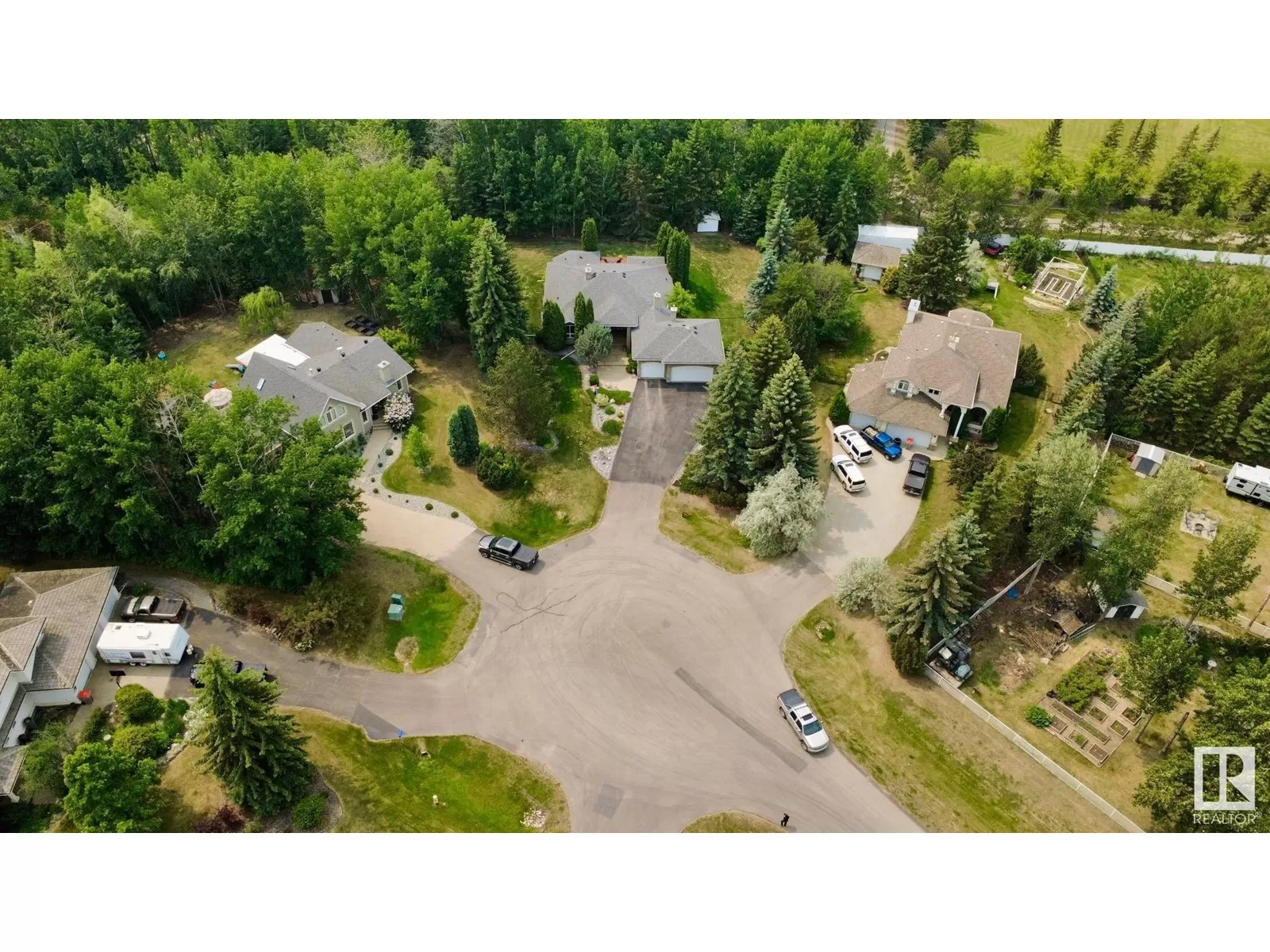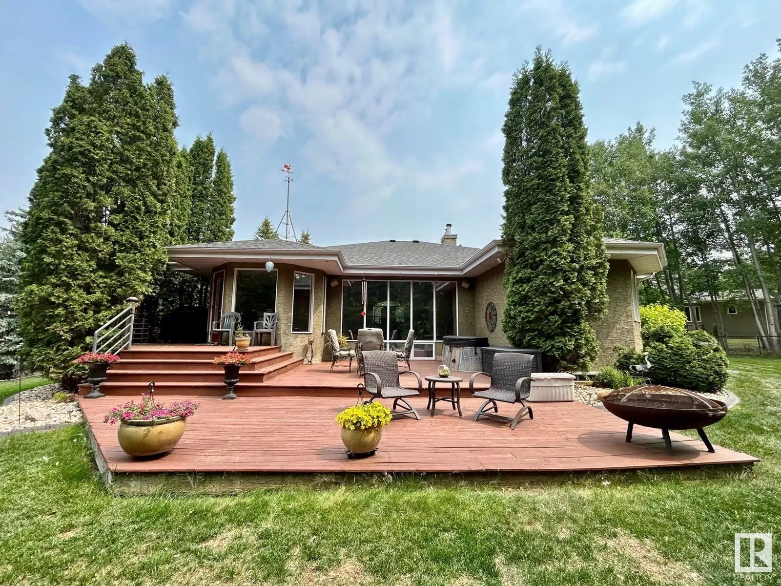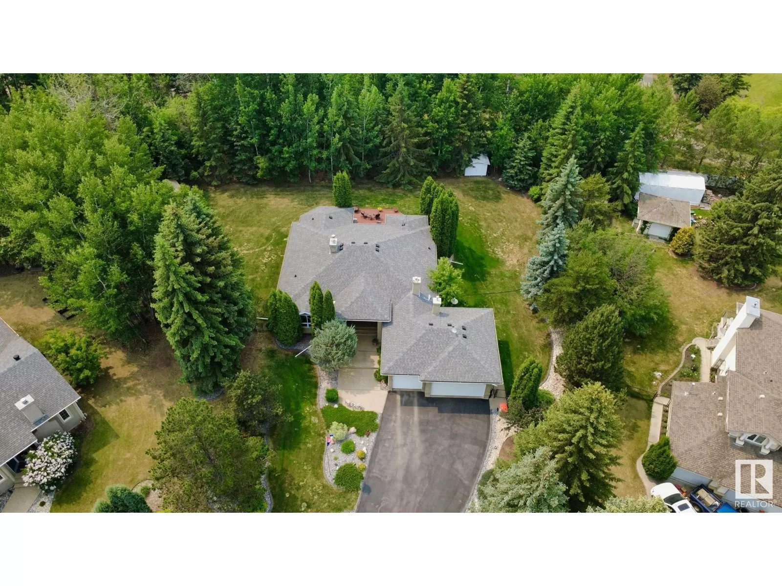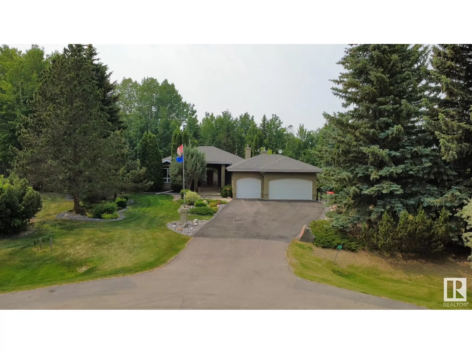 Private, peaceful country residential acreage minutes from Edmonton in prestigious Helenslea Heath. Minutes from Glendale golf course and Acheson Business Park. Custom- built executive bungalow with attached, heated, triple garage on .75-acre, fenced, pie shape lot. East facing front, low maintenance landscaping, mature trees and 85-foot driveway. Three sheds, tiered deck and 2-person hot tub. West facing back looks out onto county reserve. This stunning home has five bedrooms and four bathrooms. Open floor plan, exotic granite counters, solid hardwood floors, stainless steel appliances and large walk in pantry. Walk in closets in main level bedrooms with solid wood shelves and organizers. Large mudroom with two closets and bench seat storage. Vaulted ceiling, floor to ceiling windows and gas fireplace bring natural light and warmth into this home. Huge laundry room, wet bar, valor fireplace, steam shower and luxury vinyl plank flooring on fully finished lower level. Major Upgrades by owner 2011-2025. (id:27476)