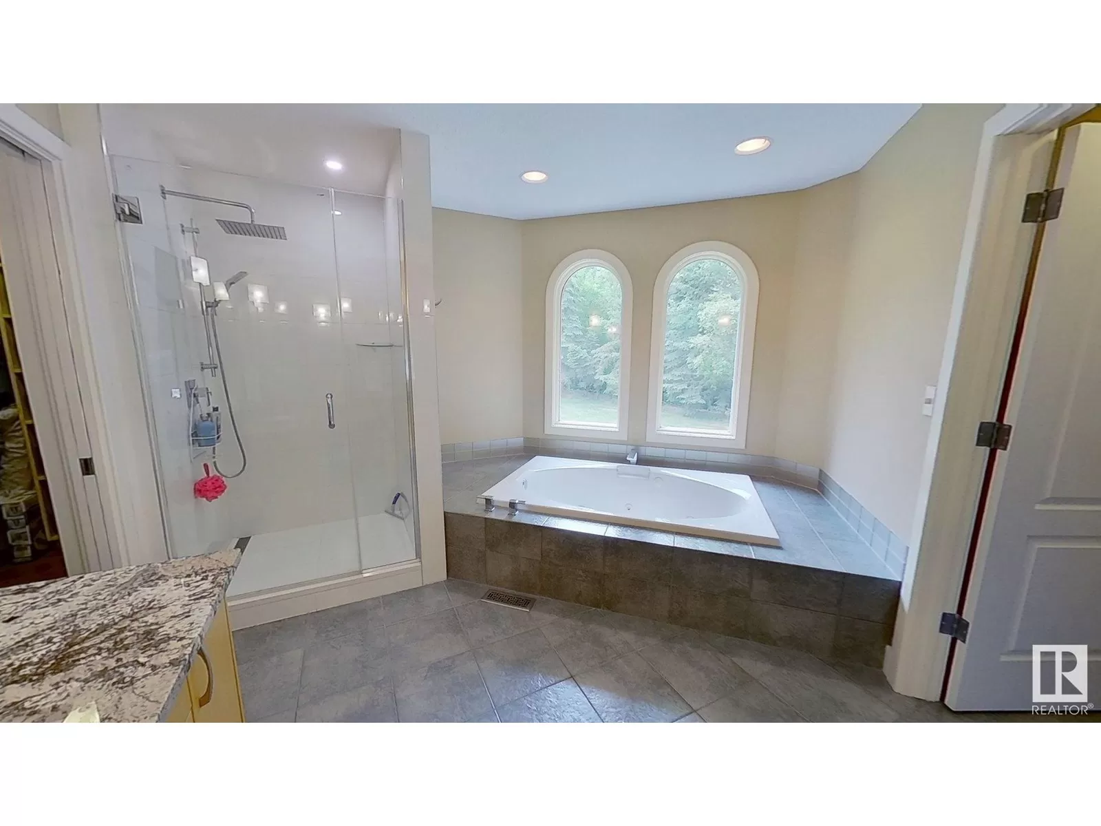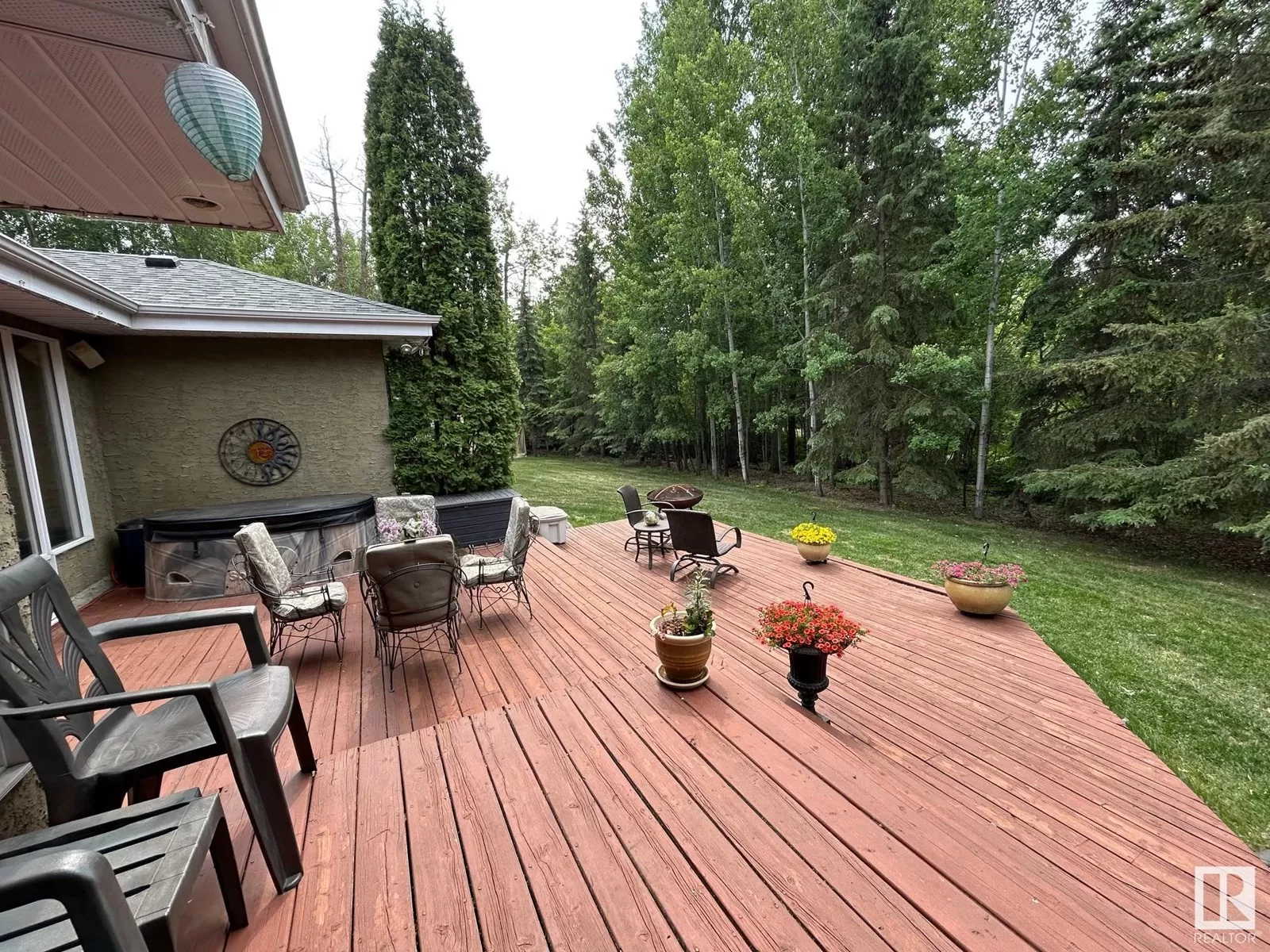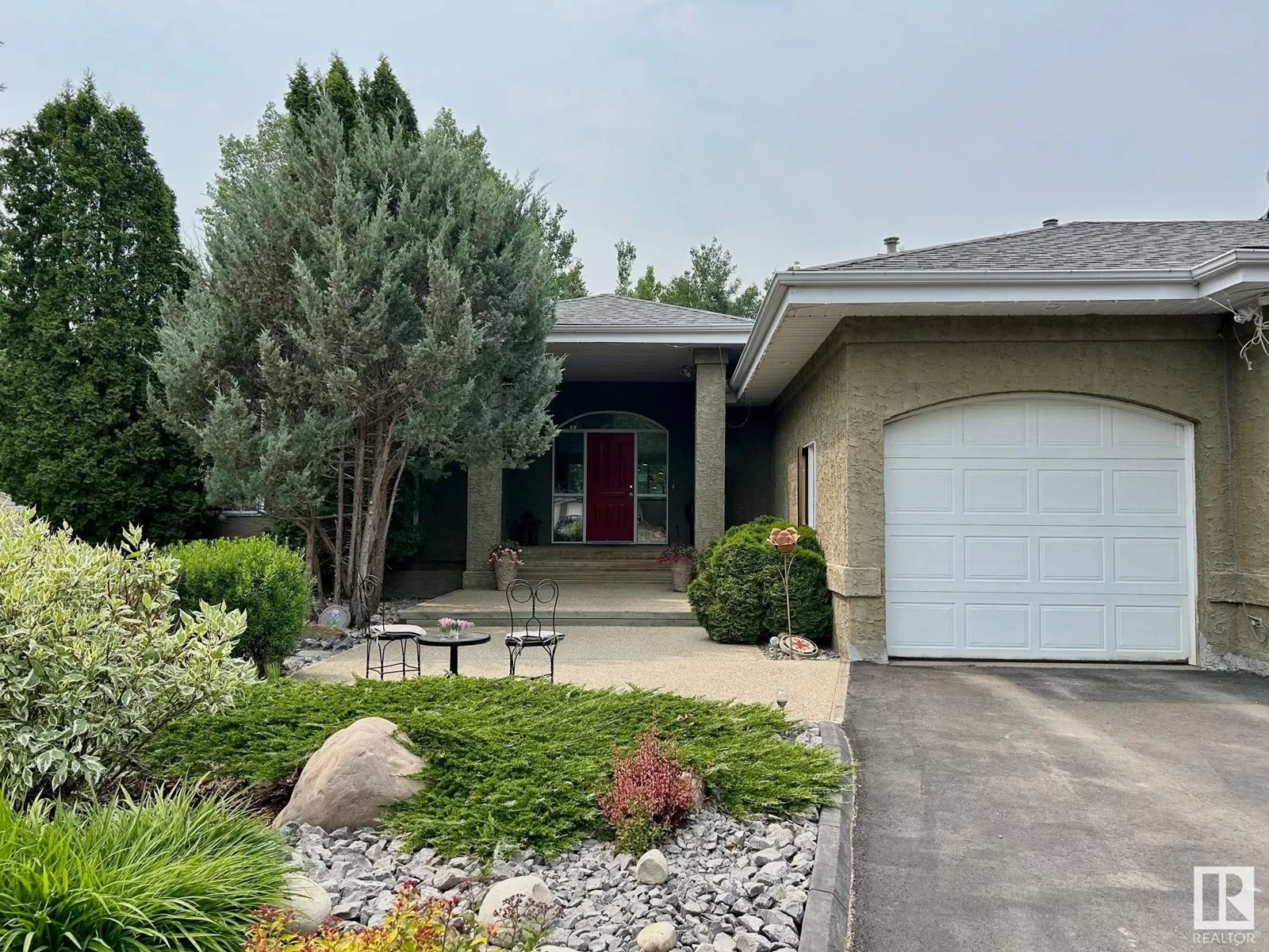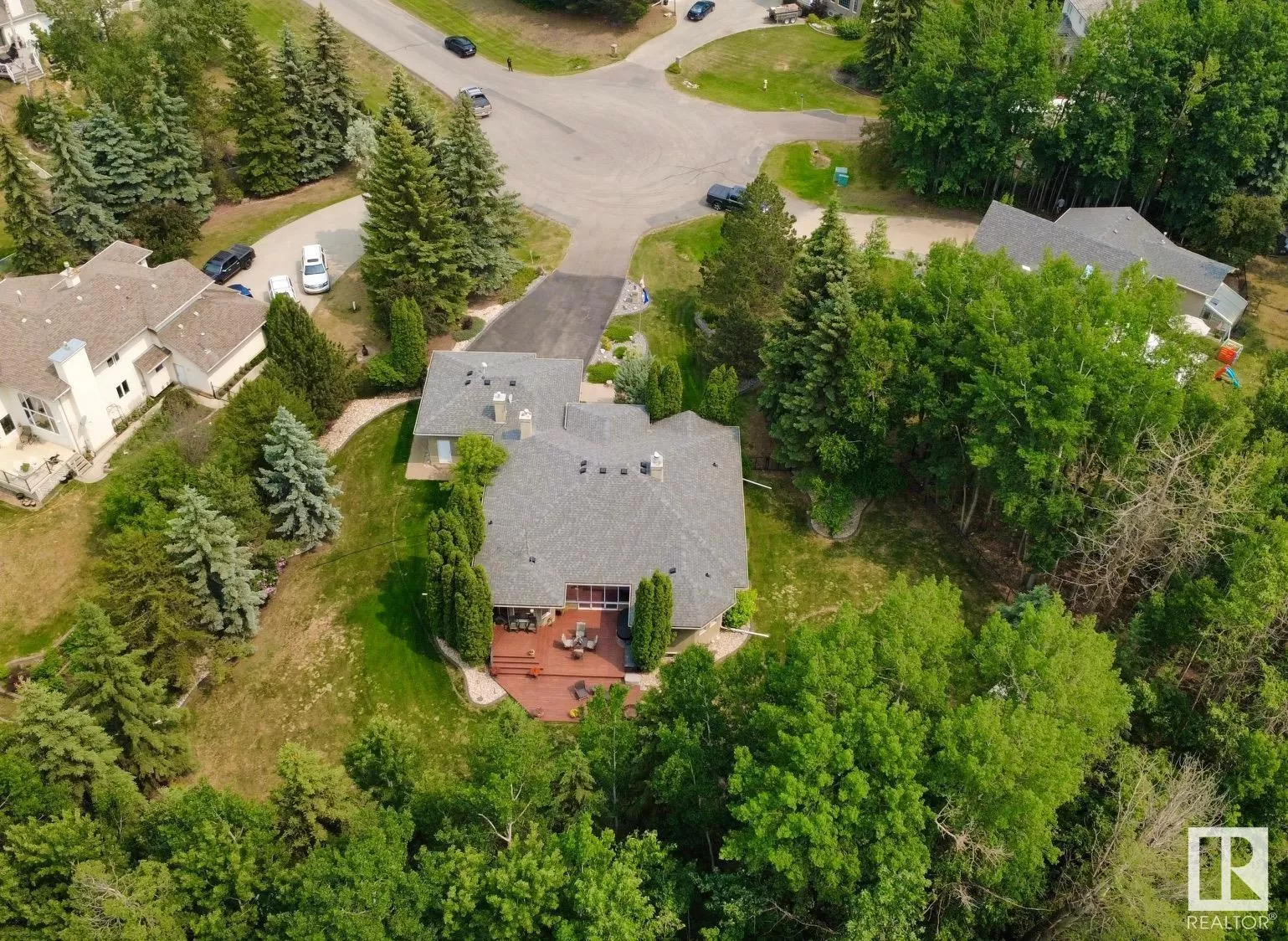 Private, peaceful country residential acreage minutes from Edmonton in prestigious Helenslea Heath. Minutes from Glendale golf course and Acheson Business Park. Custom- built executive bungalow with attached, heated, triple garage on .75-acre, fenced, pie shape lot. East facing front, low maintenance landscaping, mature trees and 85-foot driveway. Three sheds, tiered deck and 2-person hot tub. West facing back looks out onto county reserve. This stunning home has five bedrooms and four bathrooms. Open floor plan, exotic granite counters, solid hardwood floors, stainless steel appliances and large walk in pantry. Walk in closets in main level bedrooms with solid wood shelves and organizers. Large mudroom with two closets and bench seat storage. Vaulted ceiling, floor to ceiling windows and gas fireplace bring natural light and warmth into this home. Huge laundry room, wet bar, valor fireplace, steam shower and luxury vinyl plank flooring on fully finished lower level. Major Upgrades by owner 2011-2025. (id:27476)
