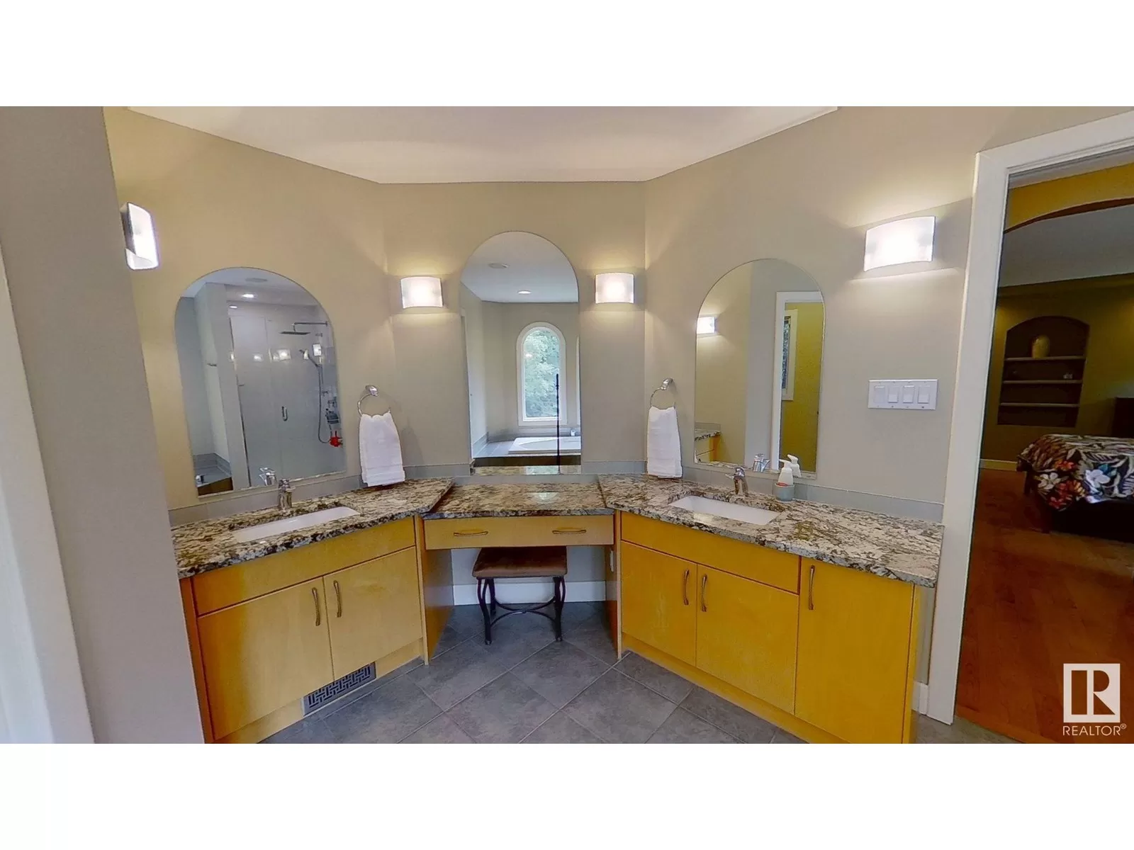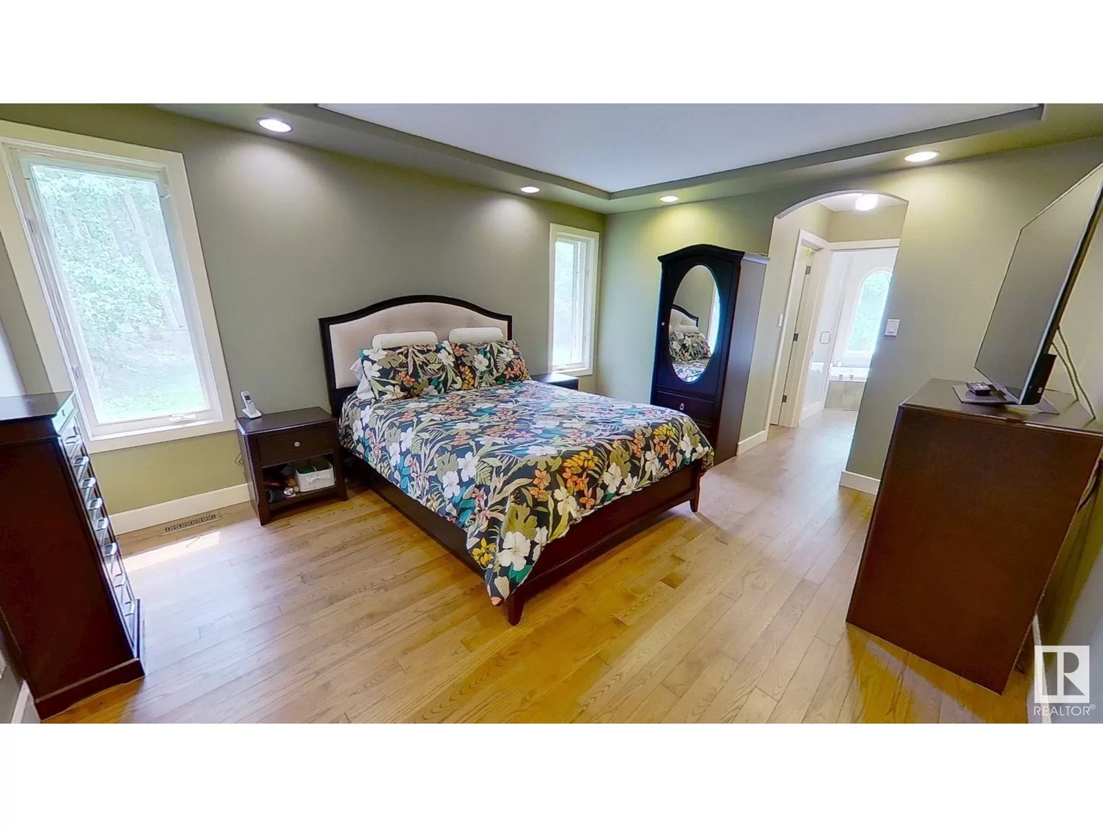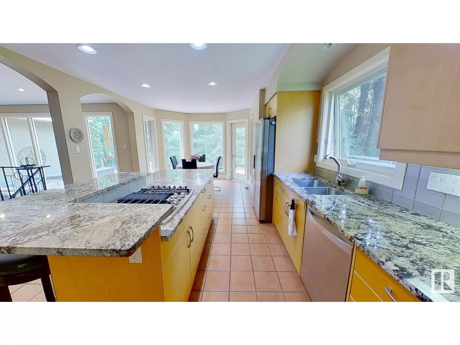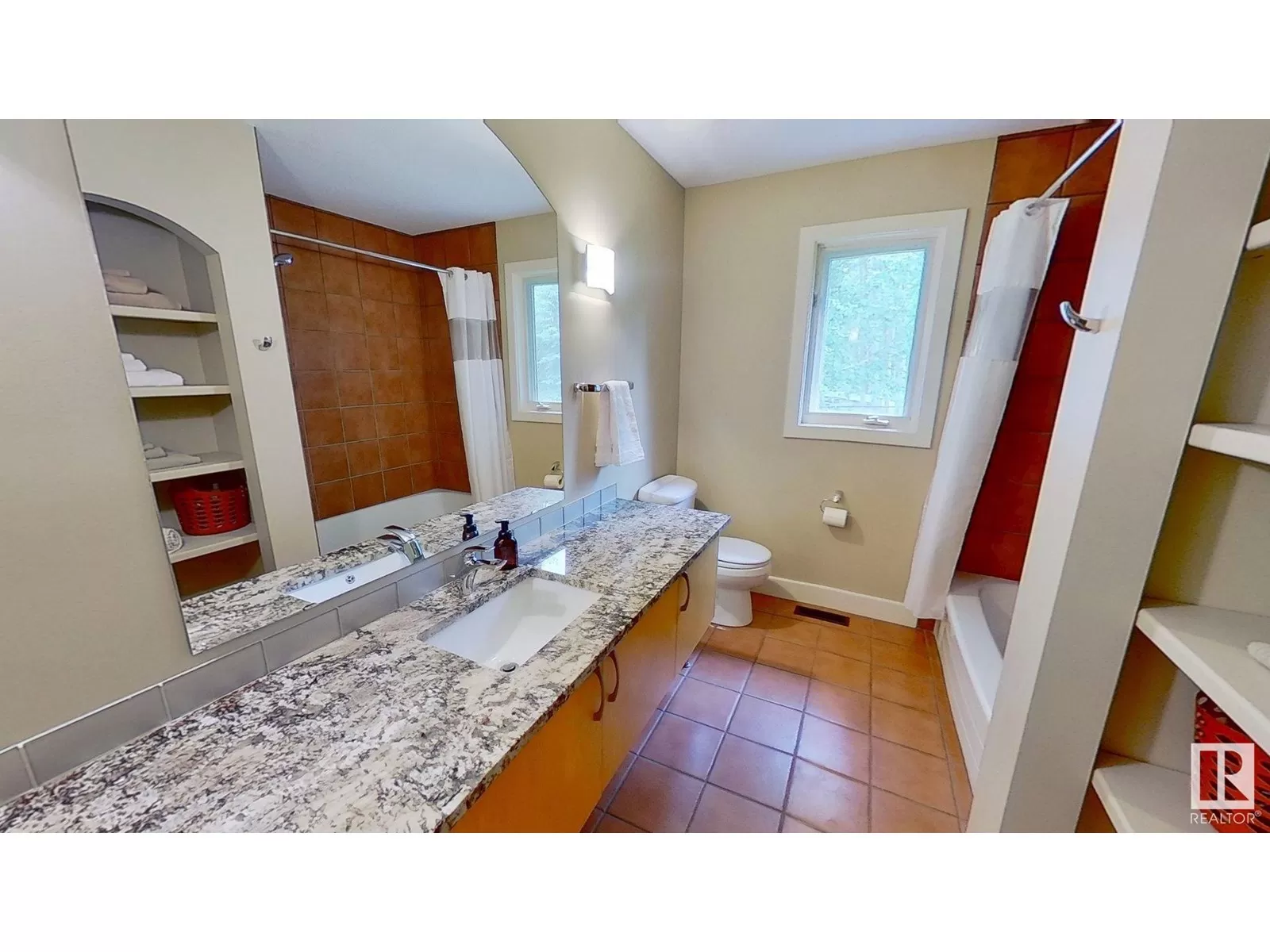 Private, peaceful country residential acreage minutes from Edmonton in prestigious Helenslea Heath. Minutes from Glendale golf course and Acheson Business Park. Custom- built executive bungalow with attached, heated, triple garage on .75-acre, fenced, pie shape lot. East facing front, low maintenance landscaping, mature trees and 85-foot driveway. Three sheds, tiered deck and 2-person hot tub. West facing back looks out onto county reserve. This stunning home has five bedrooms and four bathrooms. Open floor plan, exotic granite counters, solid hardwood floors, stainless steel appliances and large walk in pantry. Walk in closets in main level bedrooms with solid wood shelves and organizers. Large mudroom with two closets and bench seat storage. Vaulted ceiling, floor to ceiling windows and gas fireplace bring natural light and warmth into this home. Huge laundry room, wet bar, valor fireplace, steam shower and luxury vinyl plank flooring on fully finished lower level. Major Upgrades by owner 2011-2025. (id:27476)
