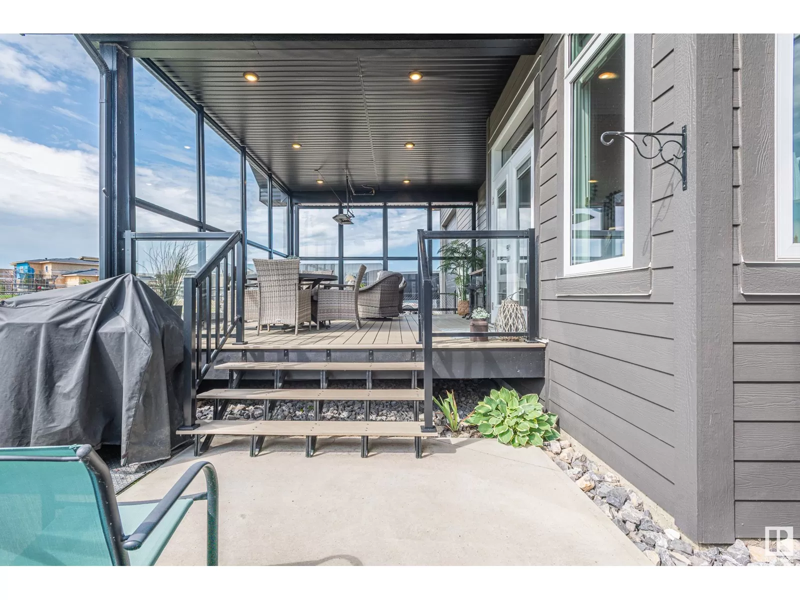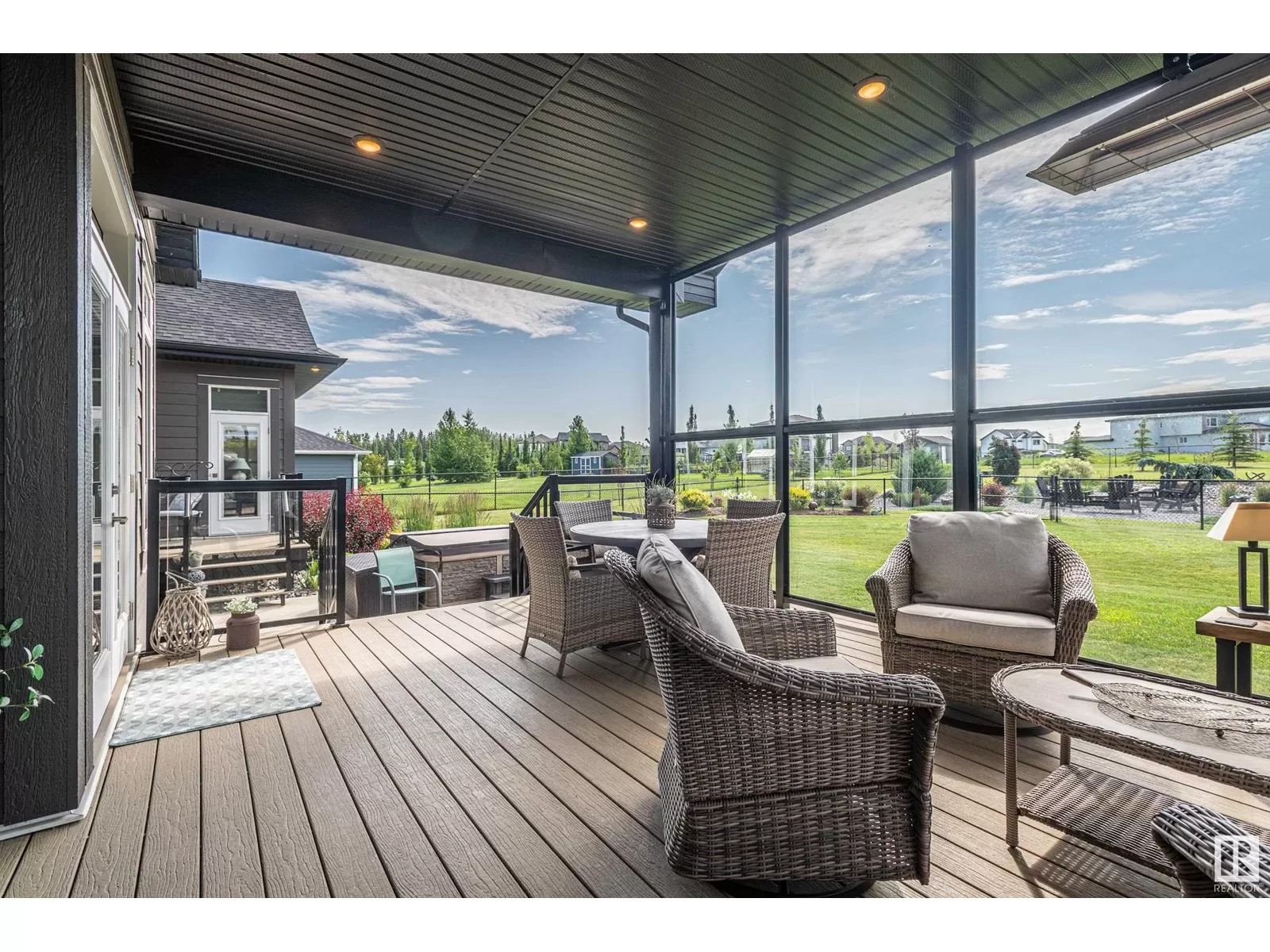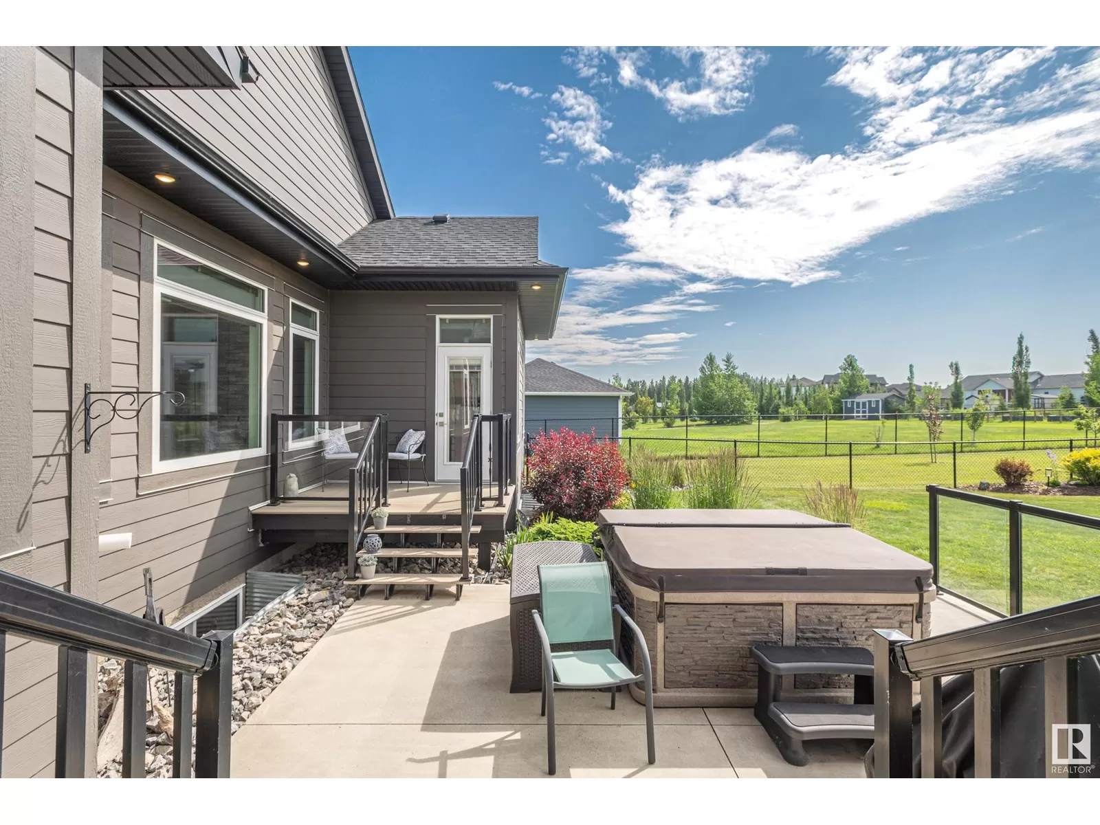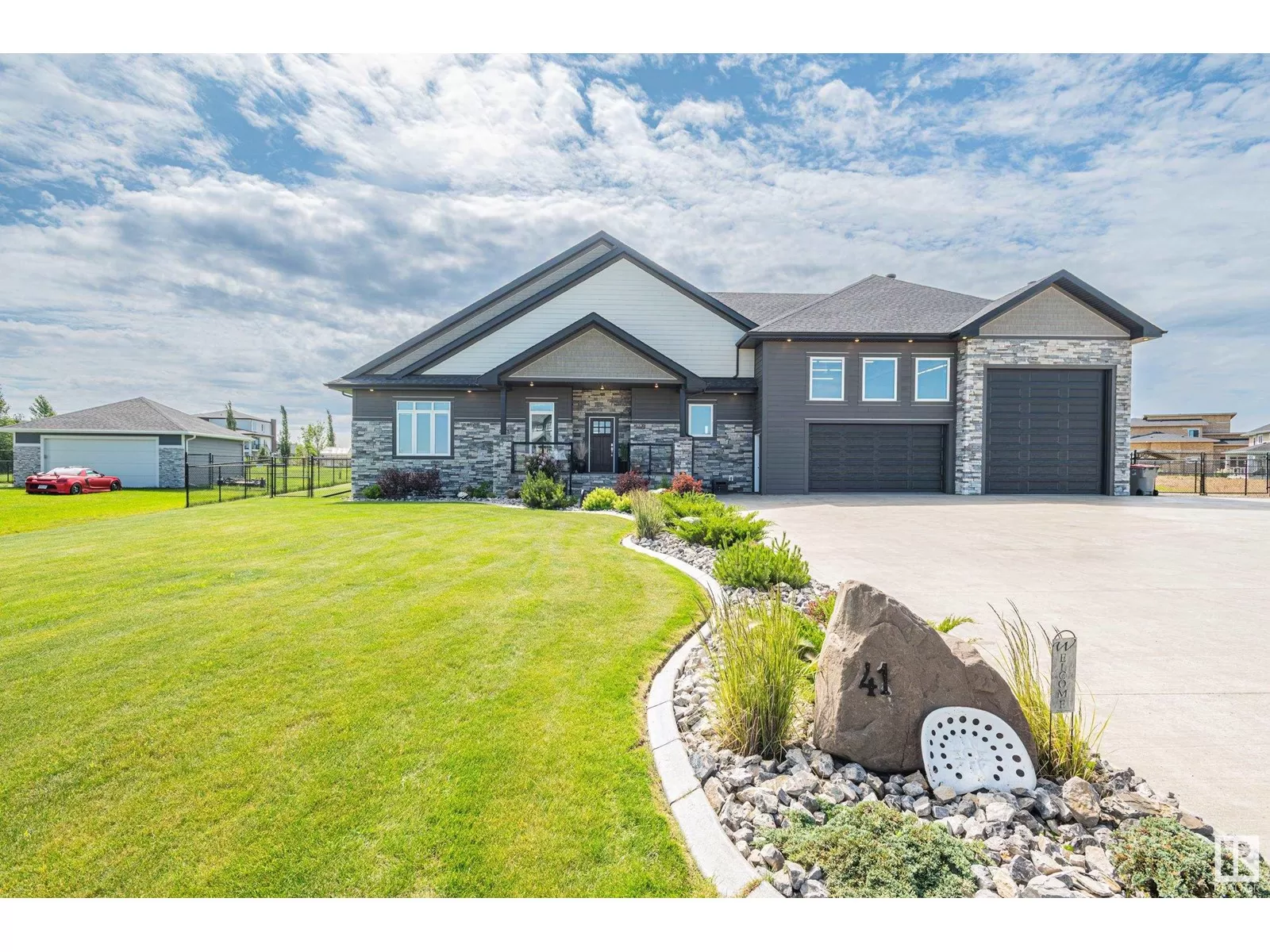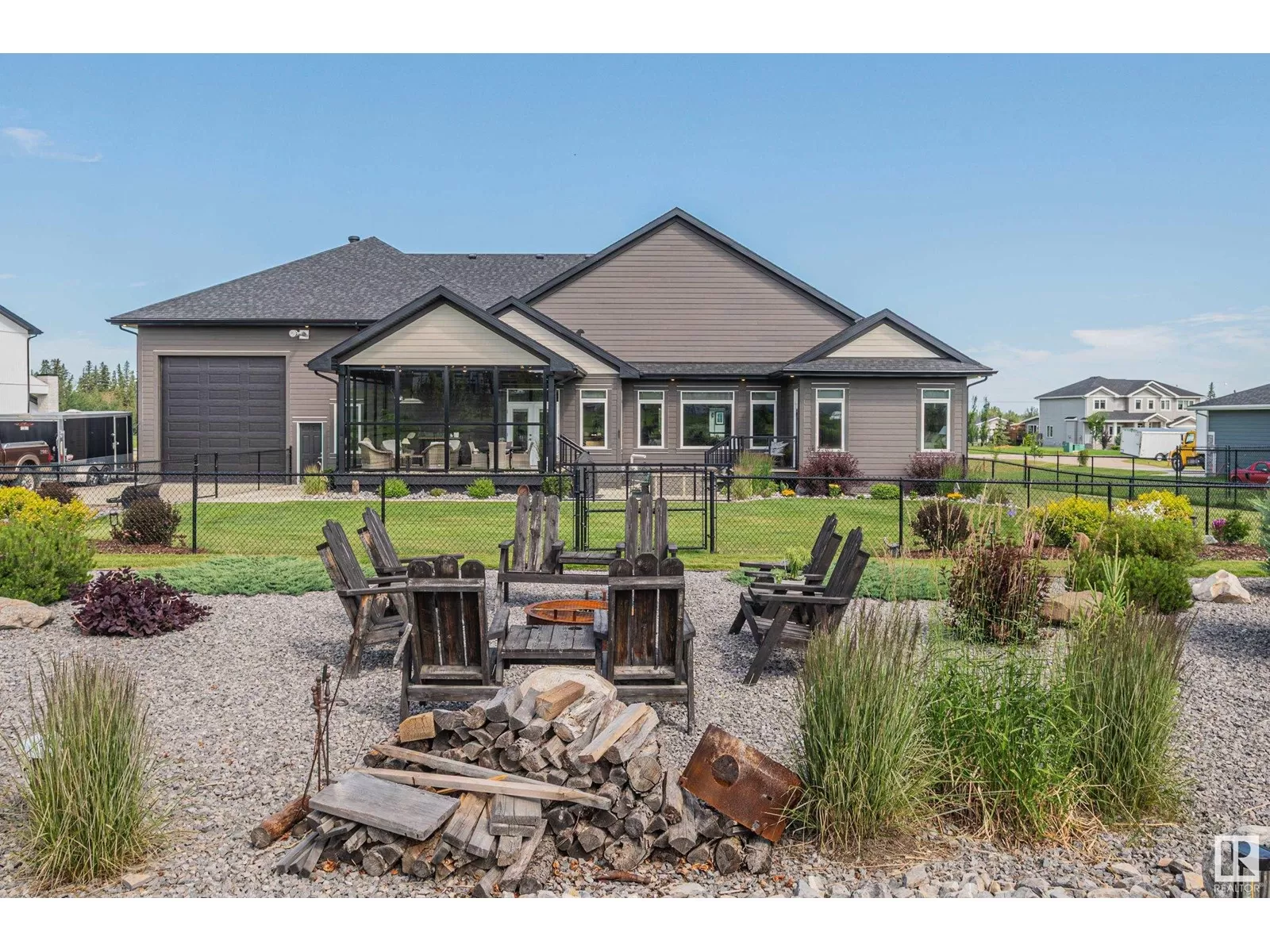 Exquisite Bungalow, 5 Min. from the City a perfect blend of county tranquility & city convenience. This bungalow has a 40x40 triple tandem garage with 18â high ceilings, 14x14 overhead doors, 220 power, radiant heating, RV parking, & 2 pc bathrm. Landscape with chain-link fence, enjoy a firepit under the stars or soaking in the hot tub in your south-facing backyard. Maintenance free deck with floor to ceiling glass walls allows for uninterrupted views of the yard while shielding you from the breeze with overhead heater. Prepare to be impressed, open-concept living space with natural light thanks to the large south facing windows. The kitchen is a showstopper, a island perfect for entertaining & butlerâs pantry that is both functional & elegantly designed. The master retreat with a ultimate 5 pc ensuite giving a spa-like experience, while your hot tub is steps from your bdrm, also there is a 2nd main flr bdrm. The lower level has 2 more bdrms, a familyrm , work out rm and lower laundry rm. A RARE GEM. (id:27476)
