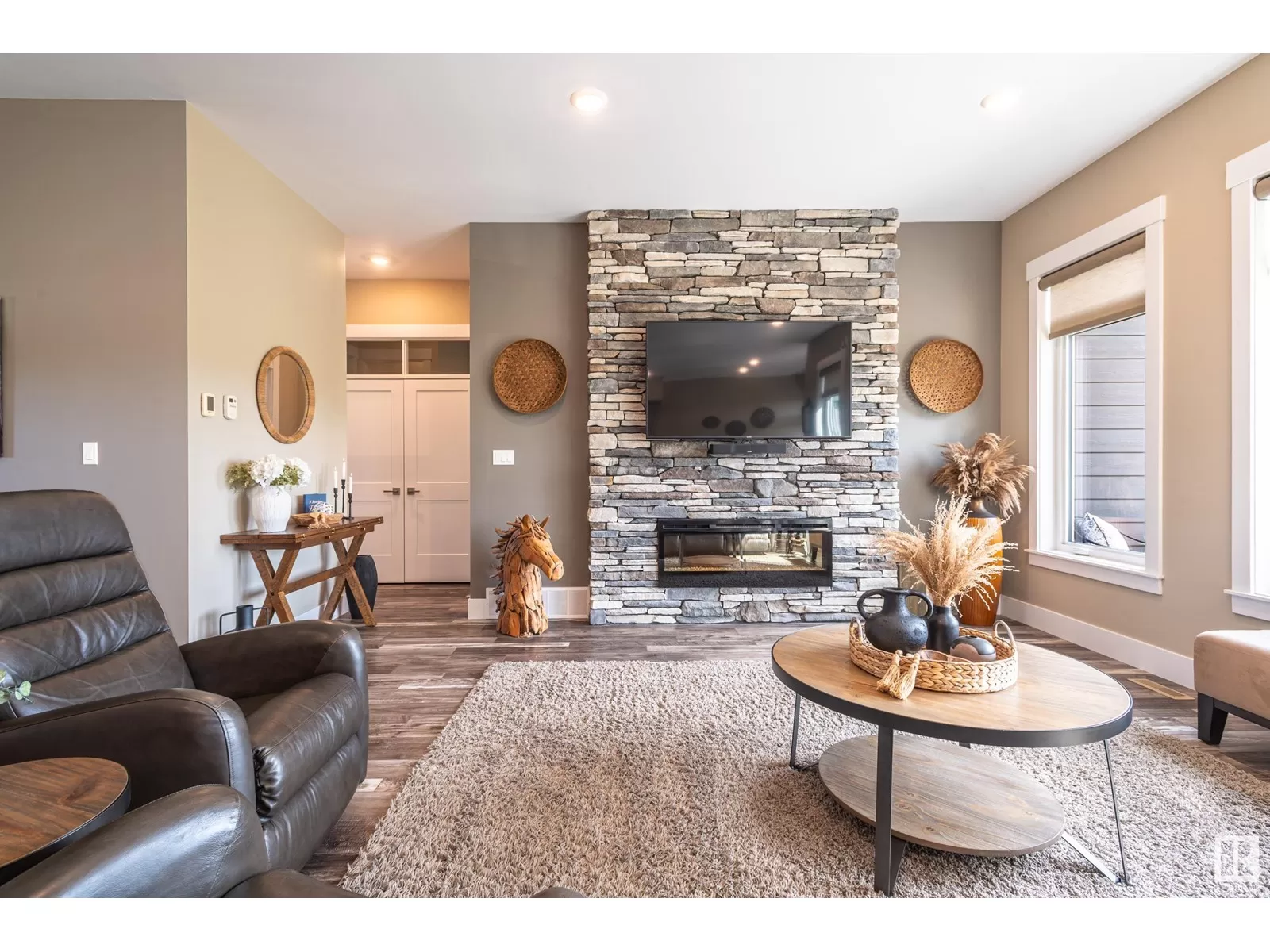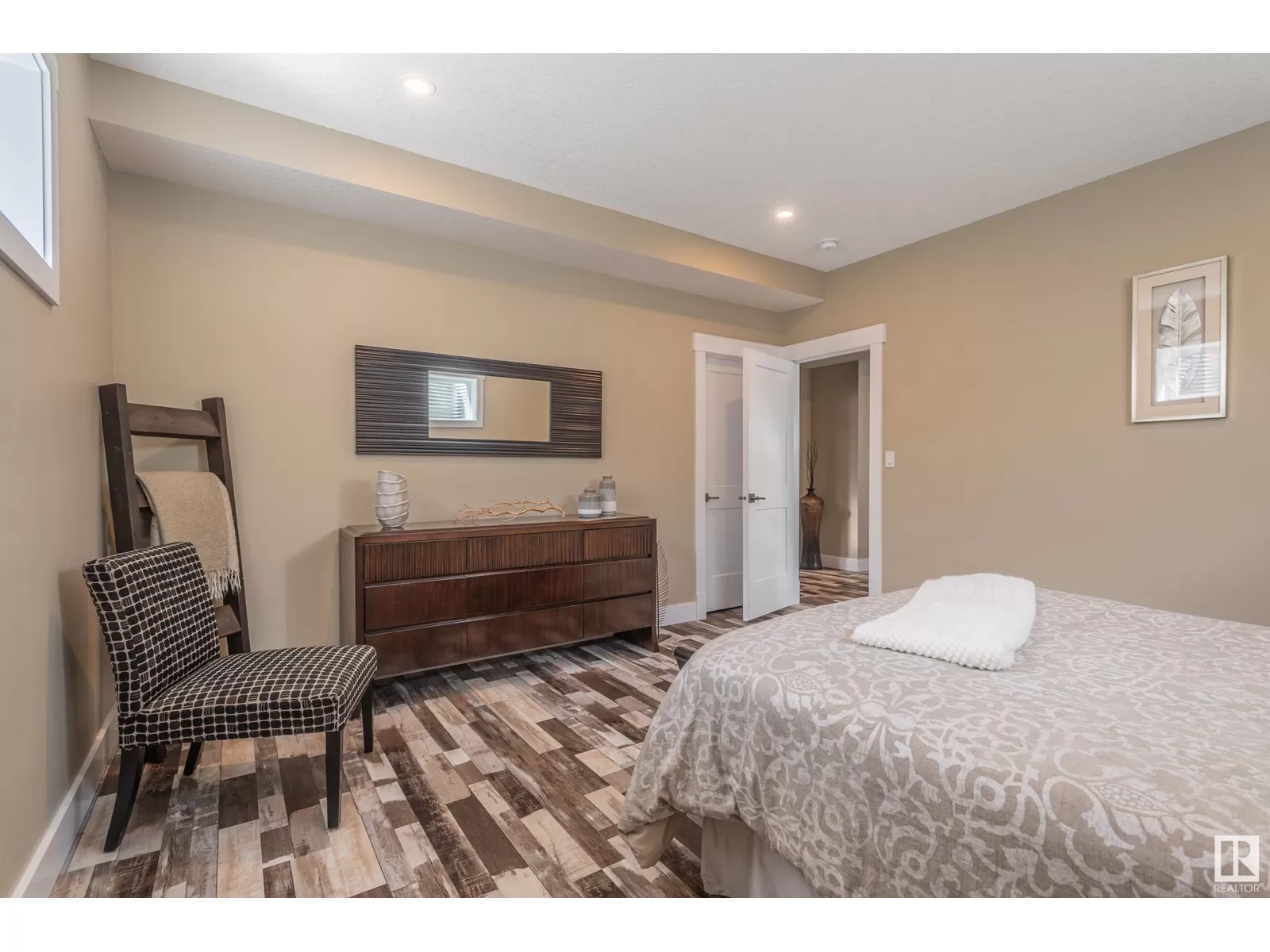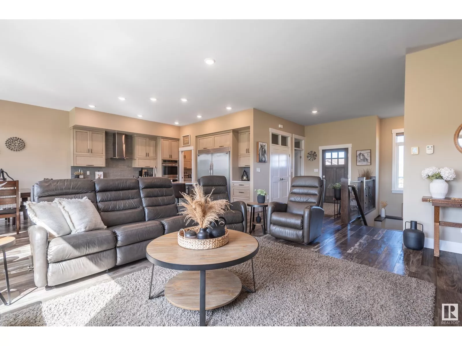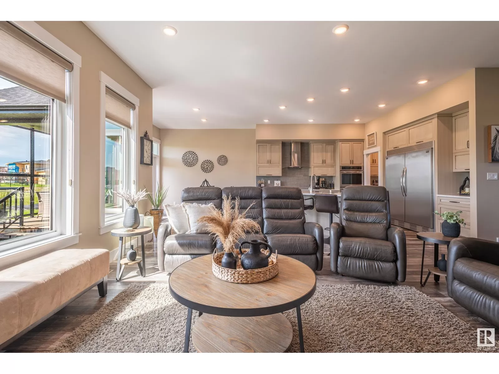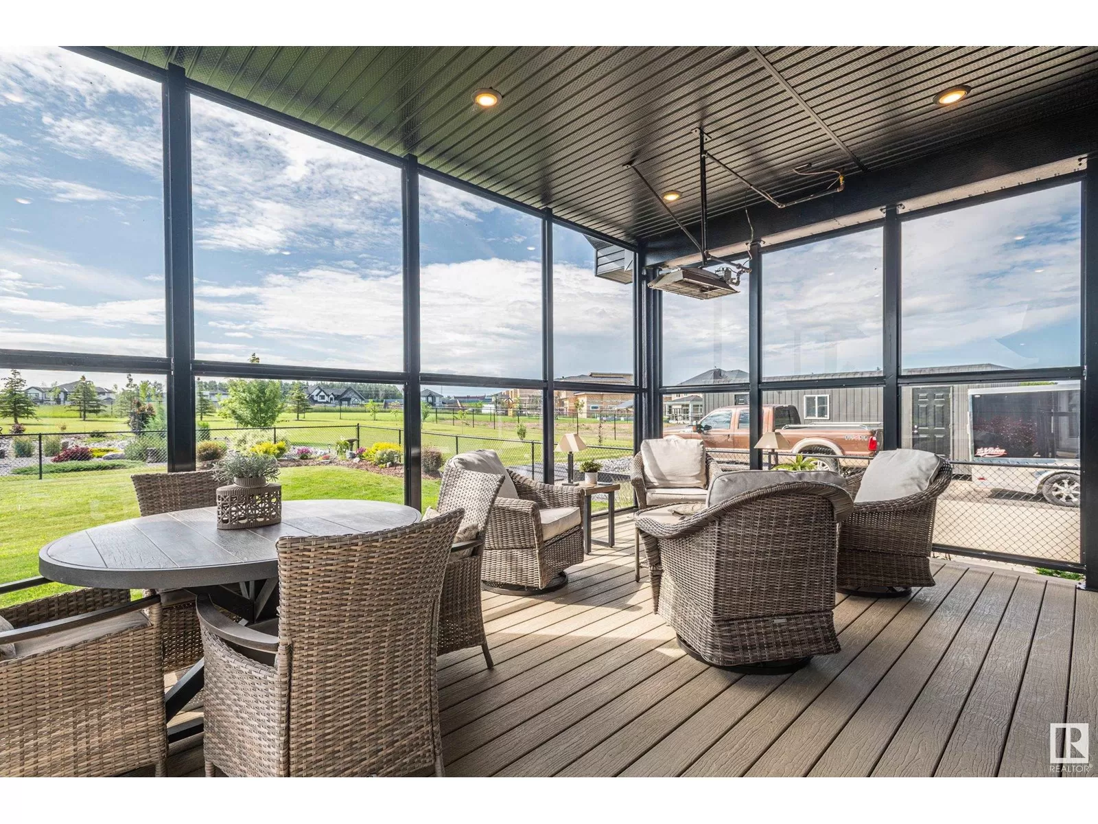 Exquisite Bungalow, 5 Min. from the City a perfect blend of county tranquility & city convenience. This bungalow has a 40x40 triple tandem garage with 18â high ceilings, 14x14 overhead doors, 220 power, radiant heating, RV parking, & 2 pc bathrm. Landscape with chain-link fence, enjoy a firepit under the stars or soaking in the hot tub in your south-facing backyard. Maintenance free deck with floor to ceiling glass walls allows for uninterrupted views of the yard while shielding you from the breeze with overhead heater. Prepare to be impressed, open-concept living space with natural light thanks to the large south facing windows. The kitchen is a showstopper, a island perfect for entertaining & butlerâs pantry that is both functional & elegantly designed. The master retreat with a ultimate 5 pc ensuite giving a spa-like experience, while your hot tub is steps from your bdrm, also there is a 2nd main flr bdrm. The lower level has 2 more bdrms, a familyrm , work out rm and lower laundry rm. A RARE GEM. (id:27476)
