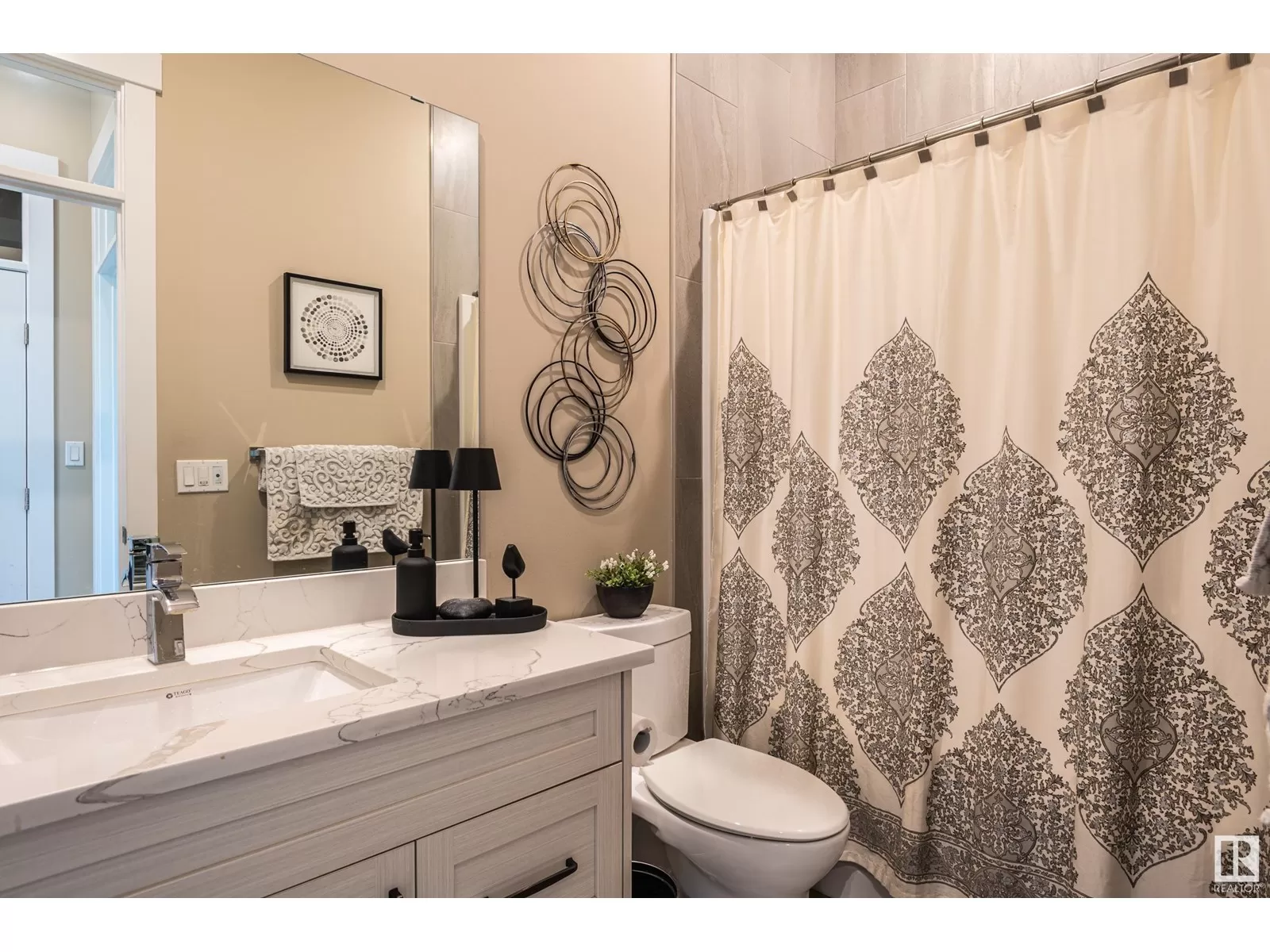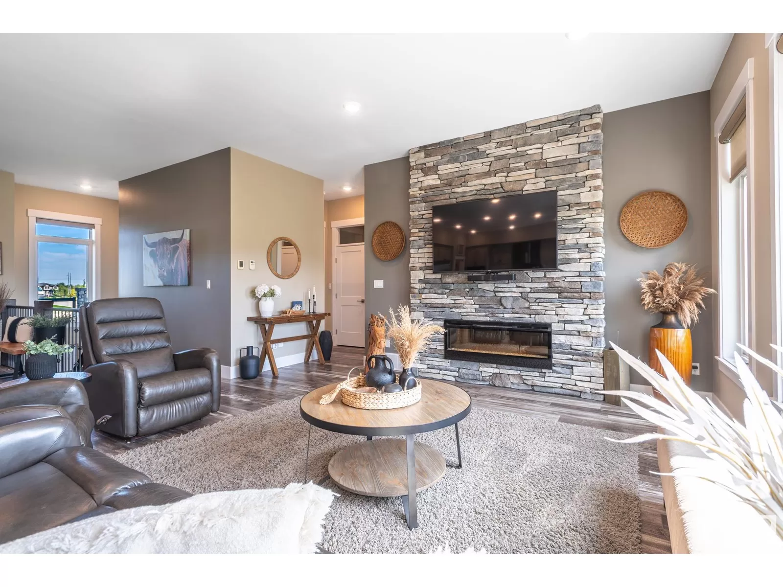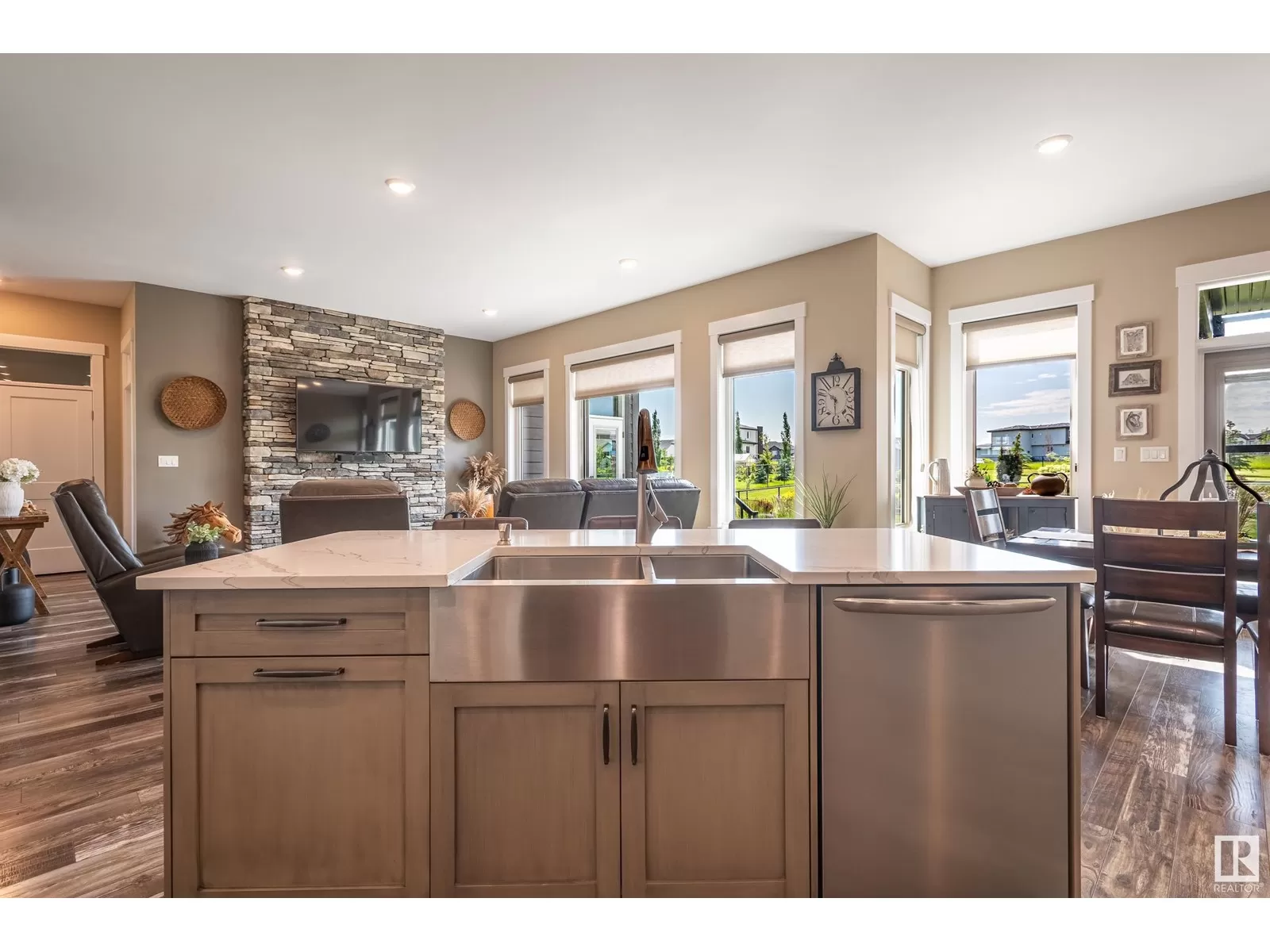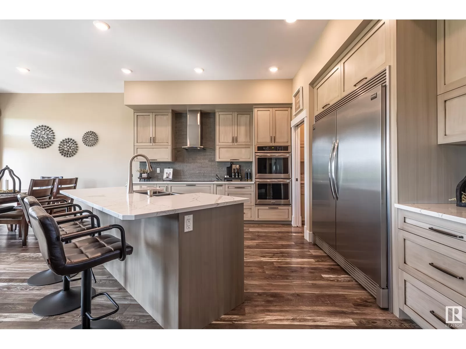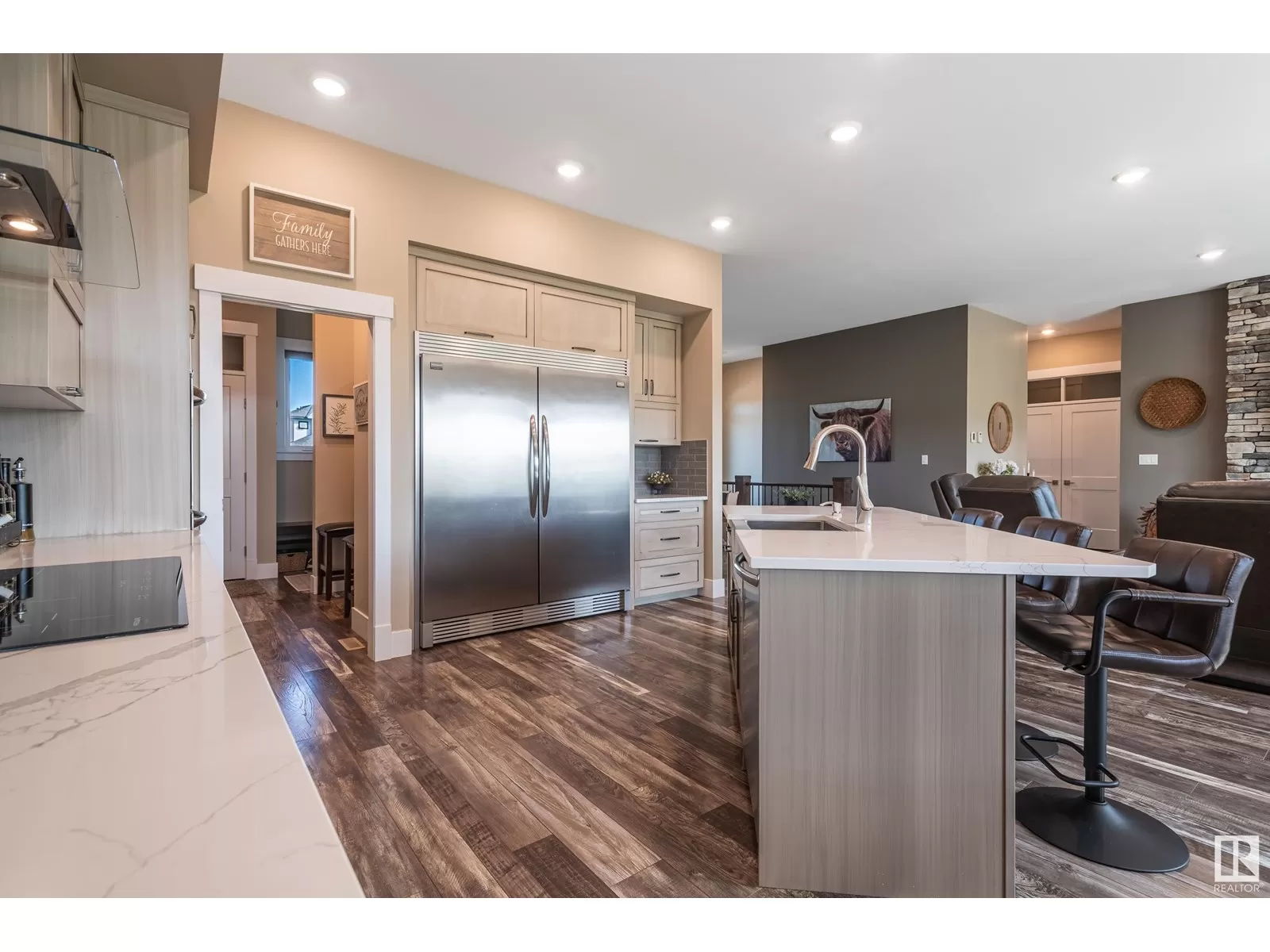 Exquisite Bungalow, 5 Min. from the City a perfect blend of county tranquility & city convenience. This bungalow has a 40x40 triple tandem garage with 18â high ceilings, 14x14 overhead doors, 220 power, radiant heating, RV parking, & 2 pc bathrm. Landscape with chain-link fence, enjoy a firepit under the stars or soaking in the hot tub in your south-facing backyard. Maintenance free deck with floor to ceiling glass walls allows for uninterrupted views of the yard while shielding you from the breeze with overhead heater. Prepare to be impressed, open-concept living space with natural light thanks to the large south facing windows. The kitchen is a showstopper, a island perfect for entertaining & butlerâs pantry that is both functional & elegantly designed. The master retreat with a ultimate 5 pc ensuite giving a spa-like experience, while your hot tub is steps from your bdrm, also there is a 2nd main flr bdrm. The lower level has 2 more bdrms, a familyrm , work out rm and lower laundry rm. A RARE GEM. (id:27476)