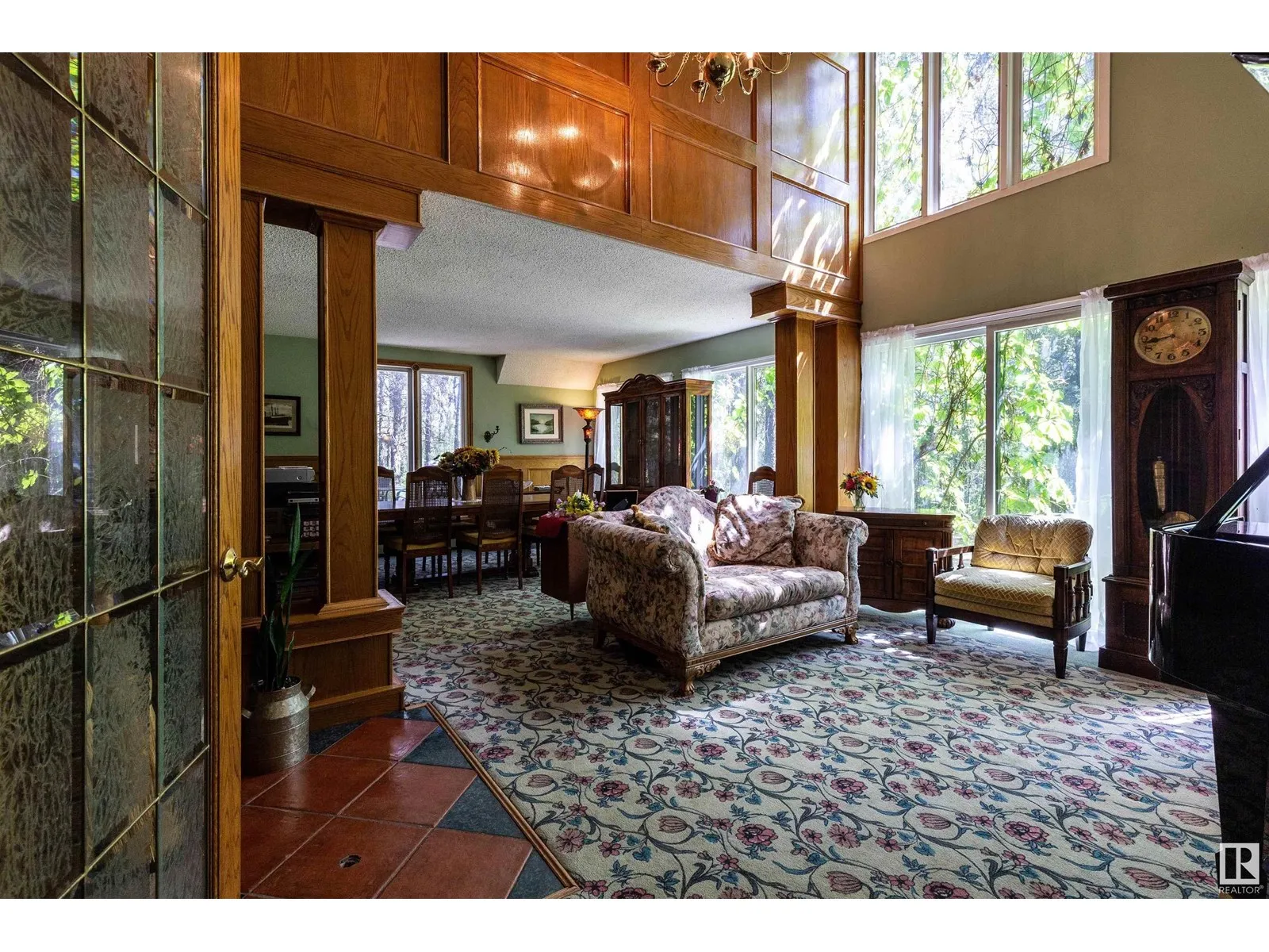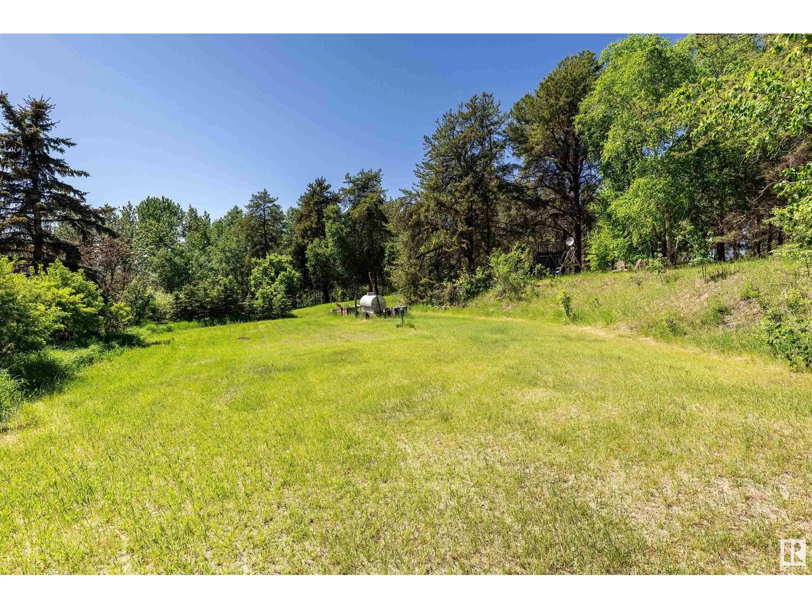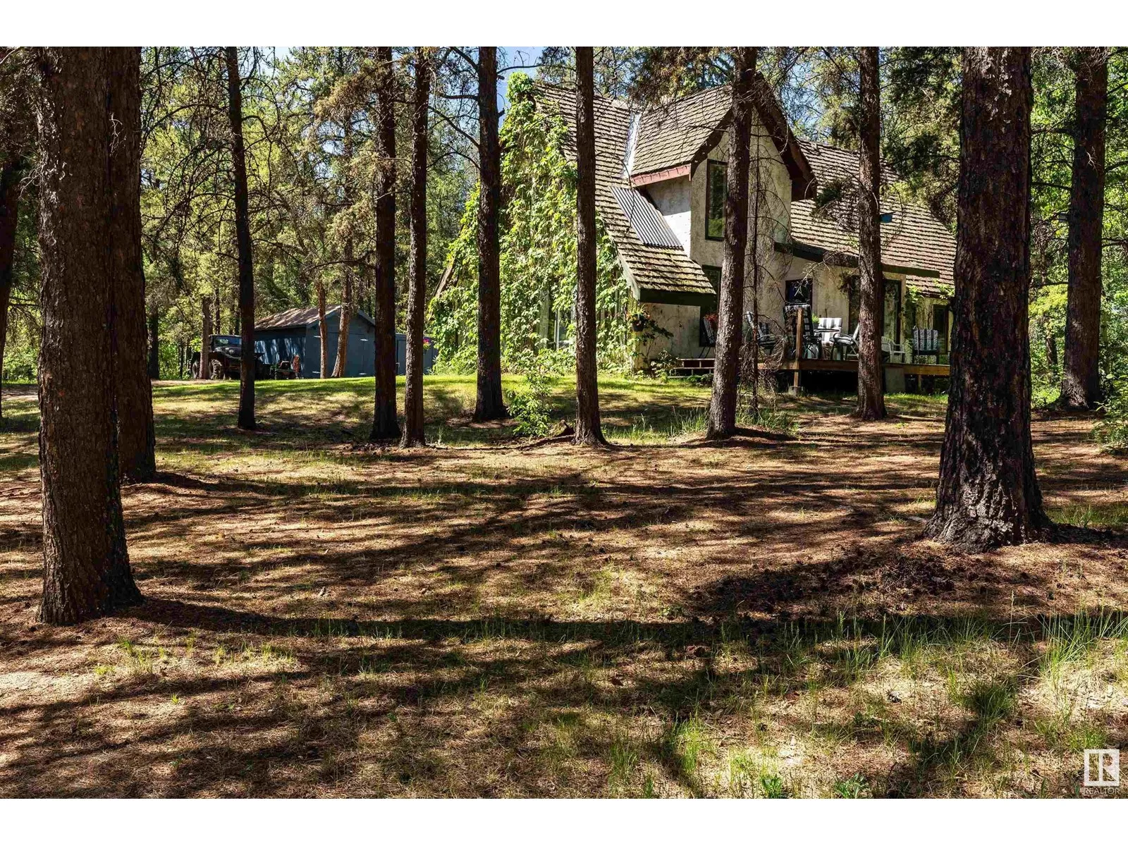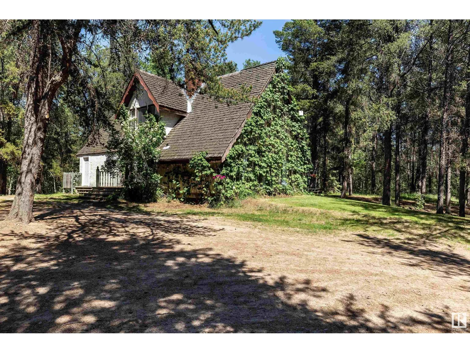 Welcome to your own private paradise in the sought-after community of Meadow Crest Estates! Nestled on 3.29 acres of thick, mature trees and forest, this secluded 5-bedroom, 3-bathroom home offers the perfect balance of peaceful country living and convenient city access â just 12 minutes from Devon, Spruce Grove, or West Edmonton. A private driveway leads you to a warm and welcoming entrance, where custom oak trim and fine woodwork set the tone for the craftsmanship throughout. Inside, you'll find a spacious and inviting layout featuring hardwood floors, a large living room, expansive dining area, and a chef-friendly kitchen with plenty of room for family gatherings. Outdoors, enjoy a huge garden area, room to roam for kids and pets, and ample space for hobbies or work in the large workshop and storage building. Whether you're relaxing in nature, entertaining guests, or just enjoying quiet evenings under the stars, this property offers the utmost privacy and freedom. (id:27476)
