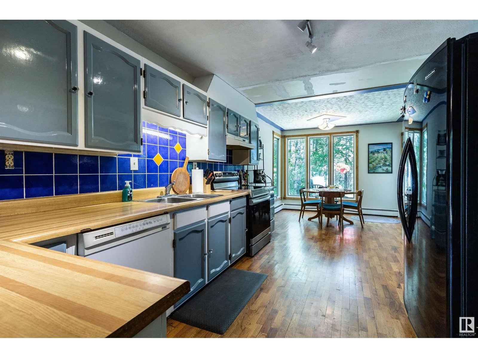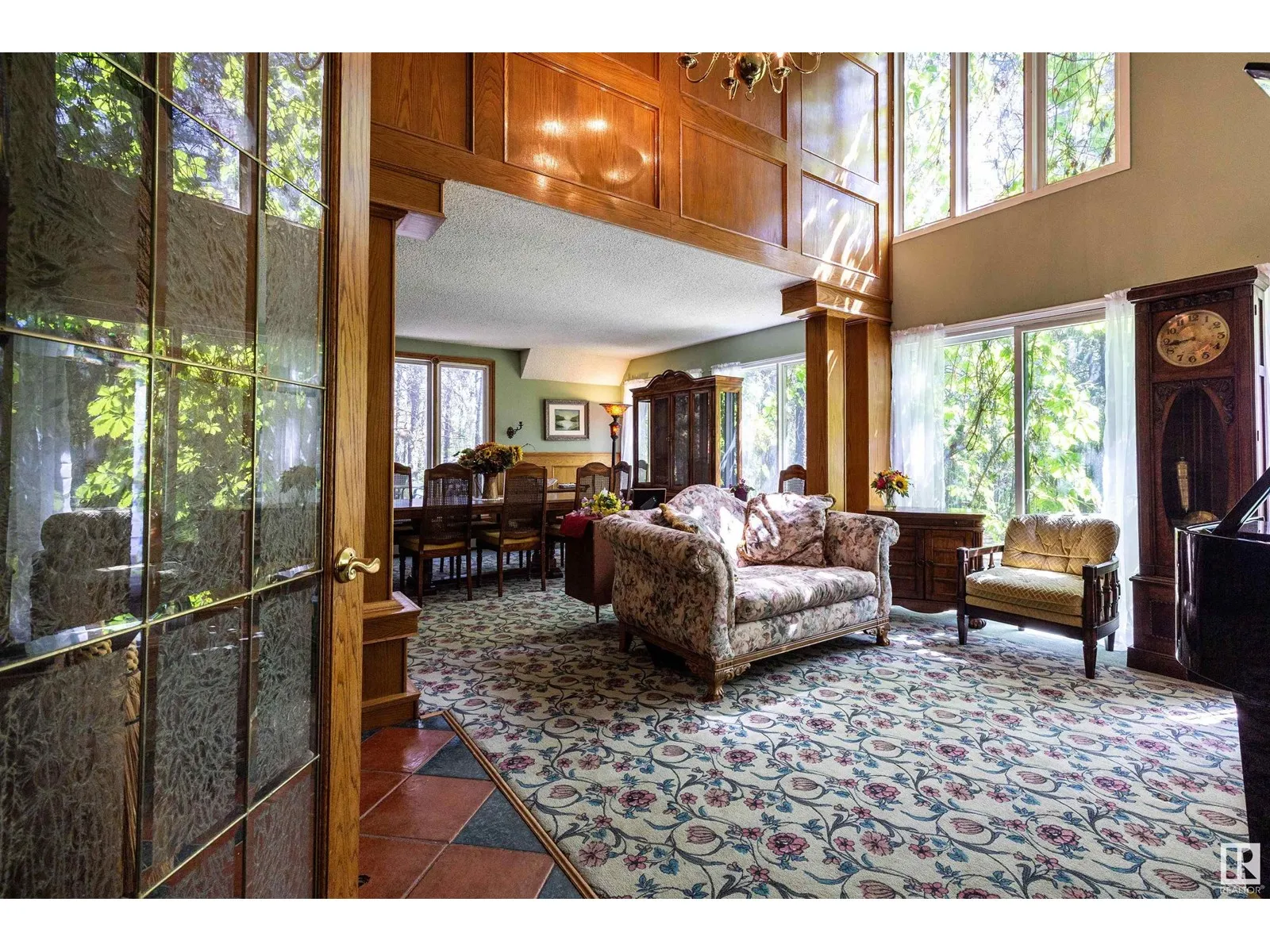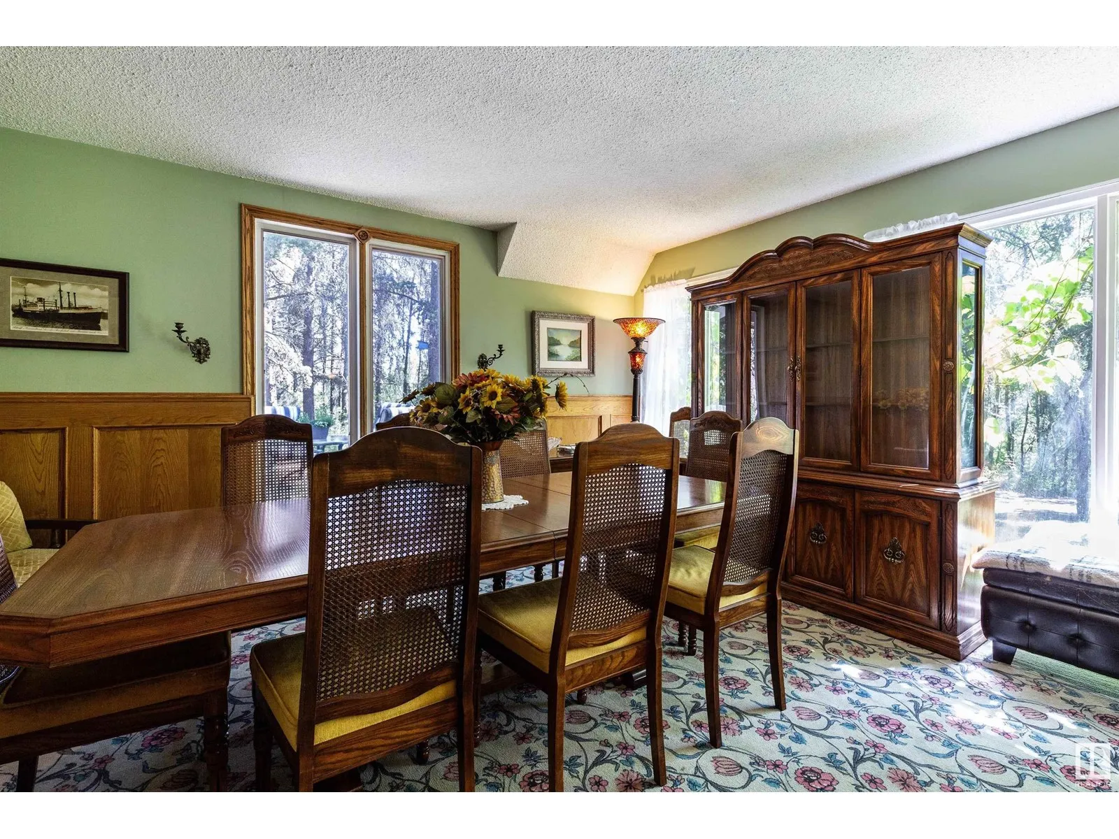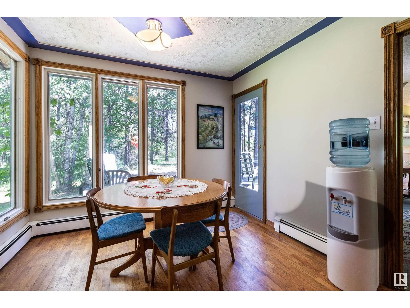 Welcome to your own private paradise in the sought-after community of Meadow Crest Estates! Nestled on 3.29 acres of thick, mature trees and forest, this secluded 5-bedroom, 3-bathroom home offers the perfect balance of peaceful country living and convenient city access â just 12 minutes from Devon, Spruce Grove, or West Edmonton. A private driveway leads you to a warm and welcoming entrance, where custom oak trim and fine woodwork set the tone for the craftsmanship throughout. Inside, you'll find a spacious and inviting layout featuring hardwood floors, a large living room, expansive dining area, and a chef-friendly kitchen with plenty of room for family gatherings. Outdoors, enjoy a huge garden area, room to roam for kids and pets, and ample space for hobbies or work in the large workshop and storage building. Whether you're relaxing in nature, entertaining guests, or just enjoying quiet evenings under the stars, this property offers the utmost privacy and freedom. (id:27476)