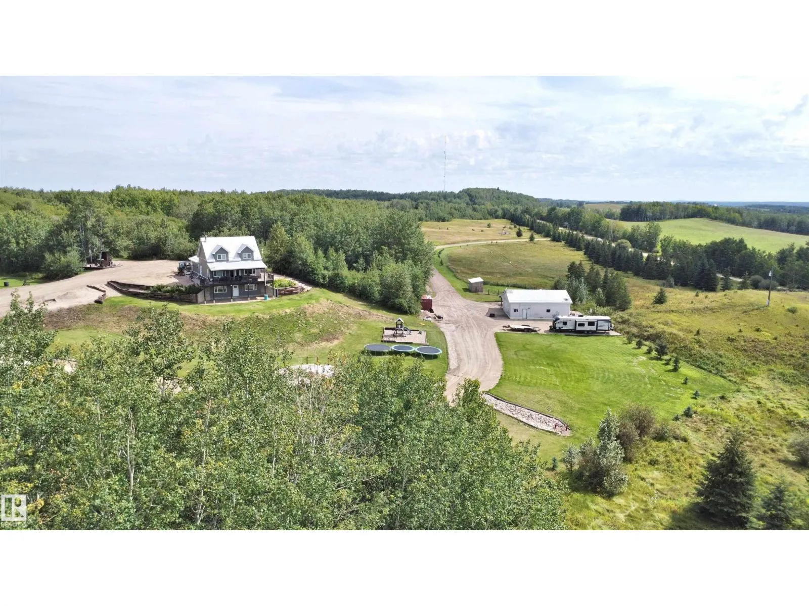 WOW! 147 Acres of rolling hills with amazing views!! This incredibly beautiful property features a fully renovated 1 1/2 storey, 4 bedroom, 4 bath, hilltop home with a walkout basement. The chef in the family is going to love the magazine worthy kitchen featuring a massive eat-up island, ss appliances, quartz everywhere, huge pantry and the open dining area with cozy wood stove. Spend your morning drinking coffee on the covered deck while enjoying the spectacular view. Main floor includes a luxurious primary suite with fireplace, massive custom walk-in closet, and spa-like 5-piece ensuite. Top floor features 2 large bedrooms, 5 piece bath, and flex area. The fully finished, walk-out, basement features a family room, bedroom, 3 piece bath and laundry. Property includes a heated 40' x 33' shop, horse shelter, corrals, tons of quad trails and so much more. 40 minutes to Stony and 1 hour to Edmonton. Come see your new home! (id:27476)