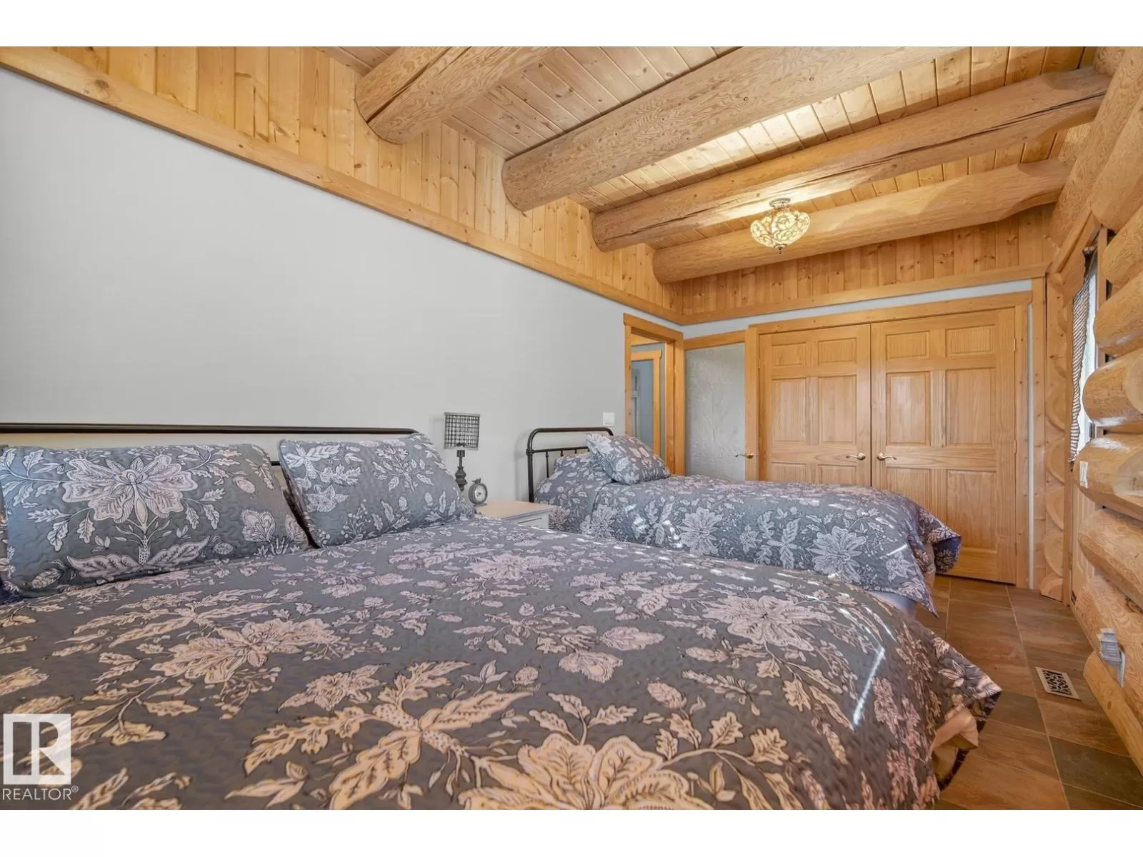 This is likely the nicest log cabin on the market in Alberta! This home is 7000sf on 3 levels (walkout basement). The home underwent extensive renovations 2 yrs ago, owners spent just under $800,000 to make this cabin world class. This 6 bedroom, 4 bath home comes FULLY furnished ($100,000 value) so it is turn key ready for it's new owners. The home has exposed timber throughout which only adds character and authentic rustic living to this property. Main floor has a gorgeous custom kitchen, Stillwater color cabinets, cambria quartz, with high end appliances. If you have an aspiring chef in the family this gas stove and outdoor grill area and the 2nd kitchen in the basement will leave them breathless. The primary bedroom is located on the main floor, it has a very large ensuite and walk in closet. The living room has the most impressive stone fireplace you will find anywhere. We are located less than 40 mins to Edmonton, so this could be your primary residence or luxury cabin life. (id:27476)