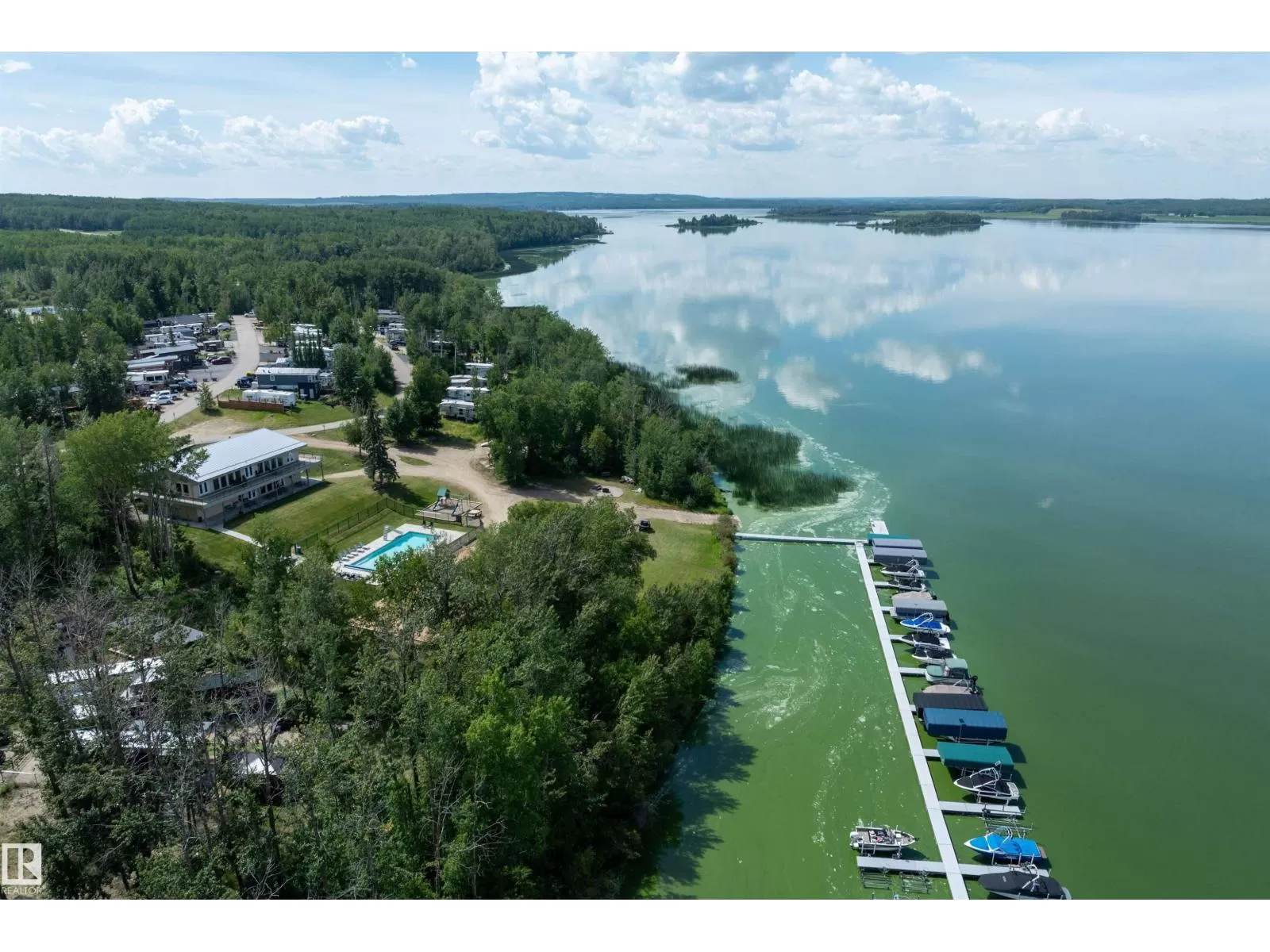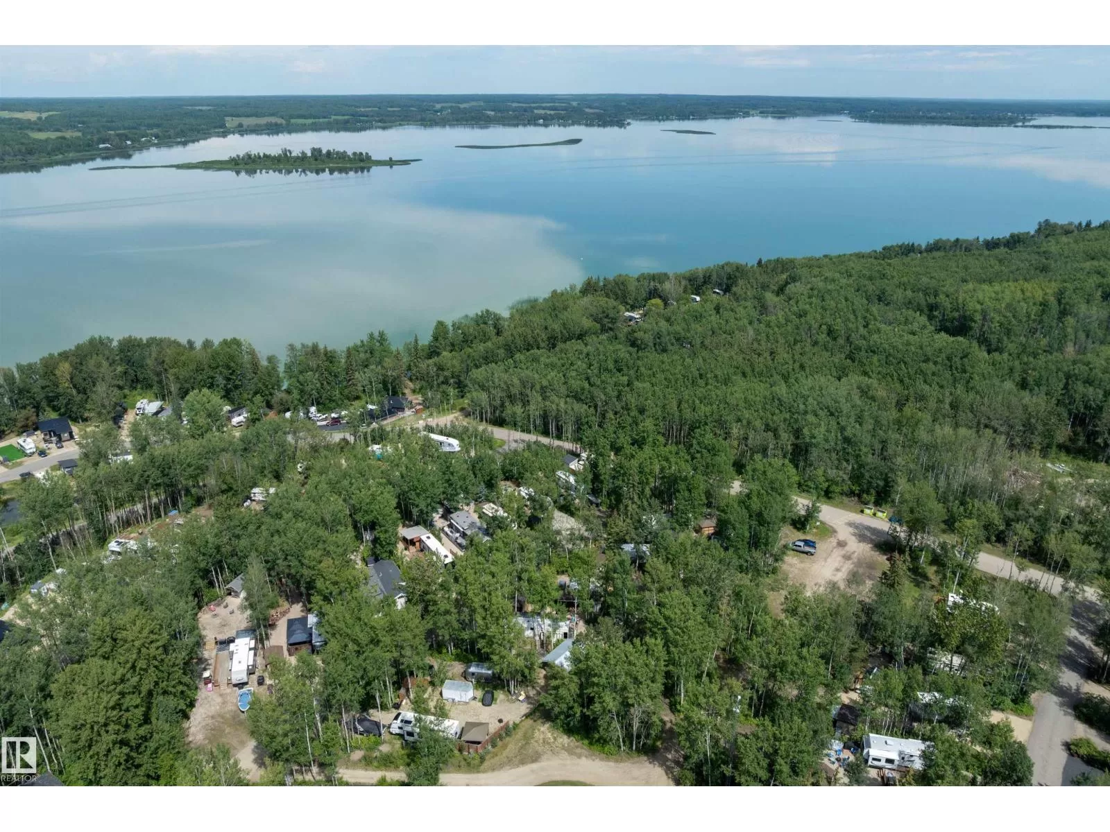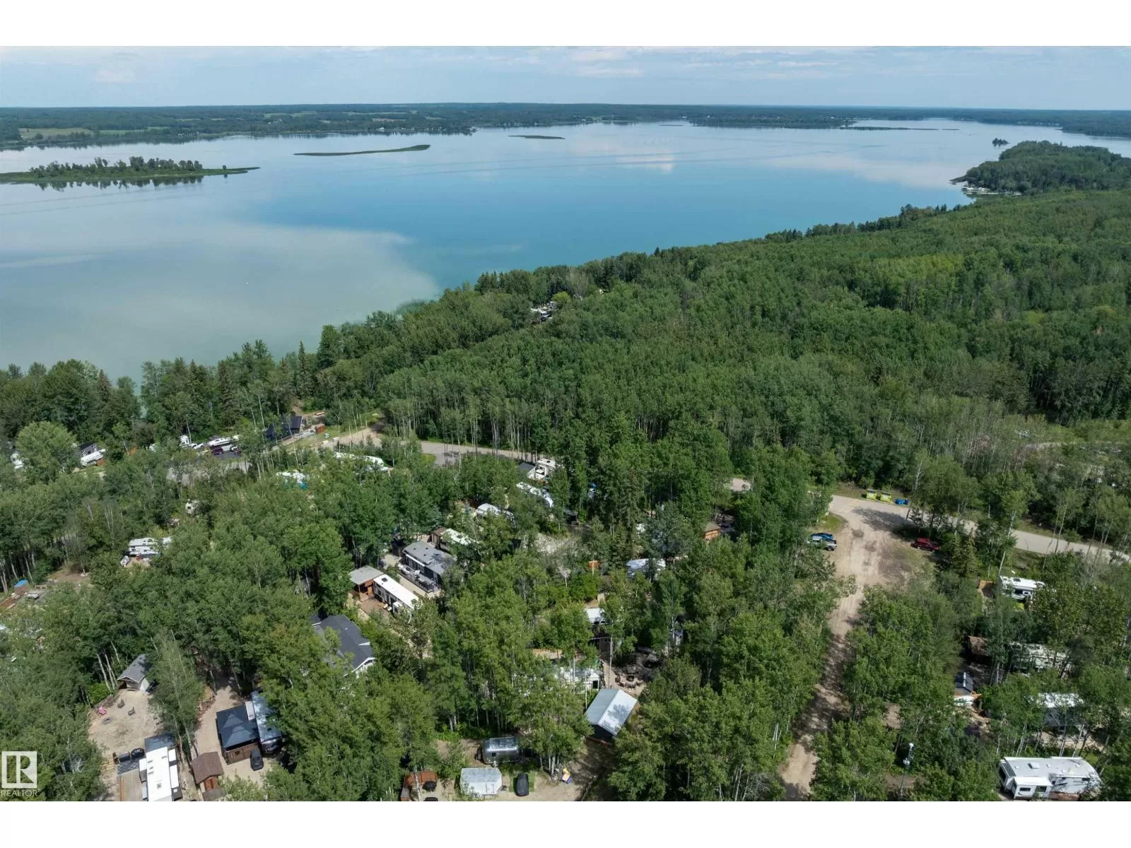 LAKE LOT at Sunset Shores RV Resort. Enjoy lake life at this beautiful community. Park your RV all year round nestled in the trees with a 14 x 20 bunkhouse- perfect for guests. Firepit area, fenced with flower beds and privacy. The lakefront year round community feature municipal water, sewer and power. There are paved roads throughout, clubhouse with a heated pool. Enjoy the gym, laundry, showers, public dock, private boat slips and boat launch. There are pickle ball courts, tennis and basketball courts. Trail system for beautiful nature walks. Easy commute back to Edmonton in 45 mins. (id:27476)