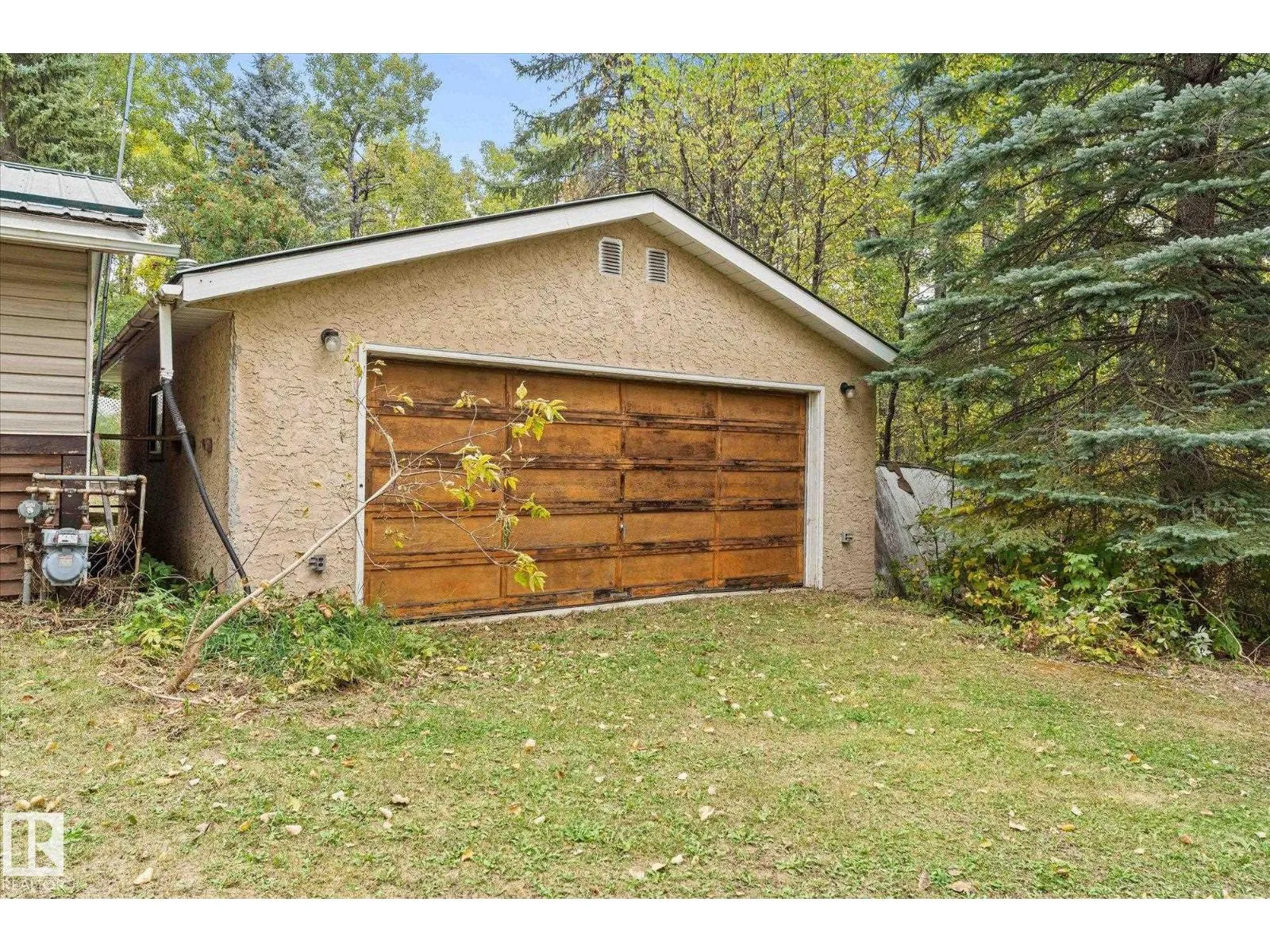 Discover your own private oasis on 7+ treed acres in Parkland County! This serene & private property offers the perfect canvas for your dream home, with mature trees providing a natural canopy & ultimate privacy. Enjoy the wildlife while having a morning coffee on the covered back porch. The existing mobile home with 3 bedrooms , 2 baths and a renovated kitchen presents an opportunity for immediate country living, while you can build your dream home with services already in place. A drilled well & septic are already there. 2 detached garages and a shop that are ideal for a home based business, storing equipment or indulging in your favorite hobby. Enjoy the peace & quiet of rural life without sacrificing convenience. Close to Cougar Creek Golf Course, Wabamun & Stony Plain. Don't miss the opportunity to create the acreage lifestyle you always dreamed of! (id:27476)