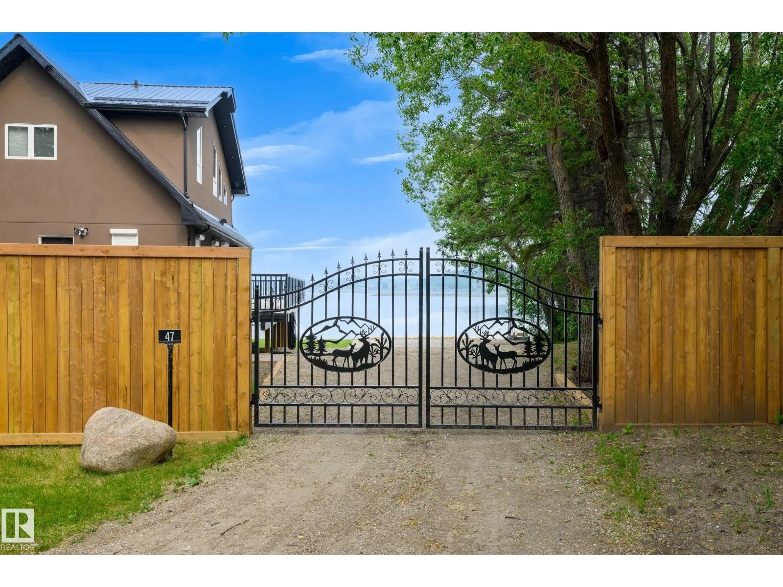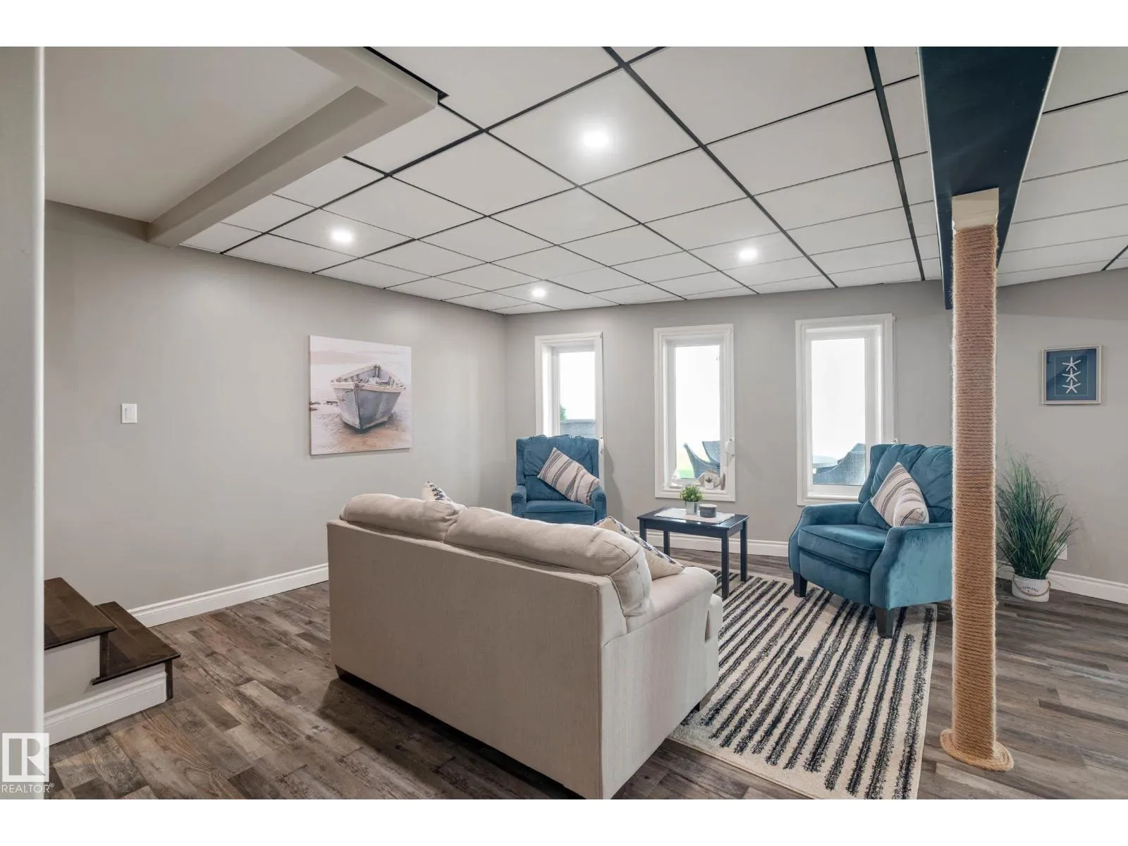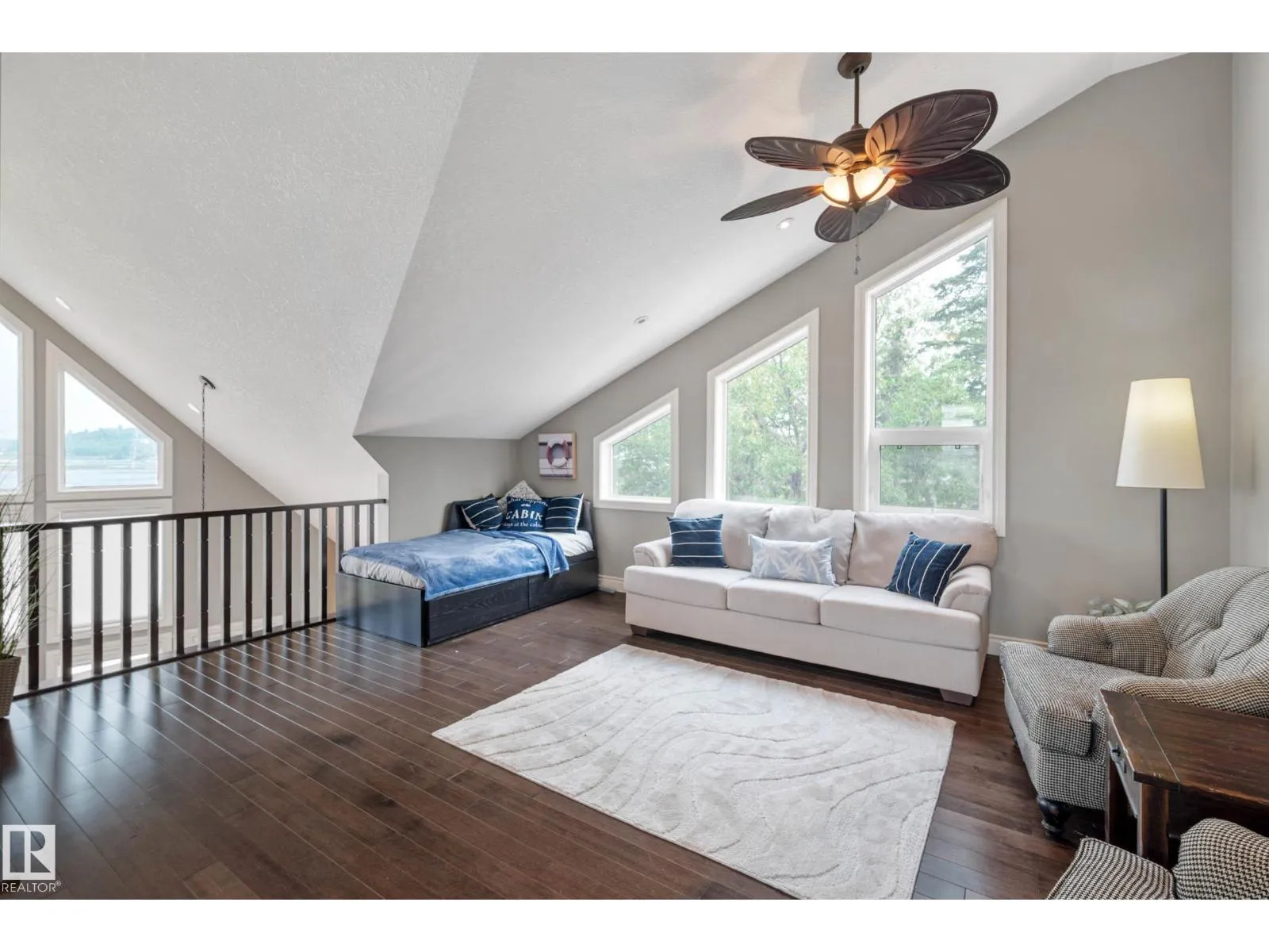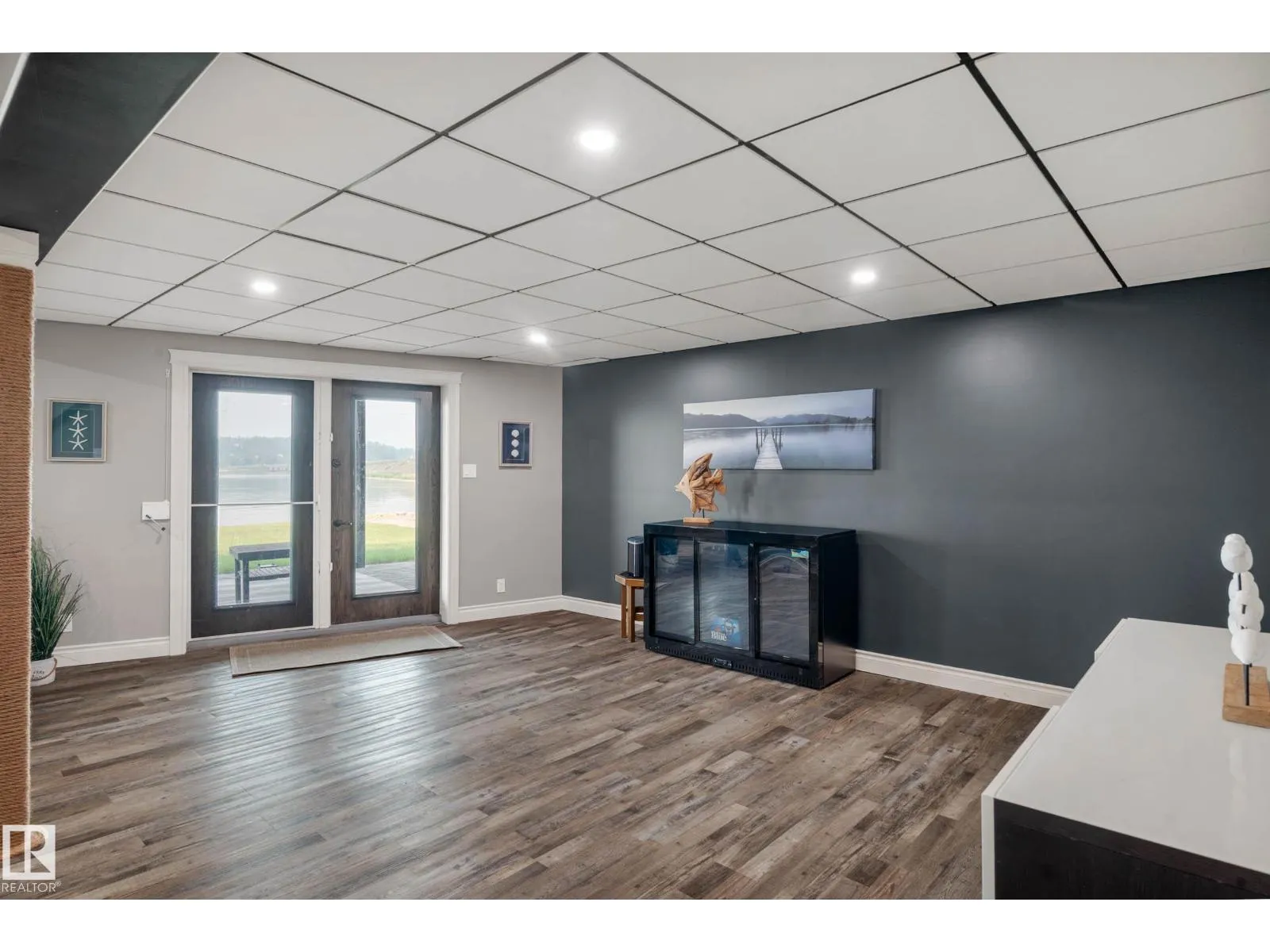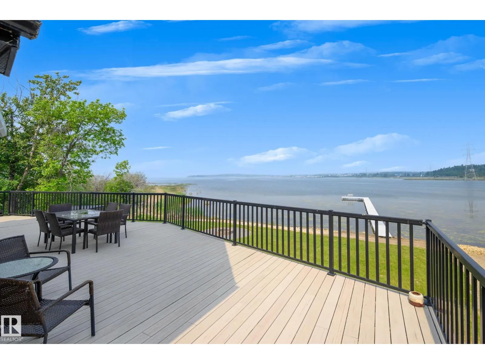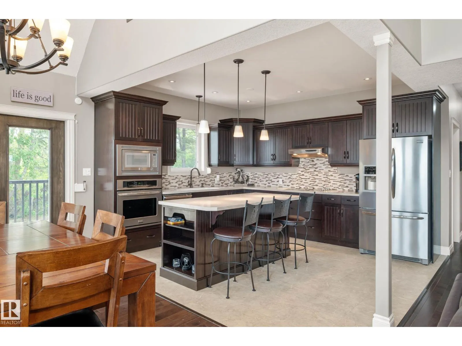 Enjoy this year-round lakefront living with 220 ft of private shoreline and southwest exposure beside a protected bird sanctuary. This rare flat, sun-soaked lot features a stunning A-frame with 1,800 sq ft above grade and over 2,800 sq ft of total space, including a developed walkout basement. The main floor boasts an open-concept kitchen and great room with hardwood floors, gas fireplace, and lake views, plus a bedroom, 3-pc bath, and laundry. The chefâs kitchen offers espresso cabinetry, stainless steel appliances, corian counters, pantry, and prep island with eating bar. Upstairs, a loft and serene primary suite with ensuite provide the perfect retreat. The basement adds a large rec room, spacious bedroom, 4-pc bath, and walkout to a stamped concrete patio, private yard, and beach. Freshly painted with central A/C, central vac, shutters, alarm, RV parking, and new secure fence and gate. A perfect year-round retreat! (id:27476)