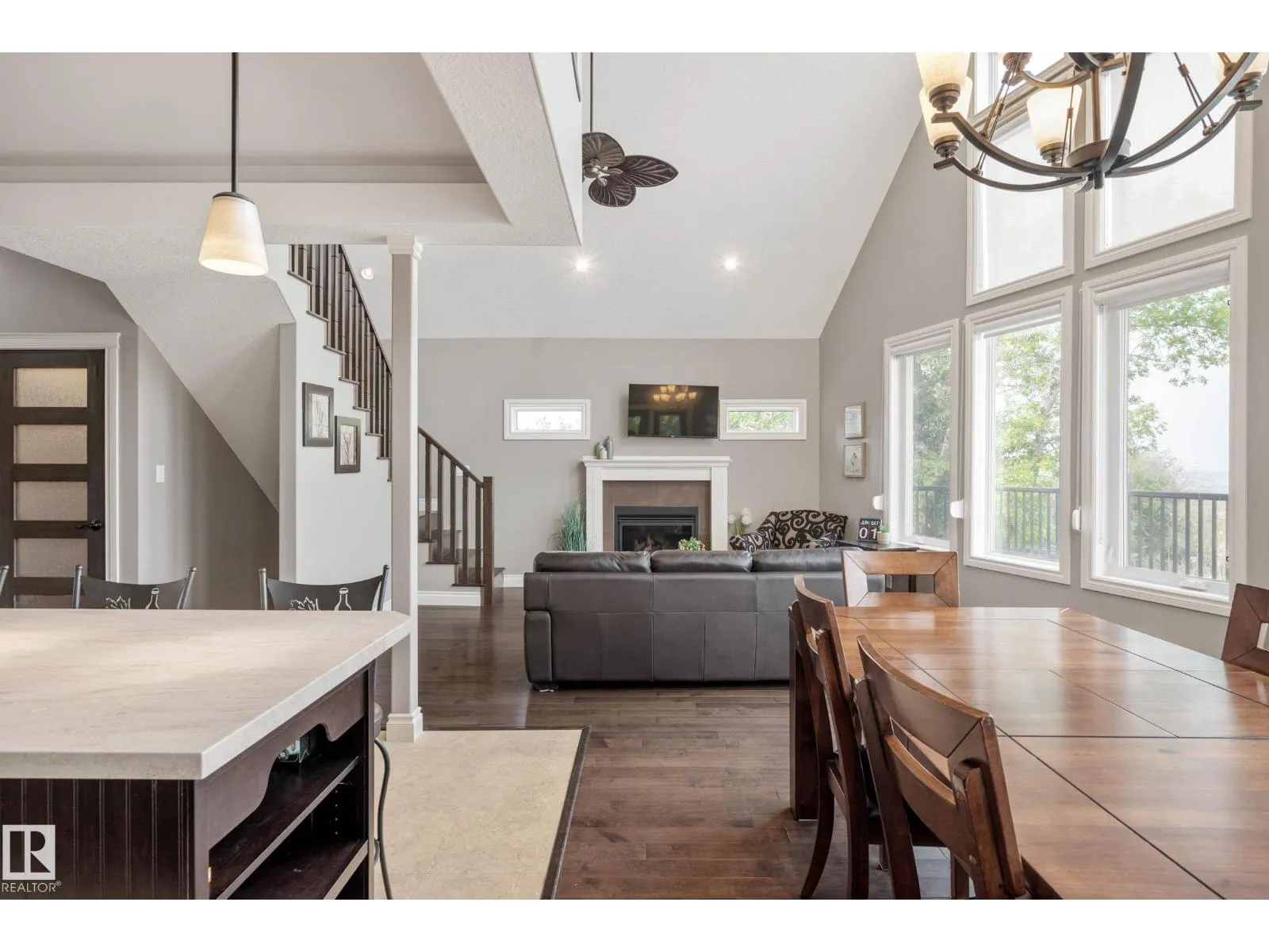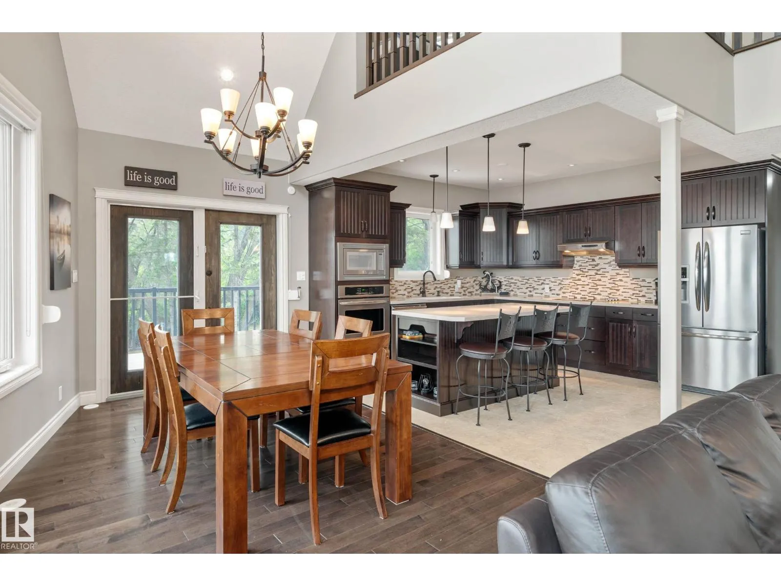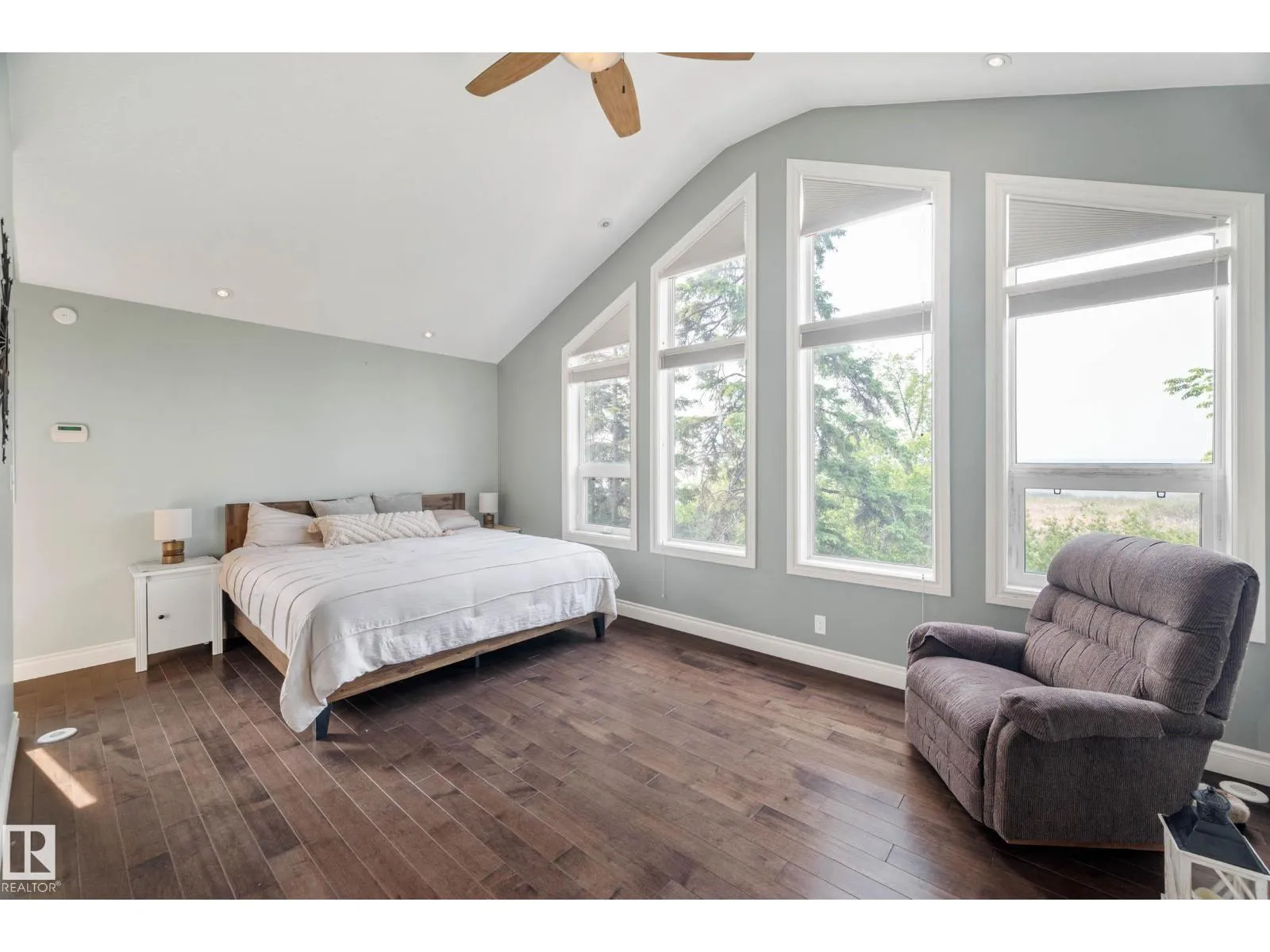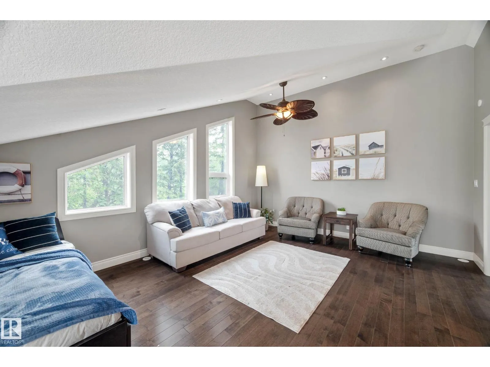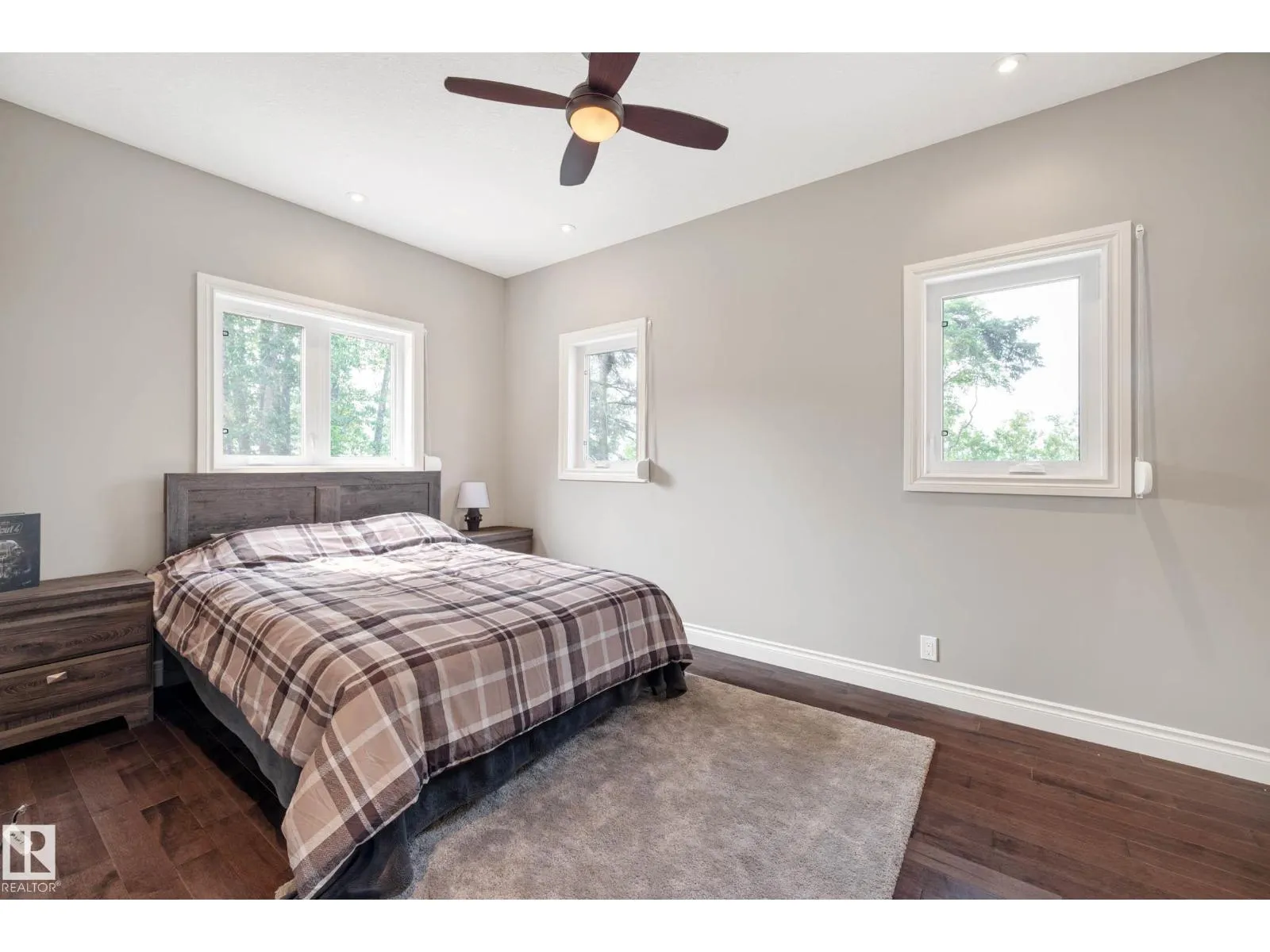 Enjoy this year-round lakefront living with 220 ft of private shoreline and southwest exposure beside a protected bird sanctuary. This rare flat, sun-soaked lot features a stunning A-frame with 1,800 sq ft above grade and over 2,800 sq ft of total space, including a developed walkout basement. The main floor boasts an open-concept kitchen and great room with hardwood floors, gas fireplace, and lake views, plus a bedroom, 3-pc bath, and laundry. The chefâs kitchen offers espresso cabinetry, stainless steel appliances, corian counters, pantry, and prep island with eating bar. Upstairs, a loft and serene primary suite with ensuite provide the perfect retreat. The basement adds a large rec room, spacious bedroom, 4-pc bath, and walkout to a stamped concrete patio, private yard, and beach. Freshly painted with central A/C, central vac, shutters, alarm, RV parking, and new secure fence and gate. A perfect year-round retreat! (id:27476)