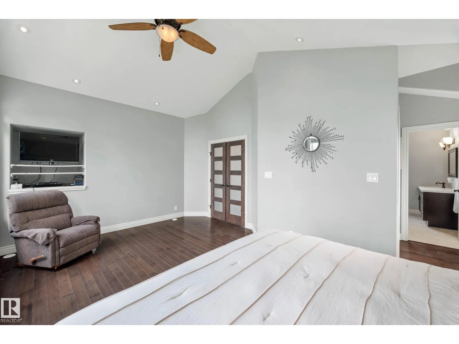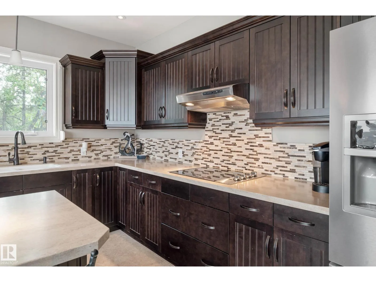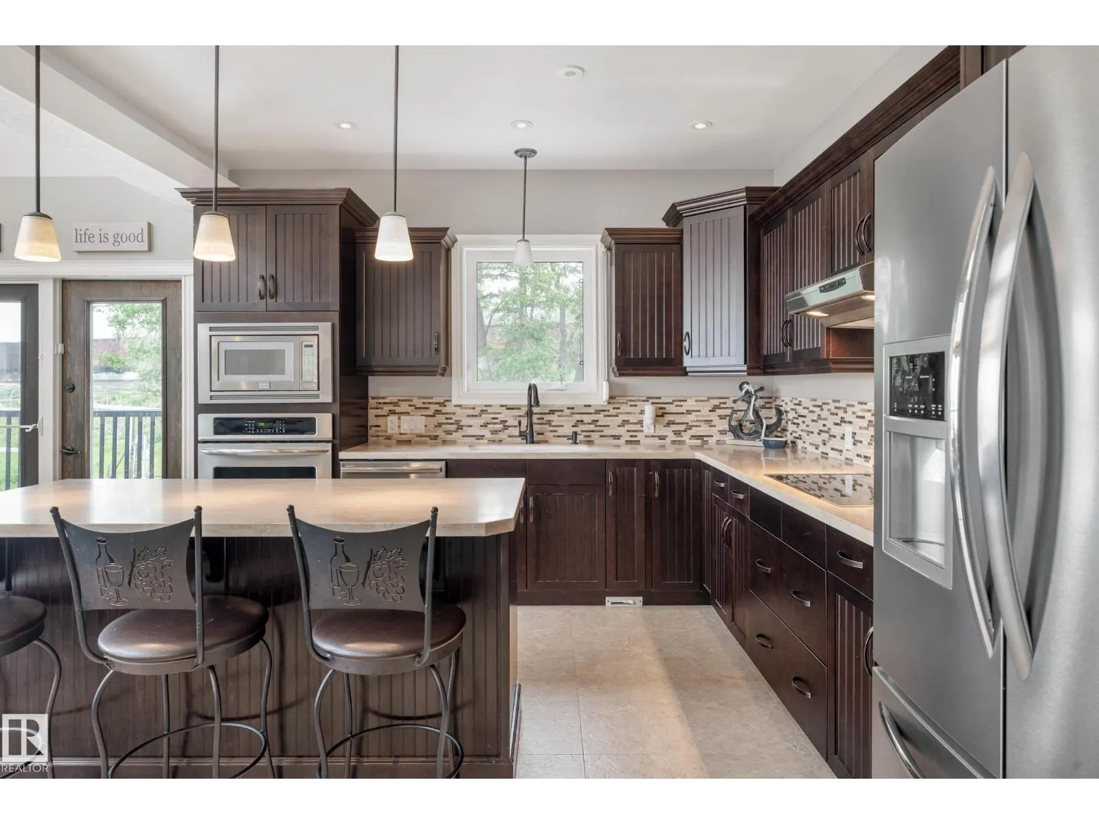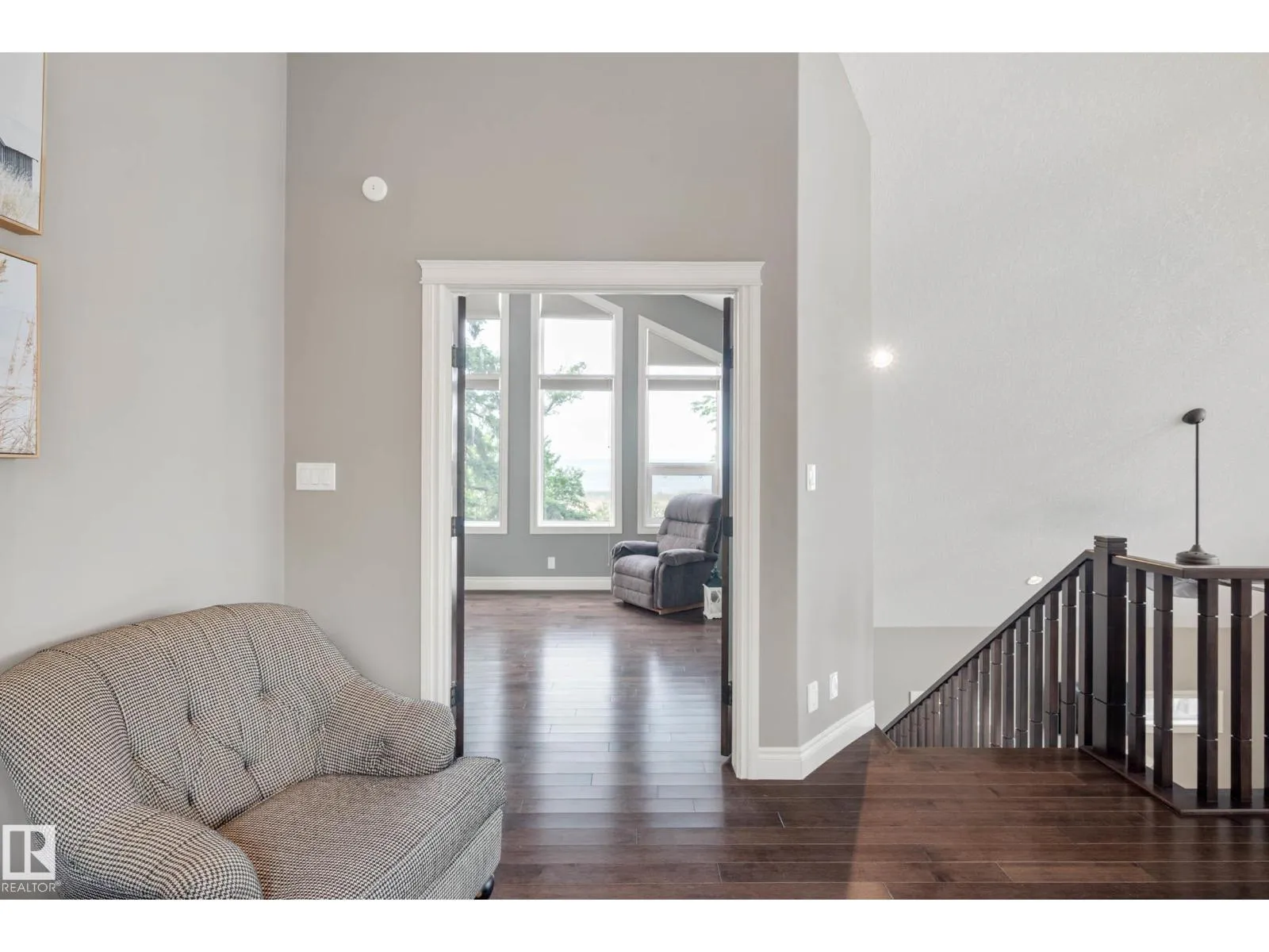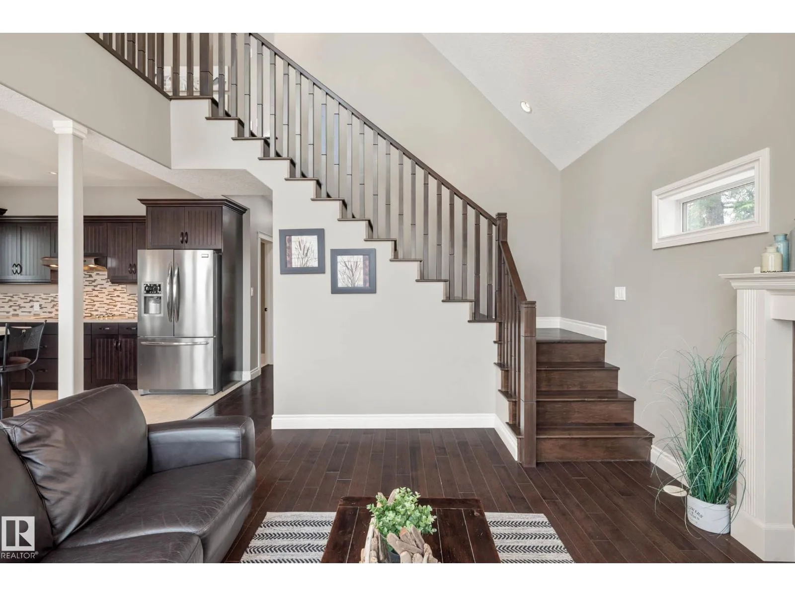 Enjoy this year-round lakefront living with 220 ft of private shoreline and southwest exposure beside a protected bird sanctuary. This rare flat, sun-soaked lot features a stunning A-frame with 1,800 sq ft above grade and over 2,800 sq ft of total space, including a developed walkout basement. The main floor boasts an open-concept kitchen and great room with hardwood floors, gas fireplace, and lake views, plus a bedroom, 3-pc bath, and laundry. The chefâs kitchen offers espresso cabinetry, stainless steel appliances, corian counters, pantry, and prep island with eating bar. Upstairs, a loft and serene primary suite with ensuite provide the perfect retreat. The basement adds a large rec room, spacious bedroom, 4-pc bath, and walkout to a stamped concrete patio, private yard, and beach. Freshly painted with central A/C, central vac, shutters, alarm, RV parking, and new secure fence and gate. A perfect year-round retreat! (id:27476)