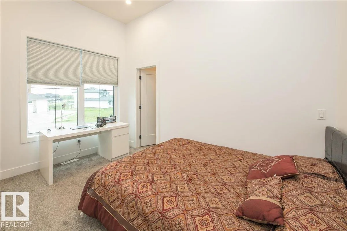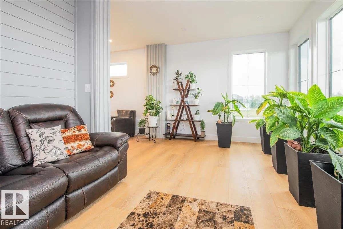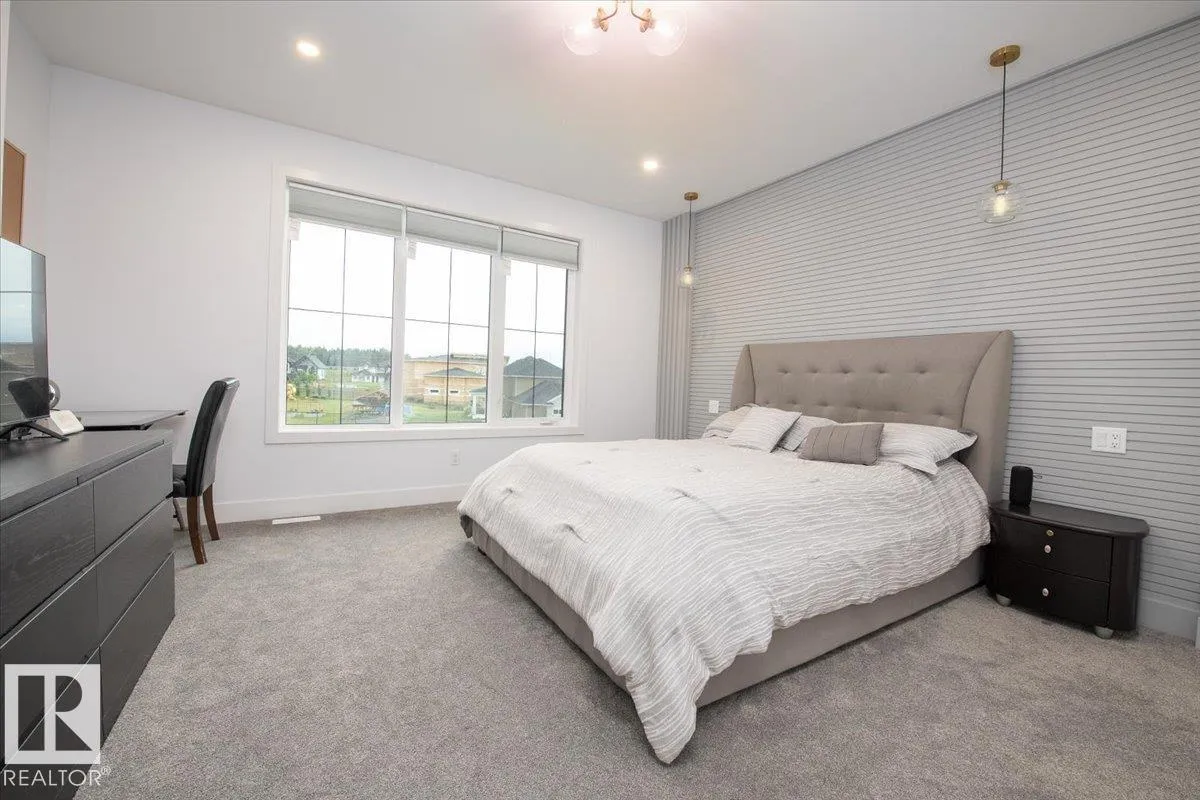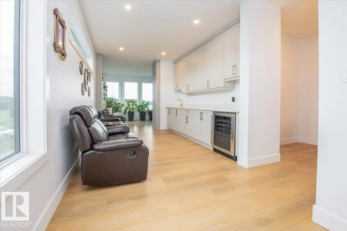 Experience luxury living in this stunning 2023 custom estate, just 15 minutes west of Edmonton. Designed to impress, this 6-bedroom, 4-bath home combines modern elegance with family-friendly comfort. The open-concept main floor boasts soaring 10-ft ceilings, luxury vinyl plank flooring, and a chefâs dream kitchen with gas range, quartz counters, oversized island, and soft-close cabinetryâperfect for both everyday living and entertaining. A main-floor bedroom and full bath add convenience for guests or multigenerational living. Upstairs, the showstopping primary suite offers a spa-like ensuite with soaking tub, dual sinks, and a walk-in closet. A wet bar, flex room, laundry, and two more bedrooms complete the upper level. The fully finished basement features two additional bedrooms, a spacious rec room with wet bar, and another full bath. Enjoy summer evenings on the large deck with gas BBQ hookup. With a triple garage and extra parking, this home checks every box. (id:27476)