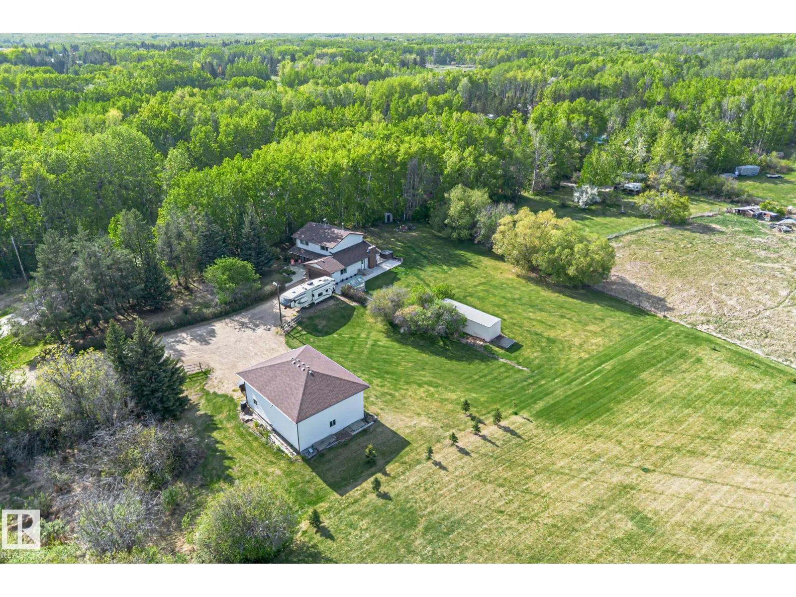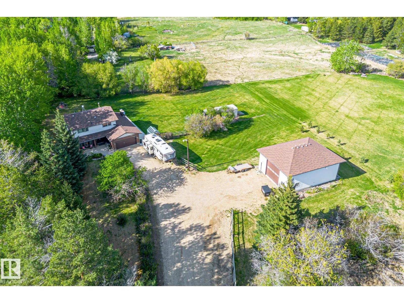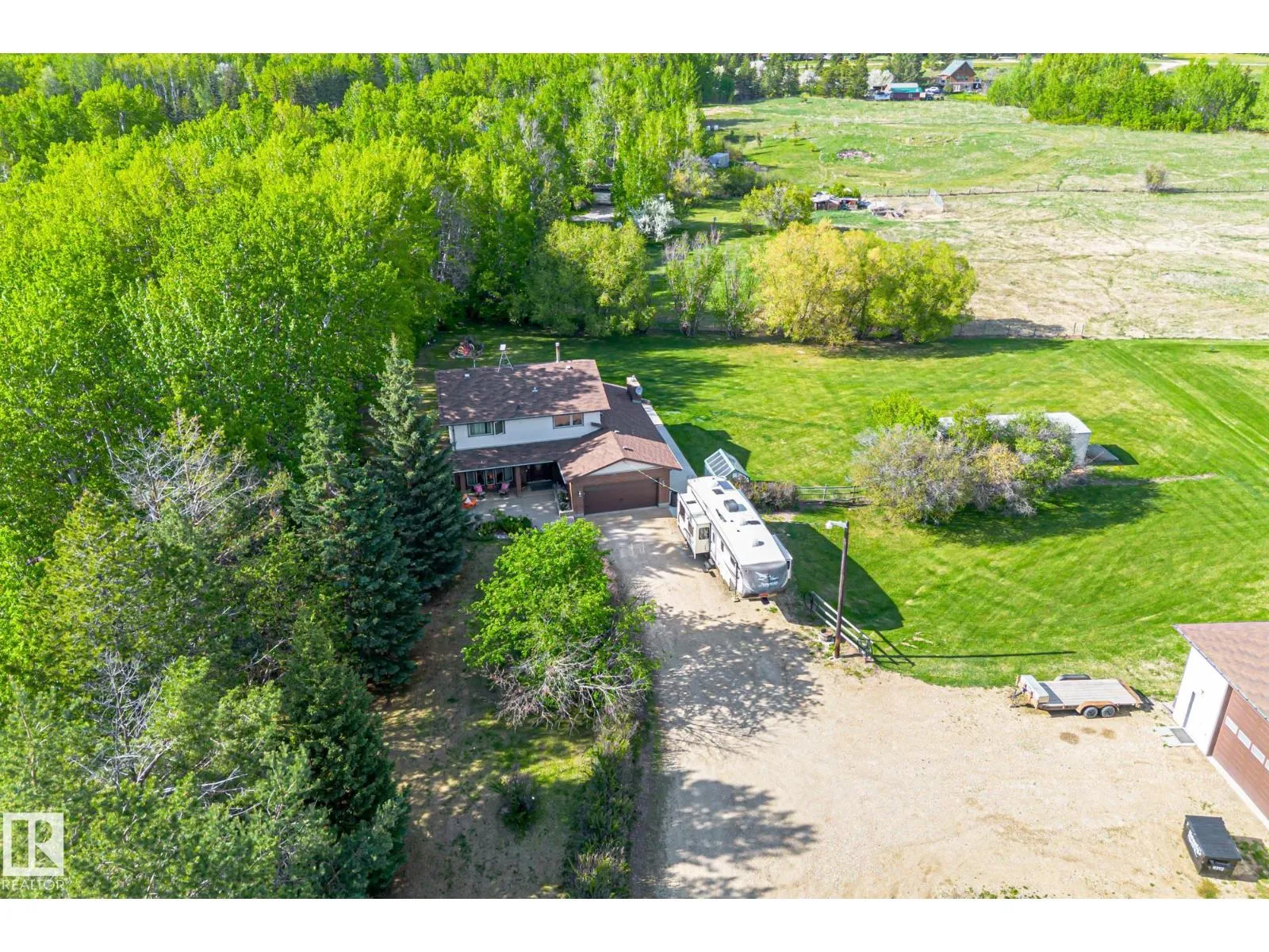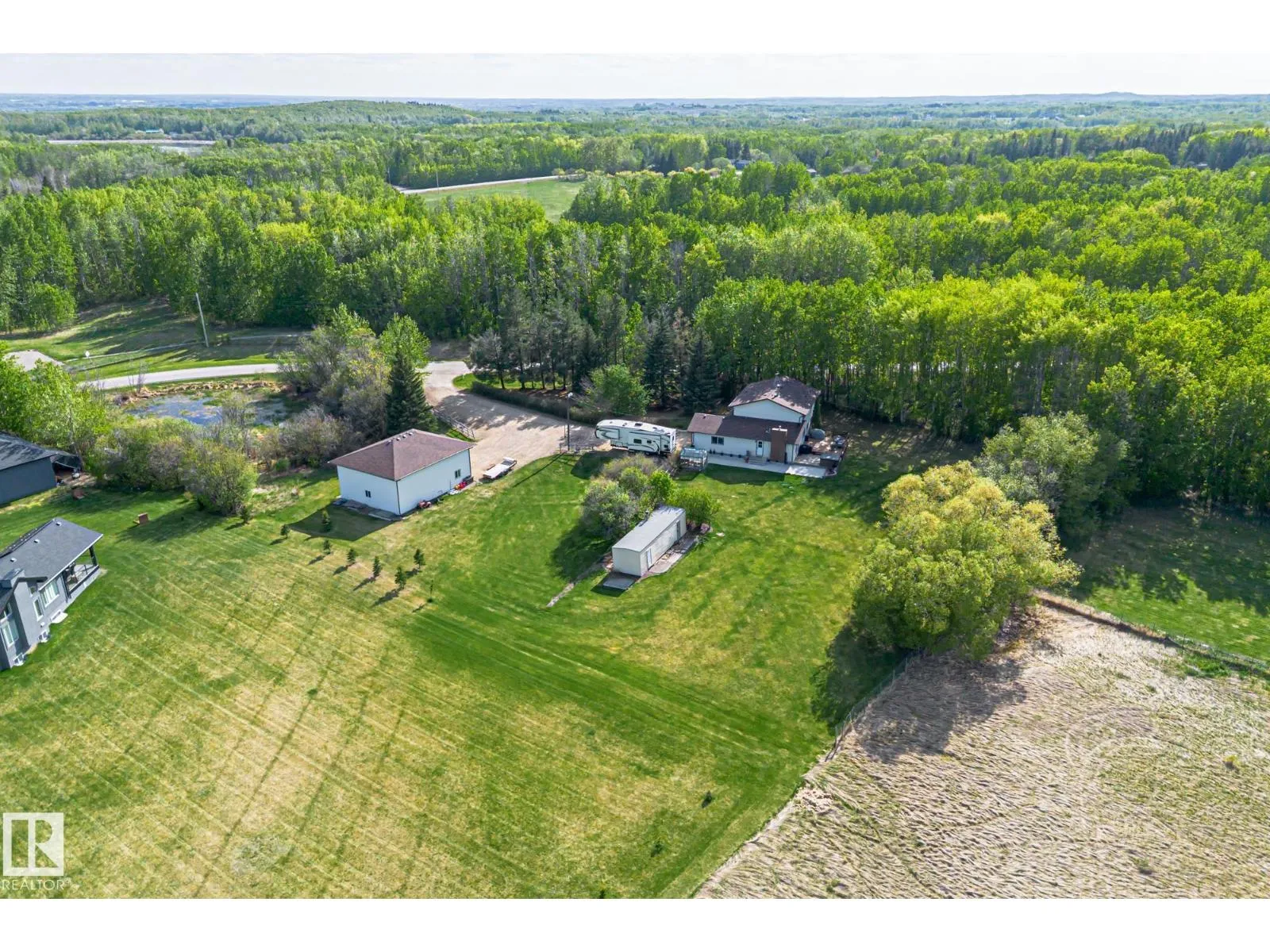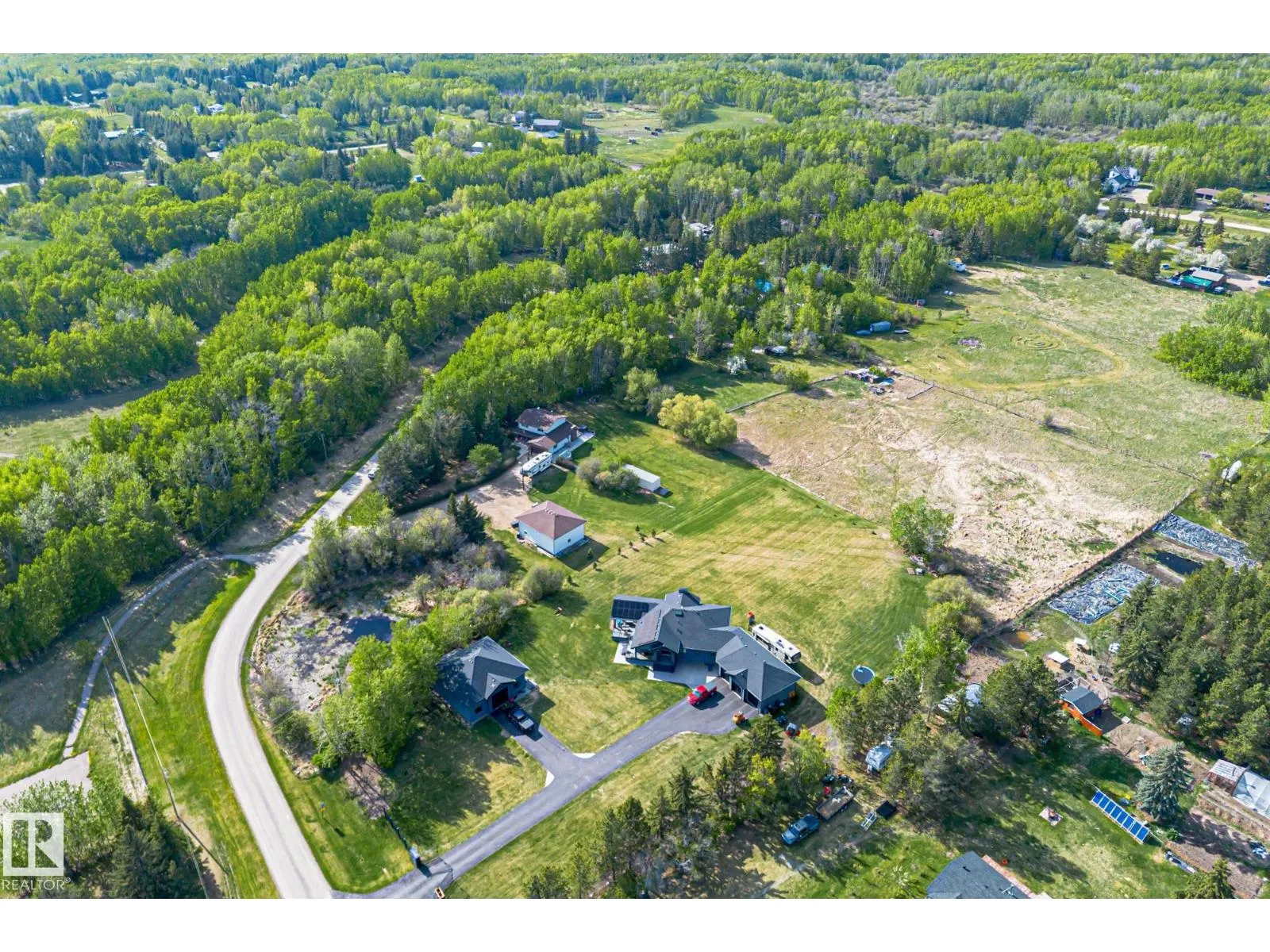 Welcome to this beautifully upgraded acreage in desirable Panorama Heightsâjust minutes from Spruce Grove! Set on 2 treed acres, this fully finished 4-bedroom, 4-bathroom home offers comfort, style, and space for the whole family. Enjoy year-round comfort with central air conditioning and peace of mind with an upgraded septic treatment system. The spacious layout includes quality finishes throughout, a bright kitchen with stunning hickory cabinets and granite counter tops. Fully developed basement. Step outside to a massive 30â x 40â SHOP Insulated, boarded, and heated, perfect for projects, storage, or small business use. The yard offers room to play, relax, and enjoy nature in a quiet subdivision with a strong sense of community. Located close to Muir Lake, and Muir Lake school. This home blends country serenity with city convenience. Recent upgrades, turn-key condition, and thoughtful extras make this property a rare find. Donât miss your opportunity to enjoy acreage living at its best! (id:27476)