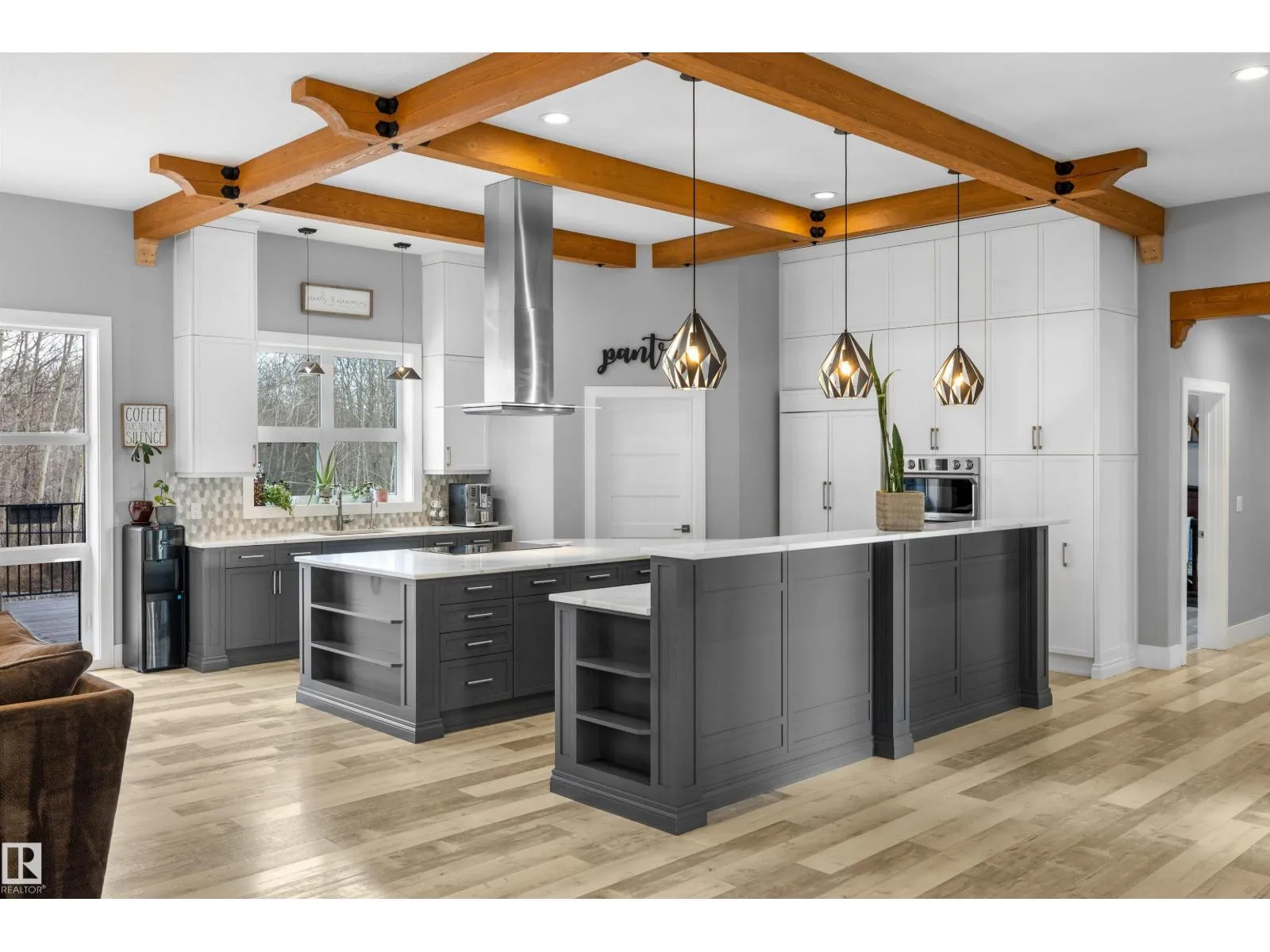 Discover 67 acres of rolling hills, open fields, wetlands, trails, and fruit trees including saskatoons, hazelnuts, raspberries, and red currants. A 1/4 mile gravel driveway leads to a gated compound with automated wrought-iron gates. Built with advanced standards, the home features 65+ screw piles, 36 foundation, Genics-treated lumber, triple-pane low-E windows, R28 walls, R60+ attic, and a state-of-the-art septic system. The quad attached garage includes a dog wash, while the 44âx70â shop offers 15â ceilings, ICF grade beam on piles, 12â slab, full kitchen, bath, 280 ft well, radiant and forced air heat, air lines, and industrial filtration. Inside, enjoy in-floor heating, LED lighting, high-efficiency fireplaces, and premium finishes throughout. A rare opportunity to own a secure, private estate with unmatched craftsmanship and modern comfort. (id:27476)