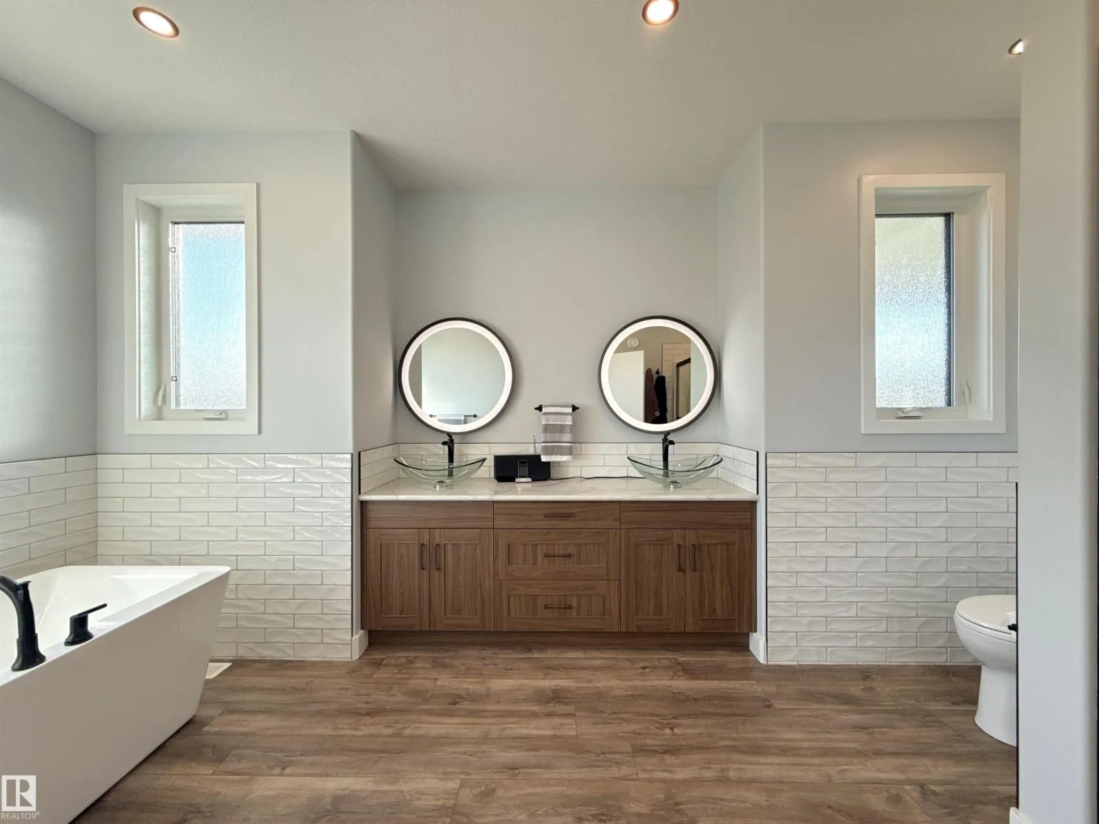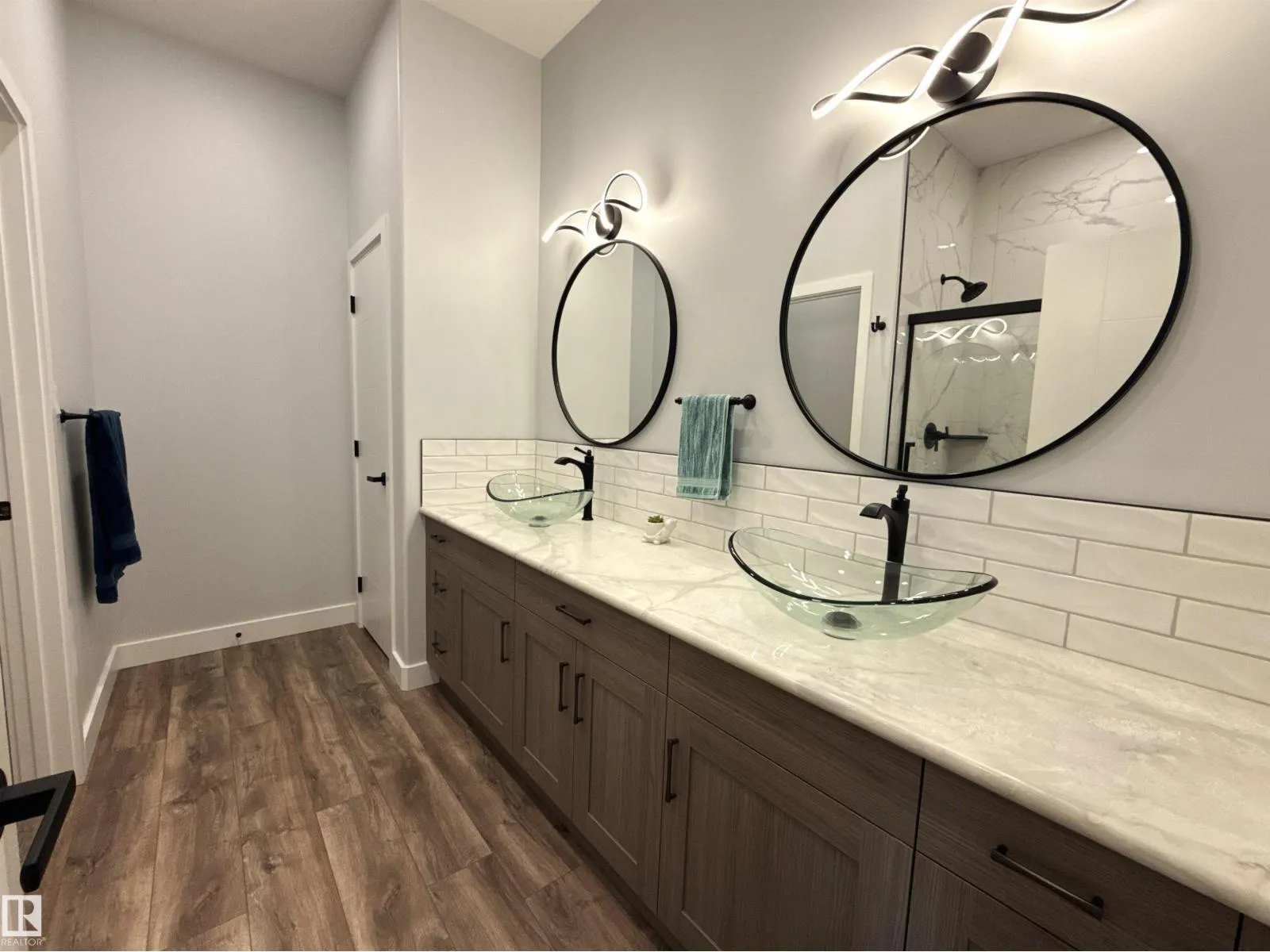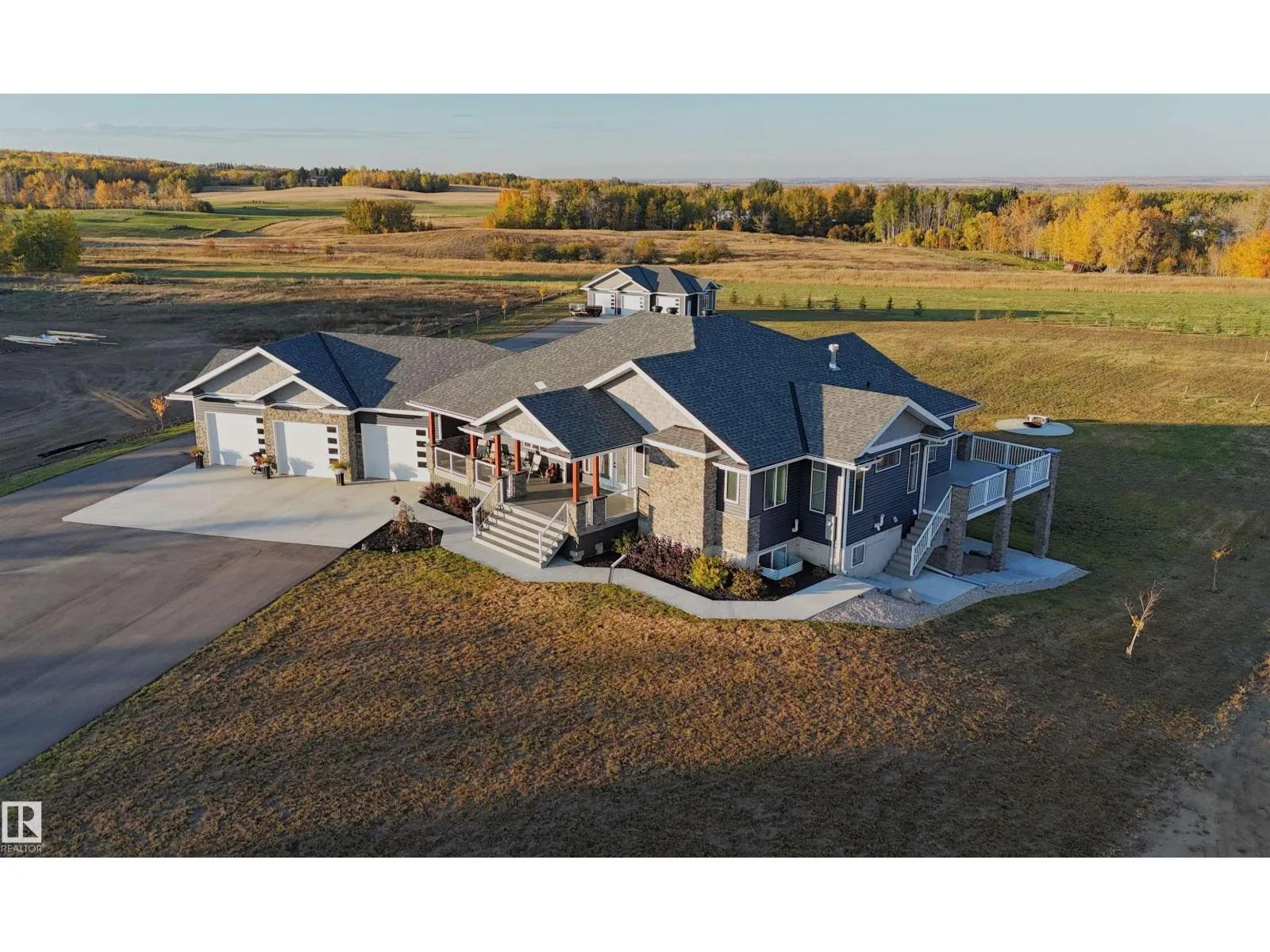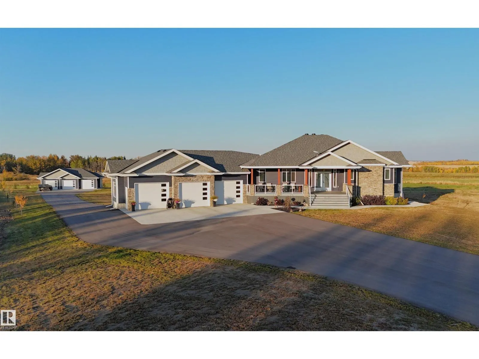 Executive Custom Walkout Bungalow with Attached Triple Garage (39Wx25L, 220V, water taps & floor drains) & Shop (42Wx28L) on 2.55 Acres at the End of a Quiet Cul-de-sac in Brenmar Estates, 10 min N of Spruce Grove. This 2022-built 2,175 sqft (+full basement) home offers an open, light-filled design with central A/C, luxury VP flooring, triple pane windows and a flowing layout ideal for family living or entertaining. Main floor features a bright living room w/ gas fireplace, central dining area w/ deck access and a gourmet kitchen w/ stone counters, eat-up island & walk-through butlerâs pantry w/ 2nd fridge. Ownerâs suite includes deck access, walk-in closet and a luxe 5-pc ensuite w/ soaker tub. Also on main: 2nd bedroom, 4-pc bath, laundry room & mudroom. Walkout basement boasts 2 more bedrooms, 4-pc bath & massive family/rec room w/ full wet bar, fireplace & patio access. Outdoors: covered patio, Durabuilt deck, composite front porch, fire pit & paved driveway. Acreage privacy and modern luxury. (id:27476)