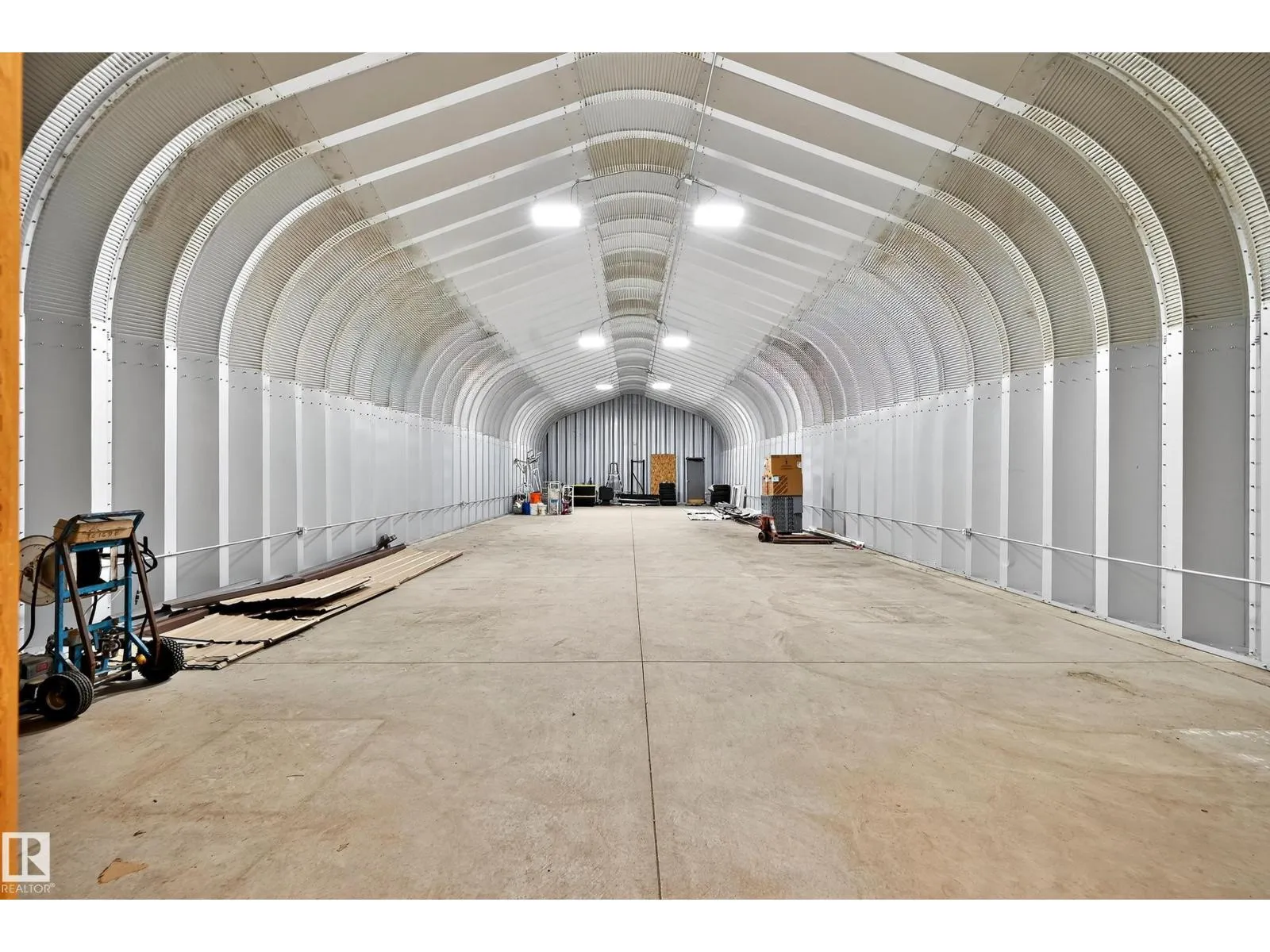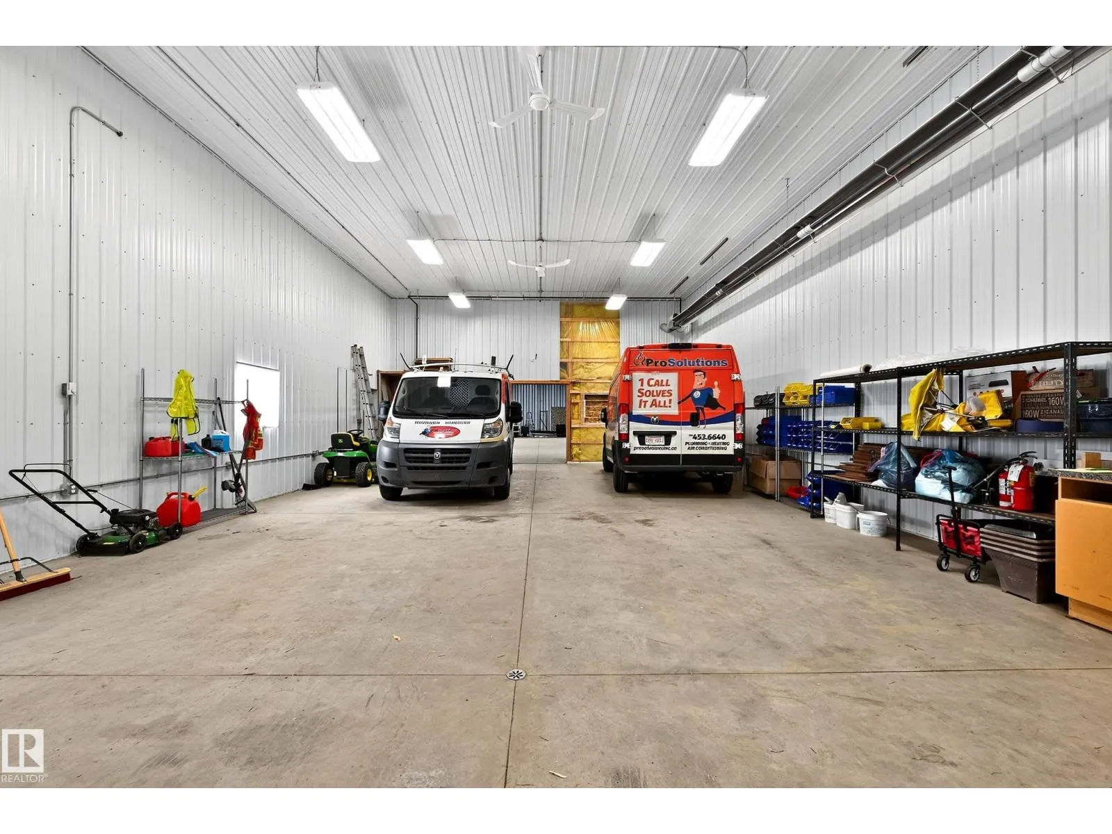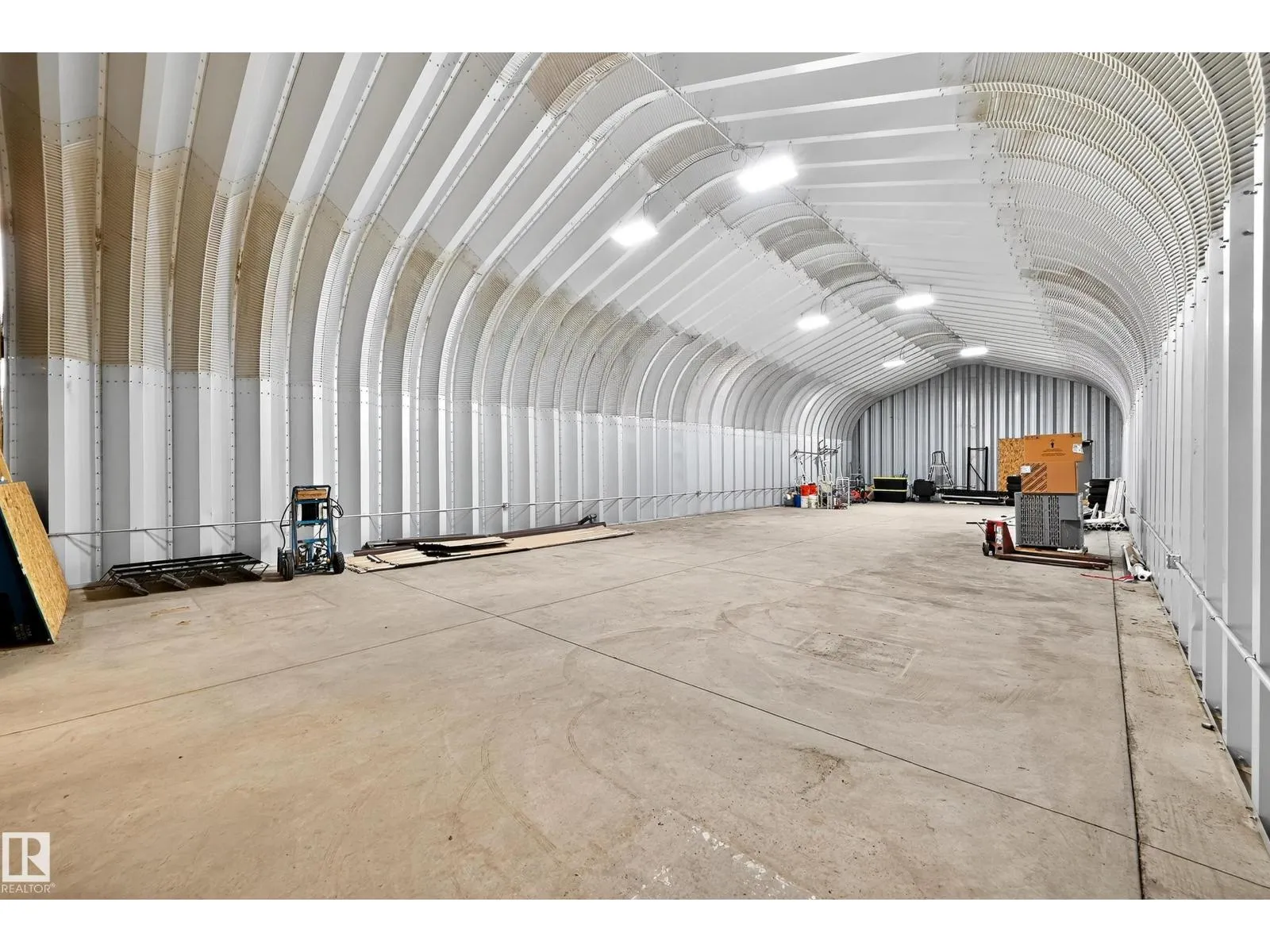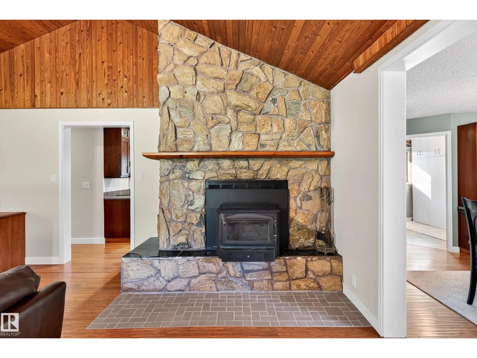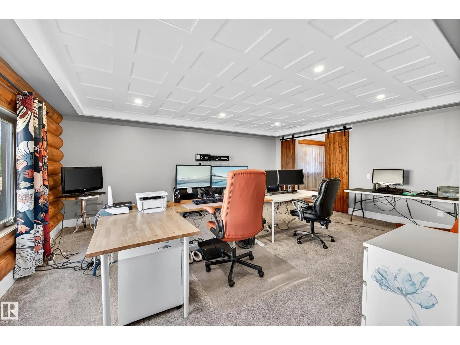 Stunning 2,034 sq.ft log bungalow on 2.06 private acres in Spanish Oaks, just off Hwy 60 and minutes from Edmonton! This beautifully upgraded home features vaulted ceilings, hand-carved bamboo flooring, a cozy wood-burning fireplace, modern kitchen with built-in appliances, 3 spacious bedrooms, 2 living rooms, and a formal dining area. Recent upgrades include a metal roof, triple-paned windows, furnace, hot water tank, pressure tank, flooring, and full log treatment. Outside, enjoy a 28' x 50' shop with radiant heat, 14' high door, 220 power, 200 amp service, floor drains & room to park your RV indoors! Additional features: $150K in recent upgrades, new HVAC, water treatment system, oversized heater, 8x10 & 16x16 sheds, a 16x24 powered clubhouse, and a large storage Quonset. The landscaped yard includes fruit trees, perennials, a large deck, firepit & garden area. Located at the end of a quiet cul-de-sac, this incredible property offers privacy, functionality & charm. A rare find! (id:27476)