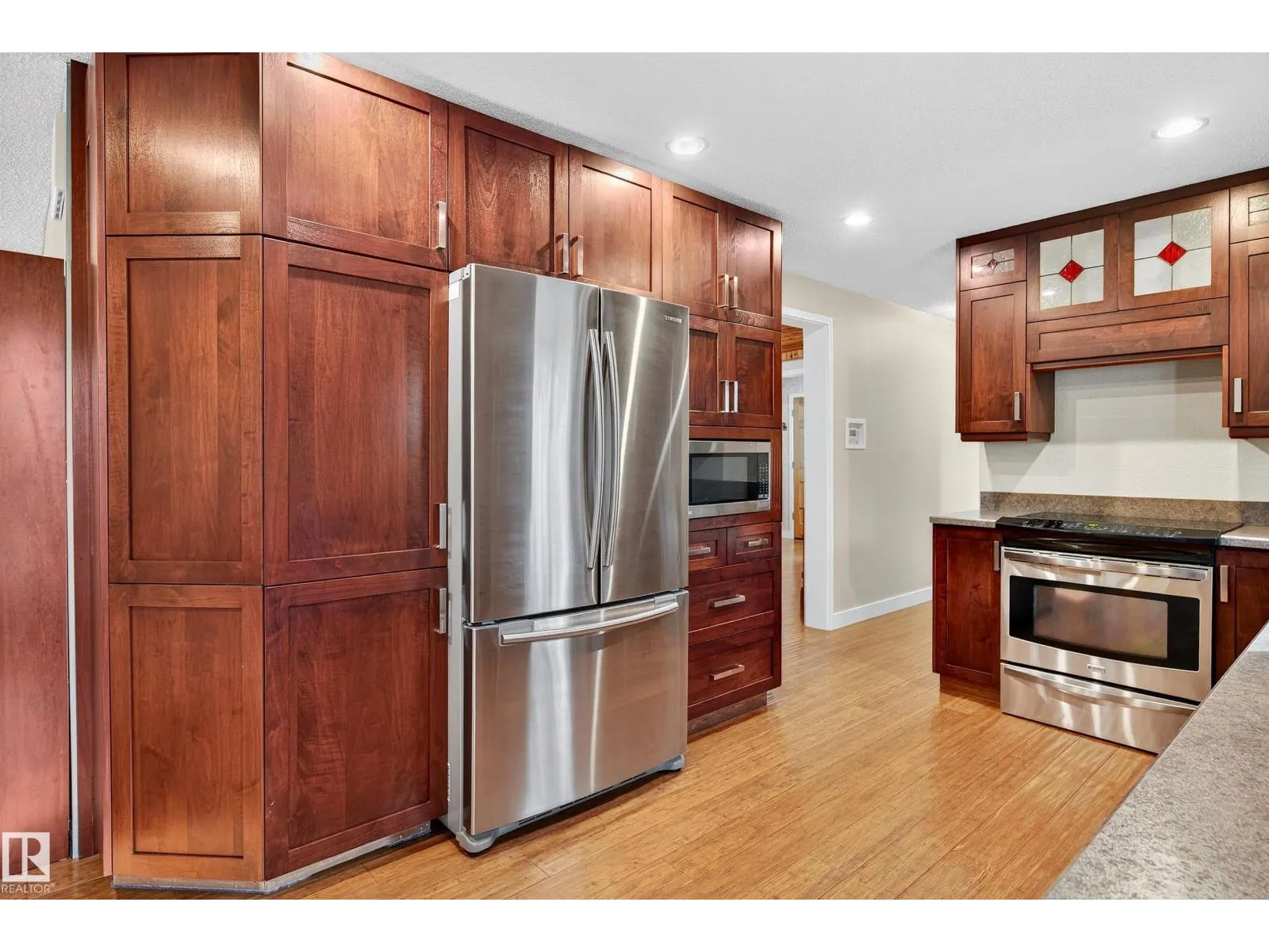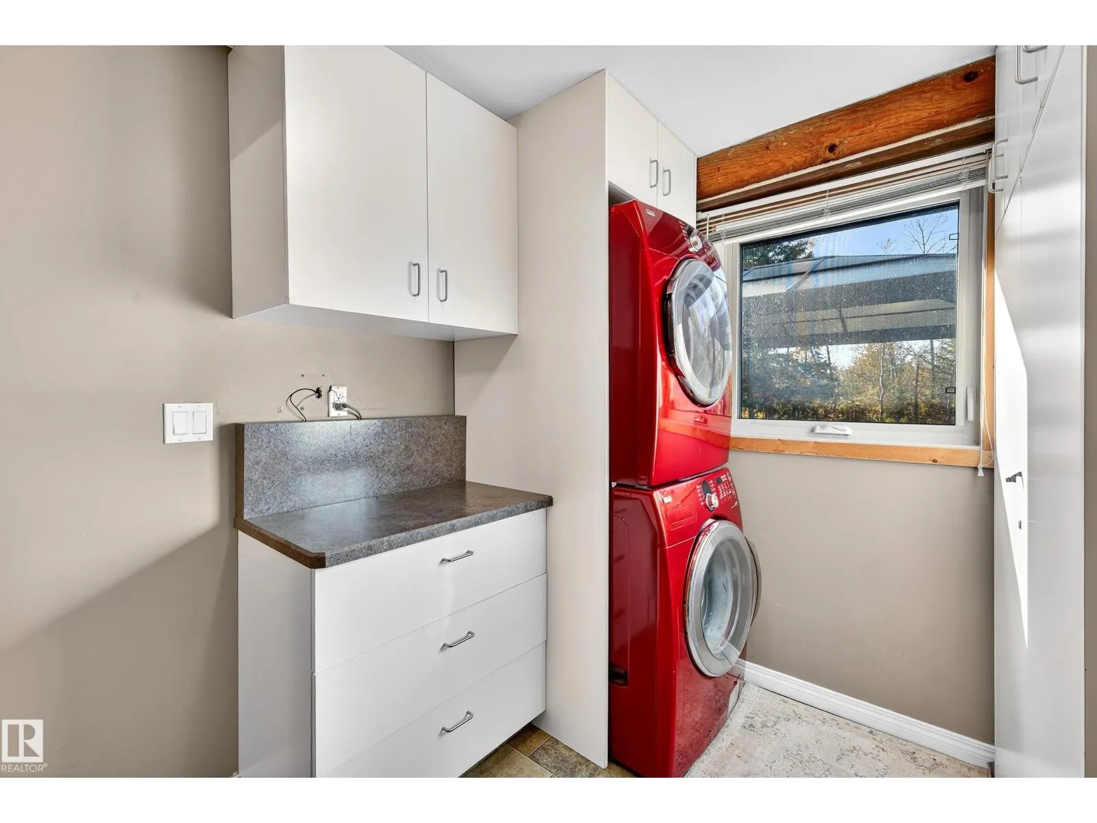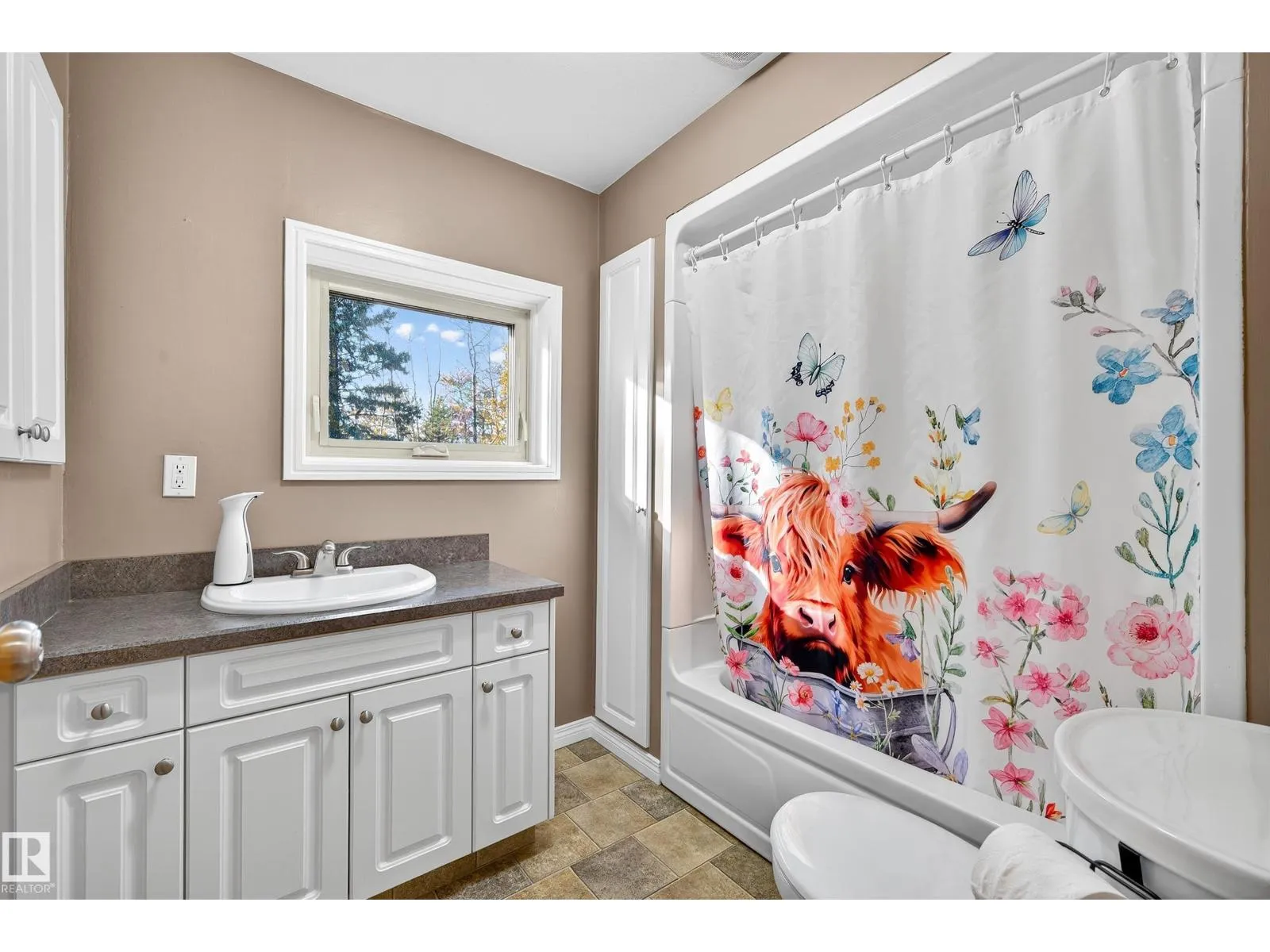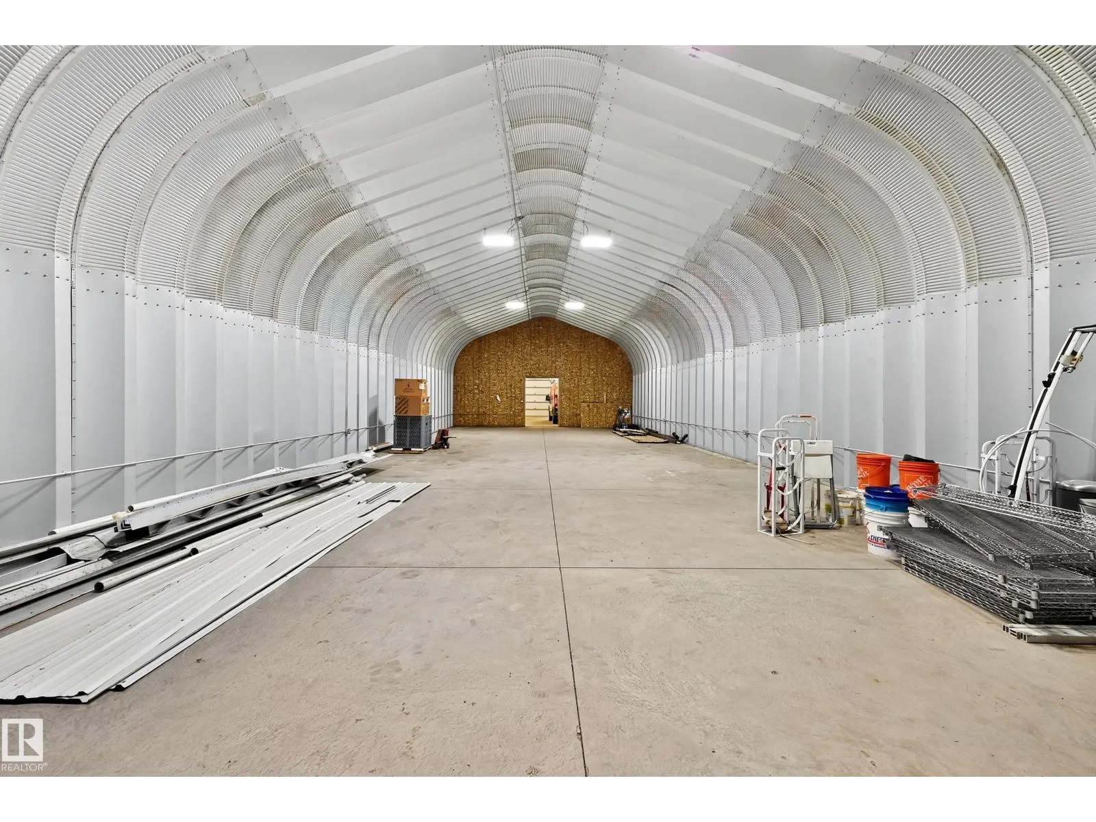 Stunning 2,034 sq.ft log bungalow on 2.06 private acres in Spanish Oaks, just off Hwy 60 and minutes from Edmonton! This beautifully upgraded home features vaulted ceilings, hand-carved bamboo flooring, a cozy wood-burning fireplace, modern kitchen with built-in appliances, 3 spacious bedrooms, 2 living rooms, and a formal dining area. Recent upgrades include a metal roof, triple-paned windows, furnace, hot water tank, pressure tank, flooring, and full log treatment. Outside, enjoy a 28' x 50' shop with radiant heat, 14' high door, 220 power, 200 amp service, floor drains & room to park your RV indoors! Additional features: $150K in recent upgrades, new HVAC, water treatment system, oversized heater, 8x10 & 16x16 sheds, a 16x24 powered clubhouse, and a large storage Quonset. The landscaped yard includes fruit trees, perennials, a large deck, firepit & garden area. Located at the end of a quiet cul-de-sac, this incredible property offers privacy, functionality & charm. A rare find! (id:27476)