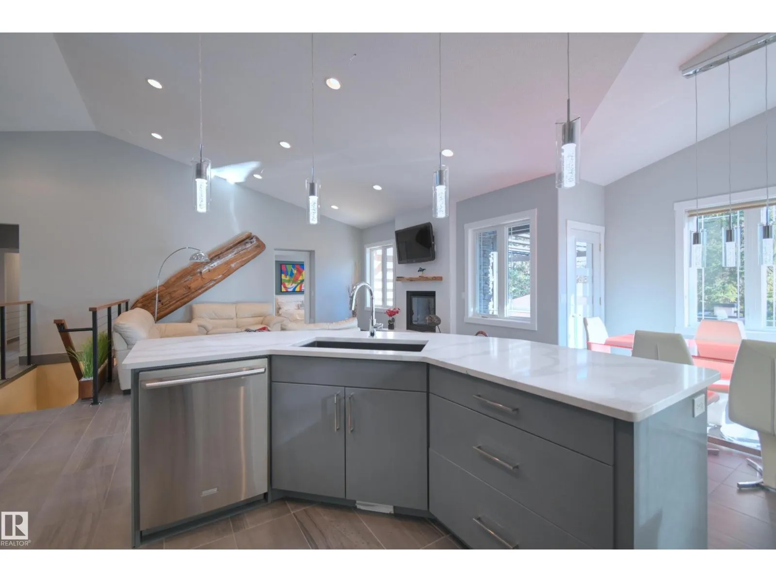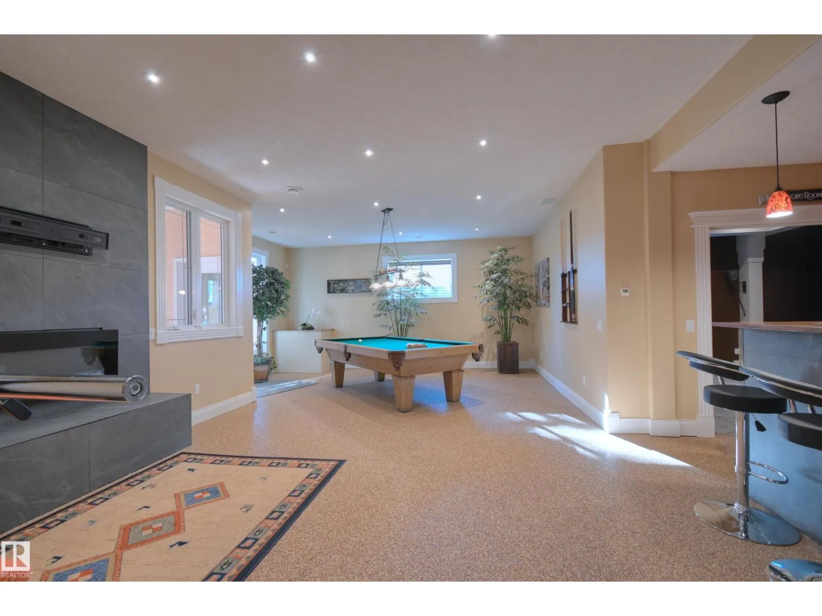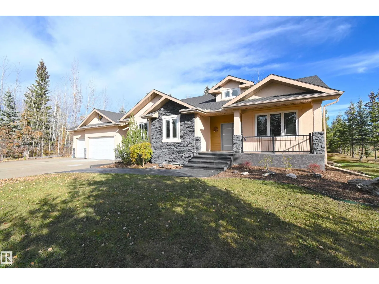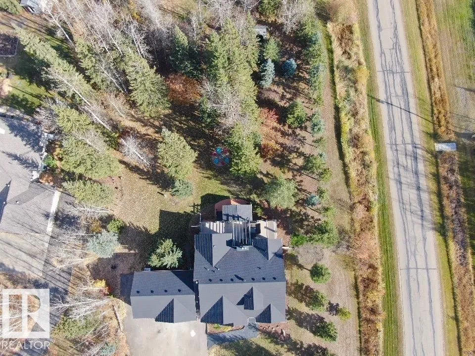 Exceptional Executive Acreage in Prestigious Atim Creek! Just minutes North of Town, this 5-bed + den custom-built bungalow has been beautifully renovated. The updated kitchen features European cabinets, quartz counters, island & a huge new pantry. Ample natural light, a fireplace & vaulted ceilings add elegance to the open main living space. Large windows in the living and dining rooms offer a treed view of the property. The primary suite is HUGE, offering a gorgeous new 5-pc ensuite, walk-in closet, fireplace and deck access. Two additional beds, den, laundry & dog wash complete the main floor. The finished lower level has a family/games room with fireplace and wet bar, 4th & 5th beds (both with ensuites), media room and three more bathrooms. The huge deck is perfect for backyard entertaining, and the lower level walks out to a large, sheltered patio. Gather around the fire pit in the private, treed yard. Parking is never a problem thanks to the oversized heated triple garage. Just 12 min to Edmonton! (id:27476)