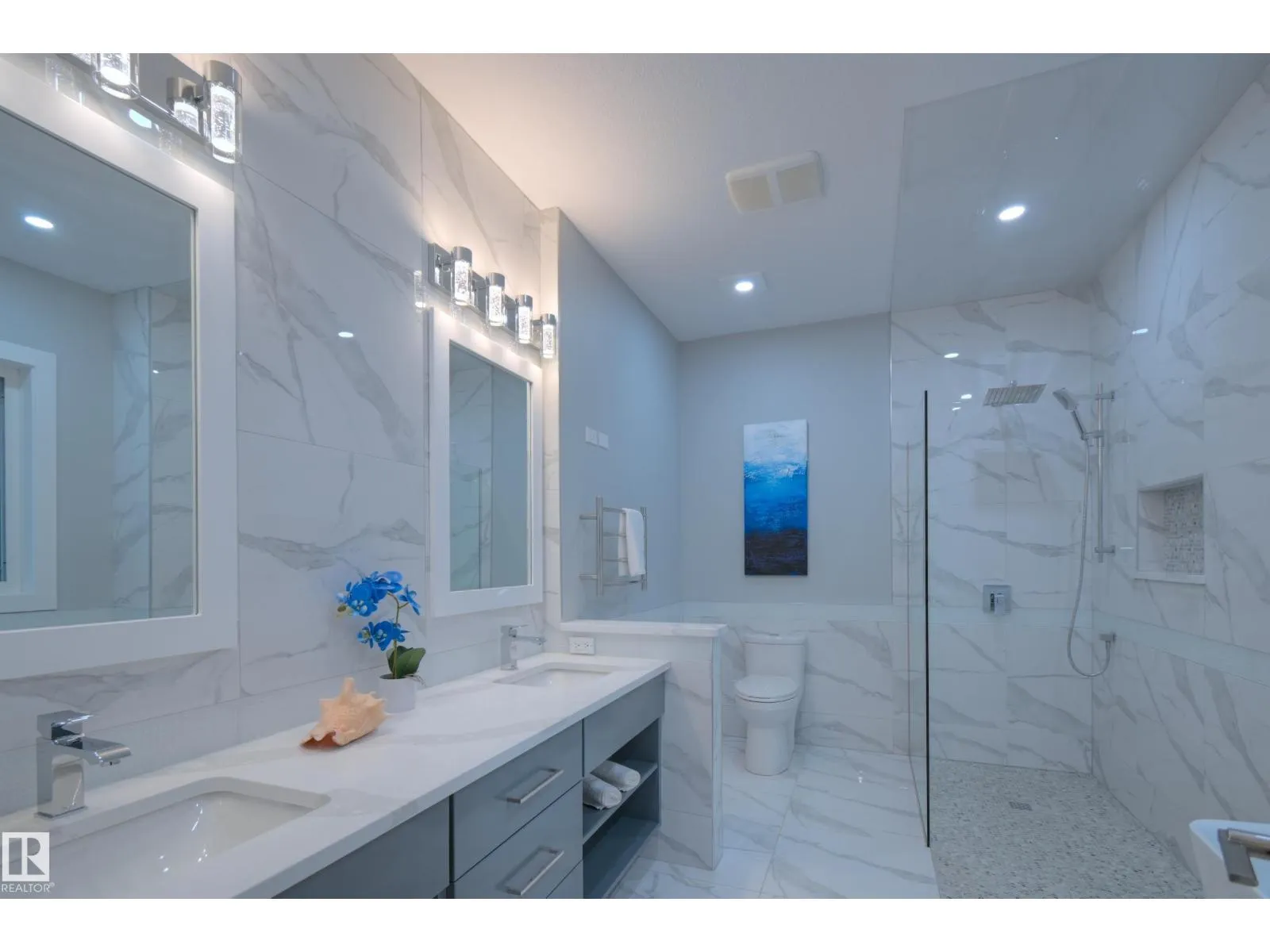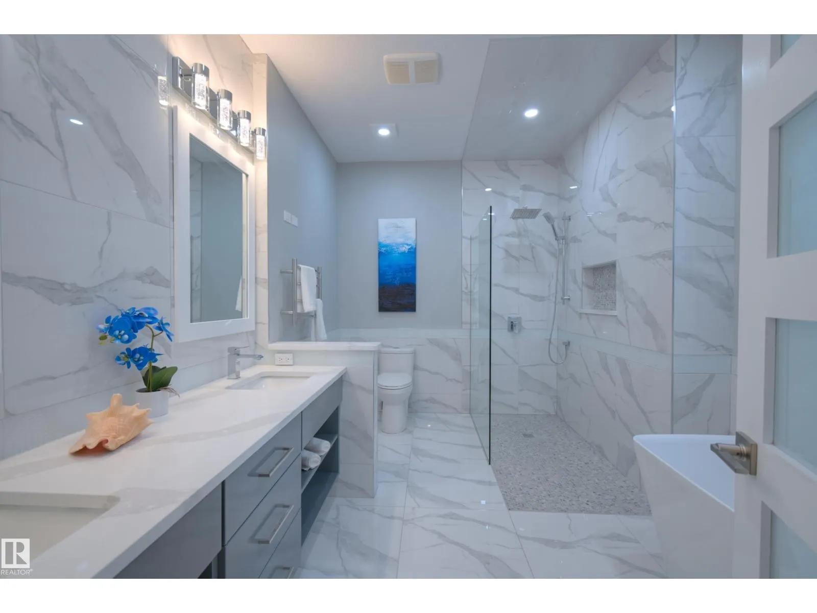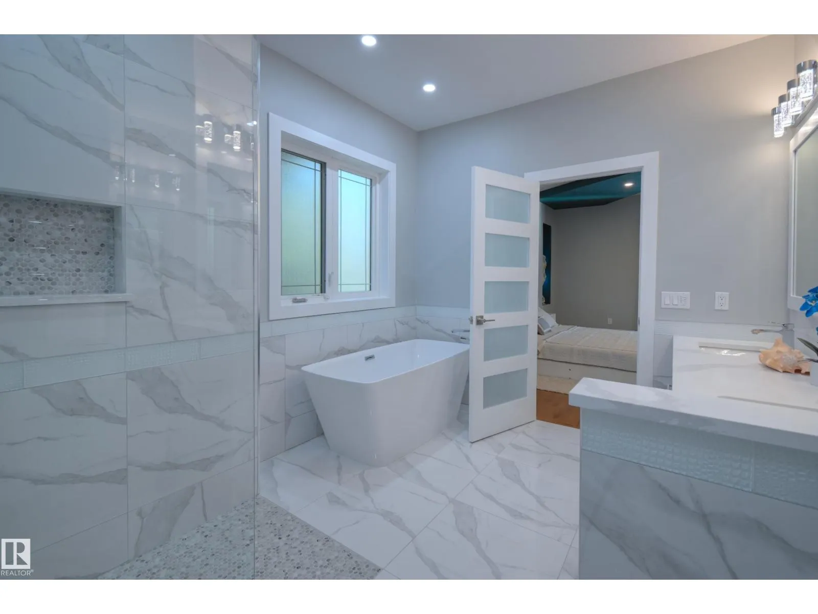 Exceptional Executive Acreage in Prestigious Atim Creek! Just minutes North of Town, this 5-bed + den custom-built bungalow has been beautifully renovated. The updated kitchen features European cabinets, quartz counters, island & a huge new pantry. Ample natural light, a fireplace & vaulted ceilings add elegance to the open main living space. Large windows in the living and dining rooms offer a treed view of the property. The primary suite is HUGE, offering a gorgeous new 5-pc ensuite, walk-in closet, fireplace and deck access. Two additional beds, den, laundry & dog wash complete the main floor. The finished lower level has a family/games room with fireplace and wet bar, 4th & 5th beds (both with ensuites), media room and three more bathrooms. The huge deck is perfect for backyard entertaining, and the lower level walks out to a large, sheltered patio. Gather around the fire pit in the private, treed yard. Parking is never a problem thanks to the oversized heated triple garage. Just 12 min to Edmonton! (id:27476)