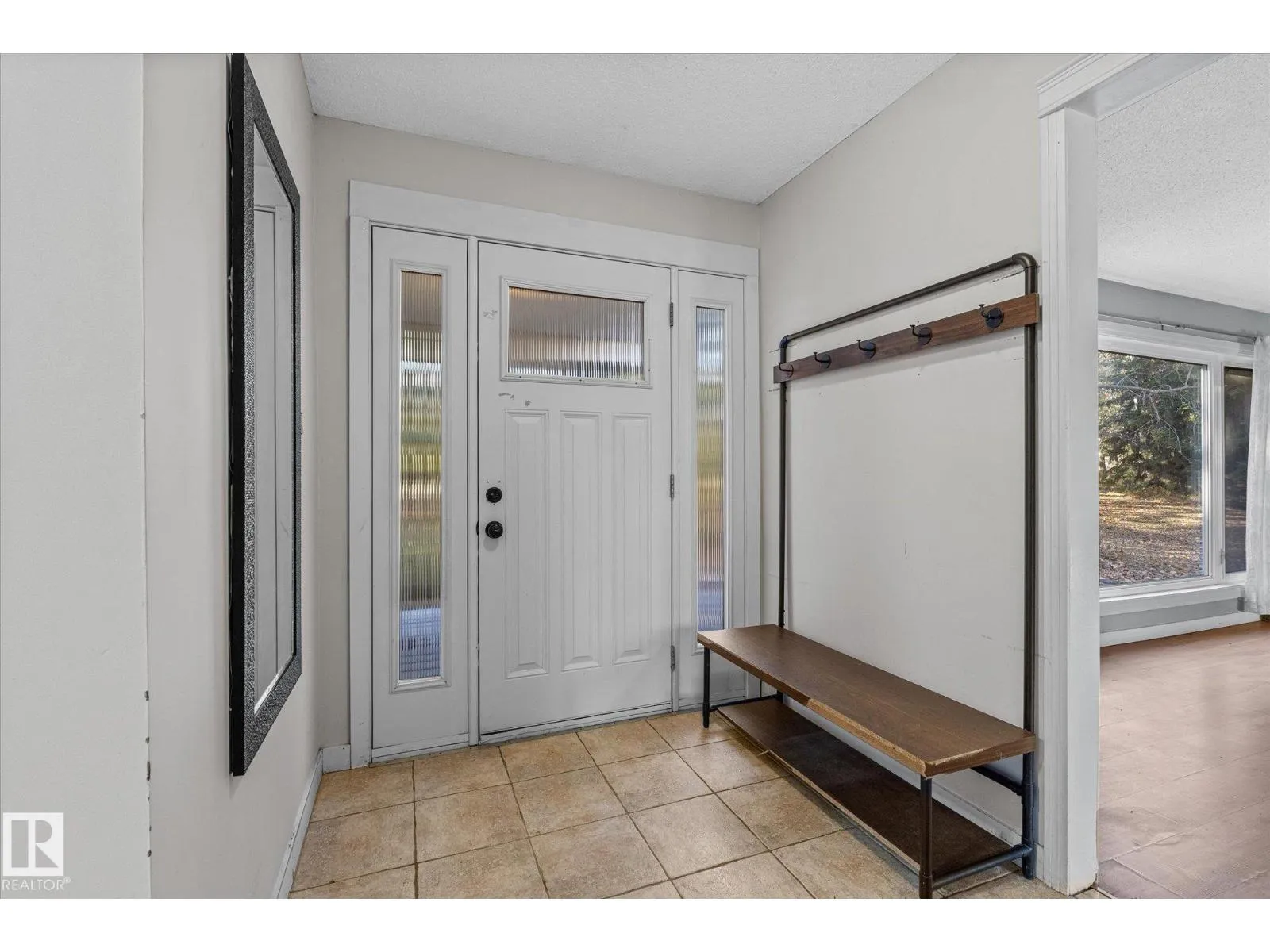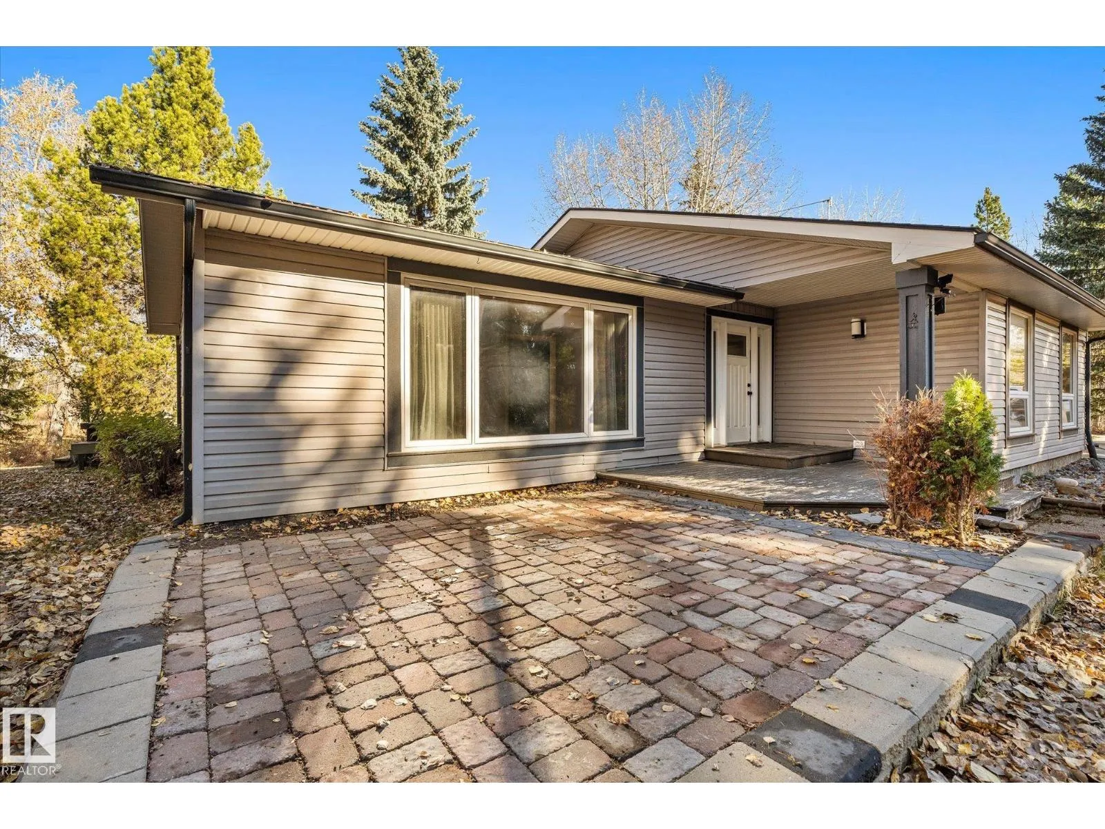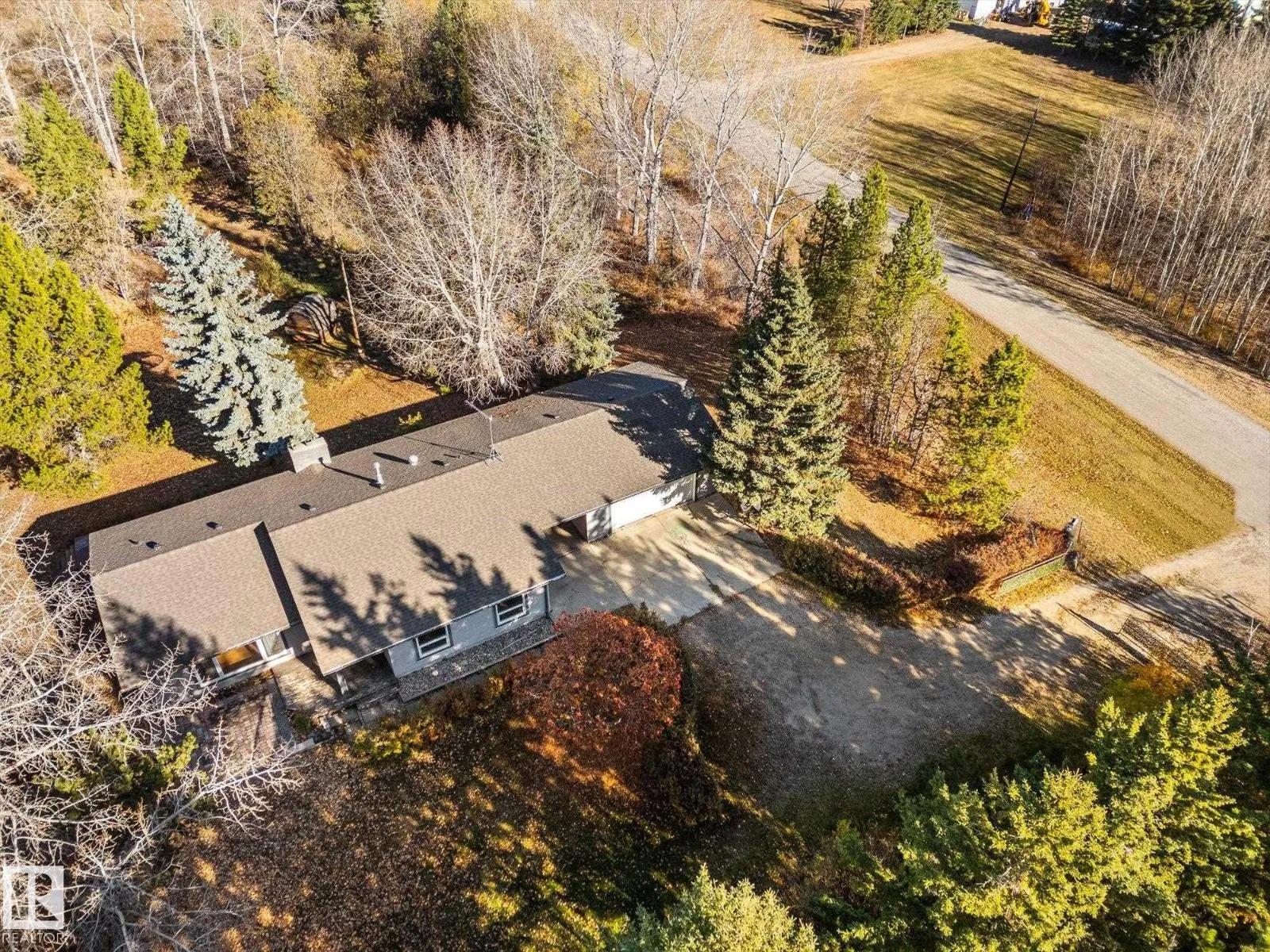 Welcome to this prime location 2.99 acre private tree lined bungalow in Grandmuir Estates just minutes north of spruce grove. Major updates include furnace (15), roof (16), and windows (14) The modern kitchen features white cabinetry, spacious quartz countertops, updated lighting, and a black stone farmhouse sink. The updated 4 pc bathroom mirrors this sleek style. The dining area opens to a spacious deck perfect for entertaining overlooking a landscaped yard w/ space to expand. 3 bedrooms, a large living room, & a cozy family room with a wood-burning fireplace complete the main floor. The partially finished basement awaits your finishing touches w/ space for a rec room, laundry area, and extra storage. The garage is oversized 26 x 24 ft, w/ breezeway attached for added charm and storage With some fresh paint and sweat equity this home can be restored to its full potential. Located walking distance to Muir Lake and a short drive into the city. Come discover country living, with city convenience! (id:27476)