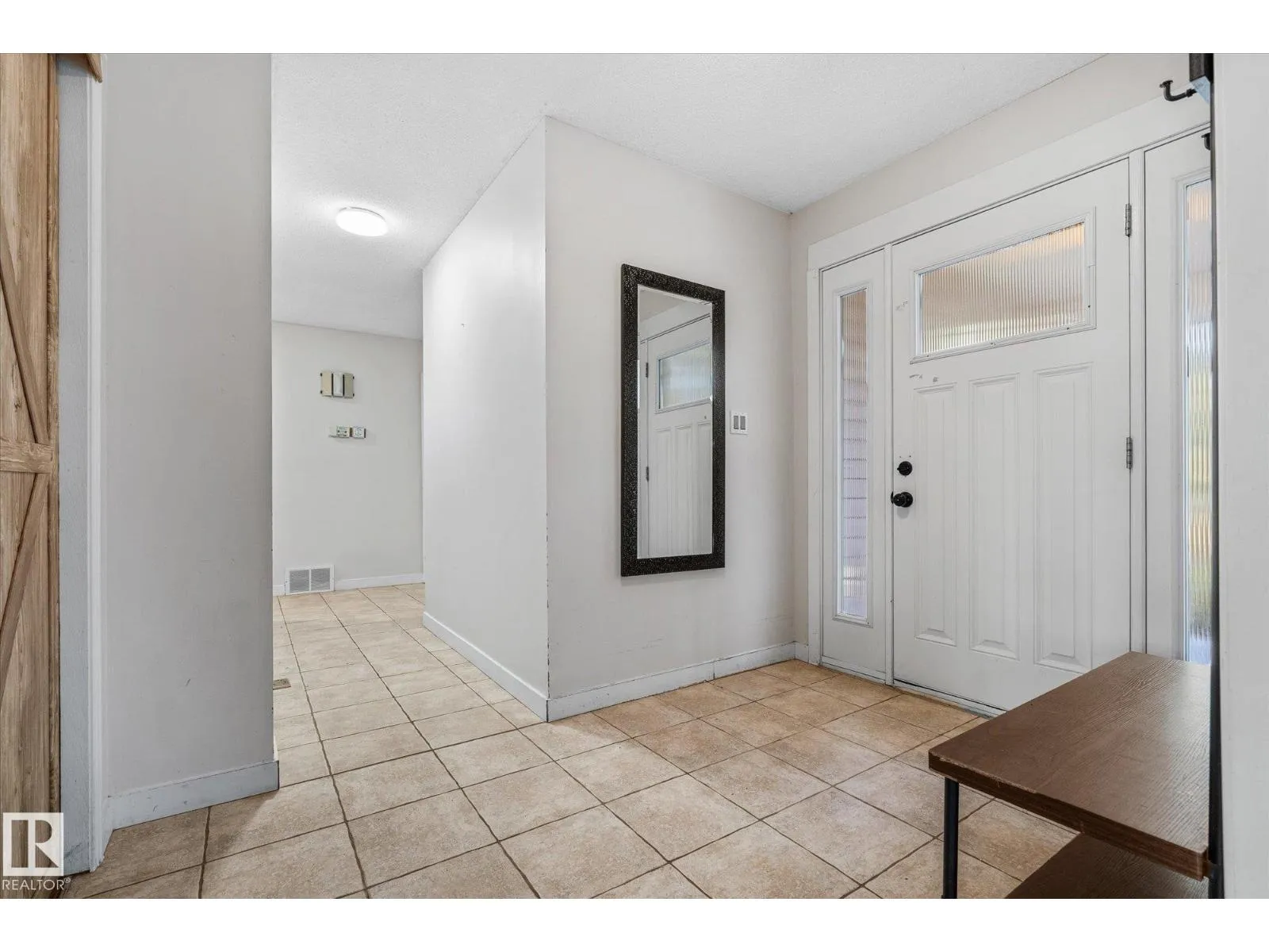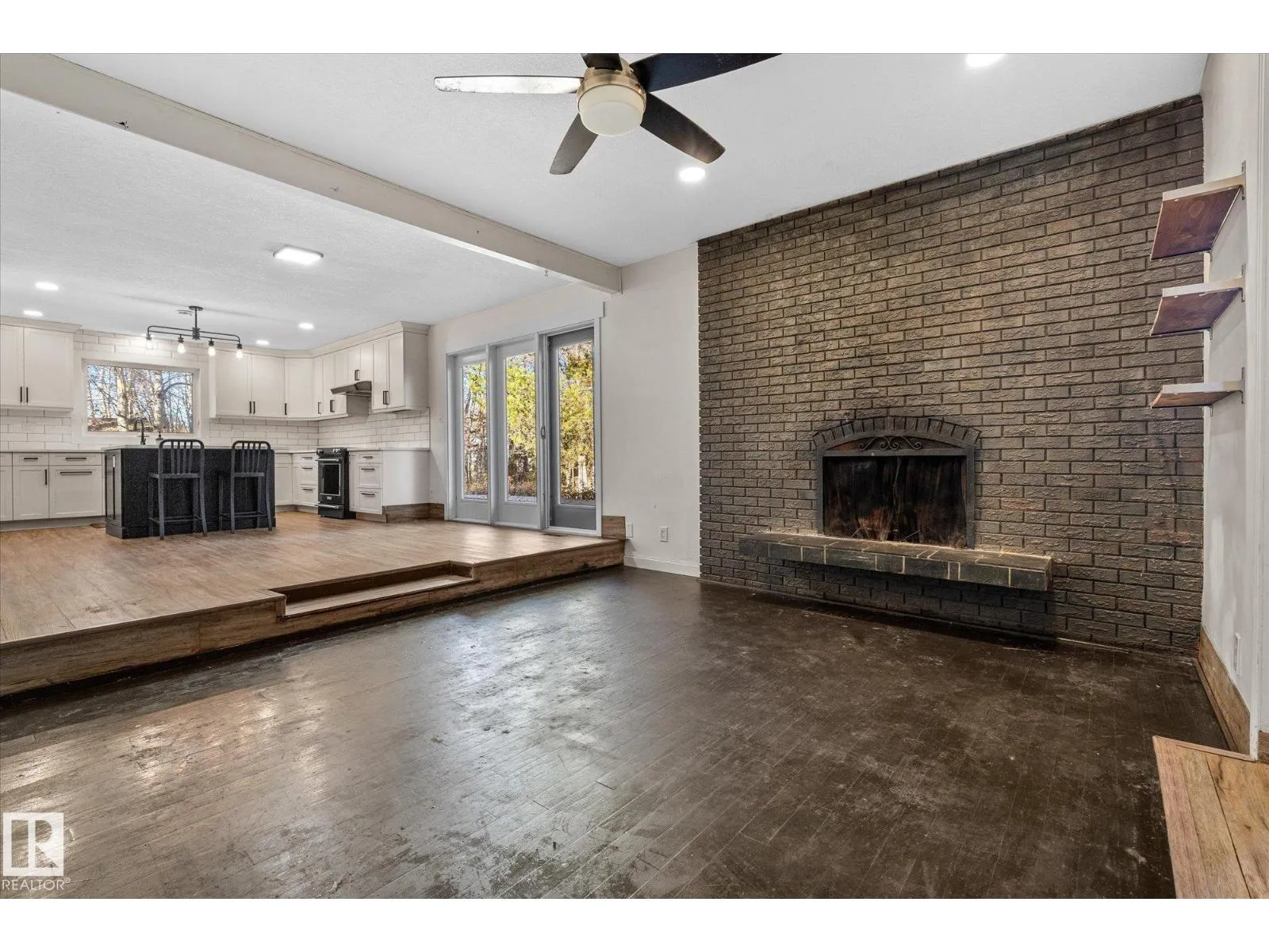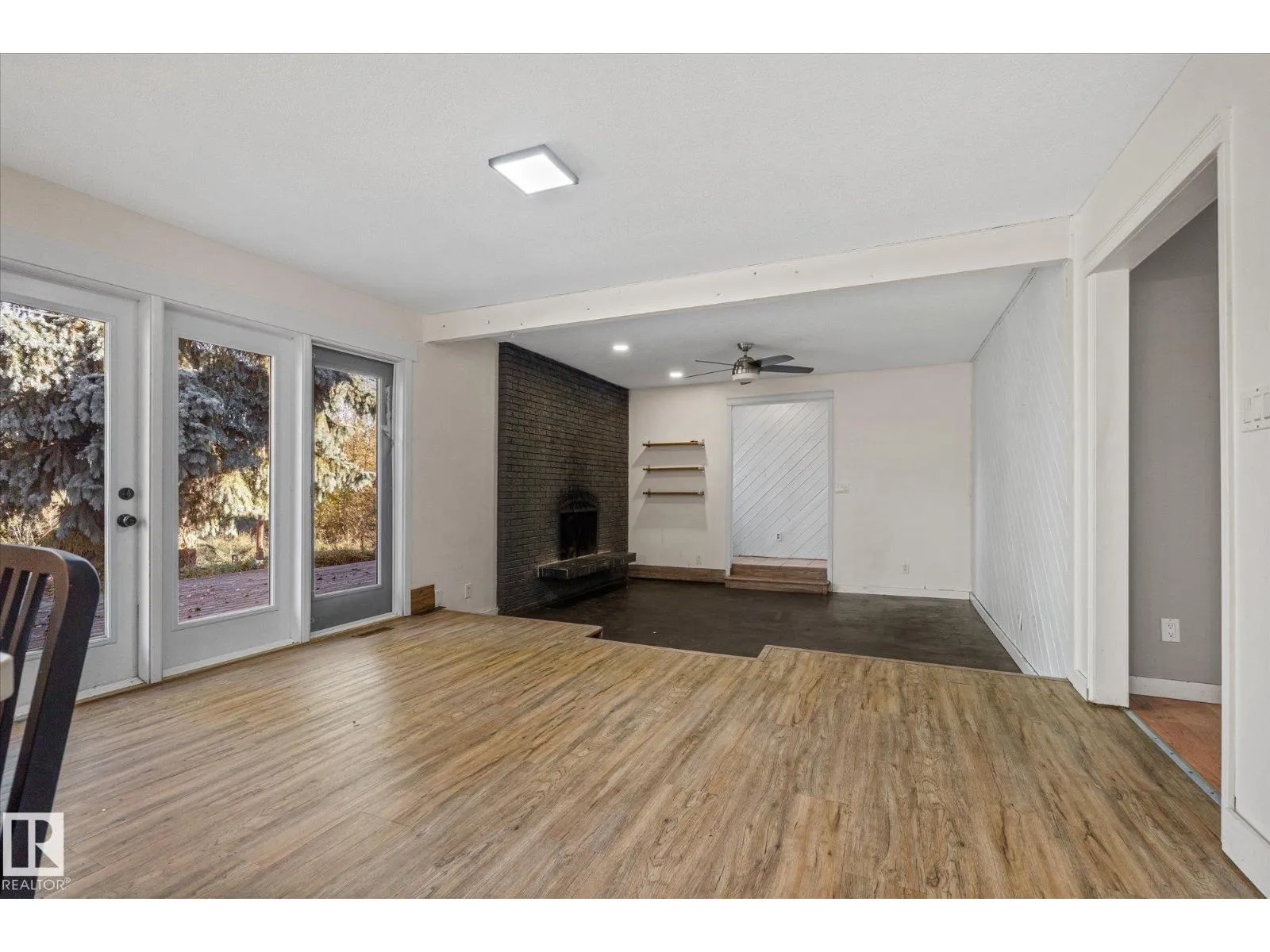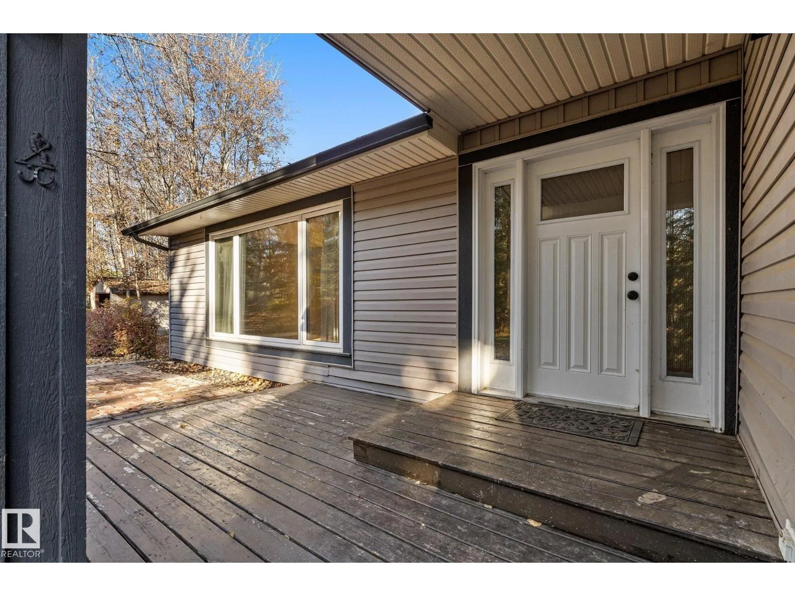 Welcome to this prime location 2.99 acre private tree lined bungalow in Grandmuir Estates just minutes north of spruce grove. Major updates include furnace (15), roof (16), and windows (14) The modern kitchen features white cabinetry, spacious quartz countertops, updated lighting, and a black stone farmhouse sink. The updated 4 pc bathroom mirrors this sleek style. The dining area opens to a spacious deck perfect for entertaining overlooking a landscaped yard w/ space to expand. 3 bedrooms, a large living room, & a cozy family room with a wood-burning fireplace complete the main floor. The partially finished basement awaits your finishing touches w/ space for a rec room, laundry area, and extra storage. The garage is oversized 26 x 24 ft, w/ breezeway attached for added charm and storage With some fresh paint and sweat equity this home can be restored to its full potential. Located walking distance to Muir Lake and a short drive into the city. Come discover country living, with city convenience! (id:27476)