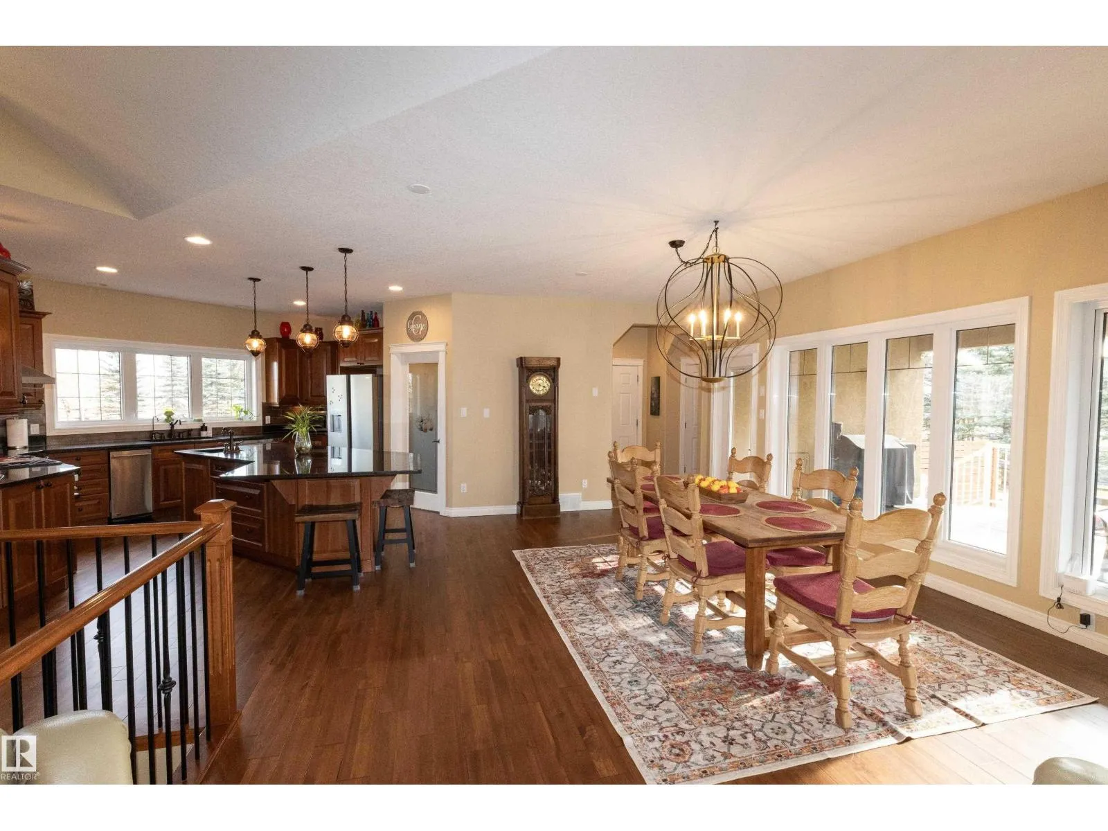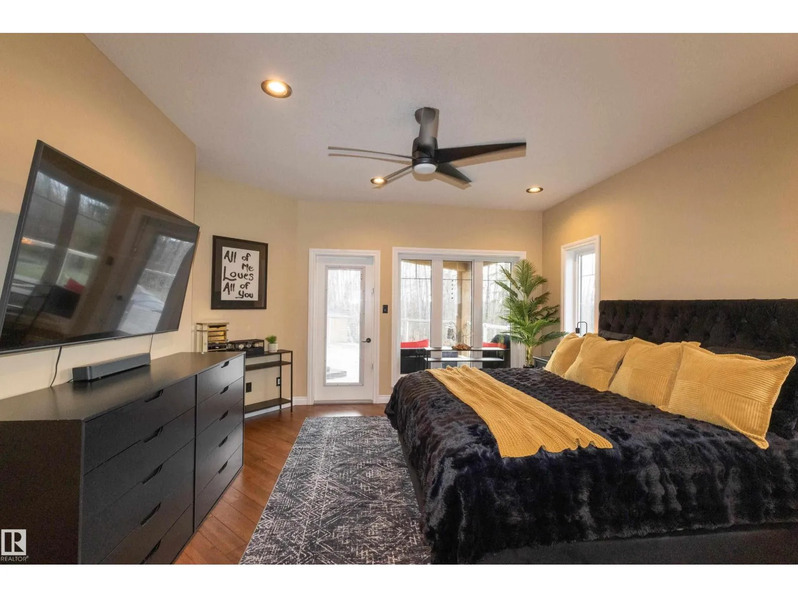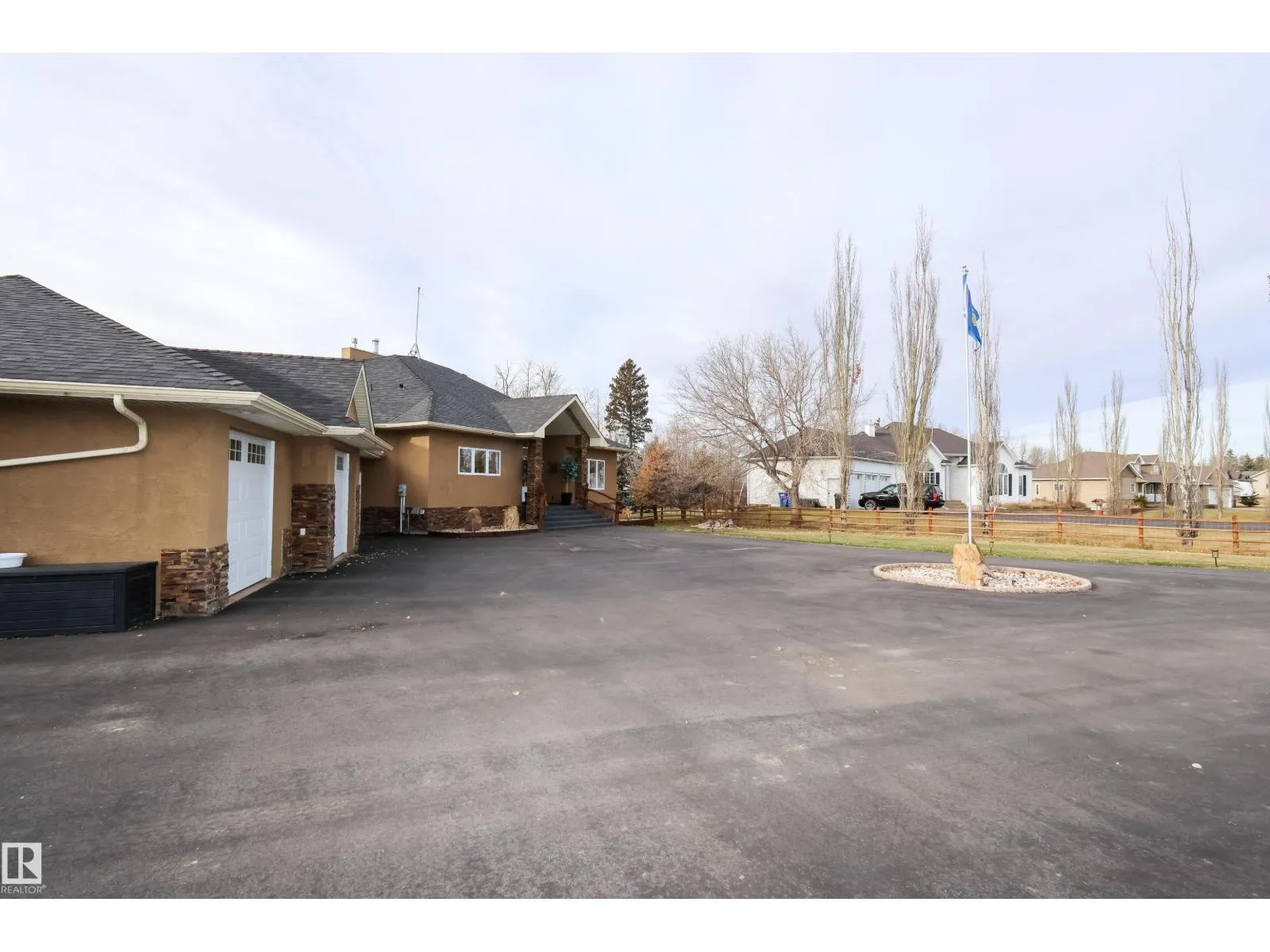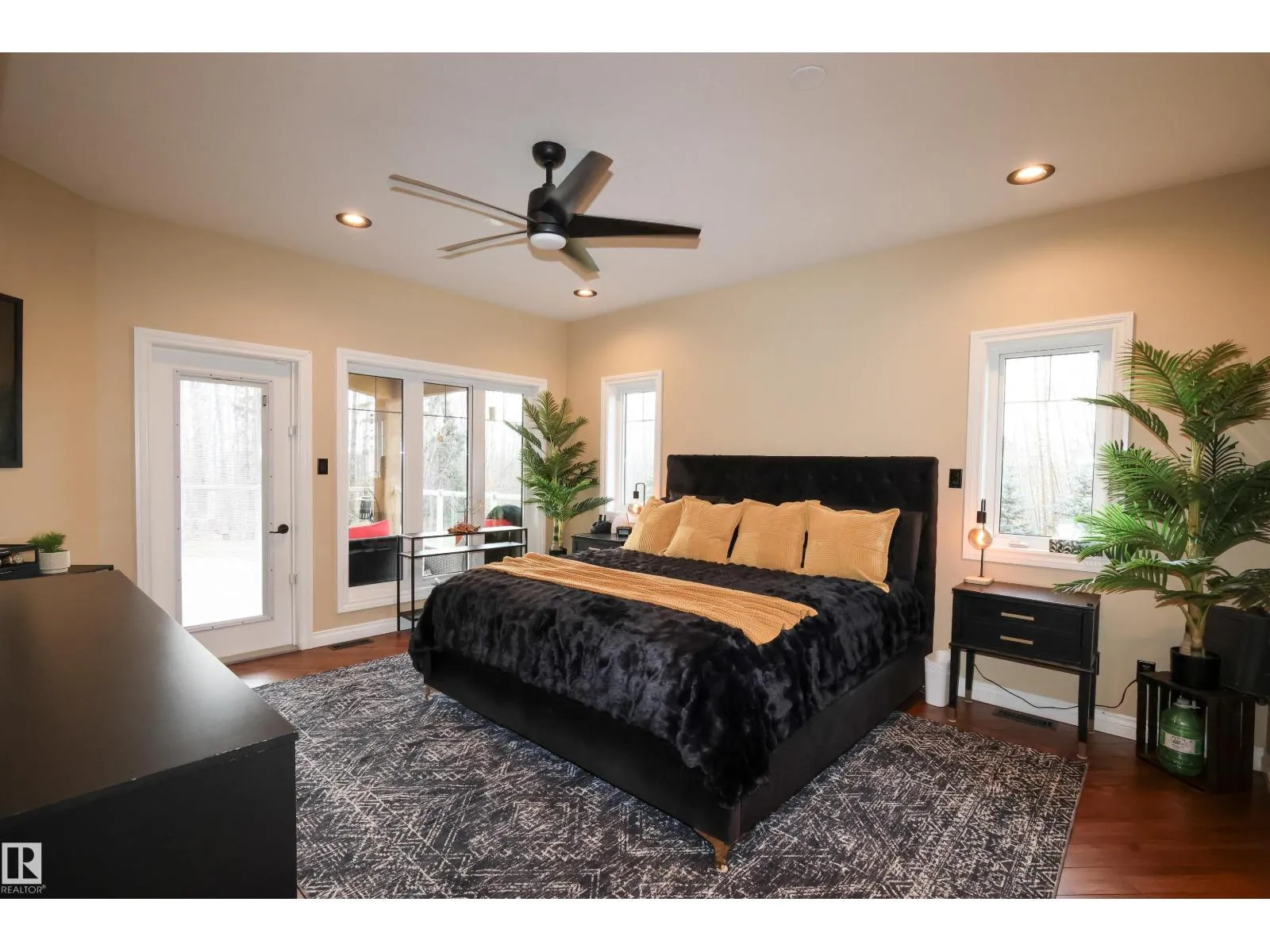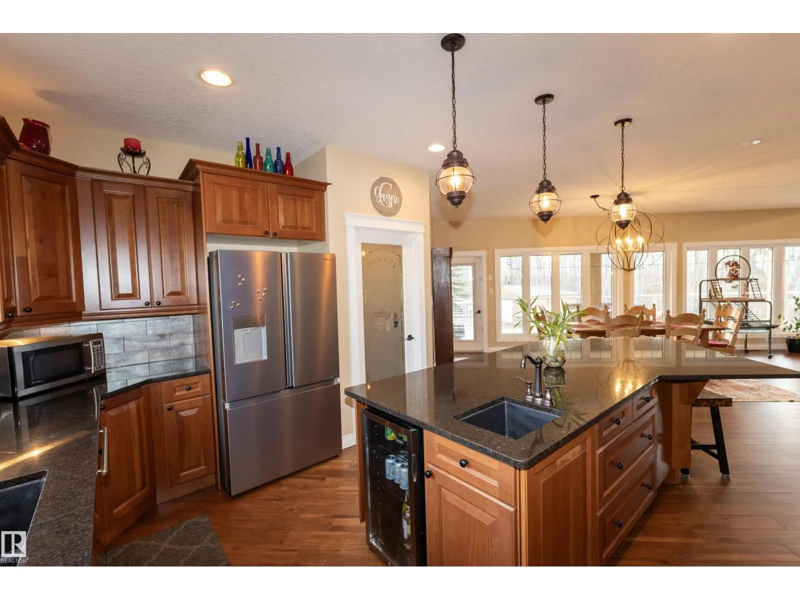 This one-of-a-kind bungalow offers a warm, lodge-like feel with vaulted ceilings, an open-concept design, and large windows that overlook the beautifully landscaped, private backyard. The main floor features new hardwood floors, a spacious primary suite with a two-person shower, soaker tub, and direct access to a 600 sq ft patio. A large den provides flexibility as a second bedroom or home office. The walkout basement includes in-floor heating, a wet bar, and three generous bedrooms with access to a lower patio finished in epoxy. Recent upgrades include a new roof, new paved driveway, new garage doors, new taps, new pressure tank, glycol system, and septic tank blower. Additional highlights include A/C, charcoal water filtration, 3-stage water reclamation septic system, and gutter covers. The massive 44x30 ft garage sits on a full foundation with a half bath and potential for a mechanicâs pit or lower-level expansion. Outdoor living is elevated with a new fence, a cement pad with swim spa & much more! (id:27476)