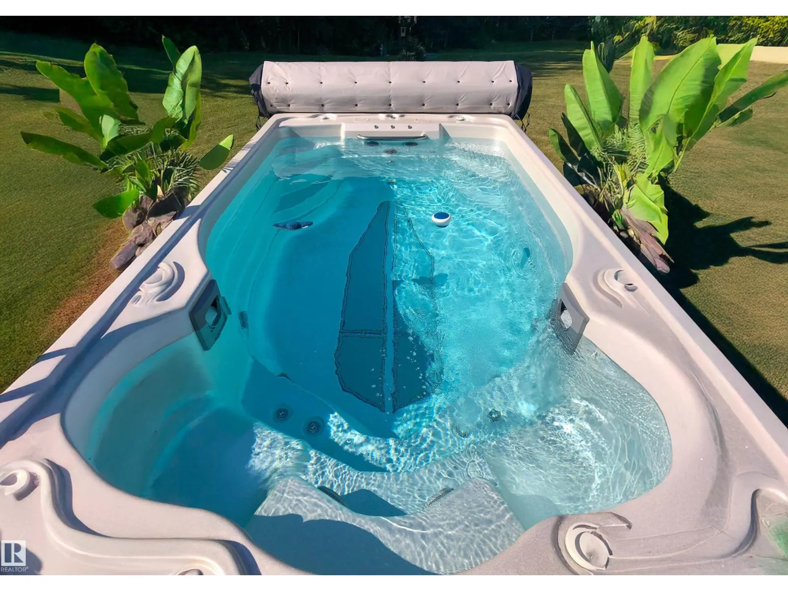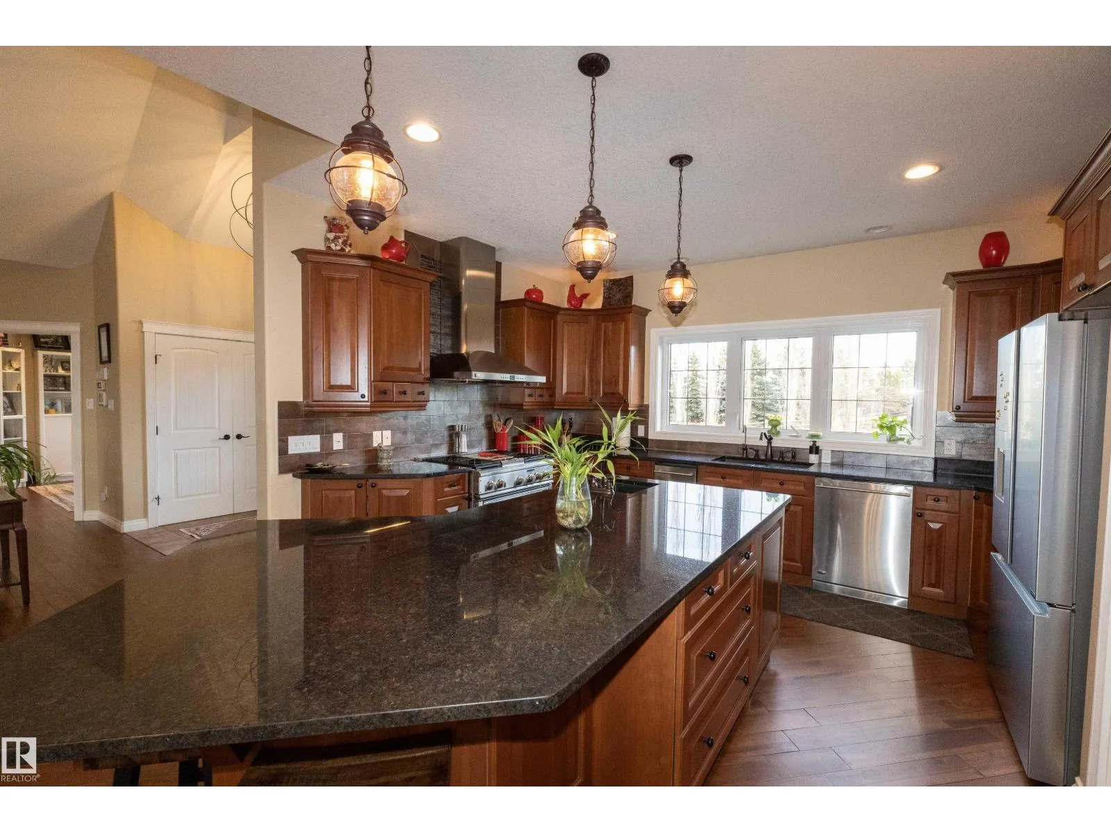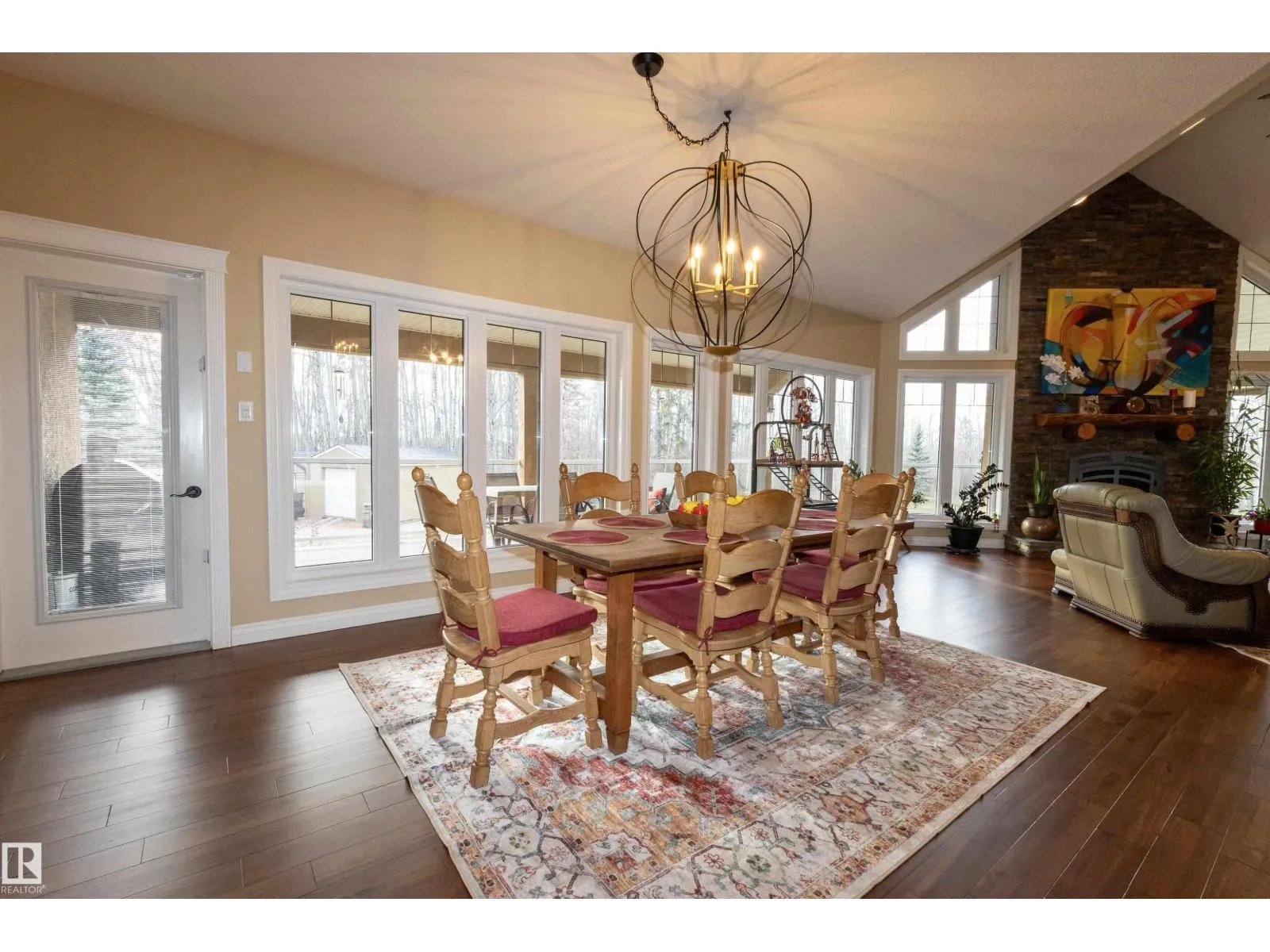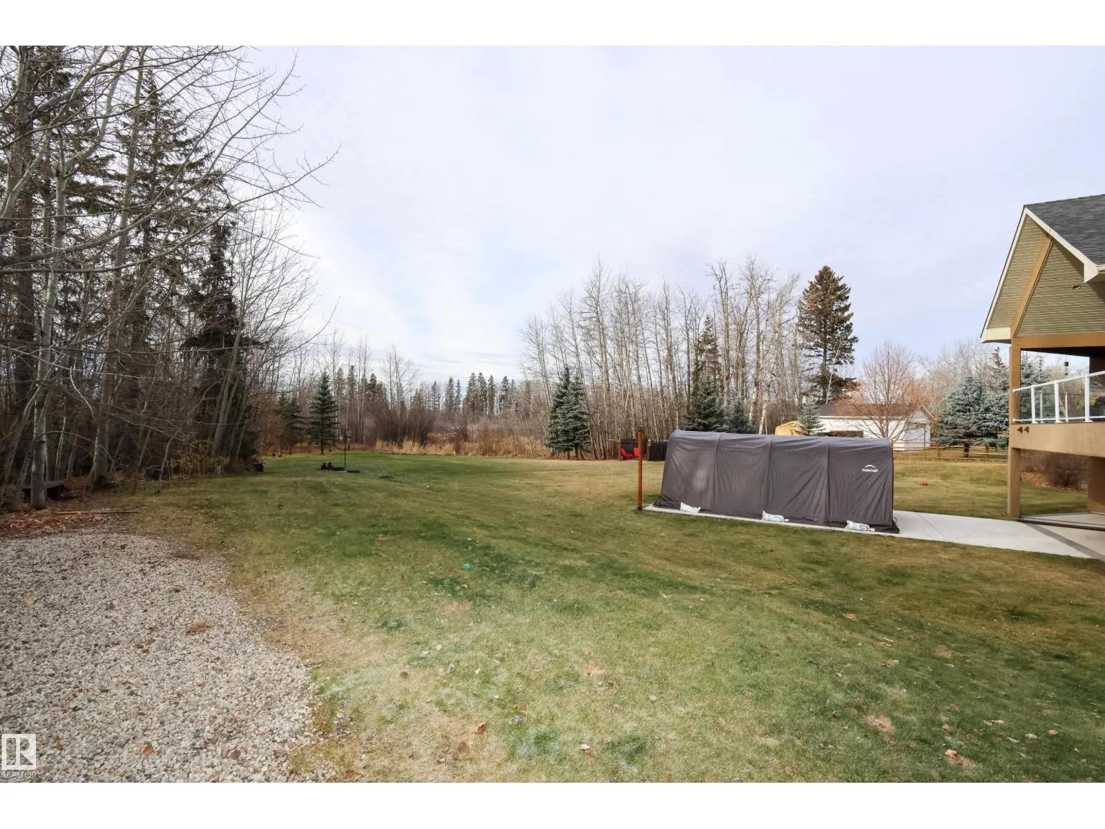 This one-of-a-kind bungalow offers a warm, lodge-like feel with vaulted ceilings, an open-concept design, and large windows that overlook the beautifully landscaped, private backyard. The main floor features new hardwood floors, a spacious primary suite with a two-person shower, soaker tub, and direct access to a 600 sq ft patio. A large den provides flexibility as a second bedroom or home office. The walkout basement includes in-floor heating, a wet bar, and three generous bedrooms with access to a lower patio finished in epoxy. Recent upgrades include a new roof, new paved driveway, new garage doors, new taps, new pressure tank, glycol system, and septic tank blower. Additional highlights include A/C, charcoal water filtration, 3-stage water reclamation septic system, and gutter covers. The massive 44x30 ft garage sits on a full foundation with a half bath and potential for a mechanicâs pit or lower-level expansion. Outdoor living is elevated with a new fence, a cement pad with swim spa & much more! (id:27476)