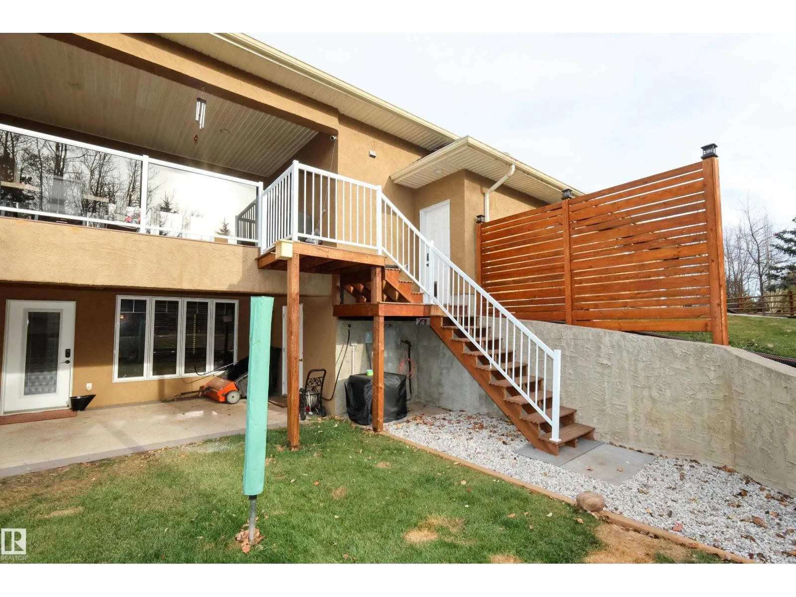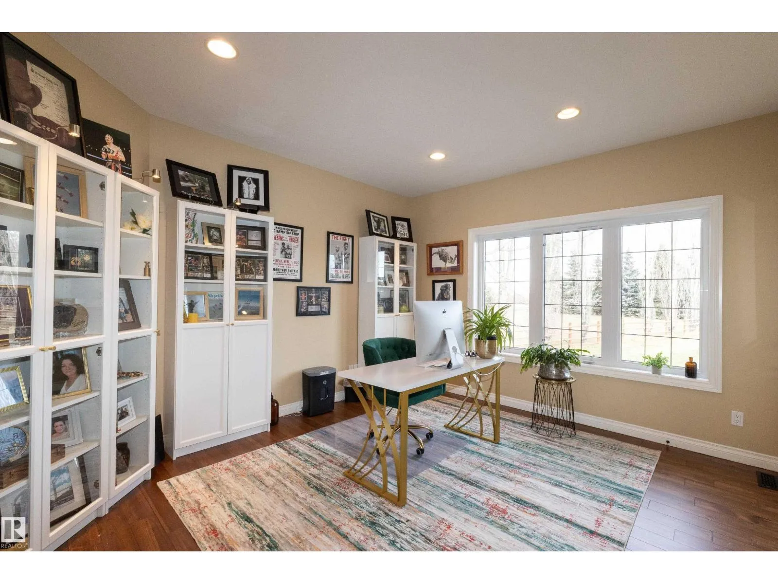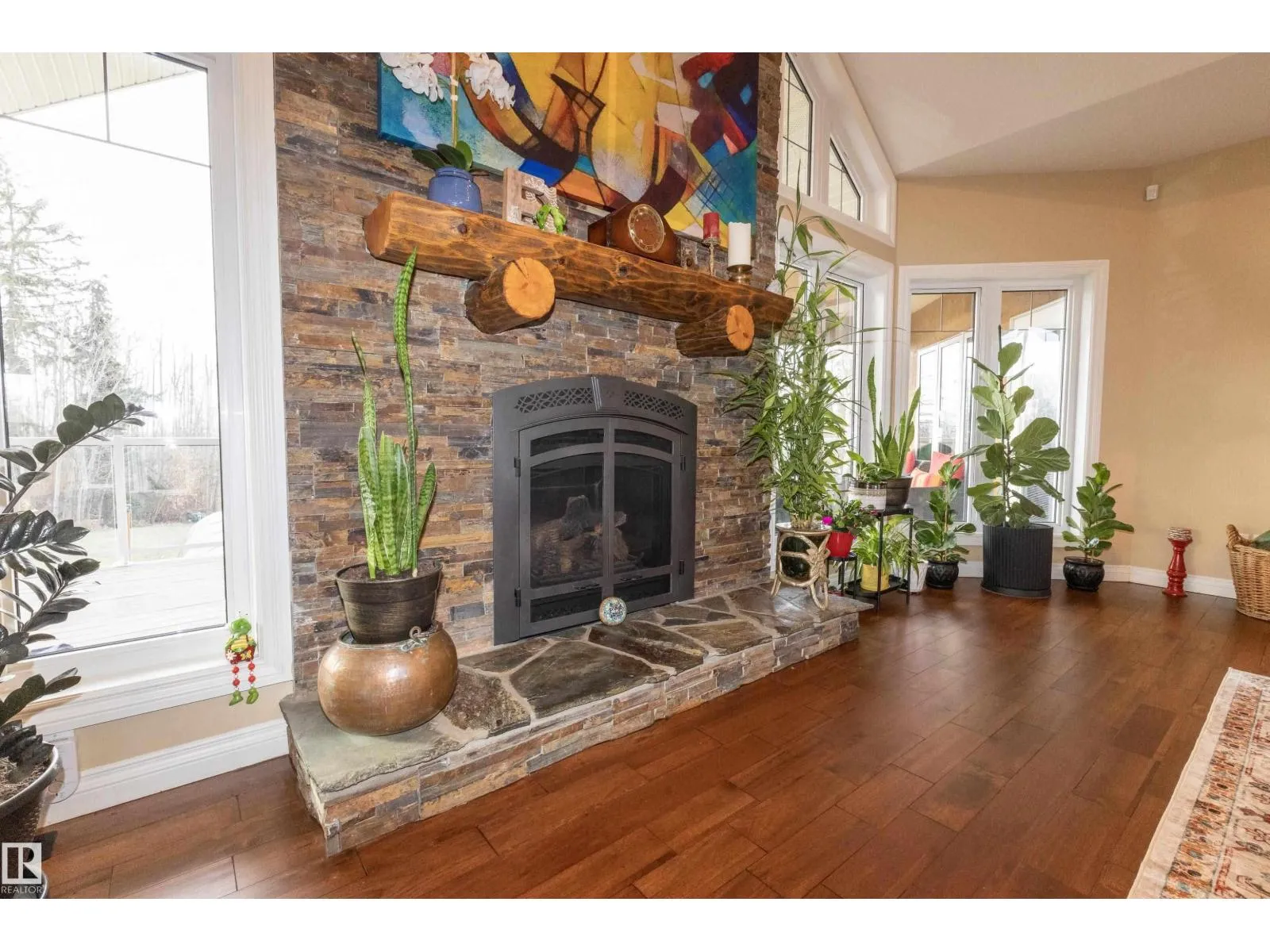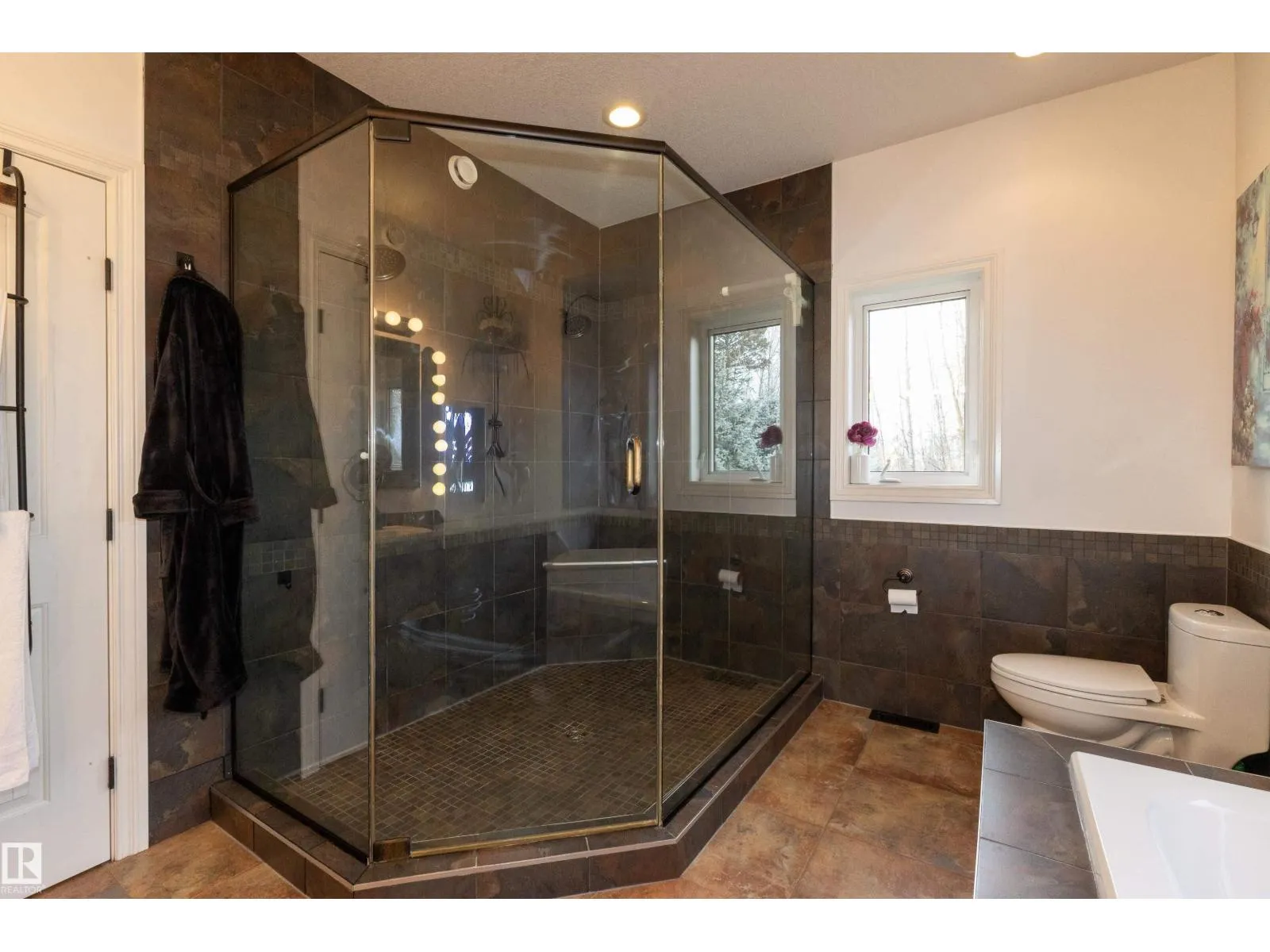This one-of-a-kind bungalow offers a warm, lodge-like feel with vaulted ceilings, an open-concept design, and large windows that overlook the beautifully landscaped, private backyard. The main floor features new hardwood floors, a spacious primary suite with a two-person shower, soaker tub, and direct access to a 600 sq ft patio. A large den provides flexibility as a second bedroom or home office. The walkout basement includes in-floor heating, a wet bar, and three generous bedrooms with access to a lower patio finished in epoxy. Recent upgrades include a new roof, new paved driveway, new garage doors, new taps, new pressure tank, glycol system, and septic tank blower. Additional highlights include A/C, charcoal water filtration, 3-stage water reclamation septic system, and gutter covers. The massive 44x30 ft garage sits on a full foundation with a half bath and potential for a mechanicâs pit or lower-level expansion. Outdoor living is elevated with a new fence, a cement pad with swim spa & much more! (id:27476)