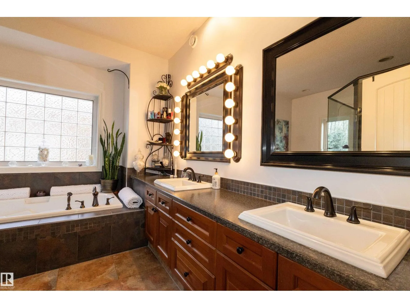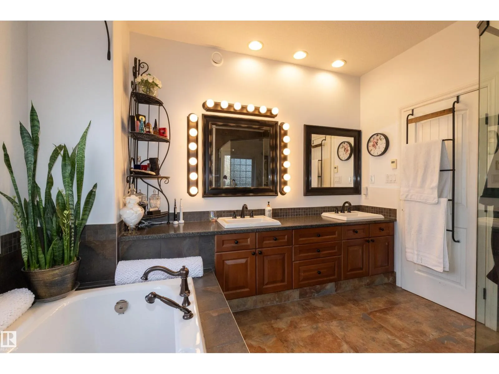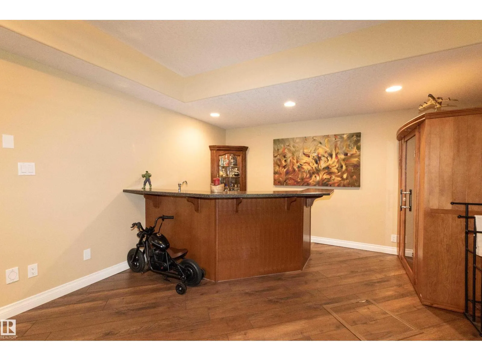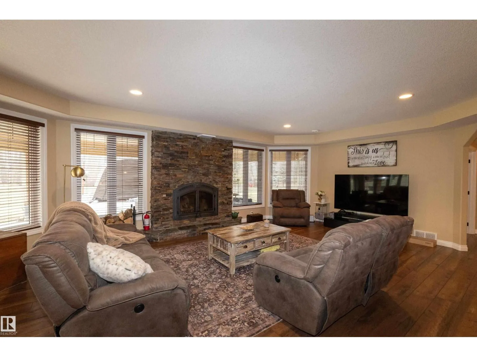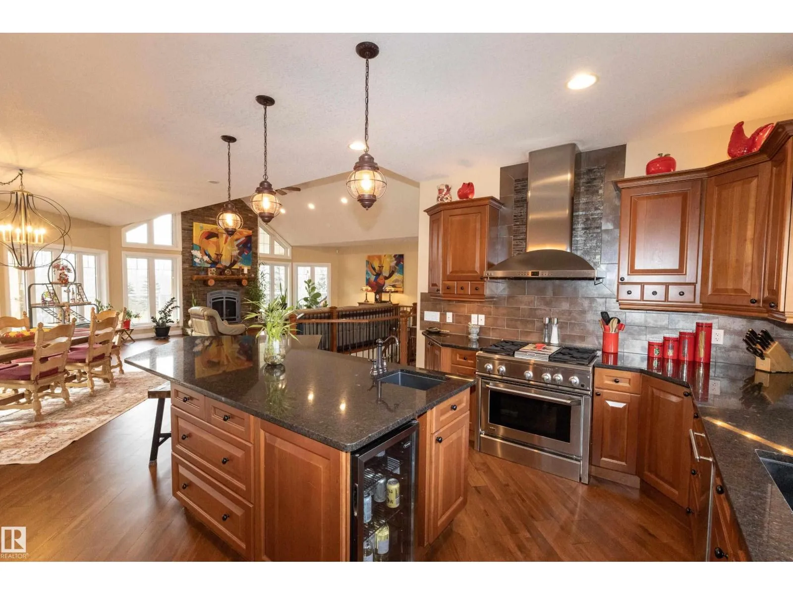 This one-of-a-kind bungalow offers a warm, lodge-like feel with vaulted ceilings, an open-concept design, and large windows that overlook the beautifully landscaped, private backyard. The main floor features new hardwood floors, a spacious primary suite with a two-person shower, soaker tub, and direct access to a 600 sq ft patio. A large den provides flexibility as a second bedroom or home office. The walkout basement includes in-floor heating, a wet bar, and three generous bedrooms with access to a lower patio finished in epoxy. Recent upgrades include a new roof, new paved driveway, new garage doors, new taps, new pressure tank, glycol system, and septic tank blower. Additional highlights include A/C, charcoal water filtration, 3-stage water reclamation septic system, and gutter covers. The massive 44x30 ft garage sits on a full foundation with a half bath and potential for a mechanicâs pit or lower-level expansion. Outdoor living is elevated with a new fence, a cement pad with swim spa & much more! (id:27476)